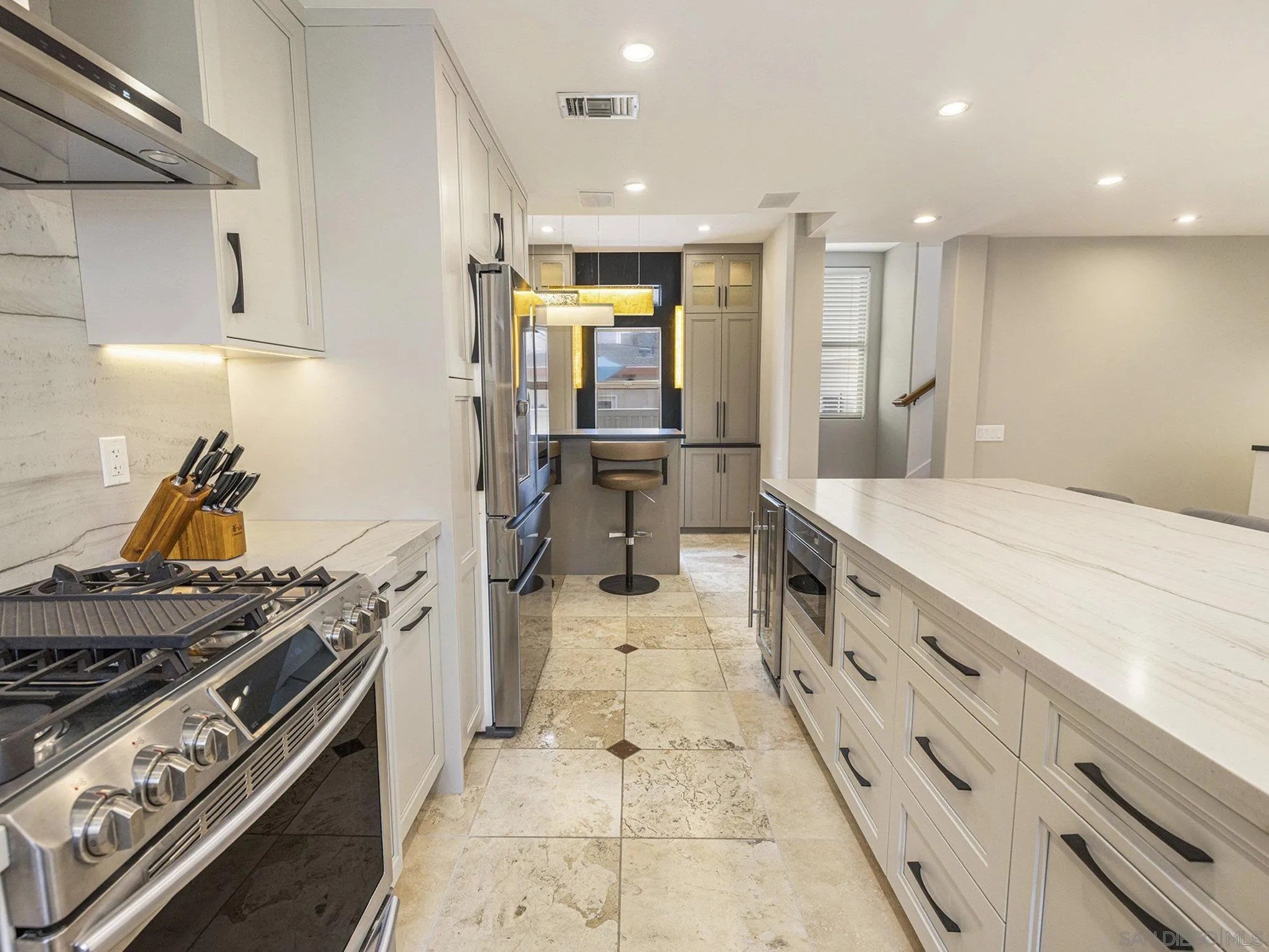 Perched above the Village with sweeping ocean views, this fully reimagined residence blends contemporary design with effortless coastal living. Over $500,000 in thoughtful updates within the past three years create a home that is both refined and refreshingly low-maintenance. Completely detached and entirely private, the home offers a rare combination of space, style, and walkability to the world class amenities La Jolla is renowned for. Enjoy nightly sunset views over the Pacific from both the primary suite or the expansive rooftop terrace. Inside, custom details abound-porcelain slab fireplace, coved ceilings, furniture-grade cabinetry, and curated lighting that is truly a work of art. The kitchen and dining area flow seamlessly with the living space, enhanced by a built-in banquette and a sleek fully custom bar with abundant storage. With 4 bedrooms, 3 full baths, and a powder room, the layout adapts beautifully to suit a variety of lifestyles. The oversized garage provides generous storage, while two outdoor patios offer distinct experiences: a walled front courtyard with a private, elevated feel, and a rear terrace ideal for alfresco dining or lounging. The crown jewel is the oversized rooftop terrace-surprisingly private, endlessly inviting, and perfectly positioned for daily ocean breezes and unforgettable sunsets. Whether as a full-time retreat or an effortless lock-and-go coastal escape, this home delivers the rare blend of quality, views, and in-town location that defines the best of La Jolla living.