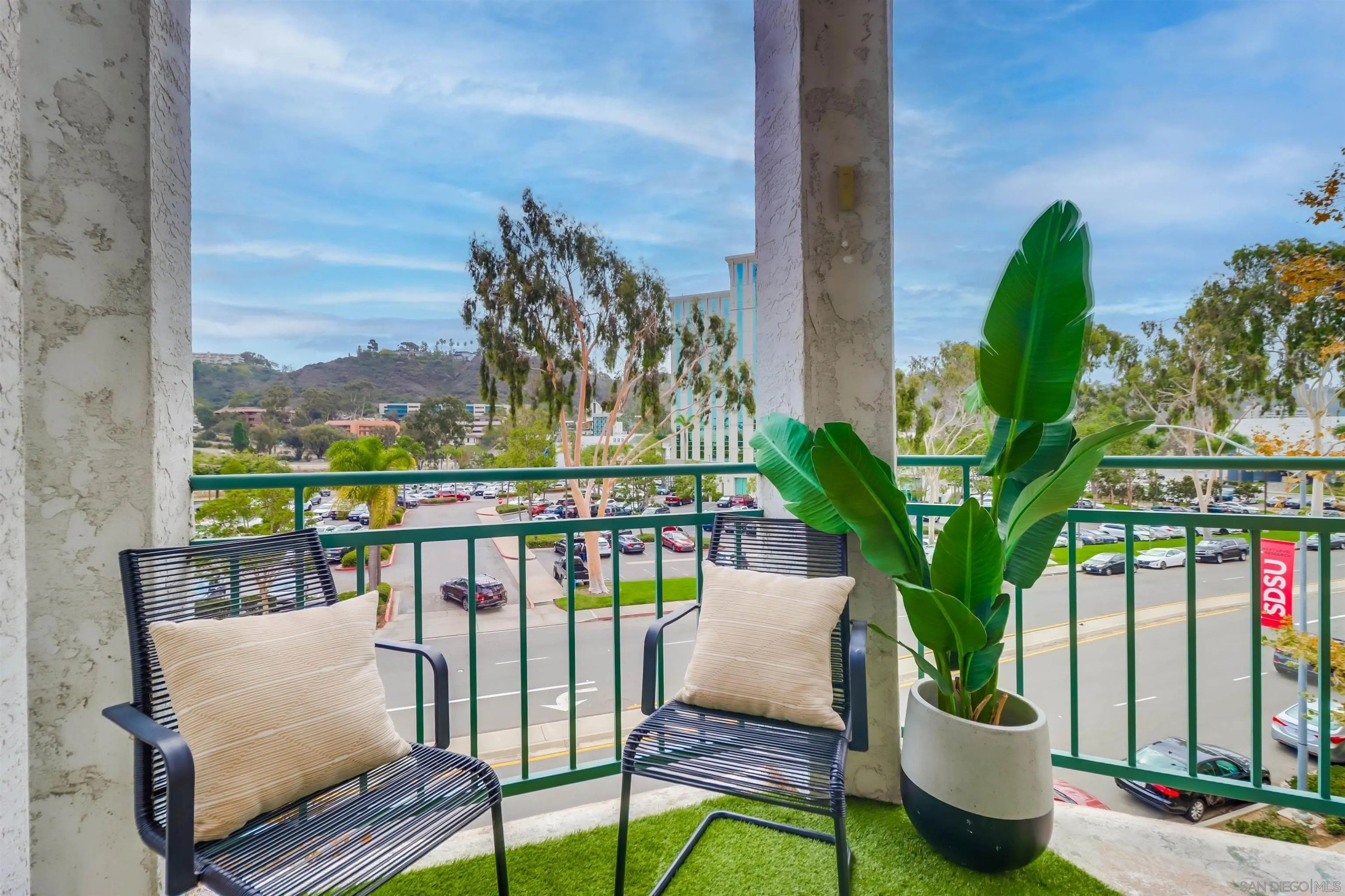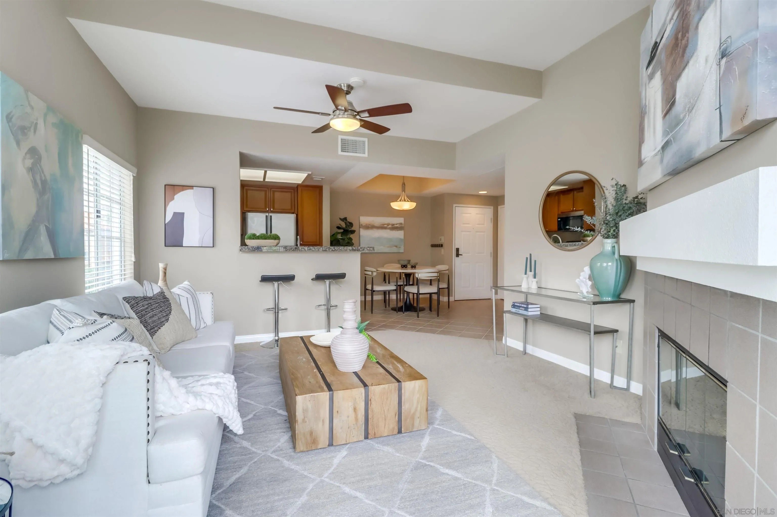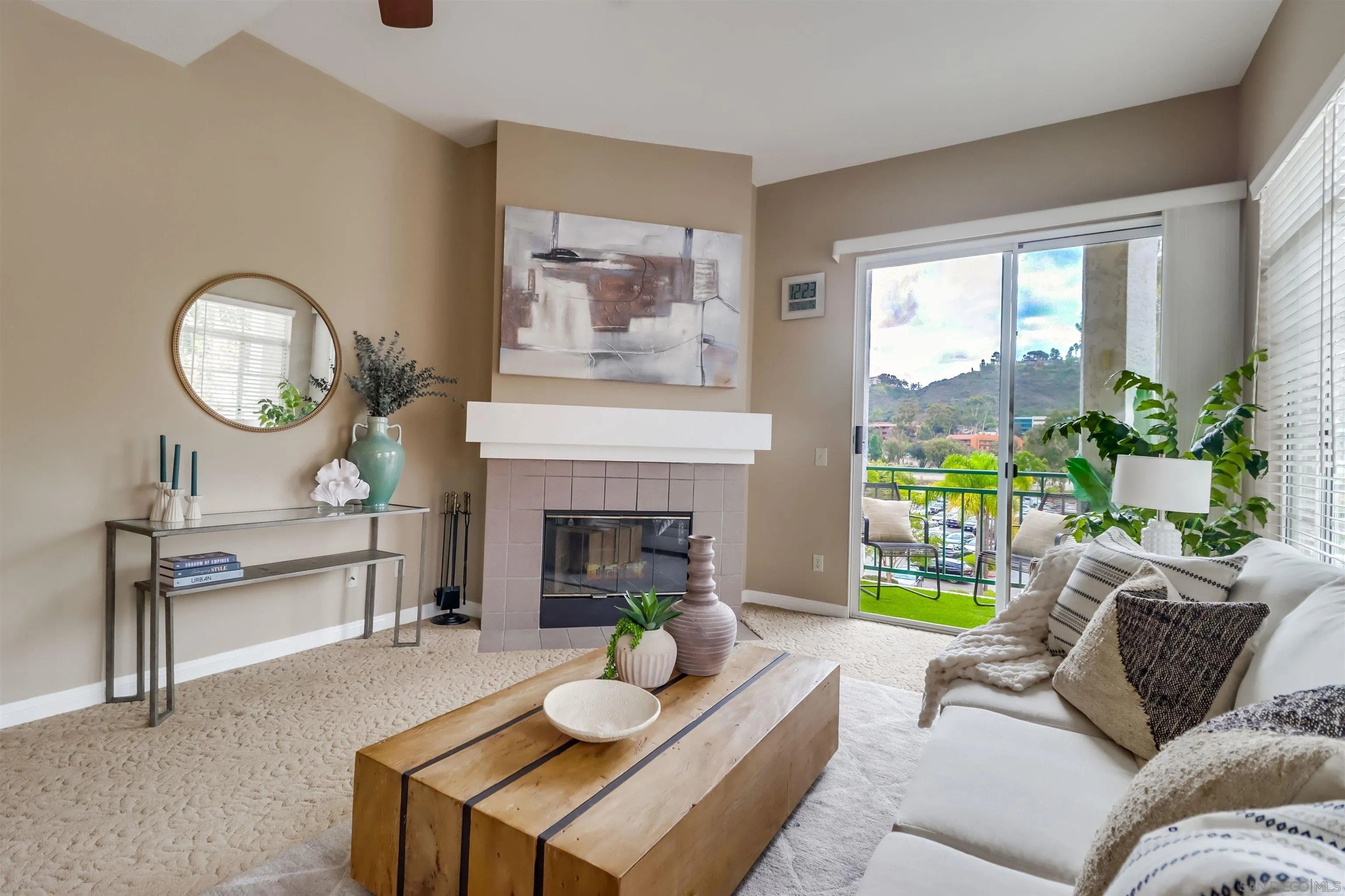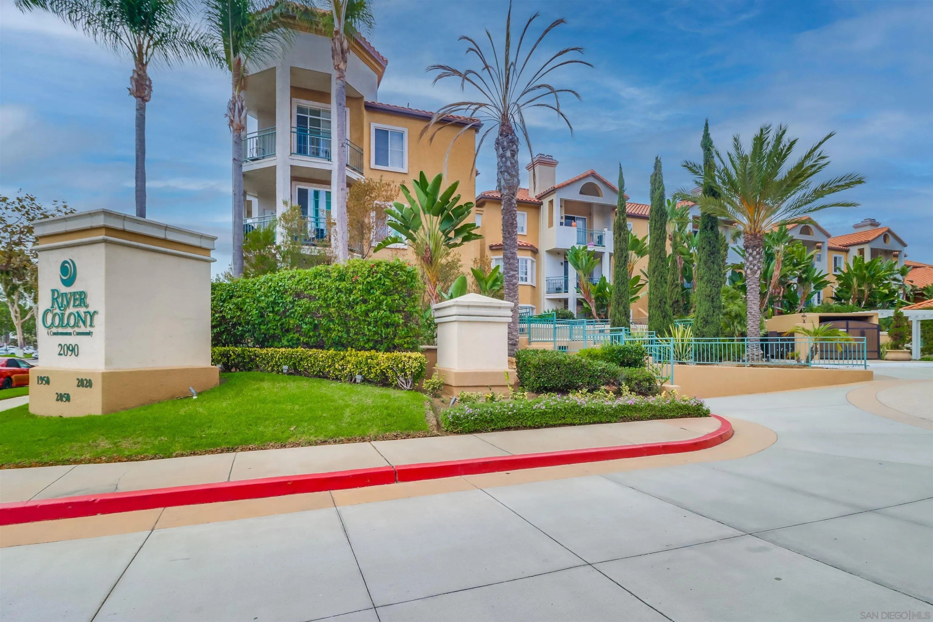 Your PENTHOUSE awaits! Welcome to this rarely available TOP FLOOR, SOUTHWEST facing, CORNER UNIT, offering green canyon VIEWS, and situated in one of Mission Valley's most desirable communities - River Colony! Step inside to an inviting open layout featuring luxurious porcelain tile flooring, an upgraded kitchen with stainless steel appliances, and a cozy fireplace for those chilly evenings! Be amazed by an abundance of natural light from multiple windows that brighten every space, complemented by custom blinds, including room-darkening shades in the primary bedroom. Both bathrooms have been tastefully updated, and each room includes ceiling fans for added comfort. Enjoy the convenience of your own PRIVATE WASHER and DRYER, a recently maintained HVAC system, wired internal alarm system, and TWO assigned side-by-side parking spaces in the gated underground garage. A Ring doorbell, Google Nest thermostat, and BBQ grill adds extra value and modern convenience. River Colony residents enjoy resort-style living with access to a sparkling pool and spa, a fully equipped fitness center, a clubroom, and a Wi-Fi lounge, all maintained by a well-managed HOA. Ideally located near San Diego's best shopping, dining, and trolley access, this home offers the perfect combination of comfort, style, and convenience. Don't miss your opportunity to make this beautiful top-floor retreat yours, just in time for the holiday season!