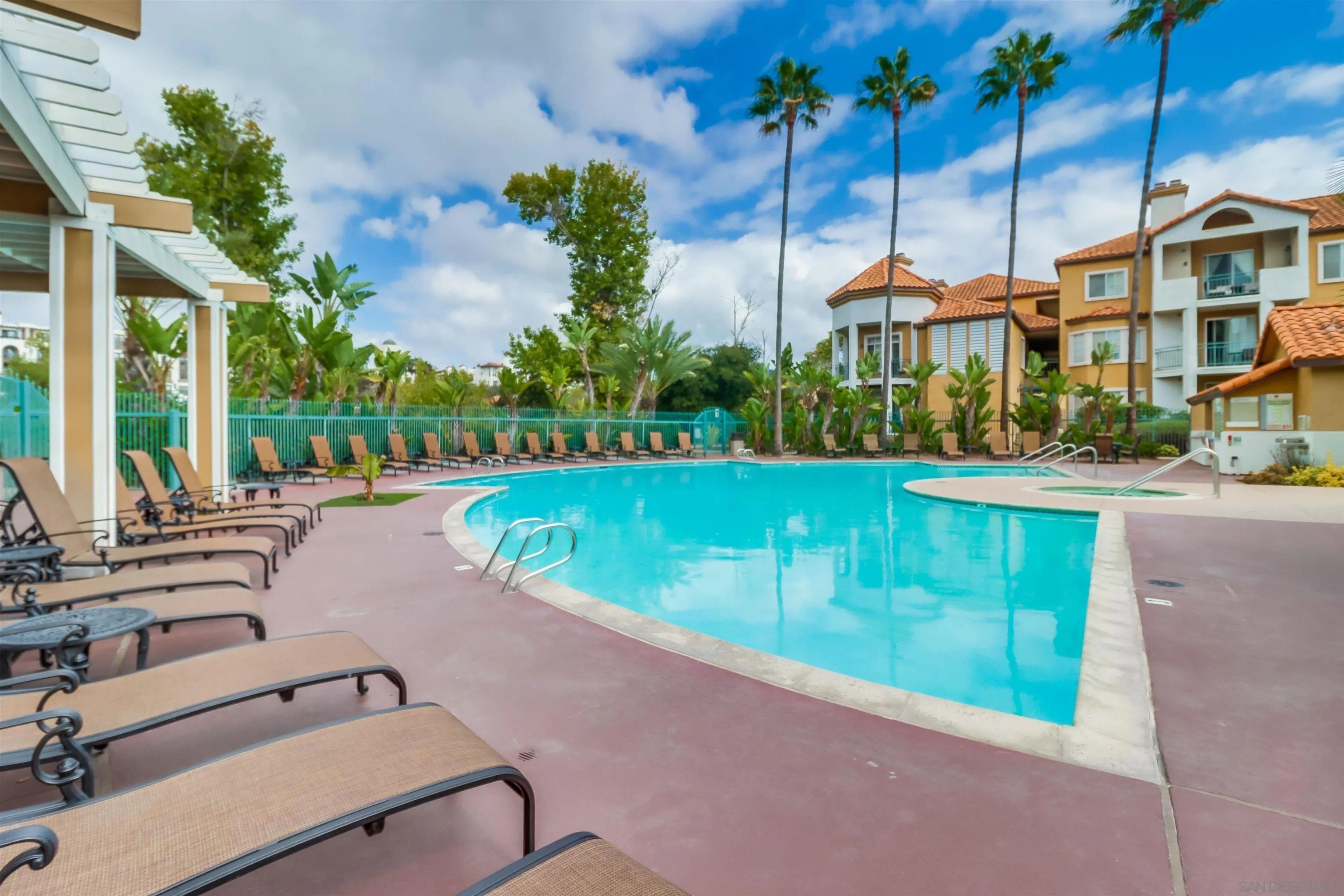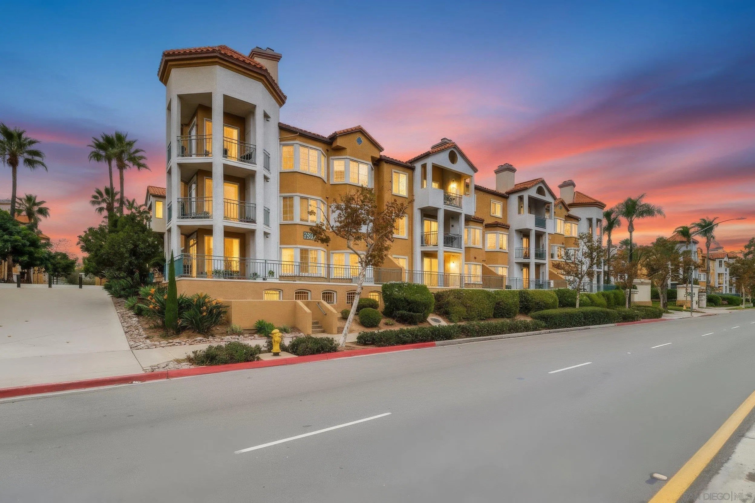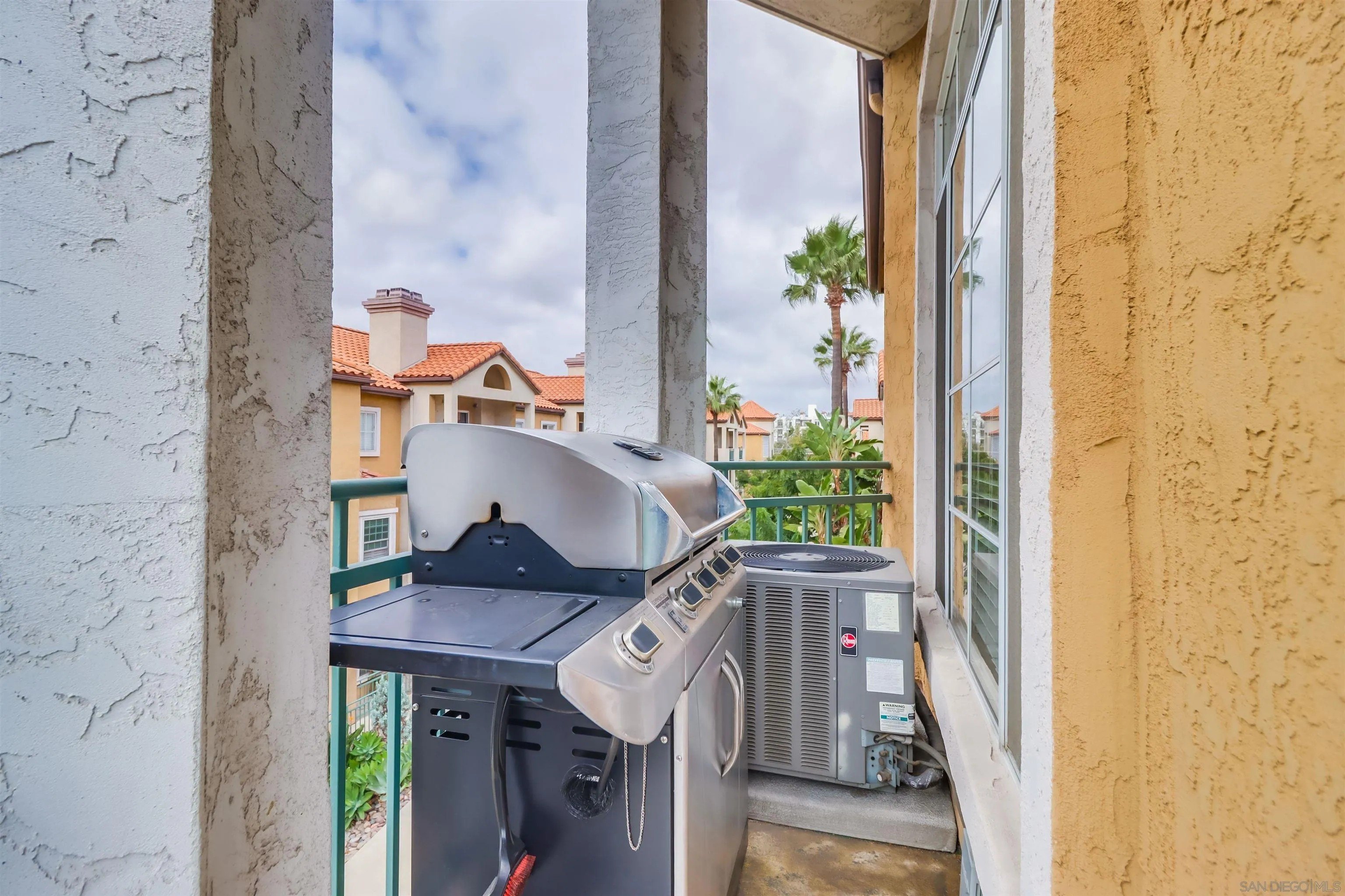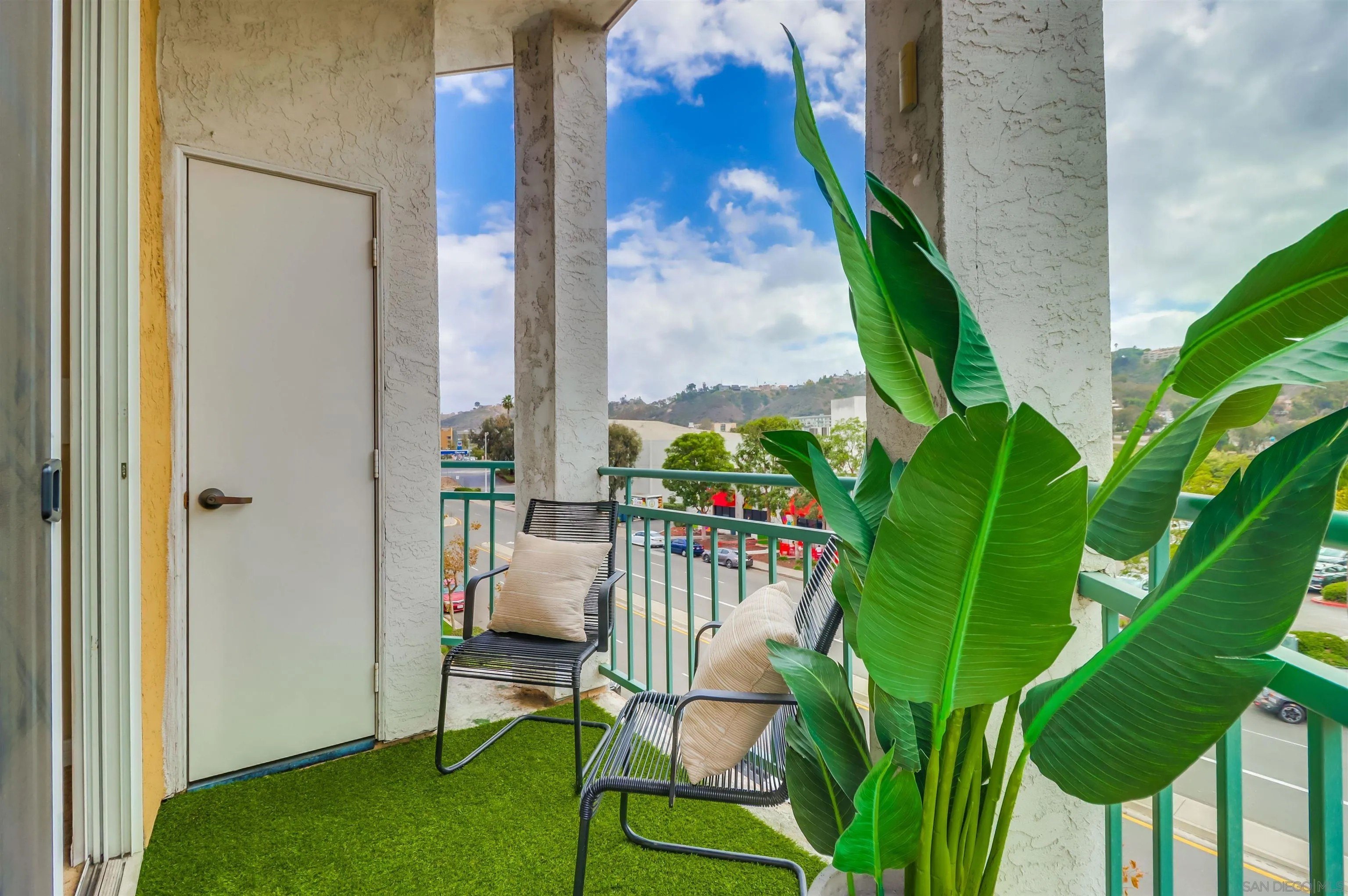 Your PENTHOUSE awaits! Welcome to this rarely available TOP FLOOR, SOUTHWEST facing, CORNER UNIT, offering green canyon VIEWS, and situated in one of Mission Valley's most desirable communities - River Colony! Step inside to an inviting open layout featuring luxurious porcelain tile flooring, an upgraded kitchen with stainless steel appliances, and a cozy fireplace for those chilly evenings! Be amazed by an abundance of natural light from multiple windows that brighten every space, complemented by custom blinds, including room-darkening shades in the primary bedroom. Both bathrooms have been tastefully updated, and each room includes ceiling fans for added comfort. Enjoy the convenience of your own PRIVATE WASHER and DRYER, a recently maintained HVAC system, wired internal alarm system, and TWO assigned side-by-side parking spaces in the gated underground garage. A Ring doorbell, Google Nest thermostat, and BBQ grill adds extra value and modern convenience. River Colony residents enjoy resort-style living with access to a sparkling pool and spa, a fully equipped fitness center, a clubroom, and a Wi-Fi lounge, all maintained by a well-managed HOA. Ideally located near San Diego's best shopping, dining, and trolley access, this home offers the perfect combination of comfort, style, and convenience. Don't miss your opportunity to make this beautiful top-floor retreat yours, just in time for the holiday season!
