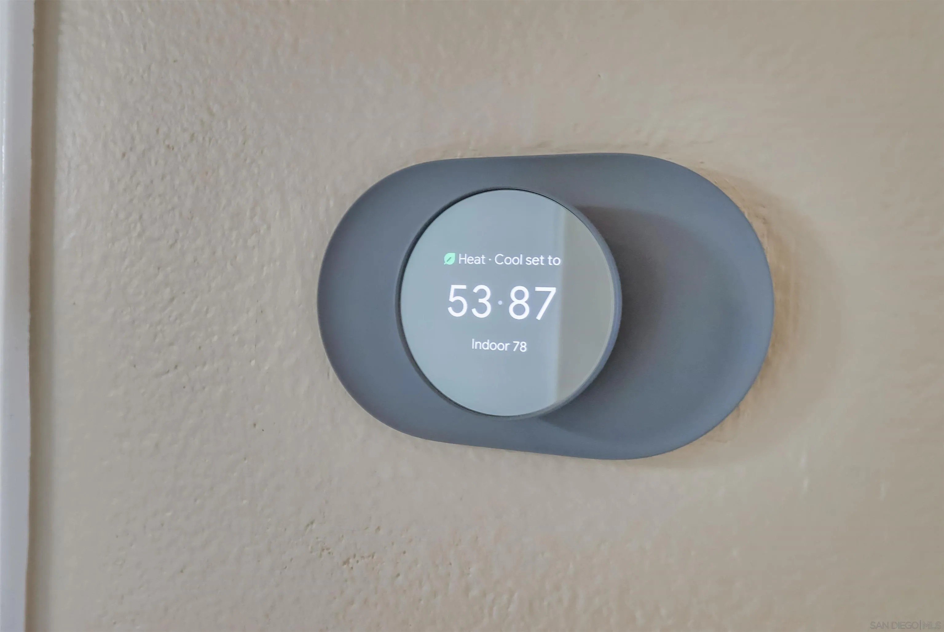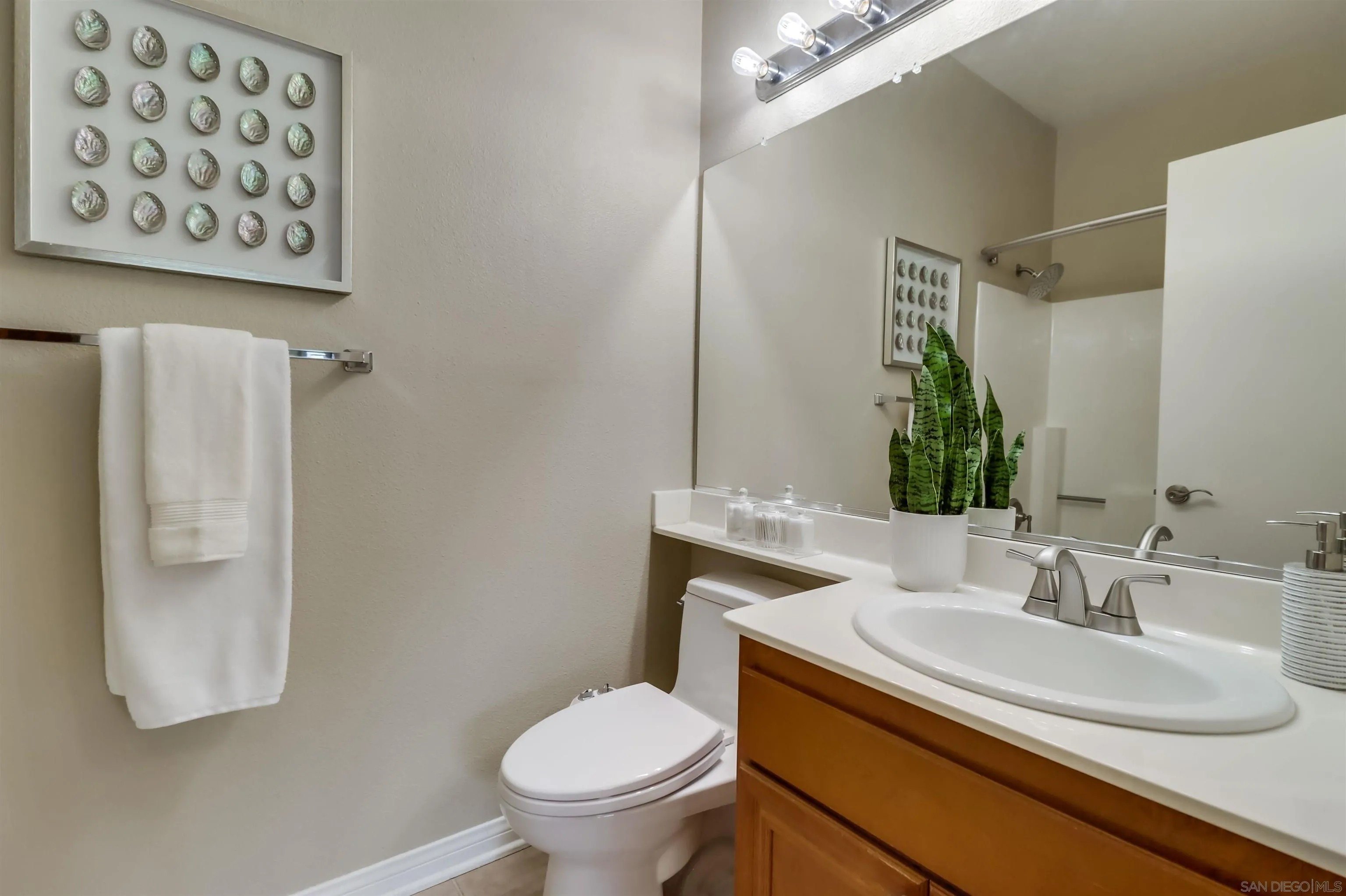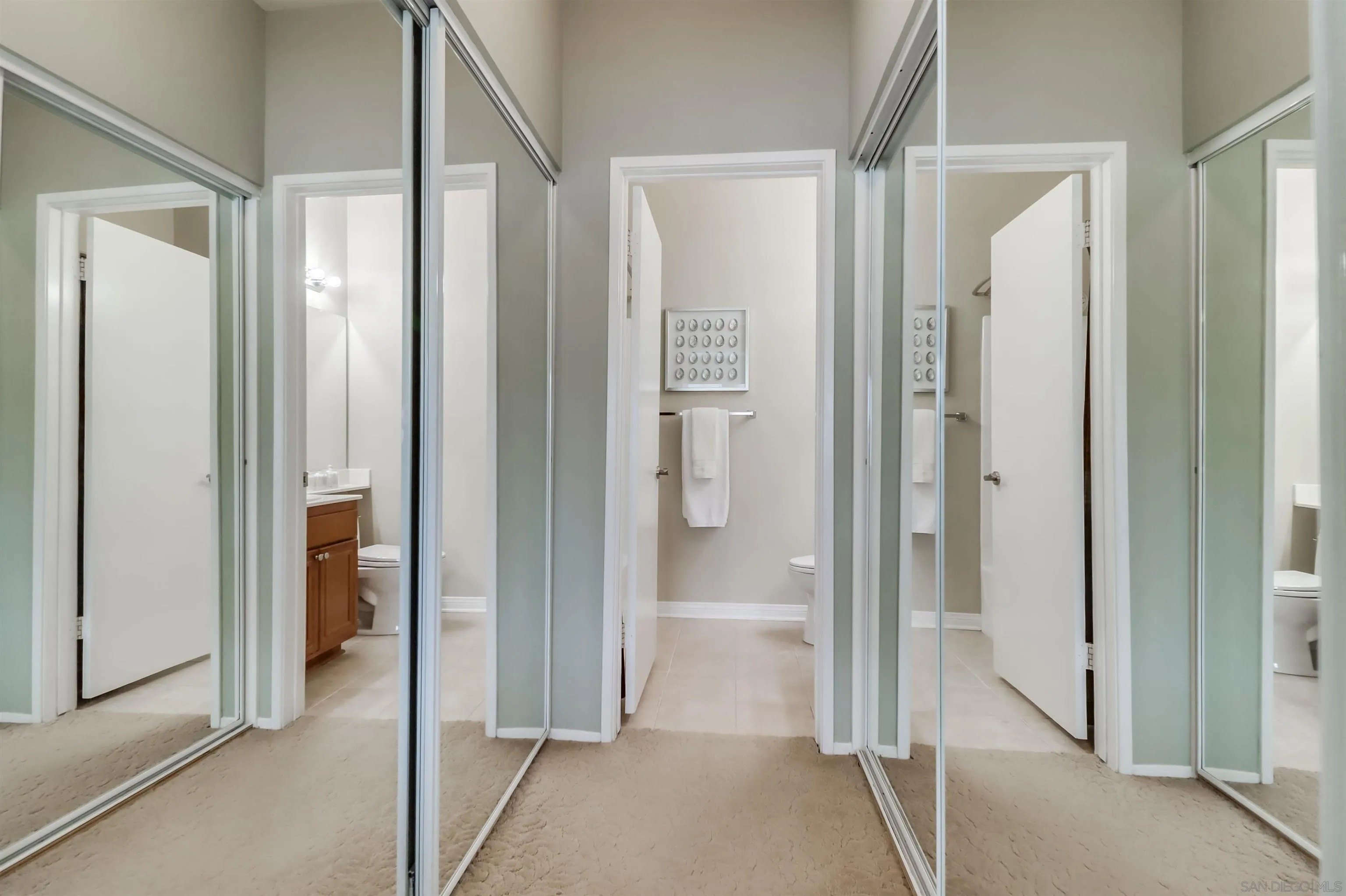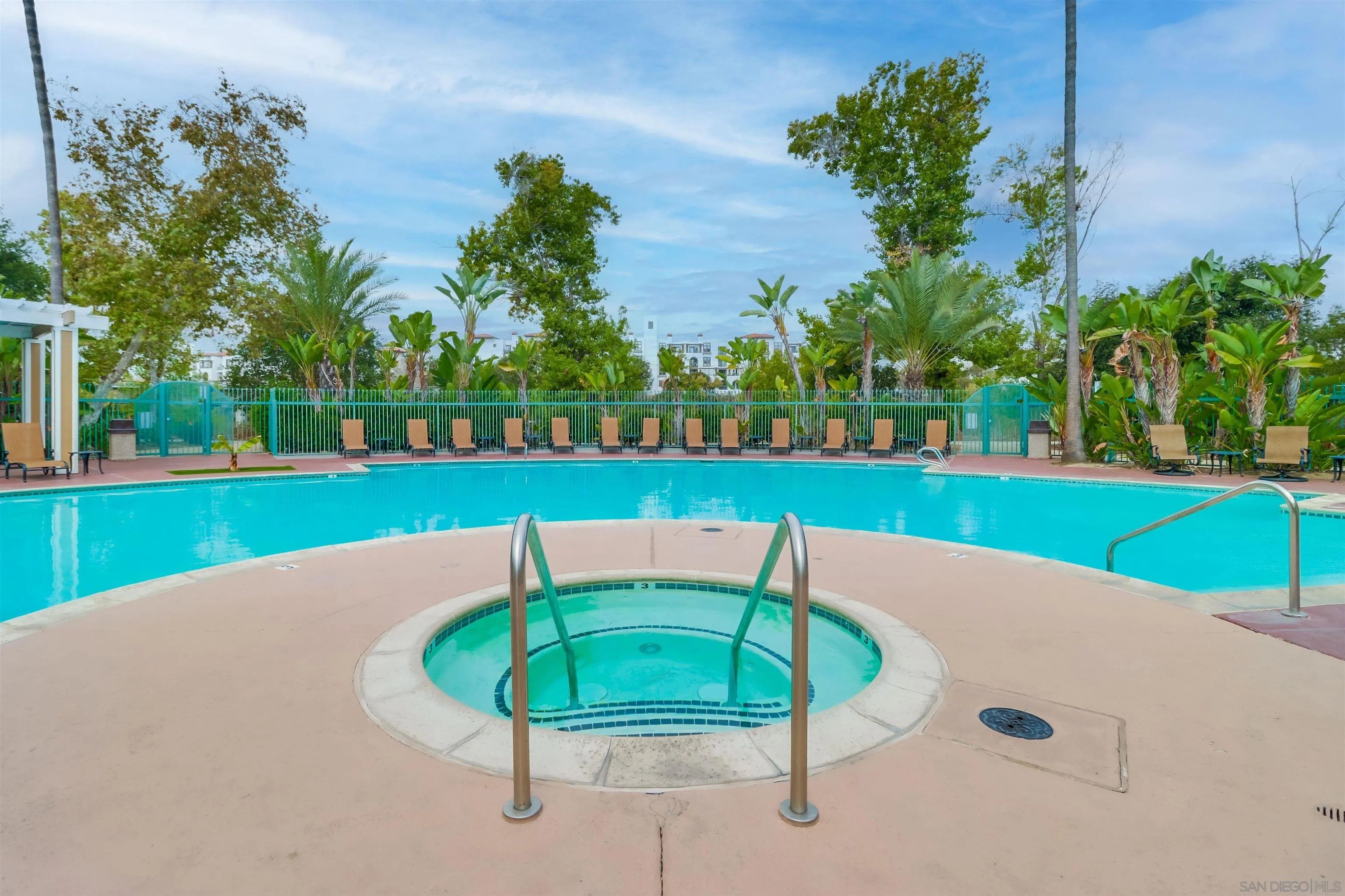 Your PENTHOUSE awaits! Welcome to this rarely available TOP FLOOR, SOUTHWEST facing, CORNER UNIT, offering green canyon VIEWS, and situated in one of Mission Valley's most desirable communities - River Colony! Step inside to an inviting open layout featuring luxurious porcelain tile flooring, an upgraded kitchen with stainless steel appliances, and a cozy fireplace for those chilly evenings! Be amazed by an abundance of natural light from multiple windows that brighten every space, complemented by custom blinds, including room-darkening shades in the primary bedroom. Both bathrooms have been tastefully updated, and each room includes ceiling fans for added comfort. Enjoy the convenience of your own PRIVATE WASHER and DRYER, a recently maintained HVAC system, wired internal alarm system, and TWO assigned side-by-side parking spaces in the gated underground garage. A Ring doorbell, Google Nest thermostat, and BBQ grill adds extra value and modern convenience. River Colony residents enjoy resort-style living with access to a sparkling pool and spa, a fully equipped fitness center, a clubroom, and a Wi-Fi lounge, all maintained by a well-managed HOA. Ideally located near San Diego's best shopping, dining, and trolley access, this home offers the perfect combination of comfort, style, and convenience. Don't miss your opportunity to make this beautiful top-floor retreat yours, just in time for the holiday season!
