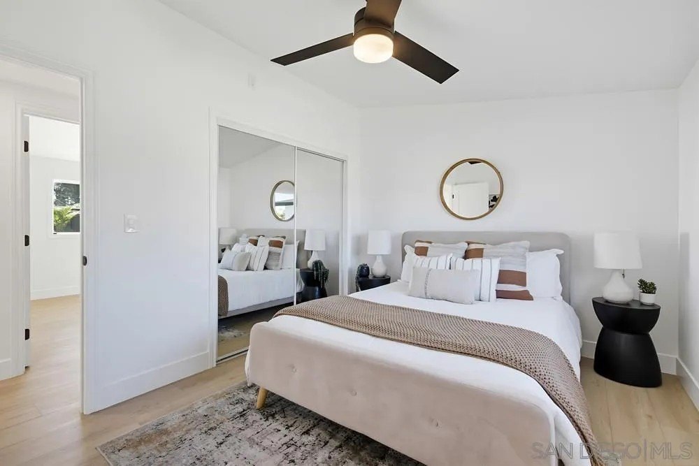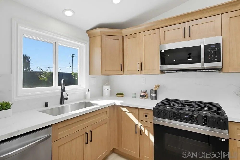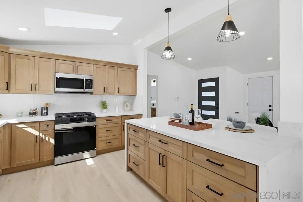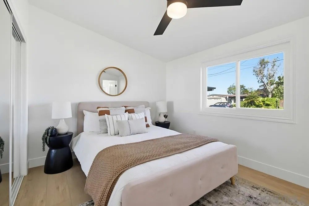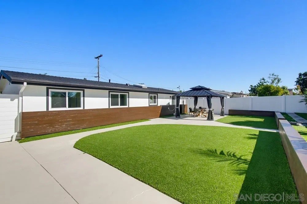 Immaculate home in highly desired, centrally located North Clairemont neighborhood. Exquisitely renovated inside and out, with high attentionto detail and quality. Almost Everything is new. State of the art, gourmet kitchen, with white oak cabinets, quartz counters, huge island and new, stainless steel appliances. Beautiful tiled bathrooms, adorned with white oak cabinets, quartz counters, back splashes and rain shower heads.New dual pane windows have been installed throughout the house. House is bright and cheery, with plenty of natural light, plus addeddrecessed lighting throughout. The powerful mini split system keeps the whole house cool in the summer and warm in the winter, plus there areceiling fans in the bedrooms and dining area. Designer luxury vinyl plank enhances the floors in all rooms. Sliding door opens to expansiveback yard, featuring a large, impressive gazebo and beautiful, nicely lansdscaped, maintenance free and water free artificial turf in the frontand backyards, which can save you $ 150 - $ 200 / mo in water and maintenance costs. Home is centrally located and conveniently close toschools, shopping, entertainment, the beach and many attractions. This truly is a one of a kind home in a very tranquil street, with very friendlyneighbors. Come make it your own !