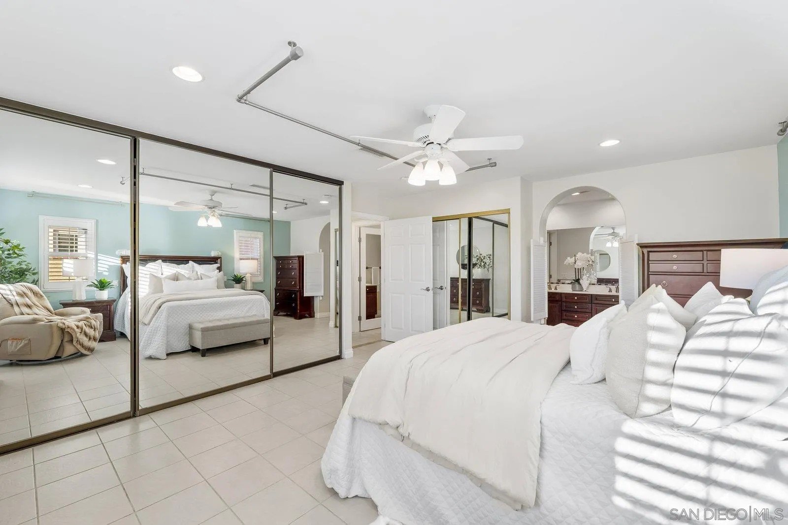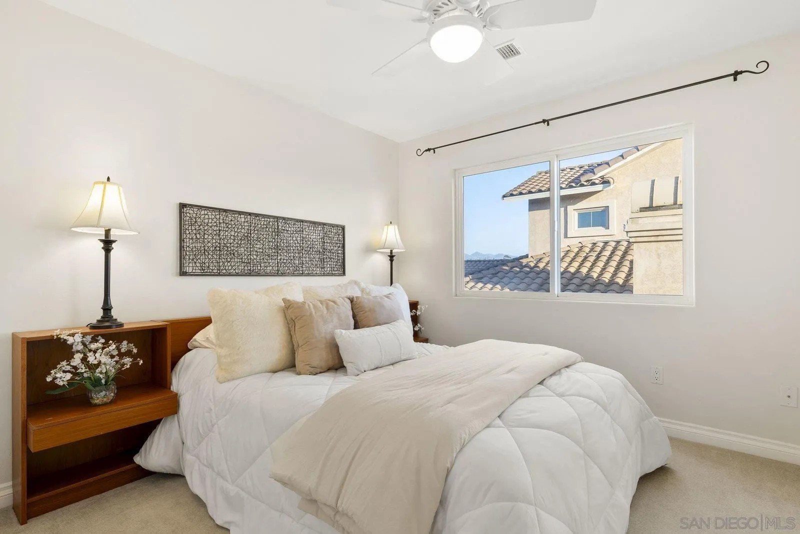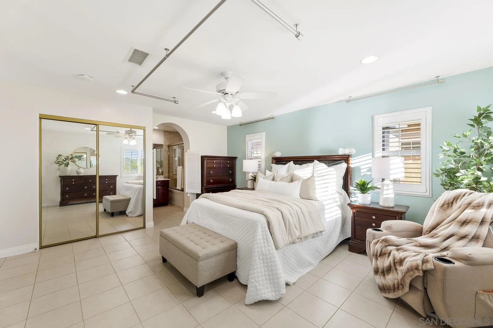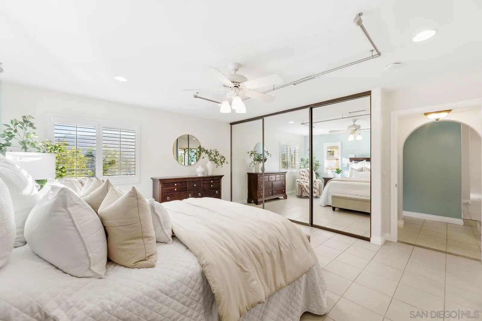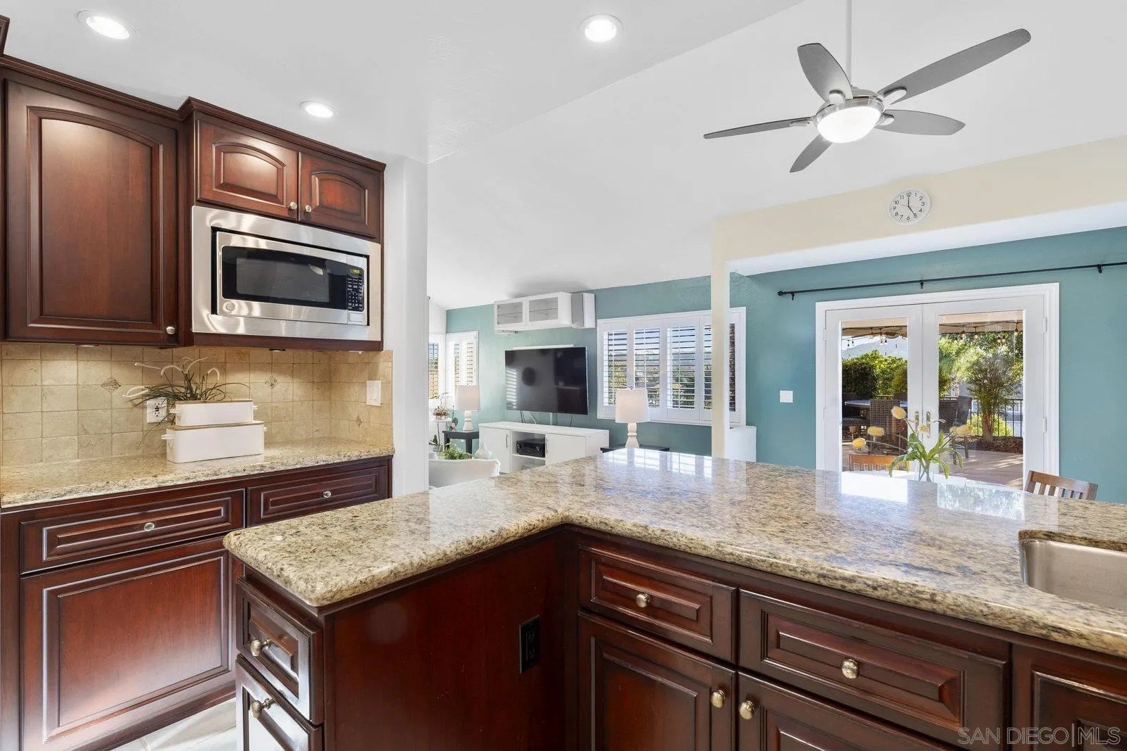 Welcome home to Rancho Bernardo and a place that is designed to make life easy, warm, and connected. With peaceful mountain views and a layout with well-designed living spaces filled with natural light and thoughtful upgrades. The owned solar system keeps things energy-efficient, while the primary bedroom on the main level makes this home ideal for multigenerational living or anyone who appreciates single-level comfort. The kitchen is a true highlight, featuring a premium Wolf stove, reverse osmosis water system, and copper piping for reliability and quality. Modern comforts continue with smart home systems and cameras, a tankless water heater, and sprinkler systems for easy care. Outdoors, enjoy the mountain views, mature fruit trees, and a lovely pergola perfect for relaxing or entertaining. Two storage sheds offer versatility for hobbies, tools, or garden essentials. With Westwood Club access, and close proximity to highly rated Poway Unified School District, shopping, dining, and freeways, this home blends comfort, practicality, and community in one inviting package. More than a place to live, this is a home that feels like it's been waiting for you - filled with light, care, and a welcoming vibe you can sense from the very first moment.
