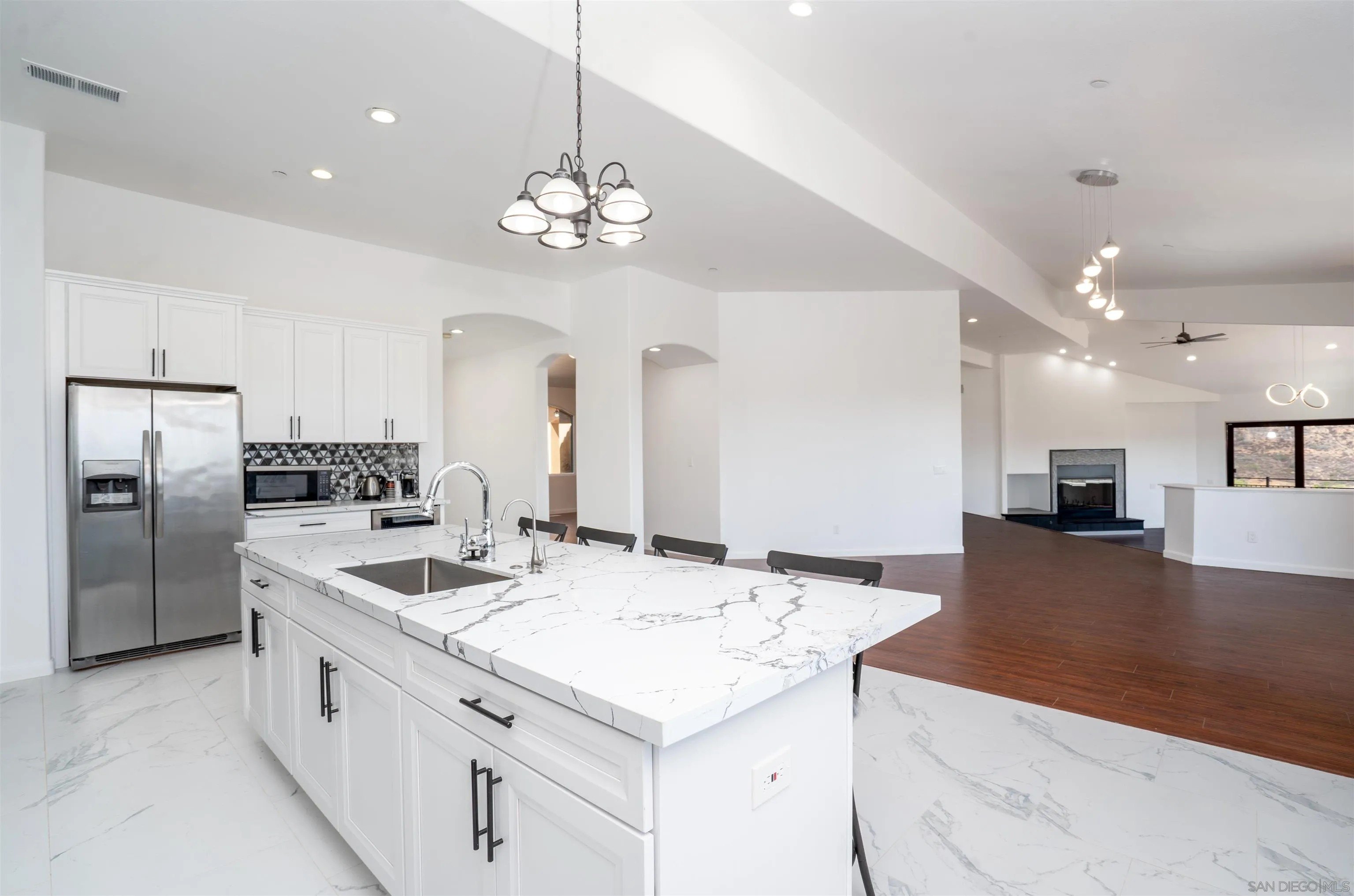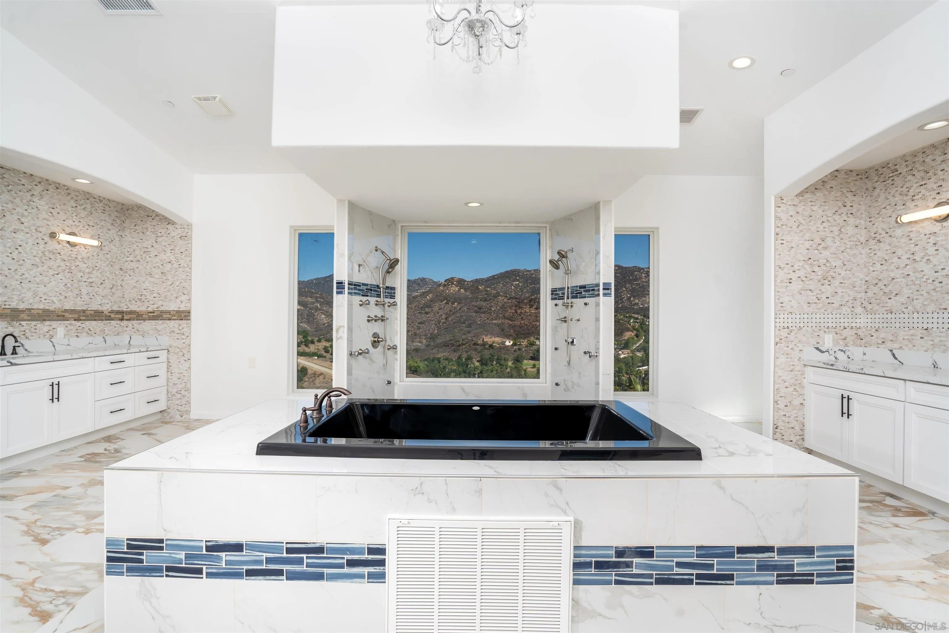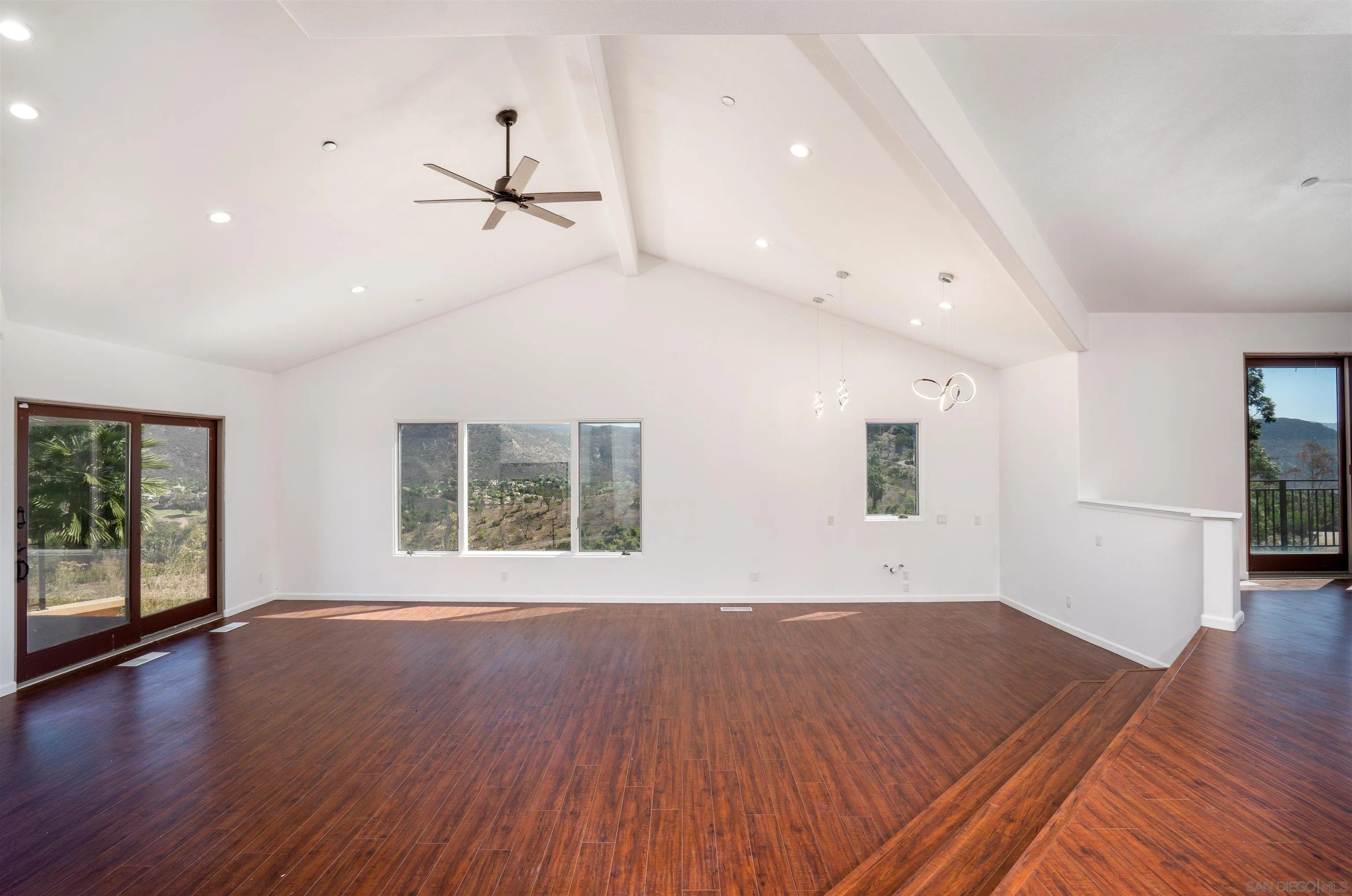 Perched on over 6 acres of rolling land, this Mediterranean-inspired estate offers sweeping valley views and a rare opportunity for elevated living. The home is beautifully framed and features dramatic vaulted ceilings, a grand rotunda entry, and finishes that reflect refined craftsmanship. Multiple fireplaces add warmth and ambiance throughout while expansive glass doors seamlessly connect indoor spaces to the natural beauty outside. The grounds are lush and private, with mature landscaping and an avocado grove that adds both tranquility and income potential. With generous driveways and parking, this residence strikes a perfect balance between peaceful seclusion and easy access to amenities. Positioned in a desirable community and built with attention to detail, this property is made for those seeking elegance and room to breathe.