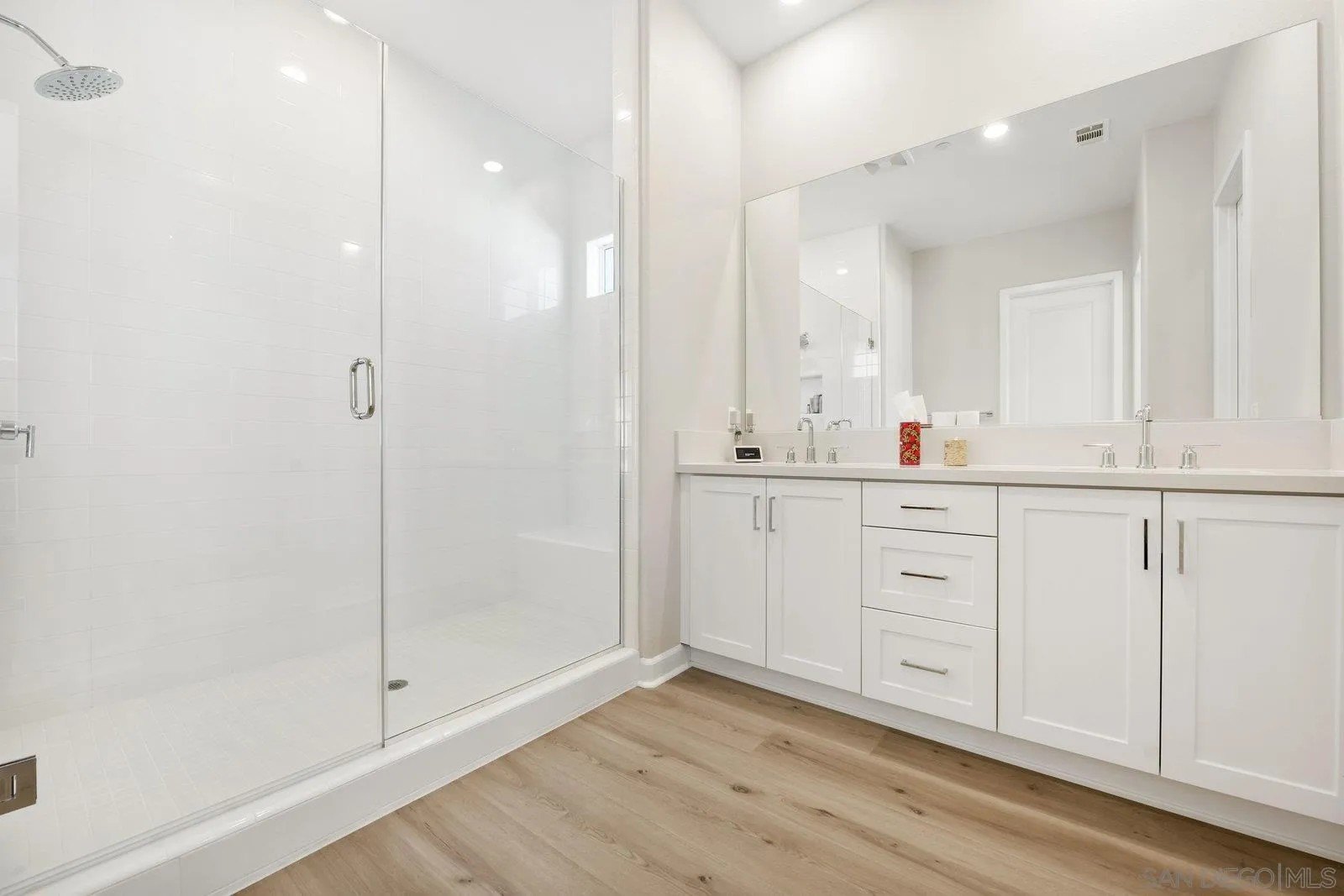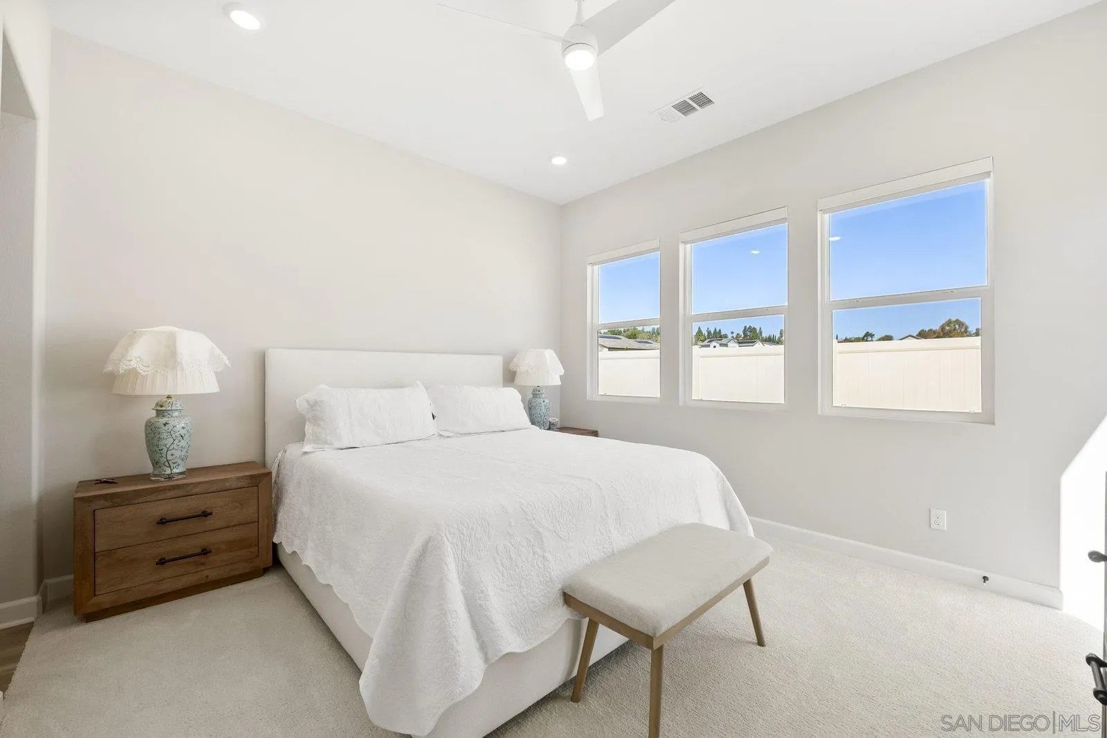 Welcome to this stunning single-story home located in the desirable gated Junipers community. This desirable "Woodlands Plan-1 Model" is designed exclusively for those 55 and better. Set on a generous lot, this upgraded residence offers modern comfort, energy efficiency, and a peaceful lifestyle. Step inside to find luxury vinyl plank flooring, creating a warm and cohesive flow. This brand new kitchen features sleek quartz countertops, new white shaker cabinets, and an open layout perfect for entertaining. Energy-conscious buyers will appreciate the additional solar panels, helping to keep utility costs low. Enjoy the privacy and space of a well-sized backyard with endless opportunities. This home is perfectly situated within the community, offering both convenience and tranquility. Don't miss your opportunity to own a move-in ready gem in one of Rancho Penasquitos' most sought-after active adult neighborhoods! Amenities include, Luxury Pool, Pickle Ball Courts, Gym, and Clubhouse for all the Social events.