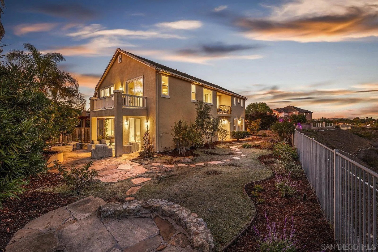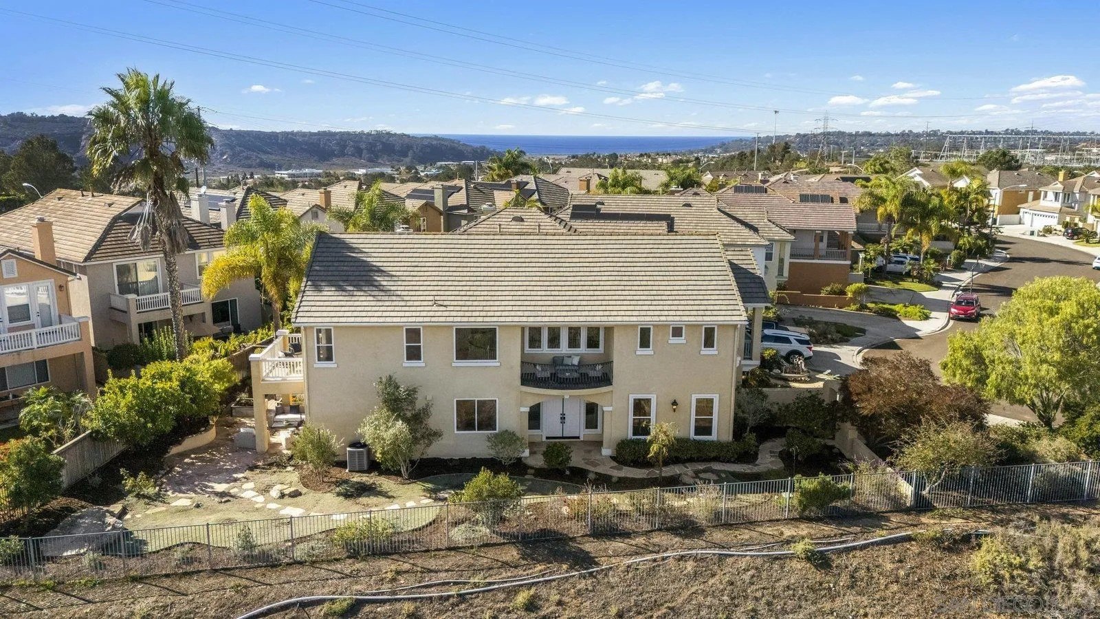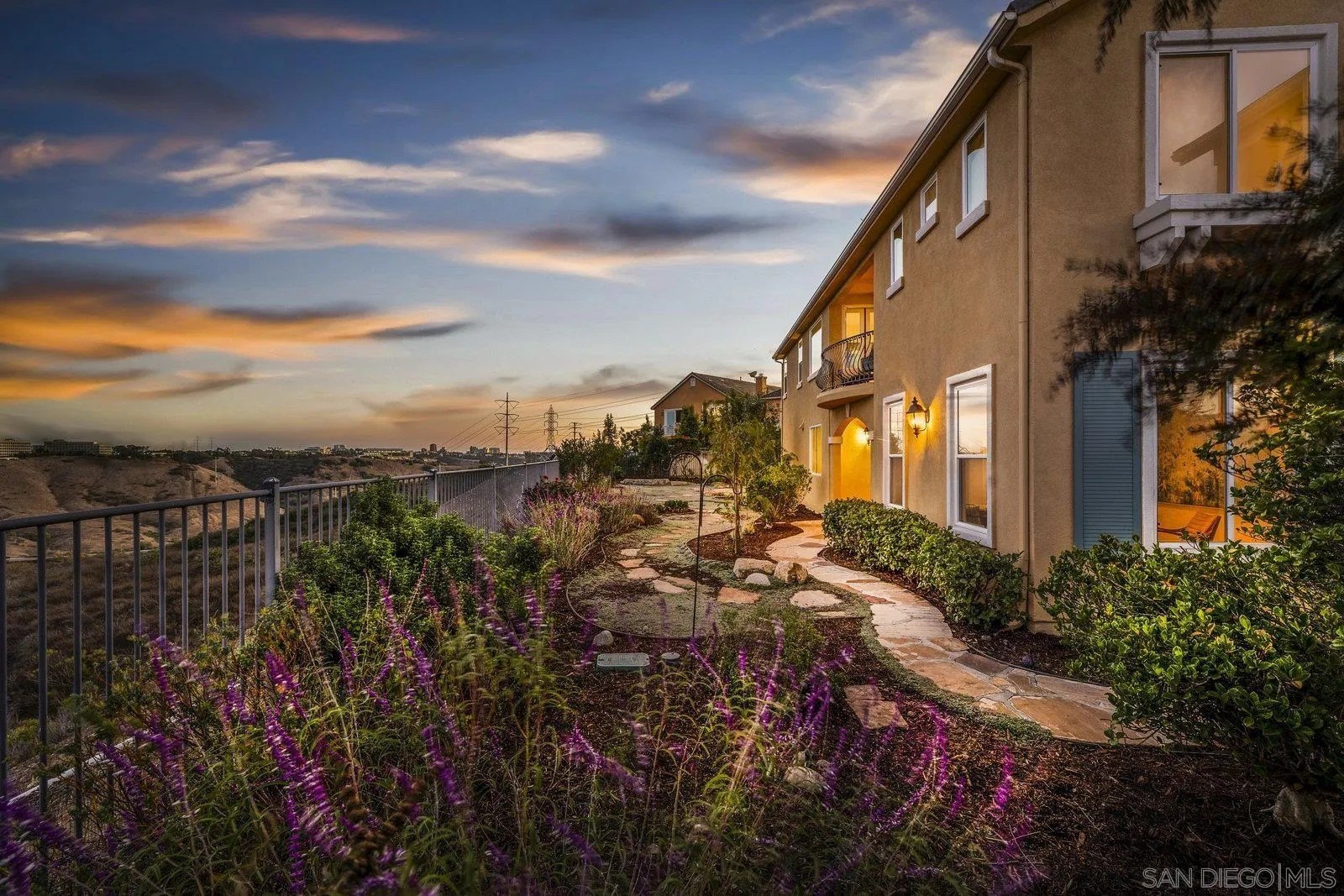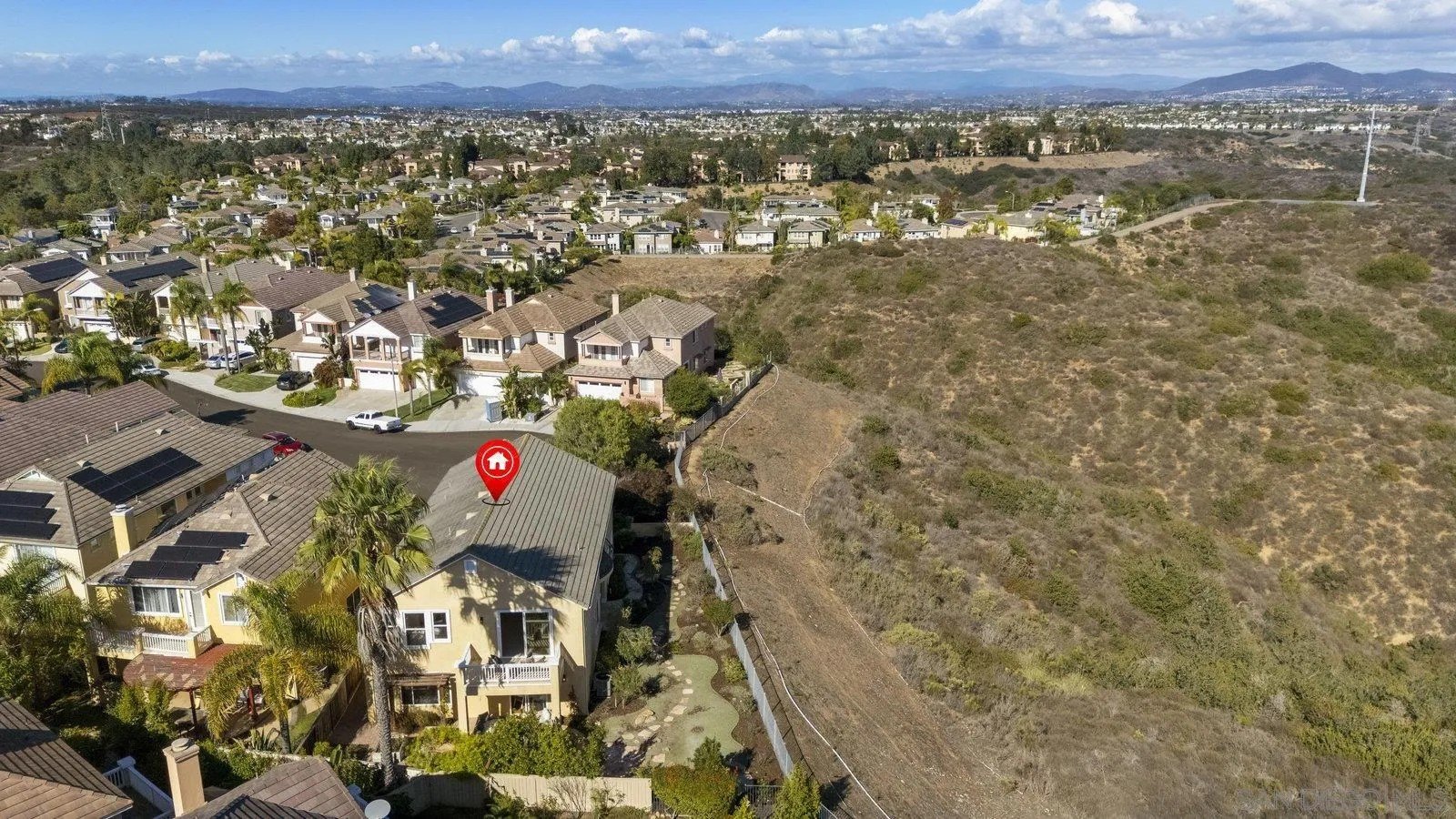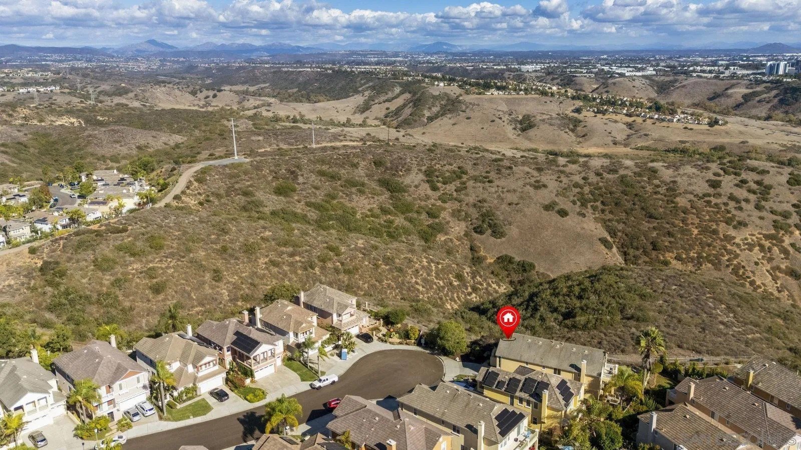 Spectacular panoramic canyon, mountain and evening light VIEWS set on an expansive 8,086 sq. ft. lot, this stunning residence offers unobstructed views from multiple decks, balconies, and thoughtfully designed outdoor living spaces. Situated at the end of the cul-de-sac.The meticulously landscaped yard provides the perfect backdrop for entertaining or simply relaxing and soaking in the scenery. Step inside to find a freshly updated interior - entirely painted in designer tones, including walls, ceilings, trim, and closets paired with brand-new carpet for a crisp, move-in-ready feel. Solid hardwood flooring. A formal entry with soaring ceilings introduces light-filled formal living and dining rooms, a convenient first-floor powder room, and a spacious office or flex space. The open-concept kitchen, breakfast area, and family room feature an oversized island, built-in desk, and custom media center. Solid cherrywood cabinetry, pull-out shelving, Bosch stainless steel appliances, and custom bookshelves enhance both style and function.