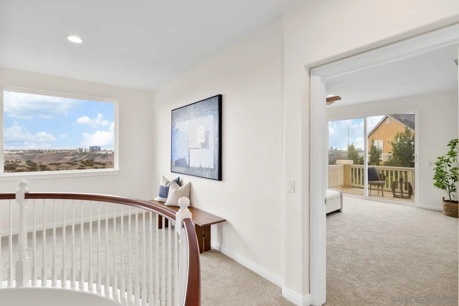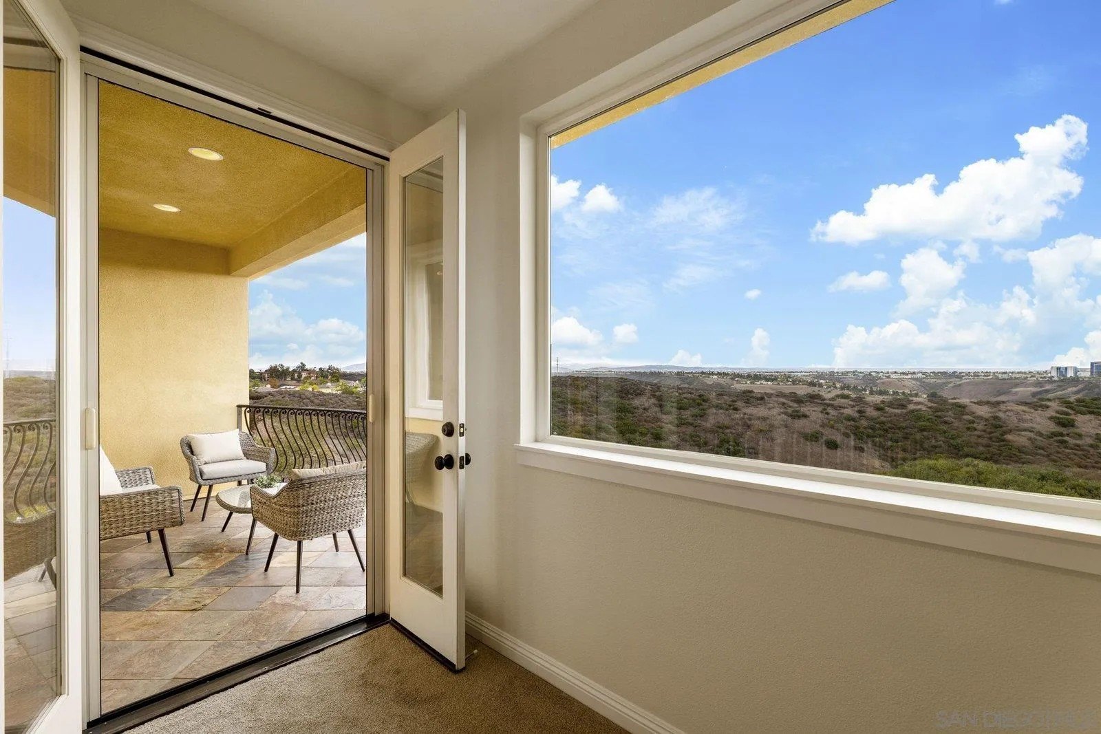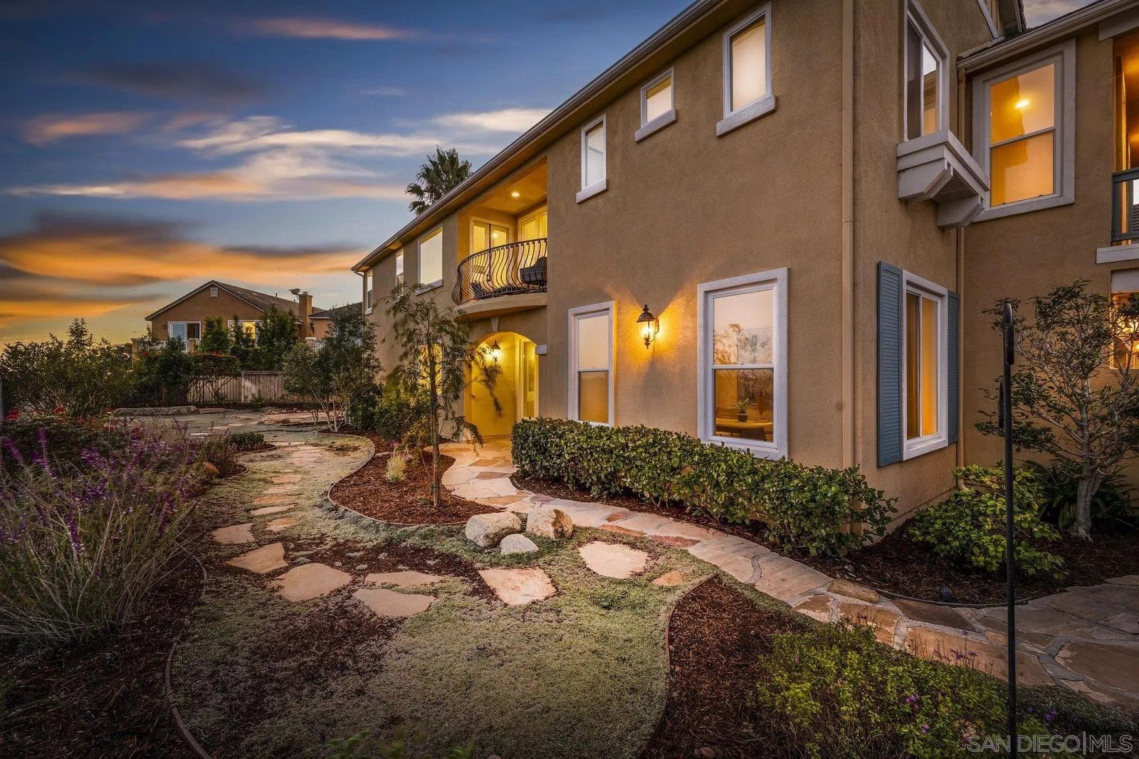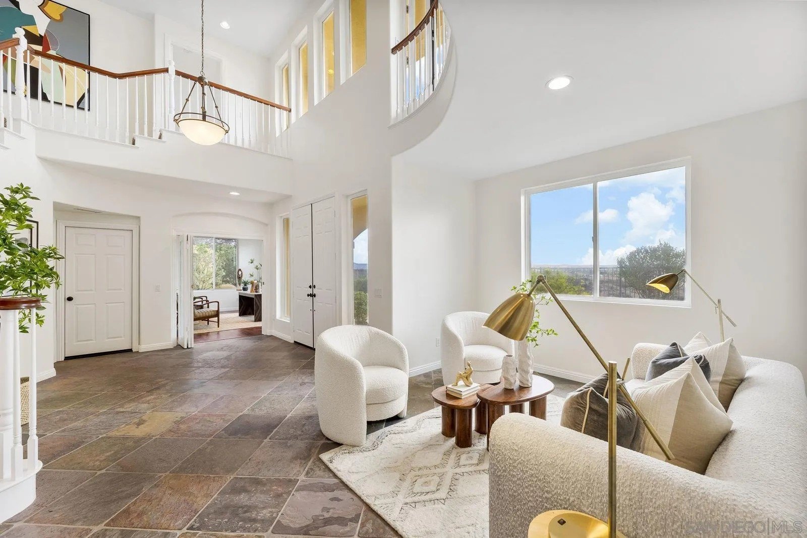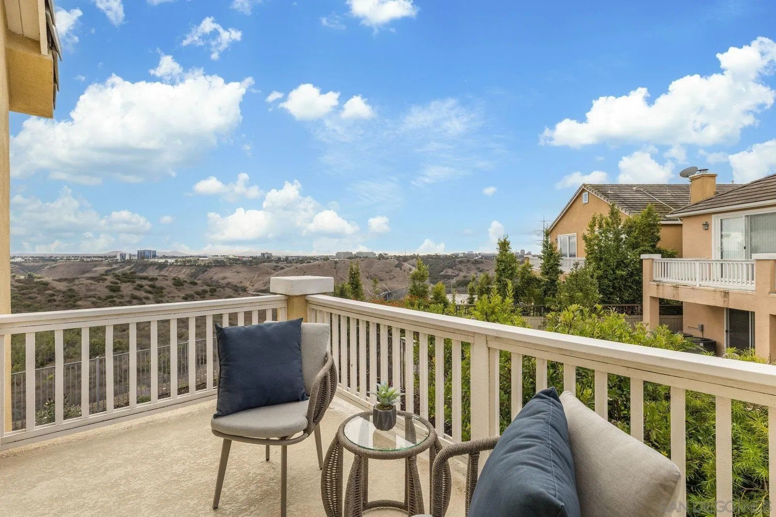 Spectacular panoramic canyon, mountain and evening light VIEWS set on an expansive 8,086 sq. ft. lot, this stunning residence offers unobstructed views from multiple decks, balconies, and thoughtfully designed outdoor living spaces. Situated at the end of the cul-de-sac.The meticulously landscaped yard provides the perfect backdrop for entertaining or simply relaxing and soaking in the scenery. Step inside to find a freshly updated interior - entirely painted in designer tones, including walls, ceilings, trim, and closets paired with brand-new carpet for a crisp, move-in-ready feel. Solid hardwood flooring. A formal entry with soaring ceilings introduces light-filled formal living and dining rooms, a convenient first-floor powder room, and a spacious office or flex space. The open-concept kitchen, breakfast area, and family room feature an oversized island, built-in desk, and custom media center. Solid cherrywood cabinetry, pull-out shelving, Bosch stainless steel appliances, and custom bookshelves enhance both style and function.