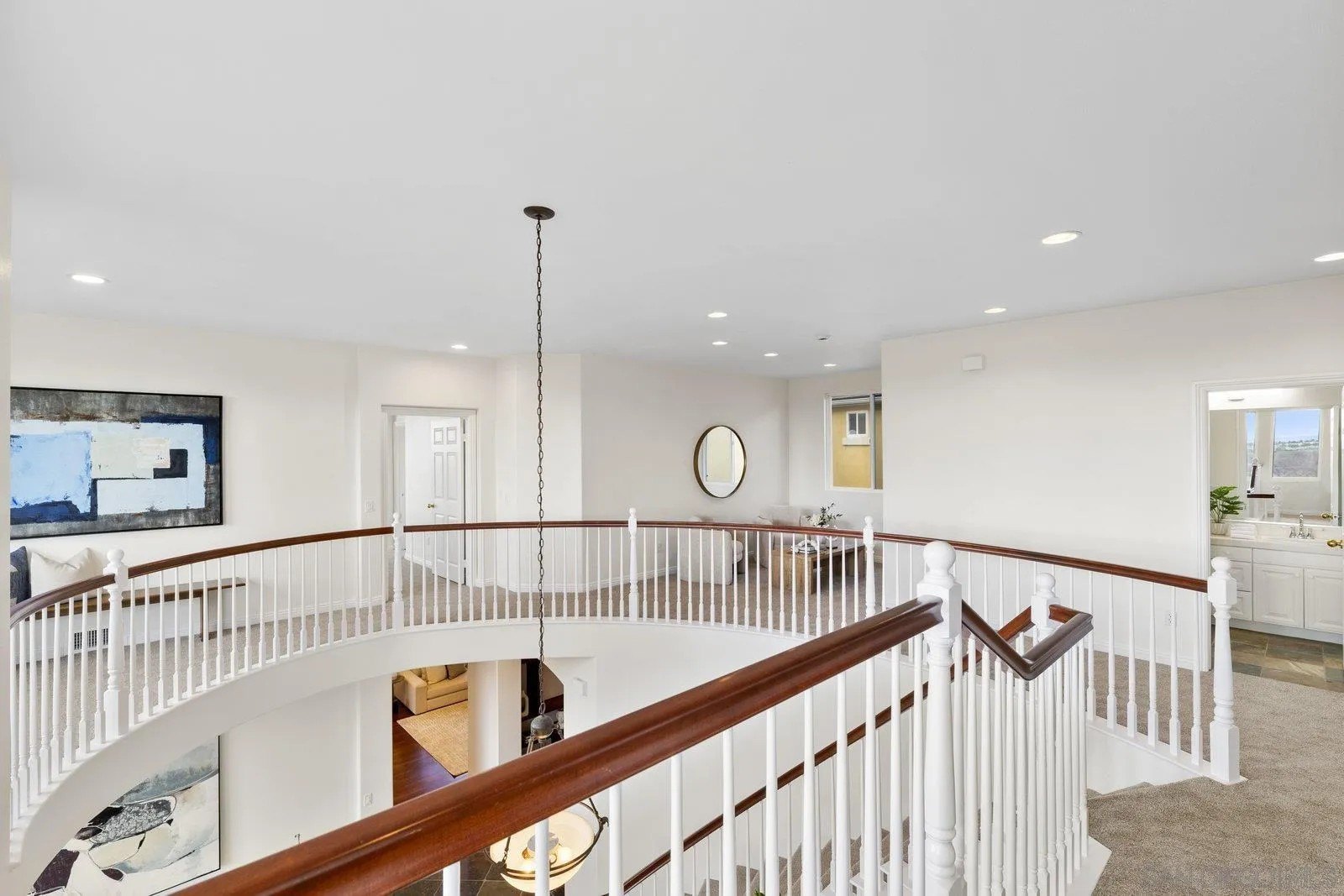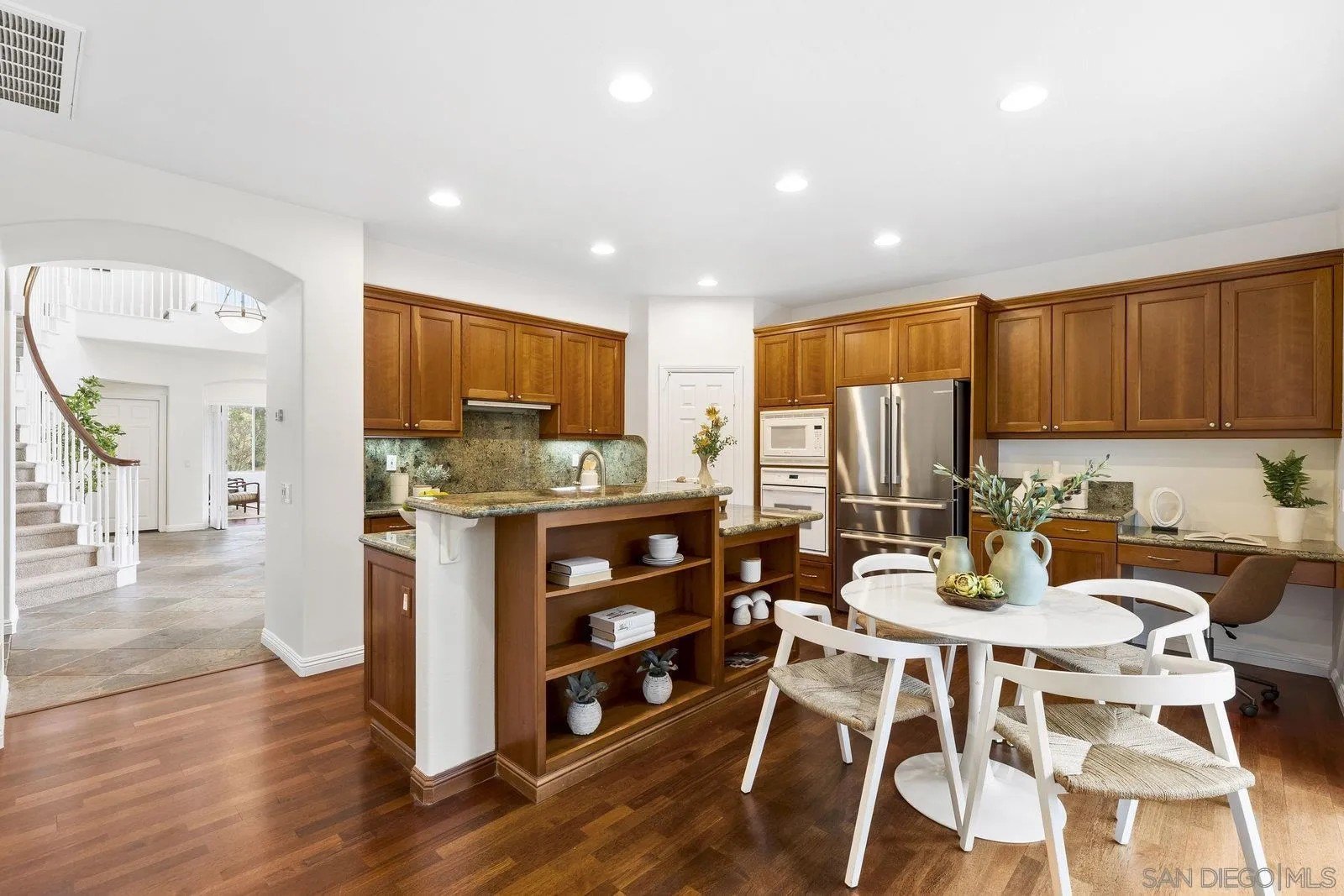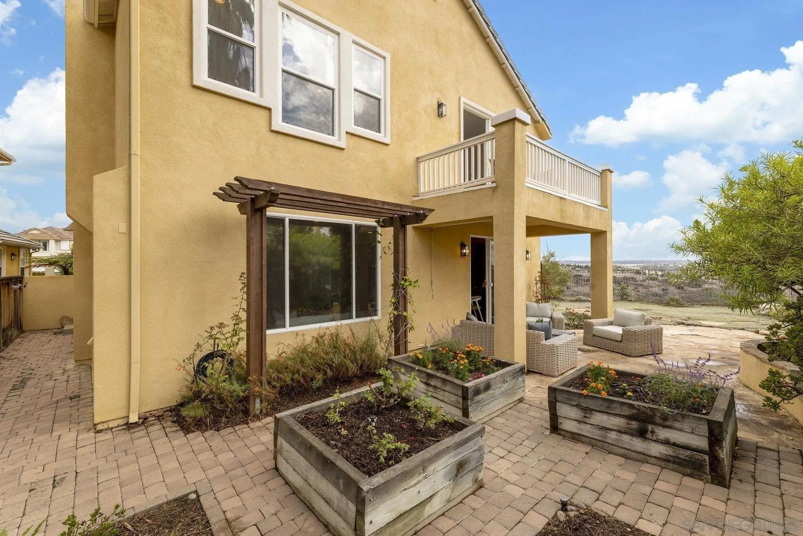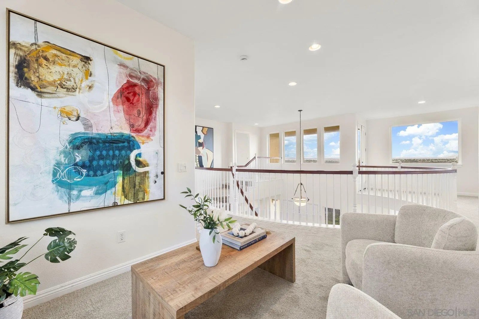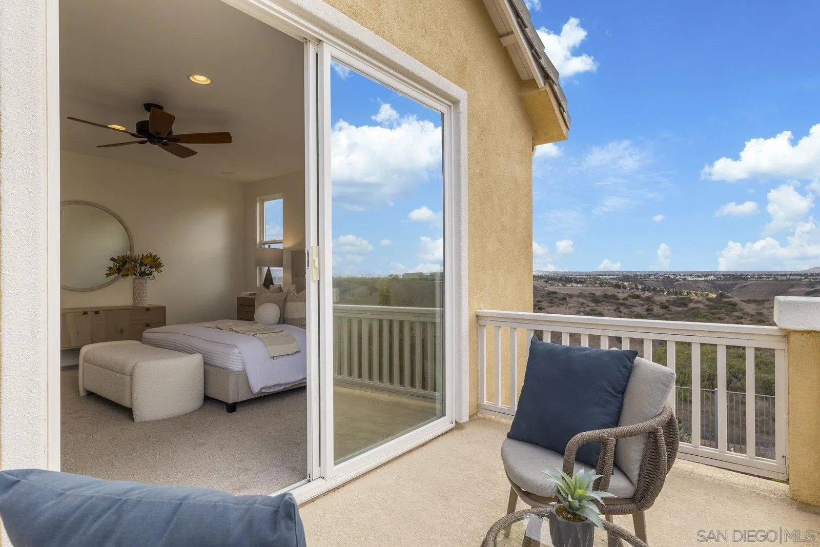 Spectacular panoramic canyon, mountain and evening light VIEWS set on an expansive 8,086 sq. ft. lot, this stunning residence offers unobstructed views from multiple decks, balconies, and thoughtfully designed outdoor living spaces. Situated at the end of the cul-de-sac.The meticulously landscaped yard provides the perfect backdrop for entertaining or simply relaxing and soaking in the scenery. Step inside to find a freshly updated interior - entirely painted in designer tones, including walls, ceilings, trim, and closets paired with brand-new carpet for a crisp, move-in-ready feel. Solid hardwood flooring. A formal entry with soaring ceilings introduces light-filled formal living and dining rooms, a convenient first-floor powder room, and a spacious office or flex space. The open-concept kitchen, breakfast area, and family room feature an oversized island, built-in desk, and custom media center. Solid cherrywood cabinetry, pull-out shelving, Bosch stainless steel appliances, and custom bookshelves enhance both style and function.