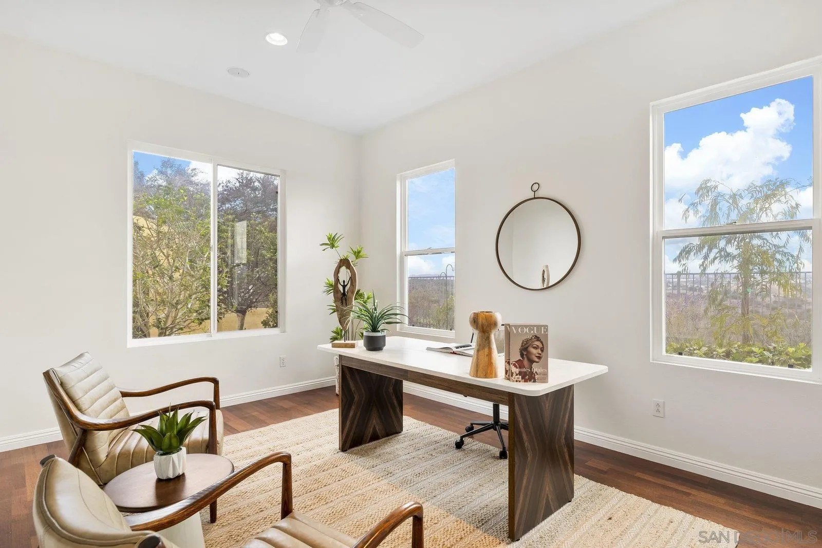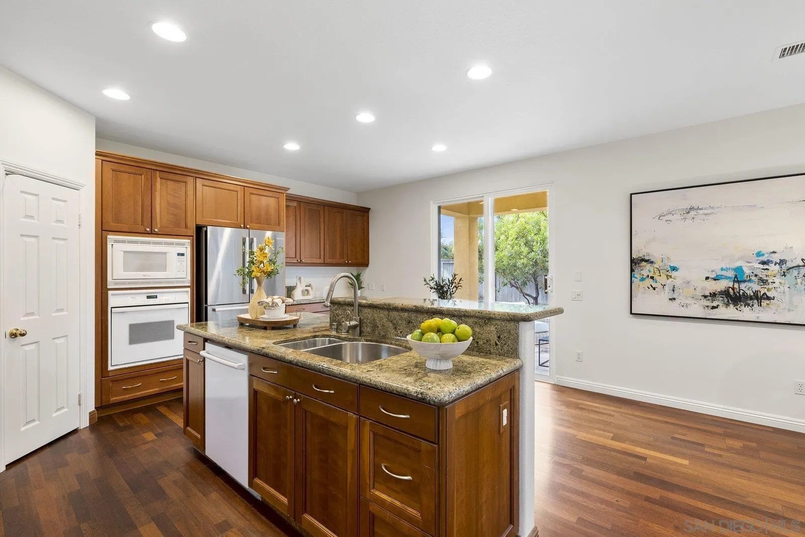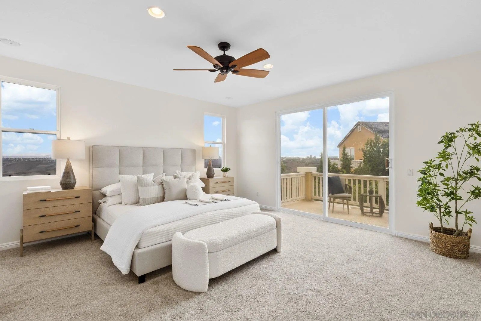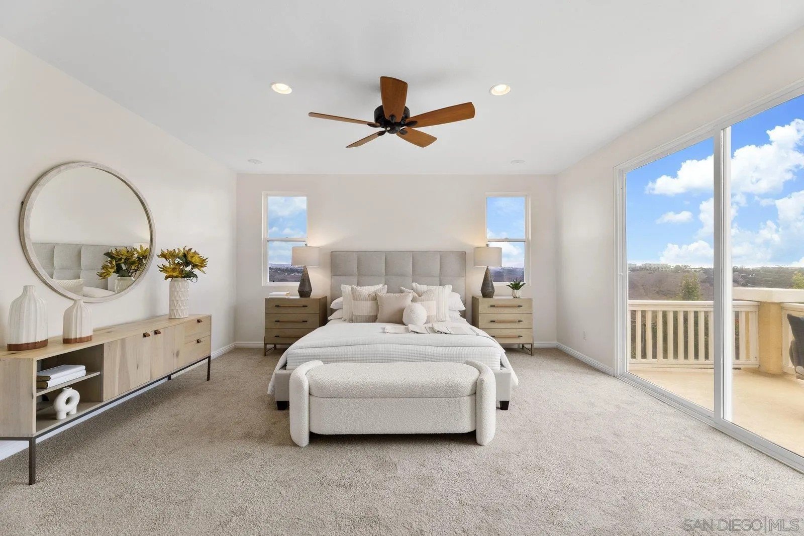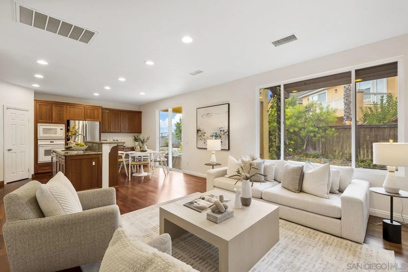 Spectacular panoramic canyon, mountain and evening light VIEWS set on an expansive 8,086 sq. ft. lot, this stunning residence offers unobstructed views from multiple decks, balconies, and thoughtfully designed outdoor living spaces. Situated at the end of the cul-de-sac.The meticulously landscaped yard provides the perfect backdrop for entertaining or simply relaxing and soaking in the scenery. Step inside to find a freshly updated interior - entirely painted in designer tones, including walls, ceilings, trim, and closets paired with brand-new carpet for a crisp, move-in-ready feel. Solid hardwood flooring. A formal entry with soaring ceilings introduces light-filled formal living and dining rooms, a convenient first-floor powder room, and a spacious office or flex space. The open-concept kitchen, breakfast area, and family room feature an oversized island, built-in desk, and custom media center. Solid cherrywood cabinetry, pull-out shelving, Bosch stainless steel appliances, and custom bookshelves enhance both style and function.