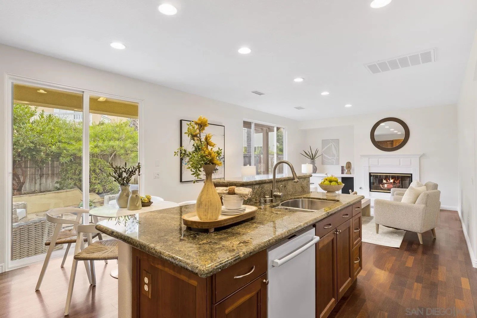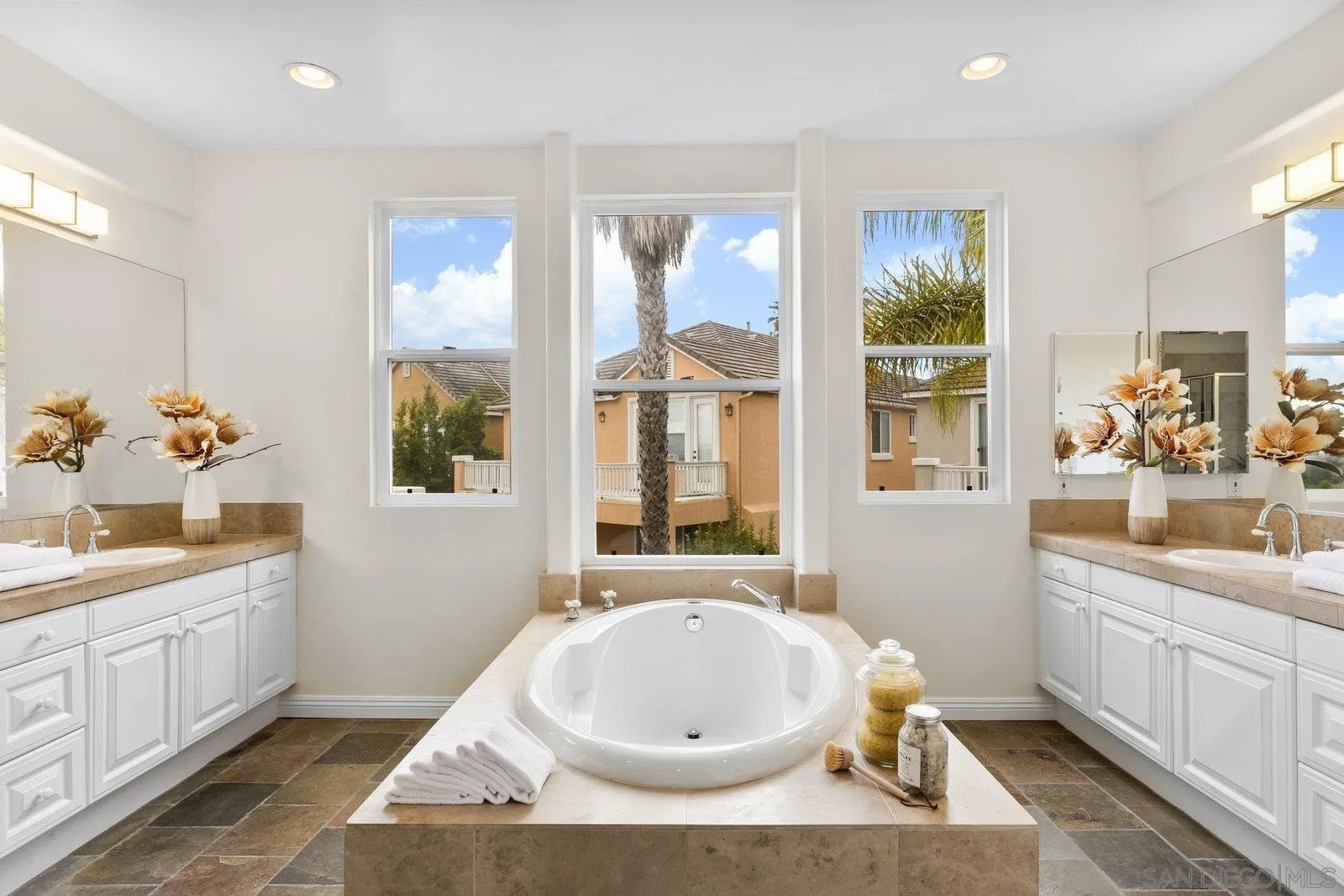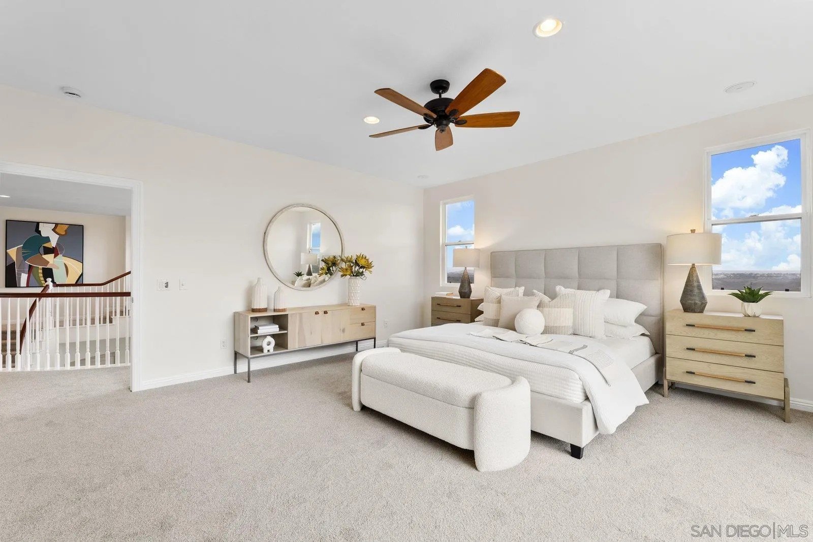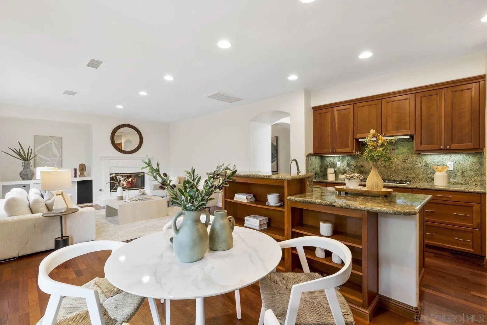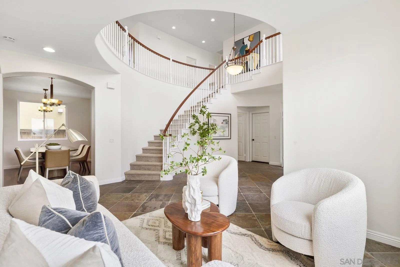 Spectacular panoramic canyon, mountain and evening light VIEWS set on an expansive 8,086 sq. ft. lot, this stunning residence offers unobstructed views from multiple decks, balconies, and thoughtfully designed outdoor living spaces. Situated at the end of the cul-de-sac.The meticulously landscaped yard provides the perfect backdrop for entertaining or simply relaxing and soaking in the scenery. Step inside to find a freshly updated interior - entirely painted in designer tones, including walls, ceilings, trim, and closets paired with brand-new carpet for a crisp, move-in-ready feel. Solid hardwood flooring. A formal entry with soaring ceilings introduces light-filled formal living and dining rooms, a convenient first-floor powder room, and a spacious office or flex space. The open-concept kitchen, breakfast area, and family room feature an oversized island, built-in desk, and custom media center. Solid cherrywood cabinetry, pull-out shelving, Bosch stainless steel appliances, and custom bookshelves enhance both style and function.