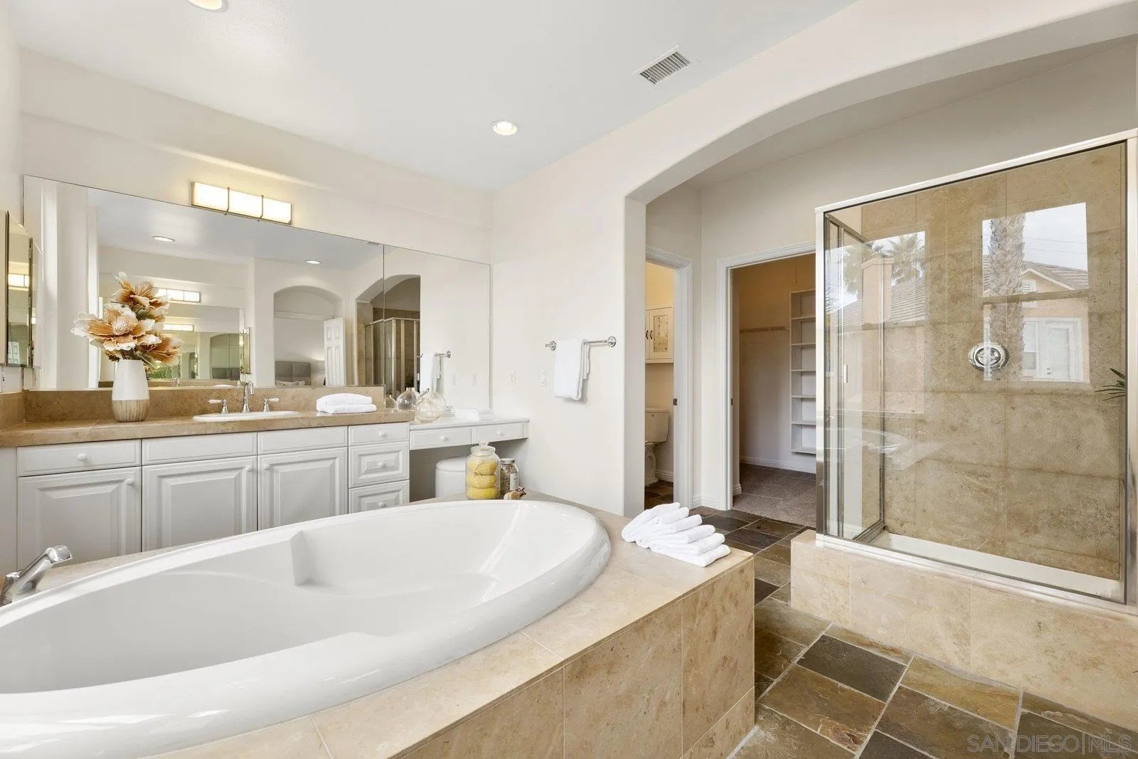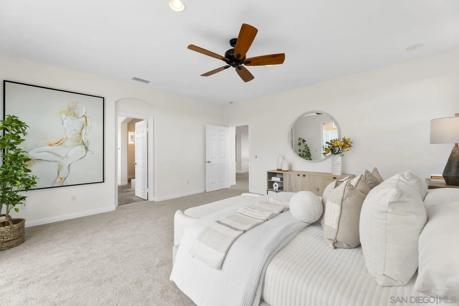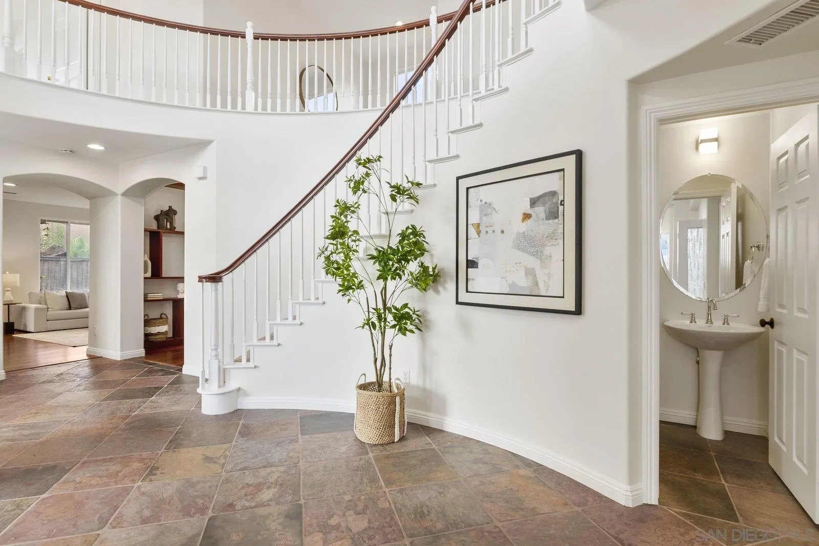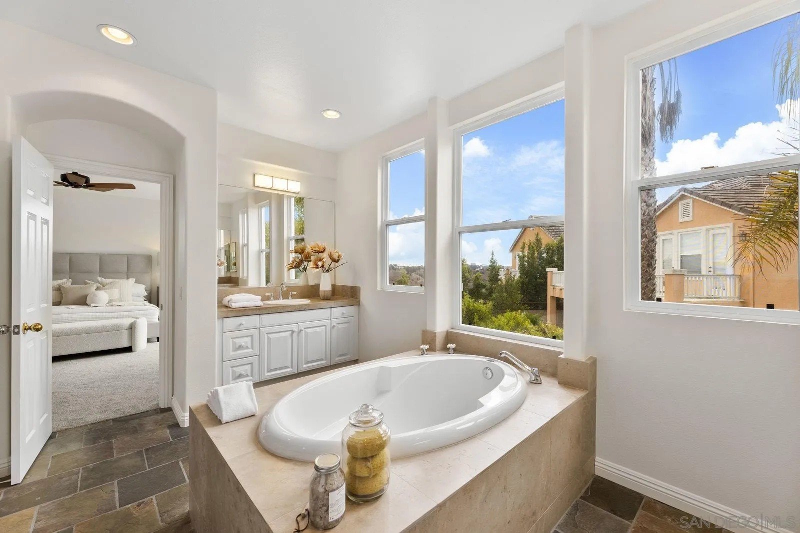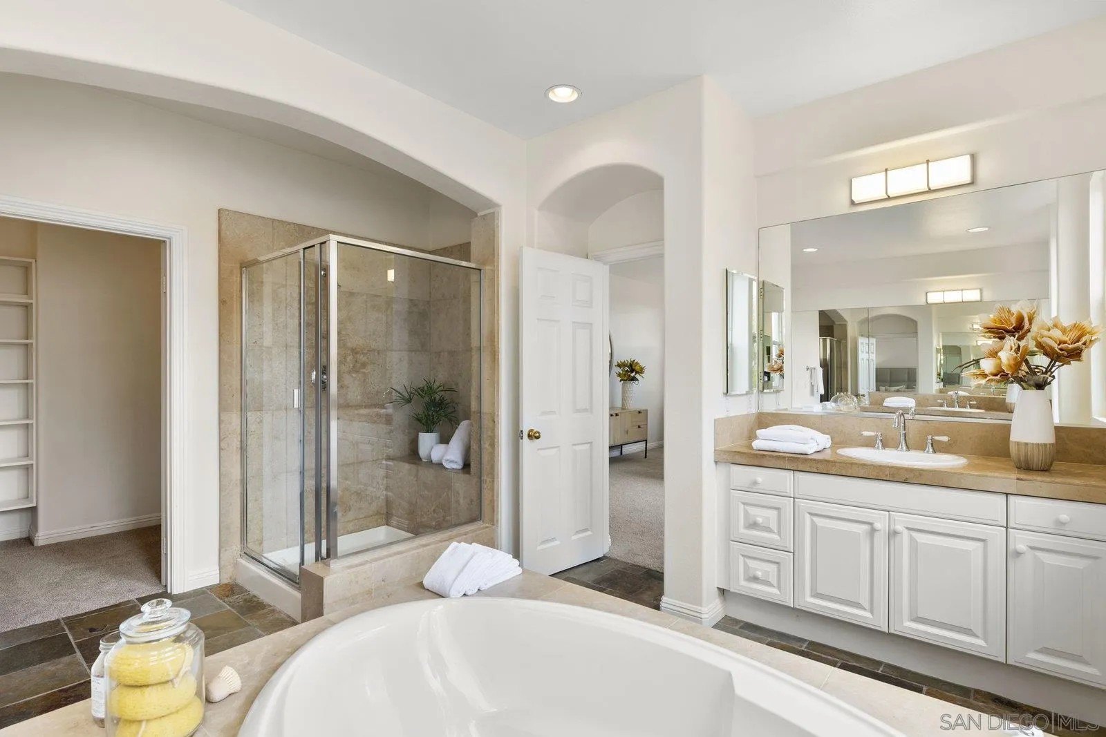 Spectacular panoramic canyon, mountain and evening light VIEWS set on an expansive 8,086 sq. ft. lot, this stunning residence offers unobstructed views from multiple decks, balconies, and thoughtfully designed outdoor living spaces. Situated at the end of the cul-de-sac.The meticulously landscaped yard provides the perfect backdrop for entertaining or simply relaxing and soaking in the scenery. Step inside to find a freshly updated interior - entirely painted in designer tones, including walls, ceilings, trim, and closets paired with brand-new carpet for a crisp, move-in-ready feel. Solid hardwood flooring. A formal entry with soaring ceilings introduces light-filled formal living and dining rooms, a convenient first-floor powder room, and a spacious office or flex space. The open-concept kitchen, breakfast area, and family room feature an oversized island, built-in desk, and custom media center. Solid cherrywood cabinetry, pull-out shelving, Bosch stainless steel appliances, and custom bookshelves enhance both style and function.