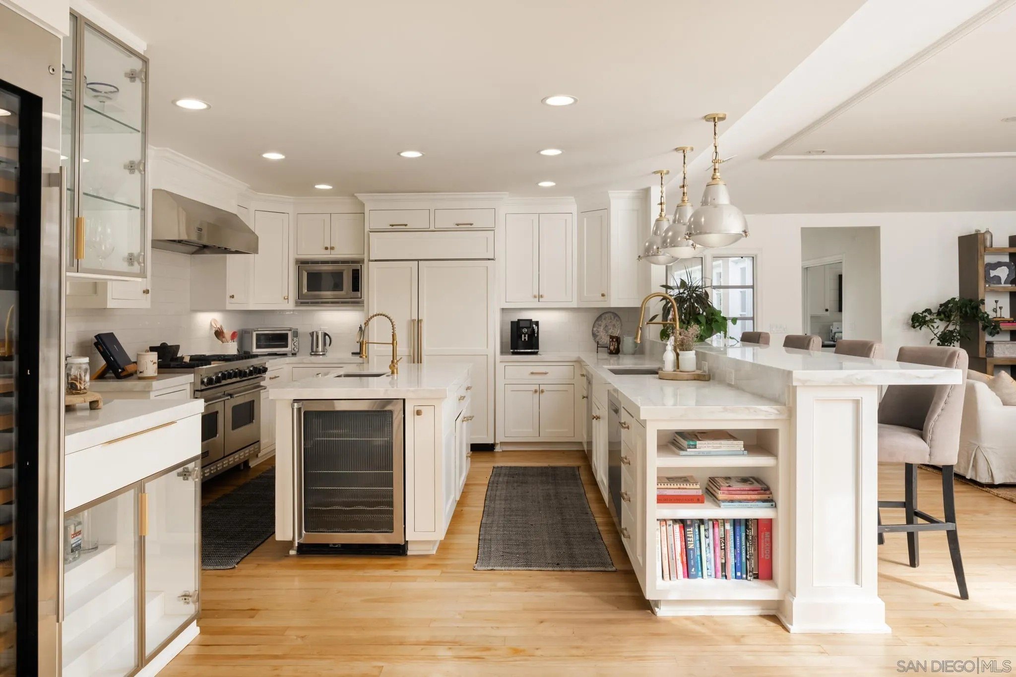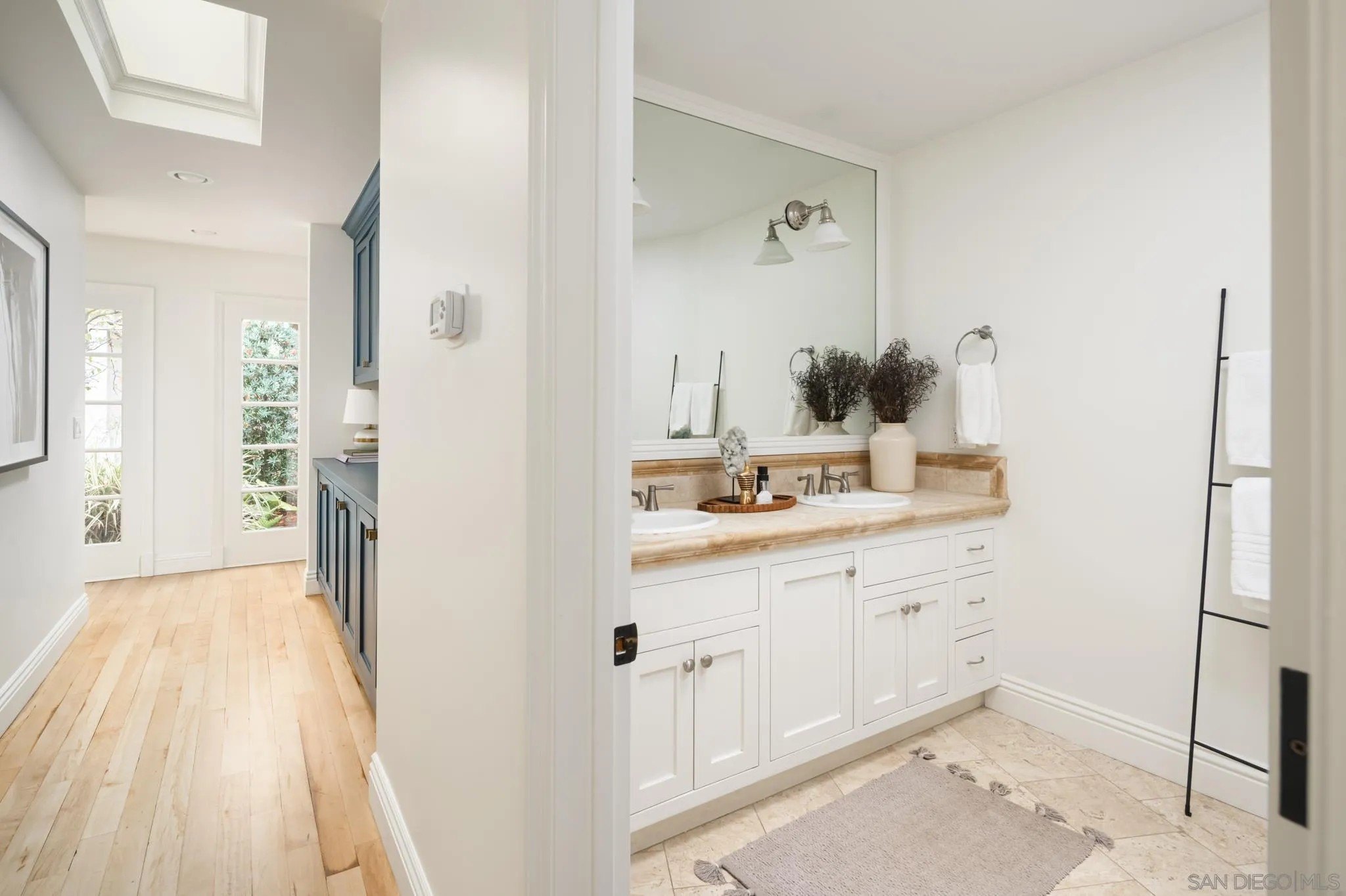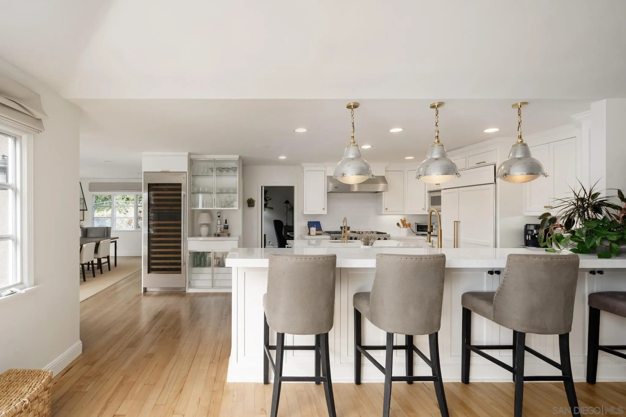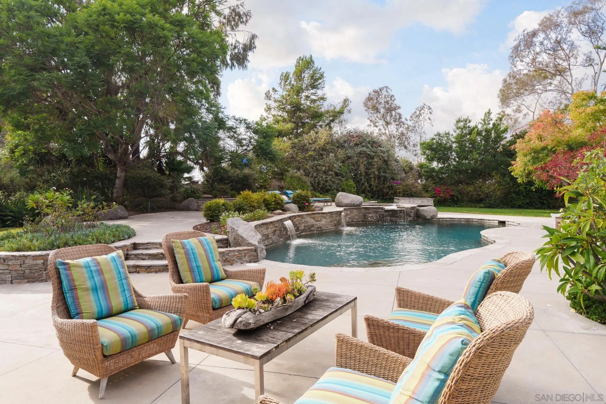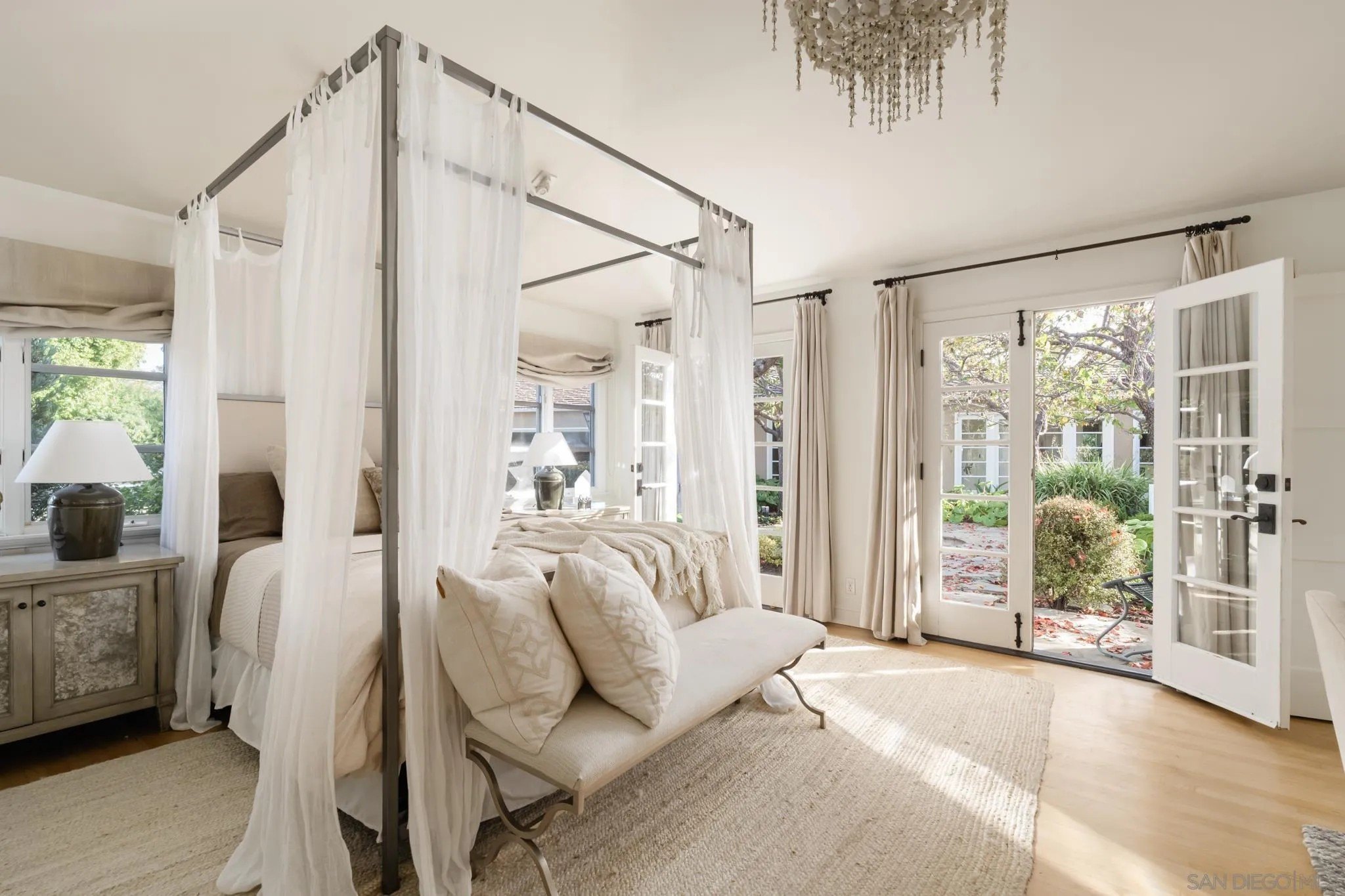 Ideally located on one of the most sought-after streets in the renowned Rancho Santa Fe Covenant, this enchanting single-level home seamlessly combines charm, sophistication, and functionality. Your private oasis awaits with an expansive backyard that borders acres of open space, impeccably groomed trails, and just a short walk to the Rancho Santa Fe Village, the acclaimed Roger Rowe Elementary and Middle schools and the Rancho Santa Fe Golf and Tennis clubs. You will immediately fall in love with the beauty of the lush landscape and the inviting private courtyard entry. The home boasts a freshly remodeled kitchen, and exquisite reclaimed maple floors throughout. It has a sun-drenched great room, and a gourmet eat-in kitchen, that seamlessly open onto the pool and entertaining areas with westerly views and gentle ocean breezes. The interior design includes 5 bedrooms, 4.5 baths and floor-to-ceiling windows and French doors that seamlessly caters to the indoor/outdoor living you can enjoy year-round in San Diego.