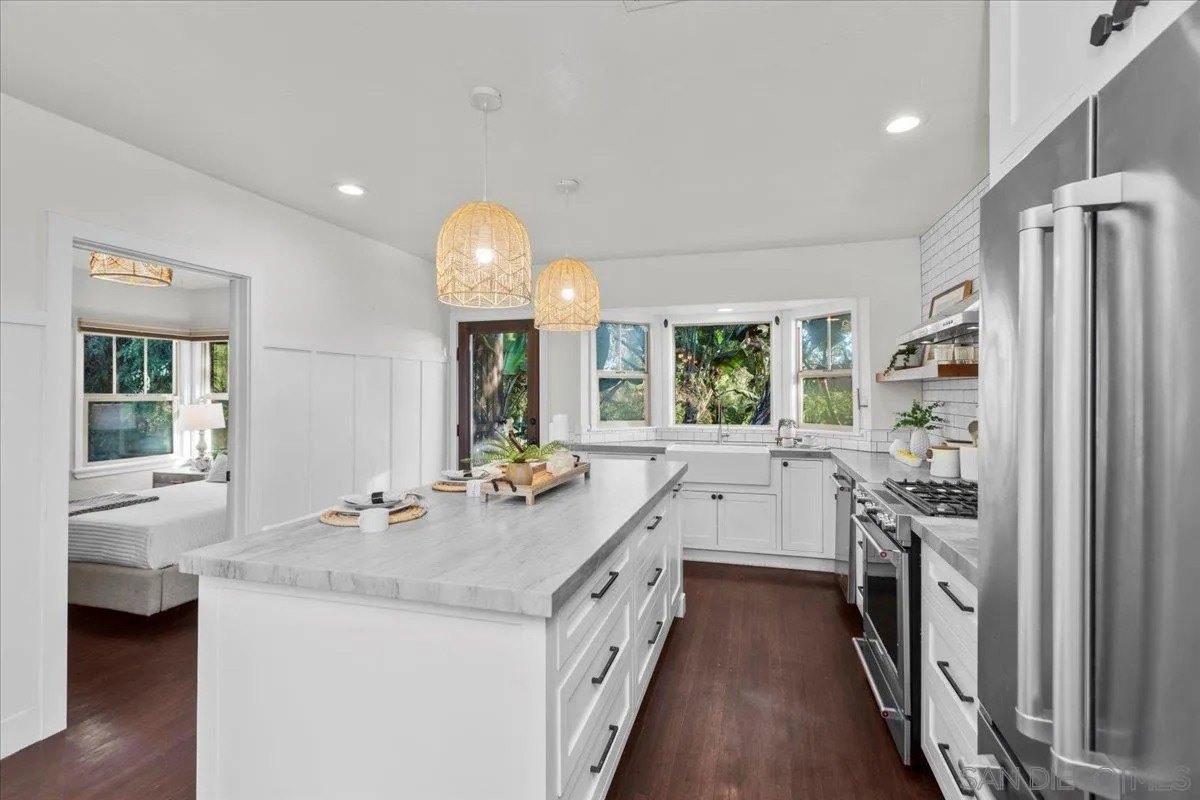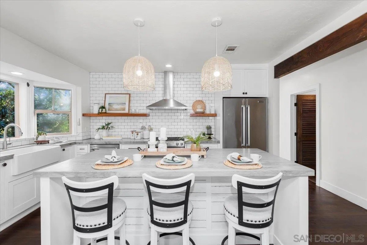 Seller will entertain offers between $993,900 - $1,043,900. Private sanctuary behind a gated, fully enclosed .55 acre property with a mature, abundant & diverse landscape; set on an elevated lot, with serene & lush views surrounding the home, bathed in natural light. Thoughtfully crafted, charming modern farmhouse with quality, designer updates: including a fully remodeled kitchen with high-end, marbled, matte finish quartzite countertops, an oversized dining island, subway tile backsplash & stainless steel appliances. Perfect for indoor/outdoor entertaining as the kitchen opens to a large deck with a tranquil setting. Updated bathrooms with elegant, marble countertop vanities & a marbled tiled shower in the primary suite. Timeless touches with stained, real hardwood floors; exposed wood beams. Other updates include OWNED SOLAR; Central HVAC; and a BONUS finished shed (not included Sq.Ft.) with windows, utility & new laminate wood floors: perfect for an outside office, playroom or yoga/fitness space. A homesteader's dream, perfect for gardening, raising chickens & animals, brimming with fruit trees: lemon, orange, grapefruit, pomegranate, dragon fruit & more! Newer hot water heater, electrical panel, vinyl windows, and updated attic insulation & ducting. Multiple, usable areas to expand & build ADUs for additional living or income. This unique beauty is the lifestyle upgrade you've been searching for!