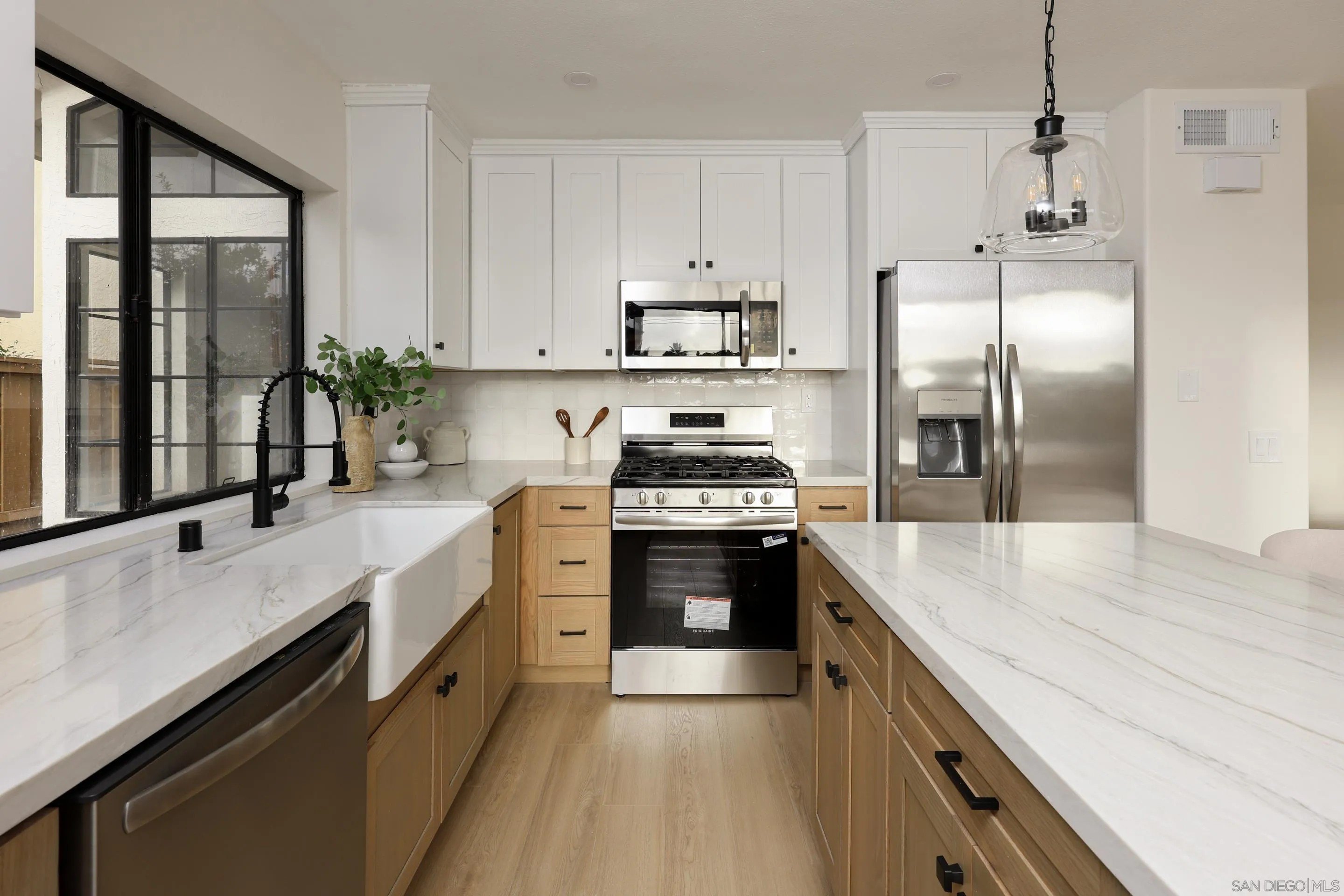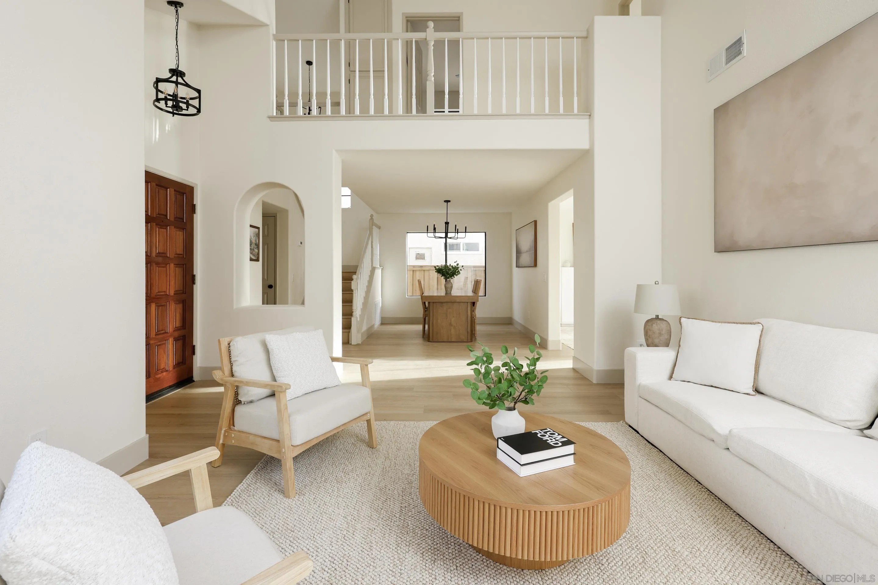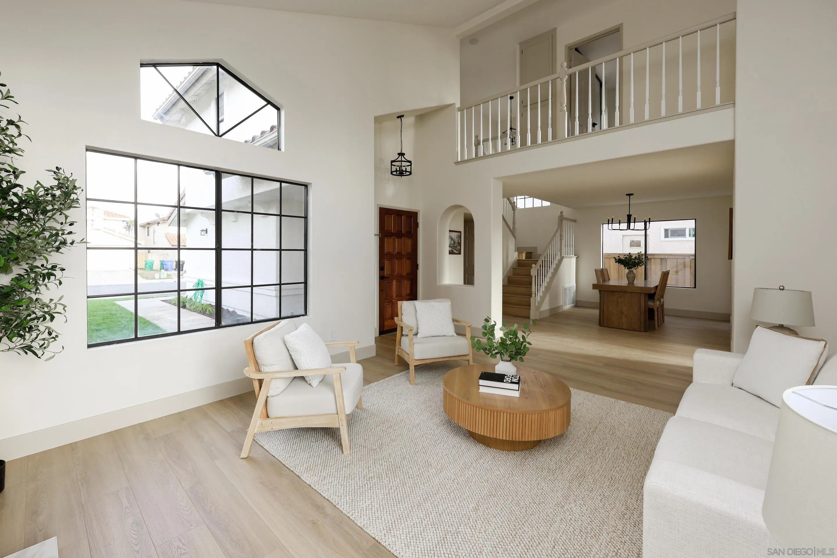 Views, Views, Views! Nestled on a gorgeous canyon in highly sought-after West Mira Mesa, this stunning home boasts first- and second-story views. A grand entrance with soaring vaulted ceilings welcomes you inside, where natural light fills the open layout. The European-style kitchen is an entertainer's paradise with sweeping canyon views. Upstairs, the oversized primary suite is a true retreat with panoramic views, a huge walk-in closet, and an additional second closet! Beyond style and comfort, the home sits in coveted West Mira Mesa school districts and minutes from top retail. With beautifully remodeled interiors and an enviable location, this property truly has it all.