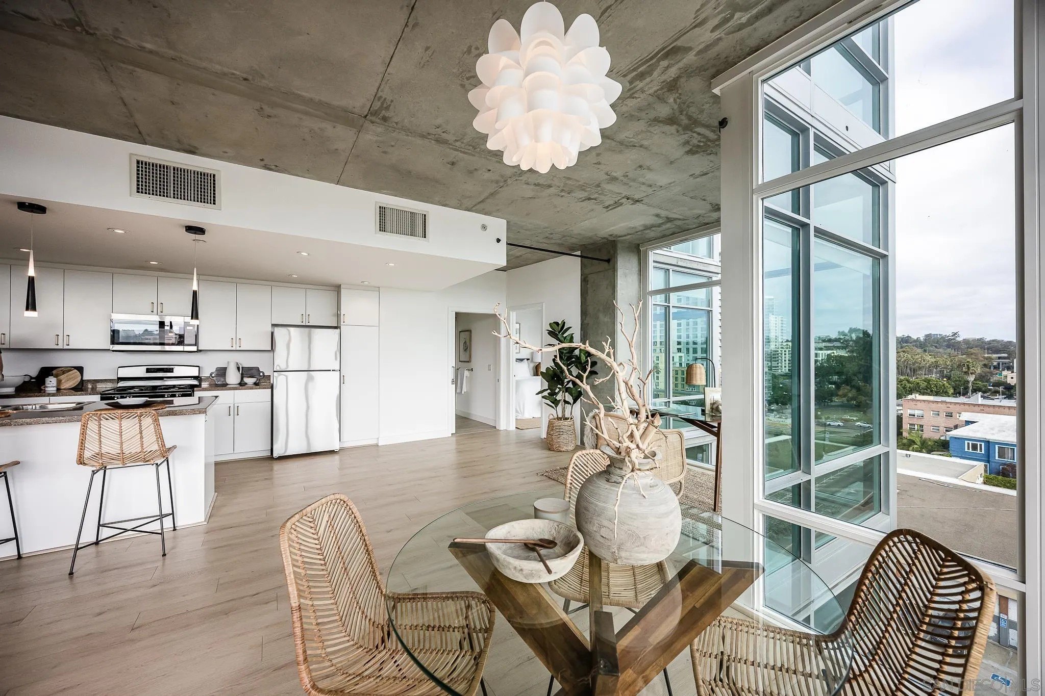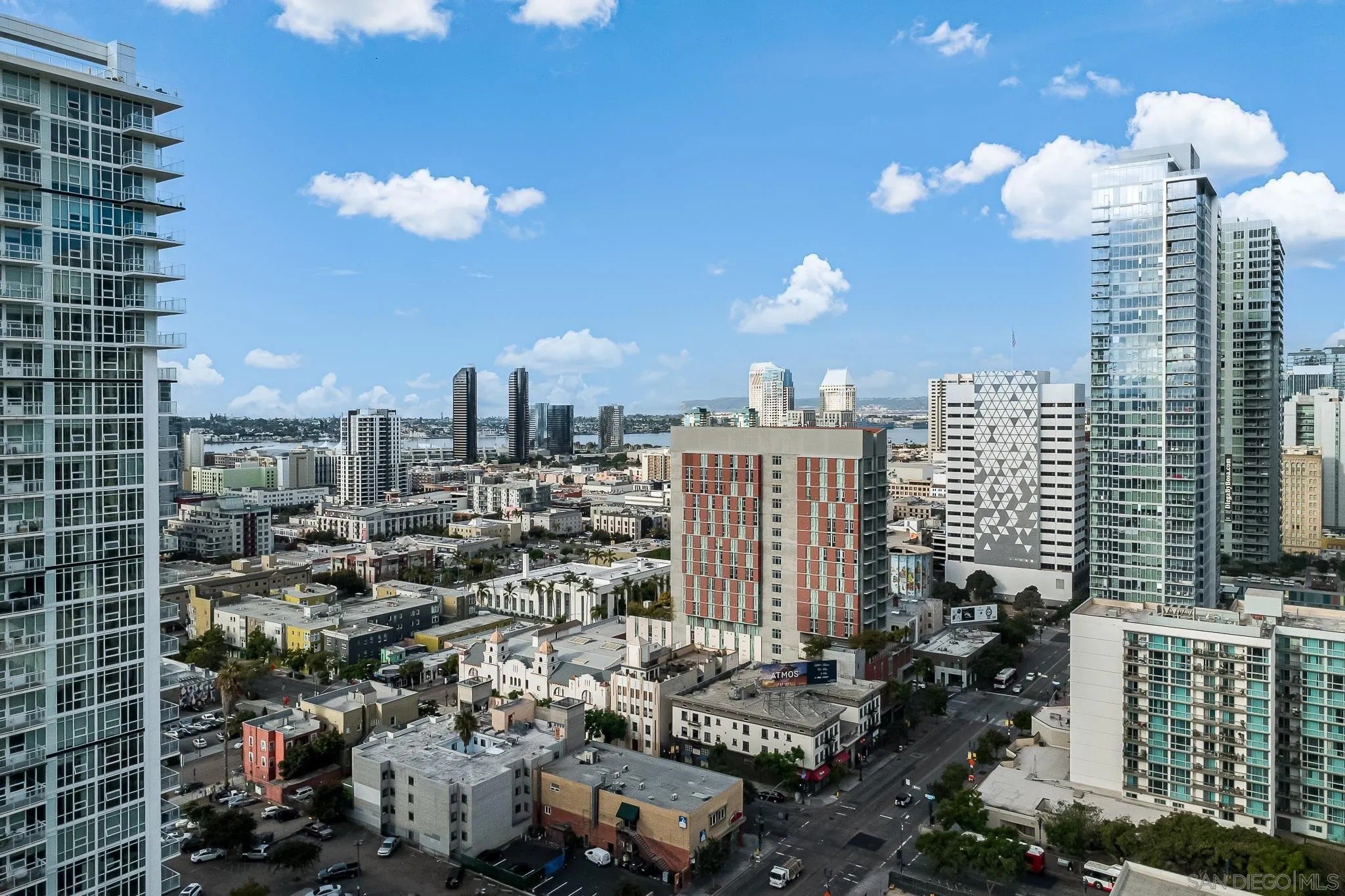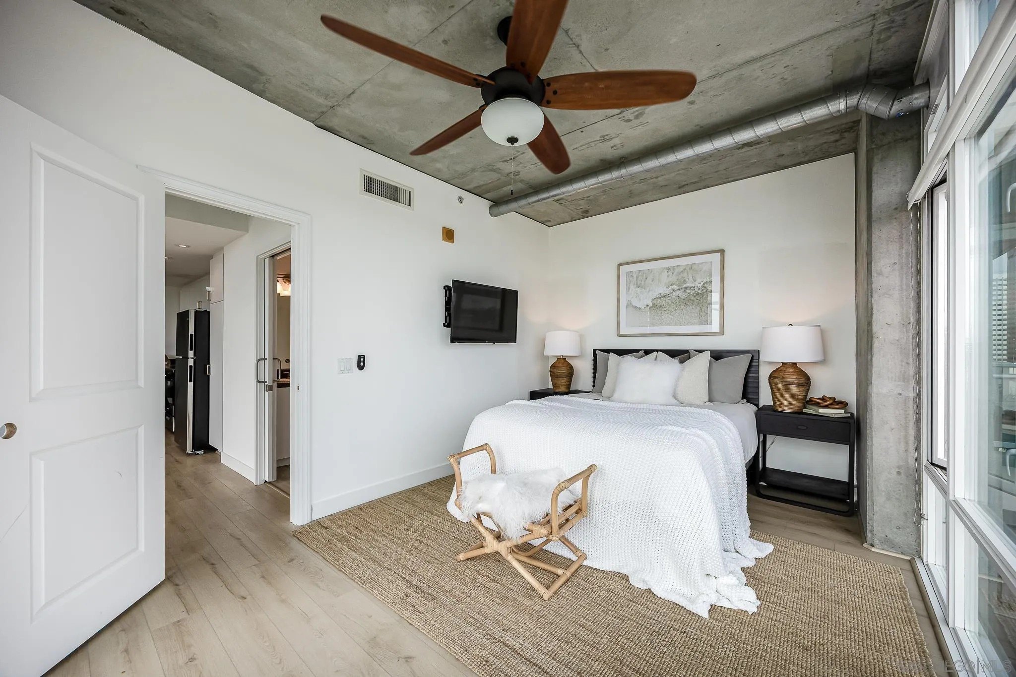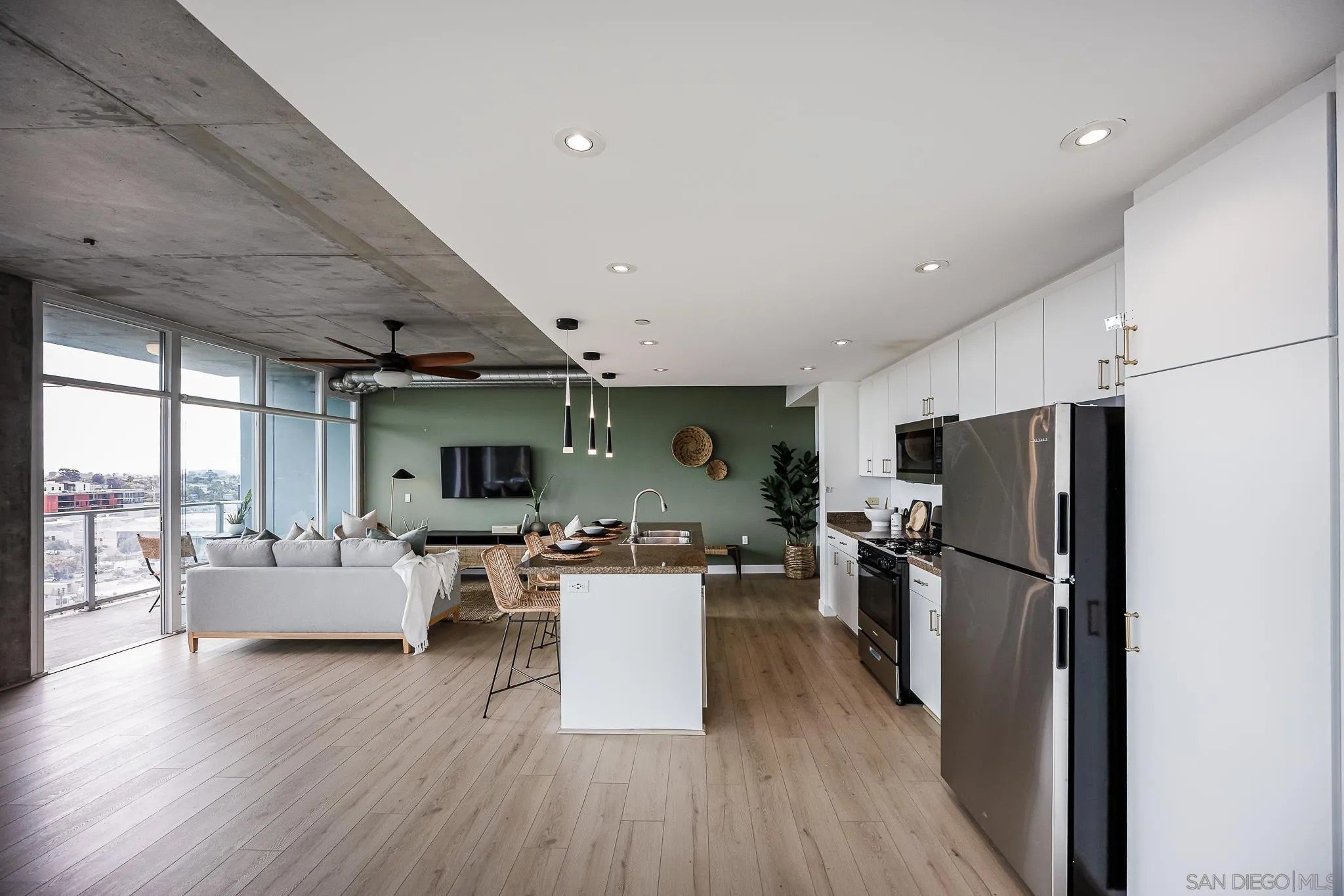 Located in the vibrant East Village neighborhood of Downtown San Diego, this completely updated condo is situated in an ideal location, just minutes from the Gaslamp District and everything downtown San Diego has to offer. This modern-style condo offers an amazing layout for entertaining, featuring an open-concept living room and kitchen with an 8th floor east-facing balcony. Recent upgrades include new luxury vinyl flooring, paint throughout, and all new appliances. Mere steps from public transportation, easy access to all major freeways while only minutes from top-rated beaches. Entering the home, you will be met with in-unit laundry, hallway linen closet, and a full bathroom. Exposed ducting, cement ceilings and an optional floor plan make for an amazing live/work scenario. Two tandem parking spaces, central heating, and air, roof top barbecues and hot tub, along with 2nd-floor gym. Perfect for a first-time buyer, investor or someone looking to downsize.