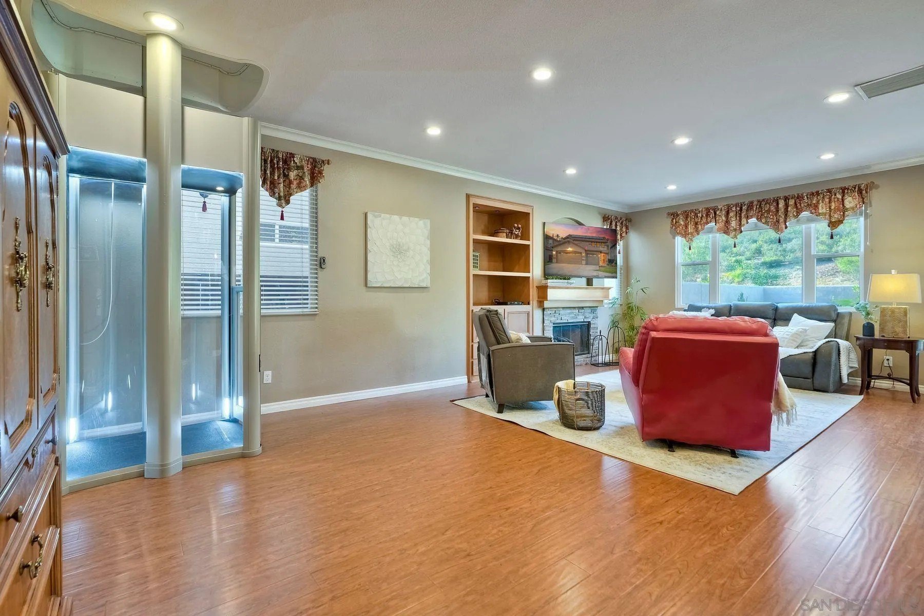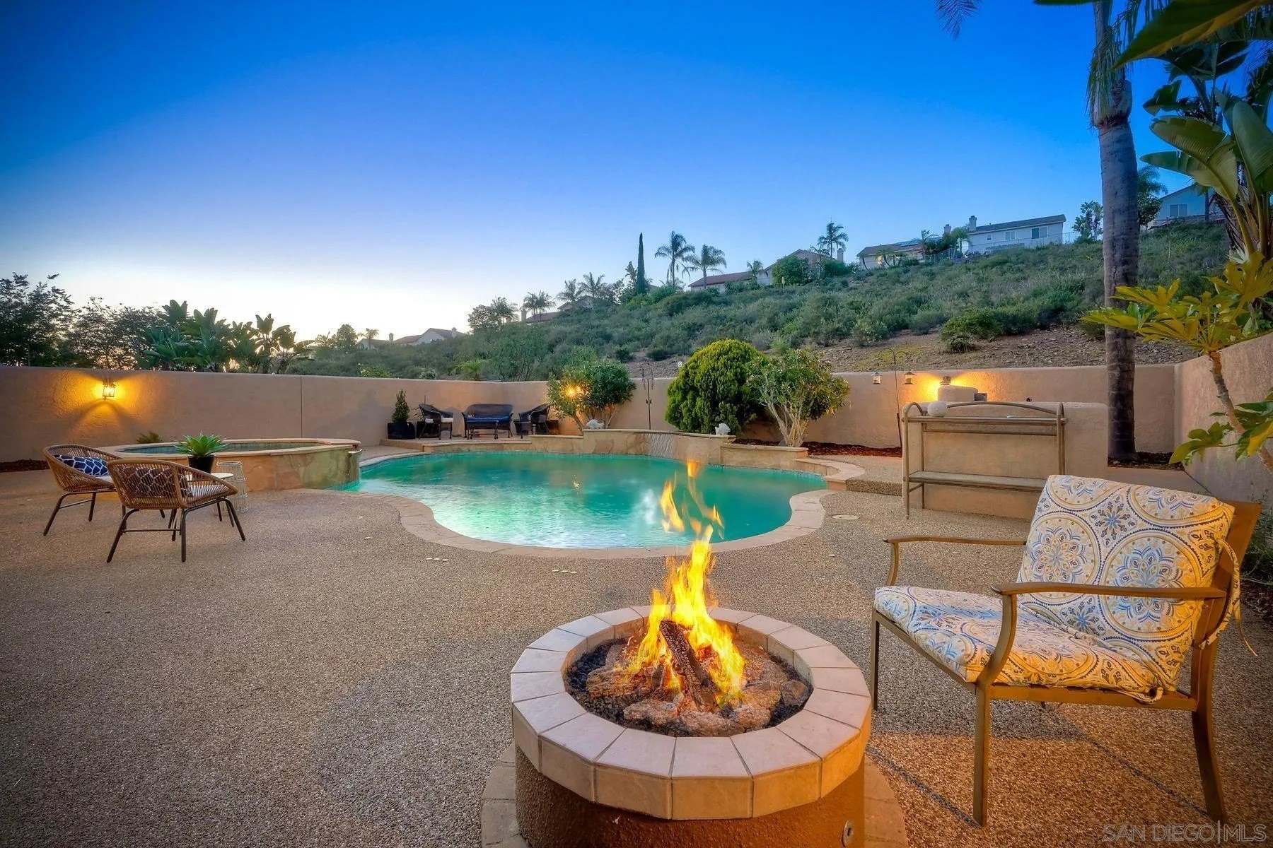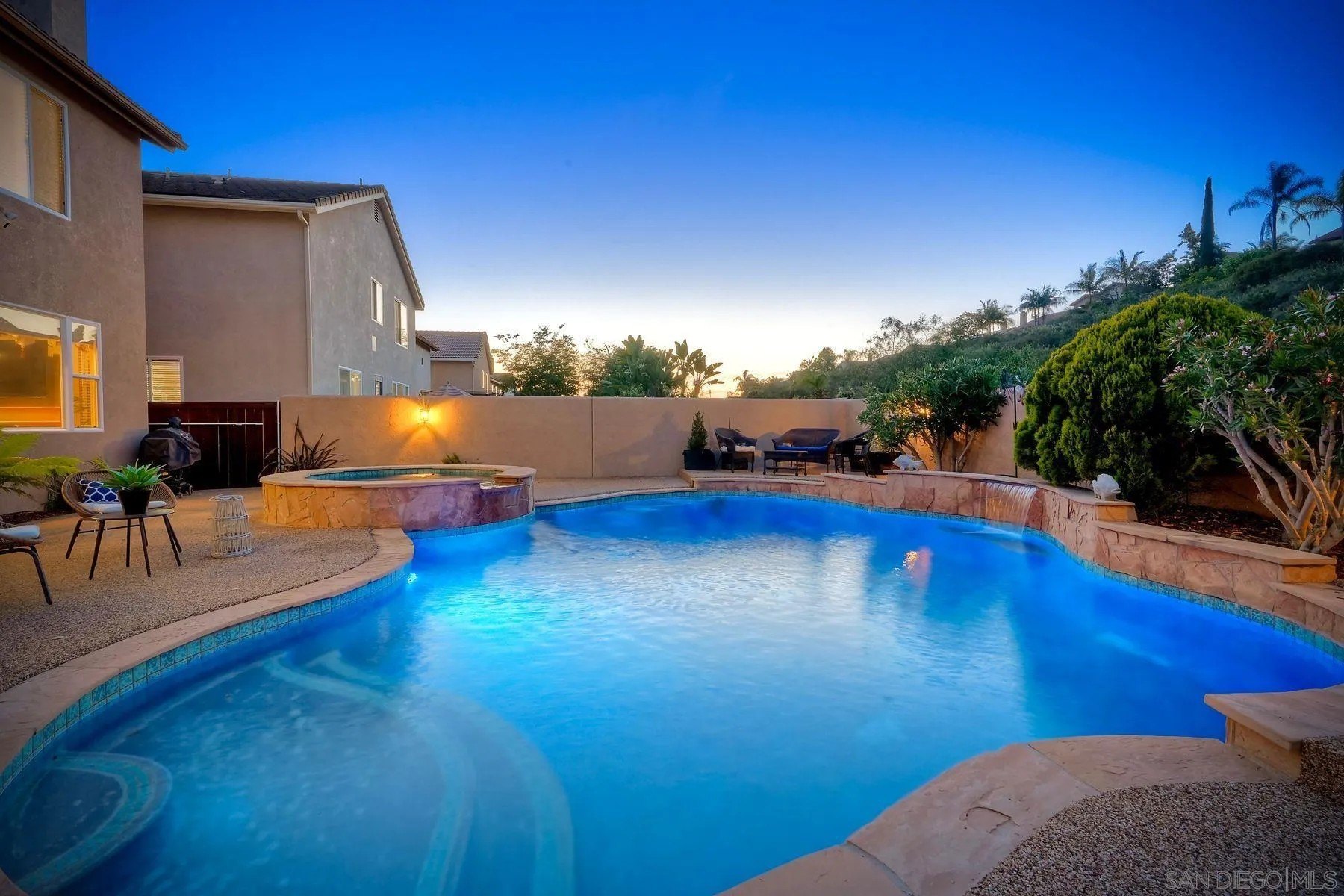 Experience the ease of single-level living in a two-story home, enhanced by a rare in-home elevator that provides effortless access between levels (can be removed if desired). Tucked away in a peaceful Scripps Ranch cul-de-sac, this 4BR/2.5BA home welcomes you with soaring ceilings, wood floors, and a bright, open layout that's perfect for both everyday living and entertaining. The spacious kitchen features a large island, stainless steel appliances, and abundant cabinetry, seamlessly flowing into the dining and family rooms with a cozy fireplace and backyard access. The primary suite offers a spa-like bath and a large walk-in closet with built-ins, while the additional bedrooms provide flexibility-one is currently set up as an office with direct elevator access. Step outside to a resort-style backyard with pool, spa, firepit, and beautiful sunset views. Fully owned solar and proximity to top-rated schools complete this exceptional home.