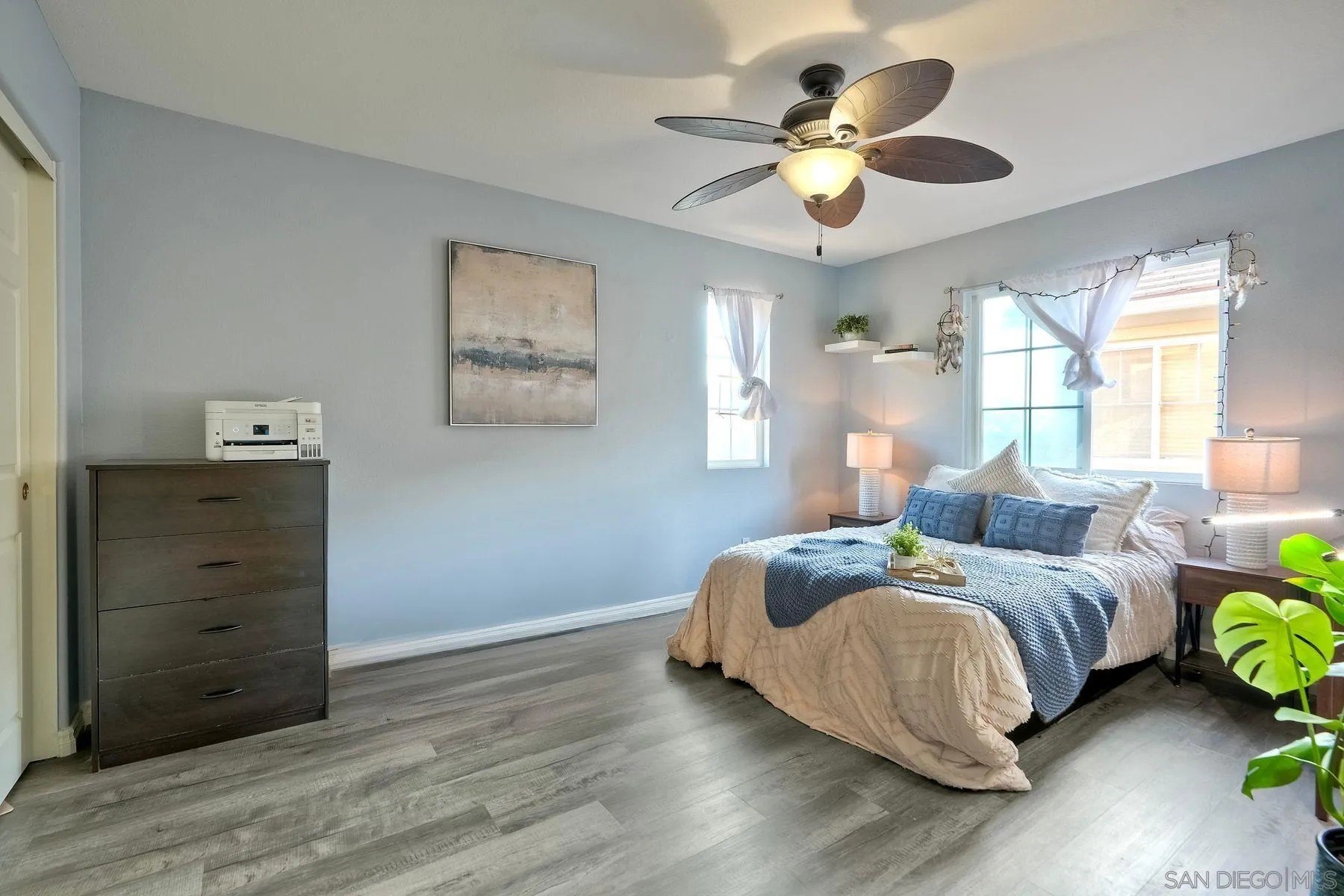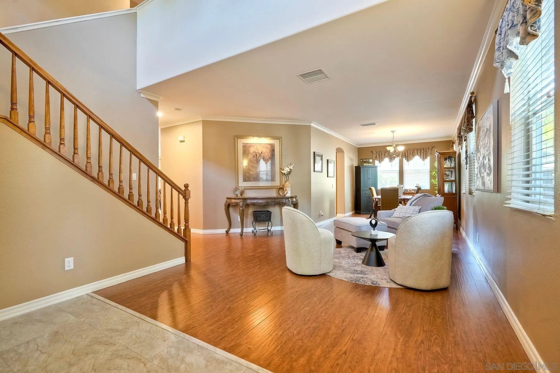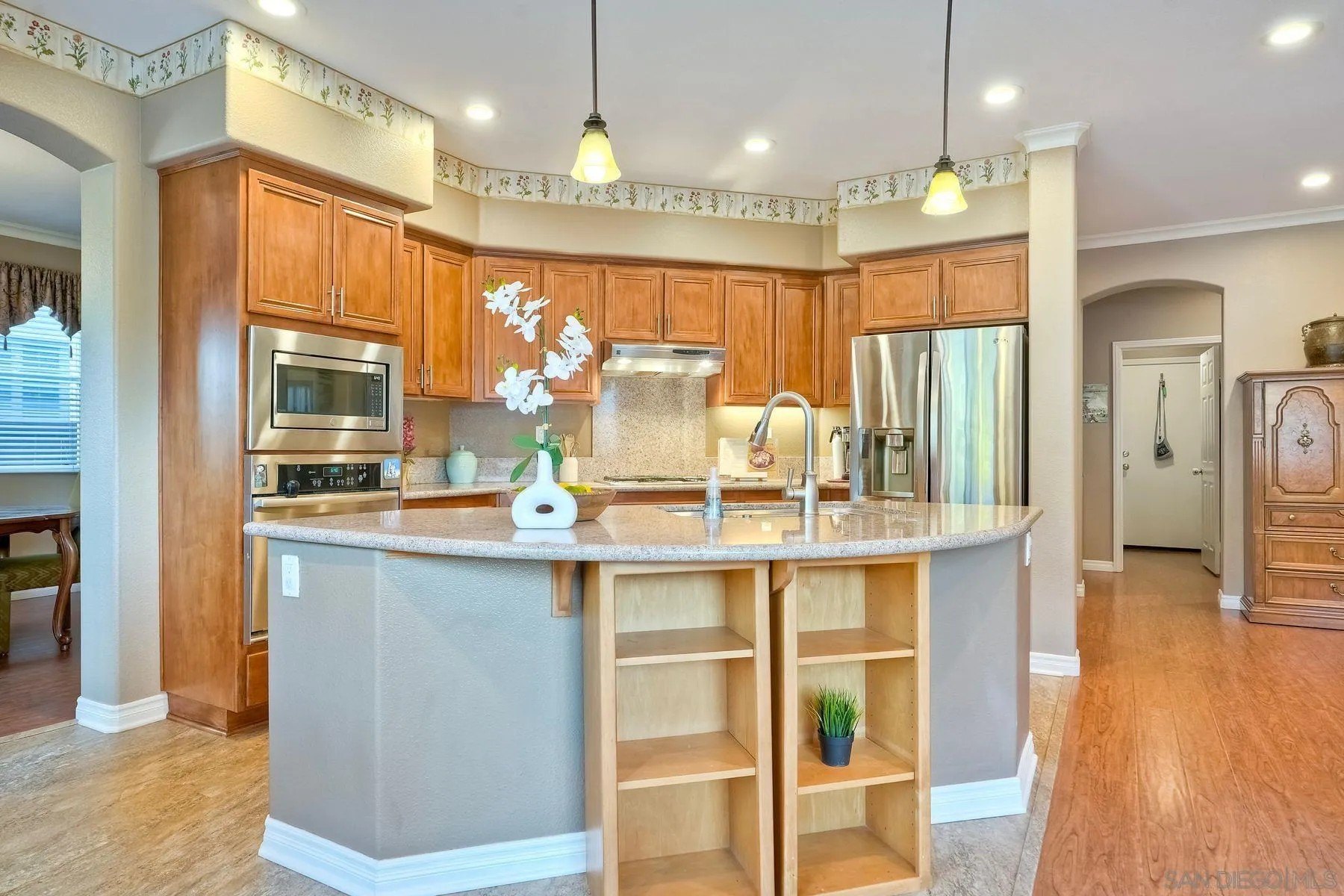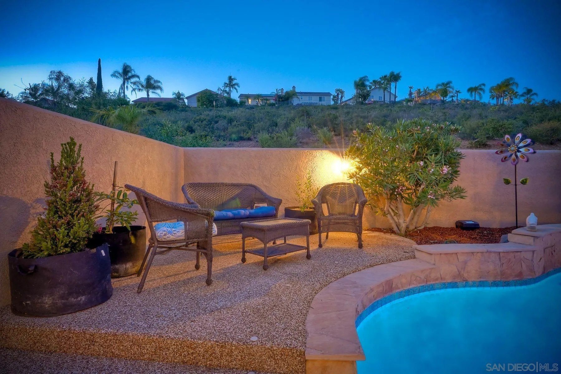 Experience the ease of single-level living in a two-story home, enhanced by a rare in-home elevator that provides effortless access between levels (can be removed if desired). Tucked away in a peaceful Scripps Ranch cul-de-sac, this 4BR/2.5BA home welcomes you with soaring ceilings, wood floors, and a bright, open layout that's perfect for both everyday living and entertaining. The spacious kitchen features a large island, stainless steel appliances, and abundant cabinetry, seamlessly flowing into the dining and family rooms with a cozy fireplace and backyard access. The primary suite offers a spa-like bath and a large walk-in closet with built-ins, while the additional bedrooms provide flexibility-one is currently set up as an office with direct elevator access. Step outside to a resort-style backyard with pool, spa, firepit, and beautiful sunset views. Fully owned solar and proximity to top-rated schools complete this exceptional home.