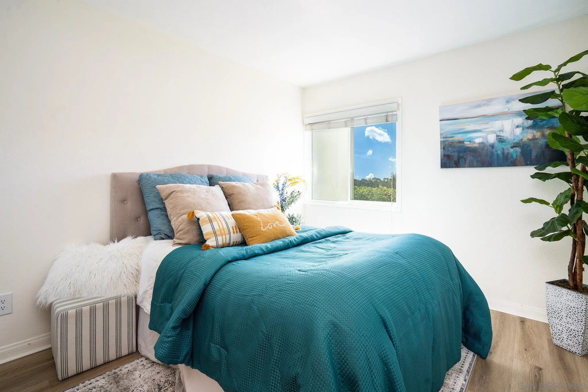 Welcome to your Bay Ho sanctuary where panoramic bay views and sparkling SeaWorld fireworks become part of your everyday living experience in this exceptionally bright, first-floor corner unit. Western and southwestern bay views greet you through expansive windows that flood the space with natural light, while your private patio offers front-row seating for SeaWorld's nightly fireworks and breathtaking sunsets over the bay and hillsides. The open-concept floor plan features a dedicated dining area flowing into the updated kitchen with brand-new countertops and sunny breakfast nook. The split-bedroom layout places both bedrooms on opposite sides with private ensuite bathrooms-a true dual-primary suite configuration ideal for roommates, couples, or guests. Interior laundry hookups first-floor location with elevator access provides easy living. Recent HOA upgrades include fully compliant balconies and railings per California SB 326. Walk to bay-view dog parks and exceptional dining including top-rated sushi, drive five minutes to Bay Park restaurants, ten minutes to Pacific Beach shores, or fifteen minutes to airport and downtown. Quick freeway access connects you to everything San Diego offers. Enjoy the sparkling community pool and oversized spa. Impeccably maintained, this turn-key home is perfect for young professionals, couples, investors, retirees, or as your ideal San Diego vacation property.