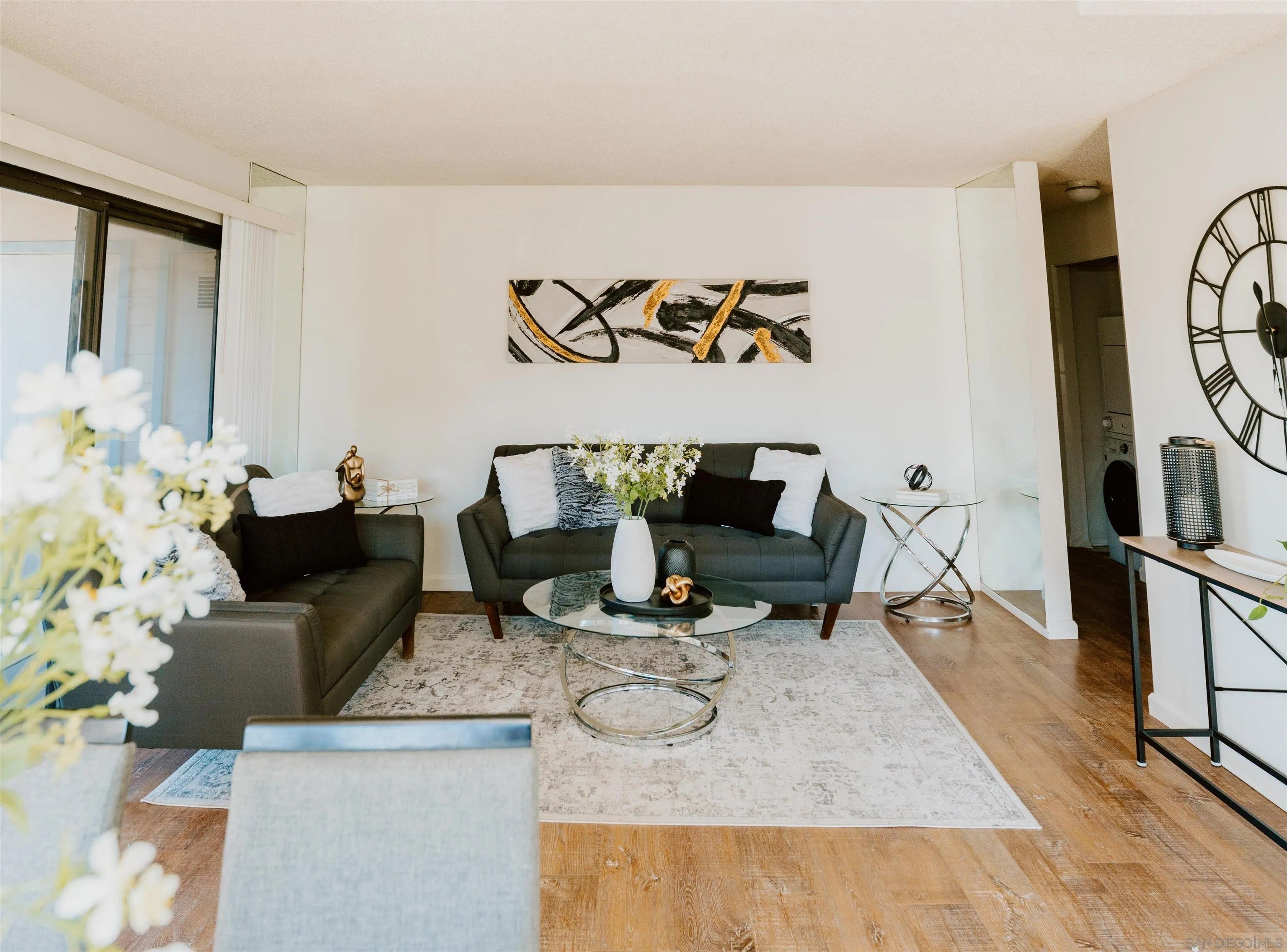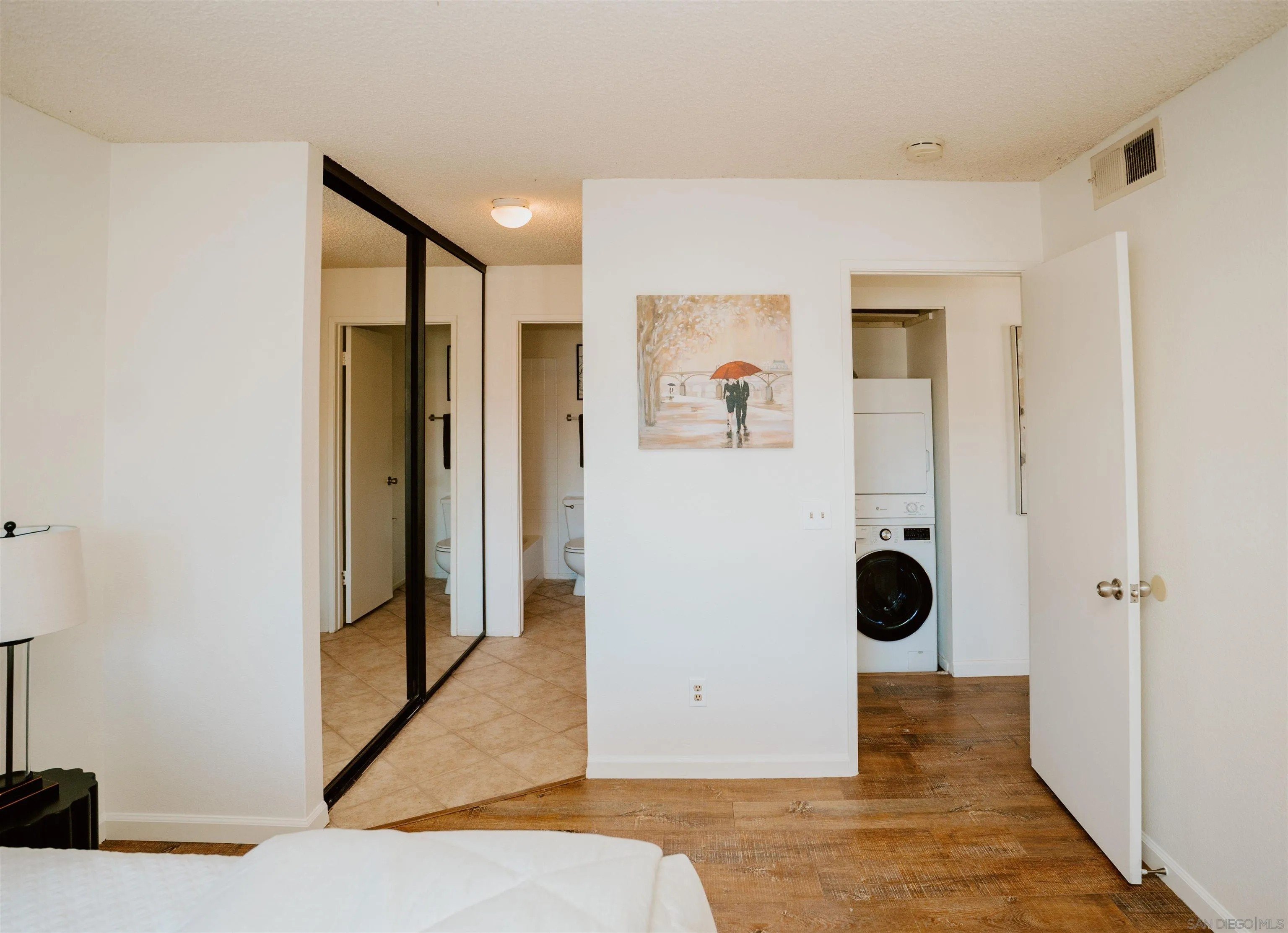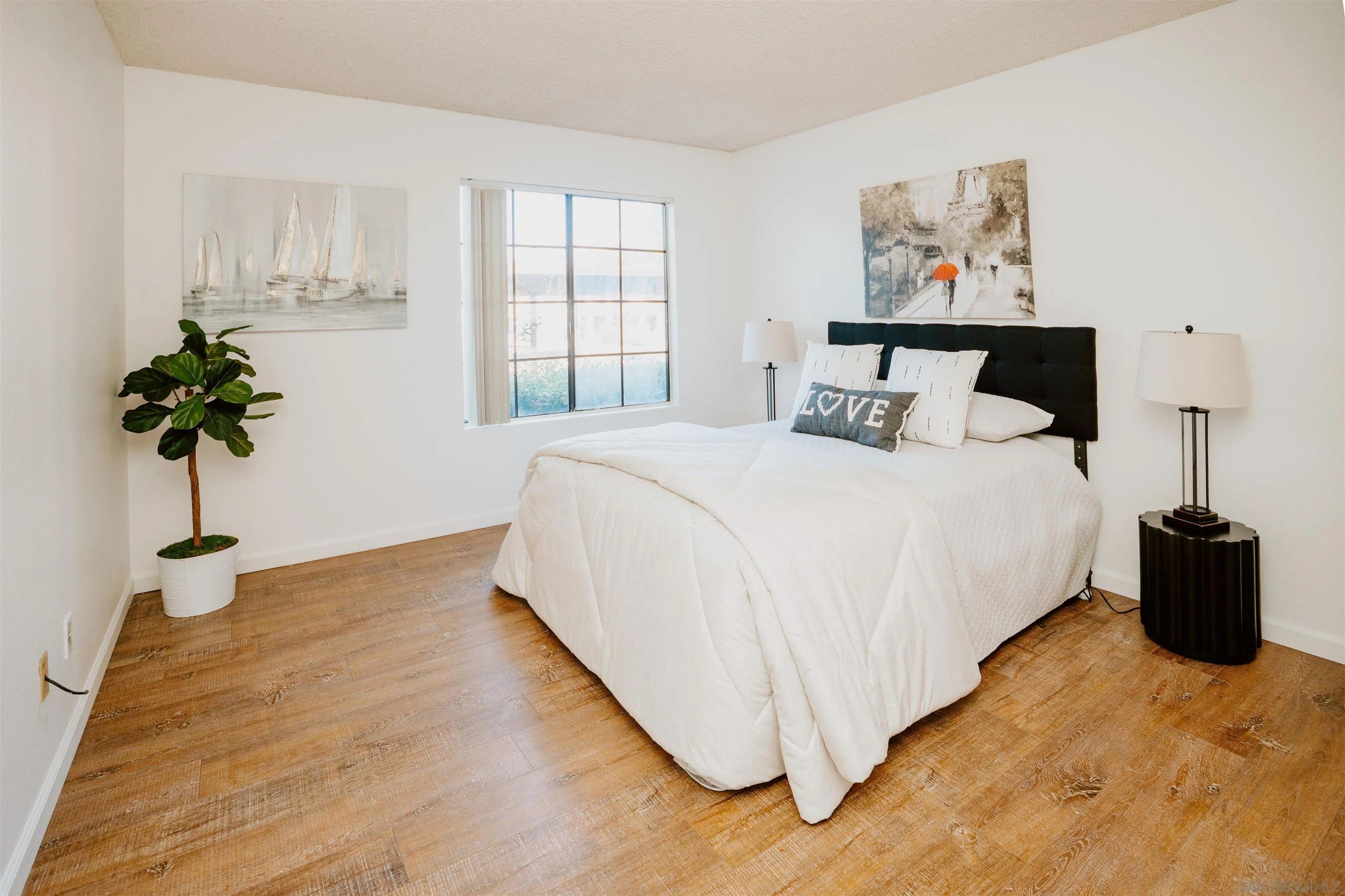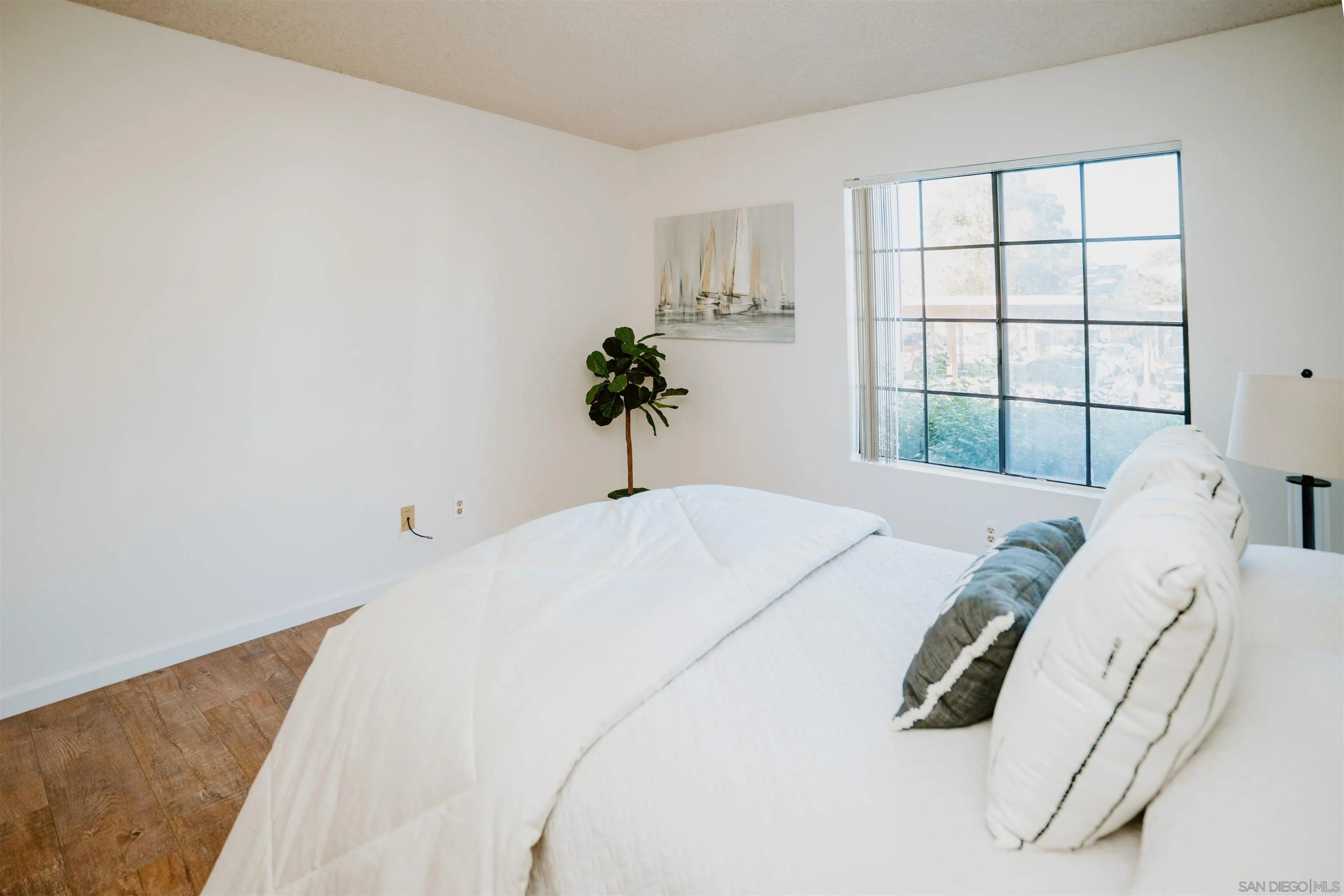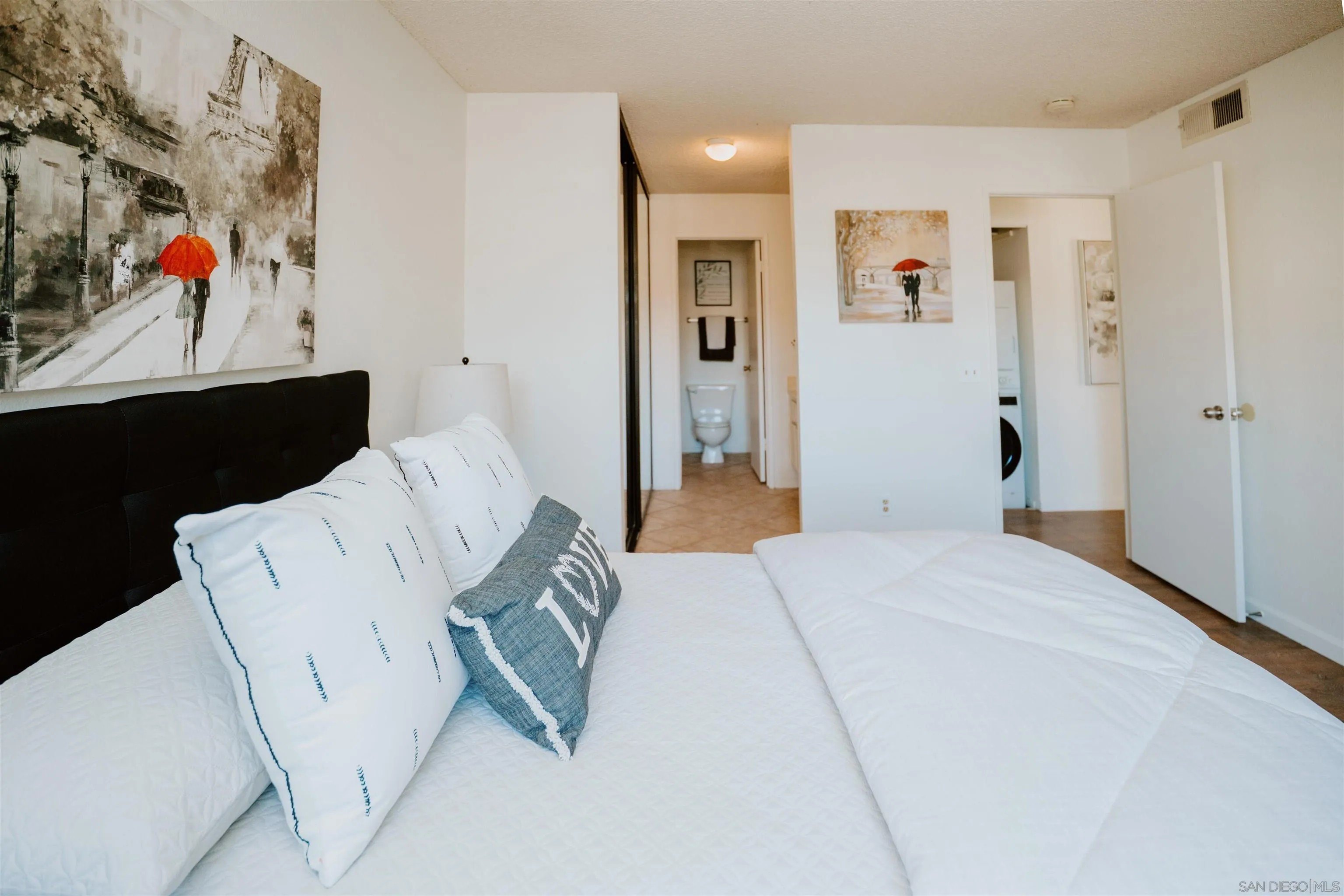 Move-In Ready Condo in the Heart of Mira Mesa! Welcome to this beautifully maintained, 100% move-in-ready home featuring a modern kitchen with Corian-style countertops, a brand-new over-the-range microwave, new Dishwasher, stove/oven, and refrigerator. The open living area is bright and inviting, enhanced by laminate flooring and abundant natural light. Each bedroom offers generous space and includes its own en suite full bathroom for added comfort and privacy. A convenient hallway laundry closet comes equipped with a nearly new LG washer and GE dryer (1 year old). Enjoy year-round comfort with CENTRALIZED HEATING & COOLING. Highlights: - LOW HOA FEES - 100% move-in ready condition - Ideal for first-time buyers or investors Newly Paint adorn the home throughout.
