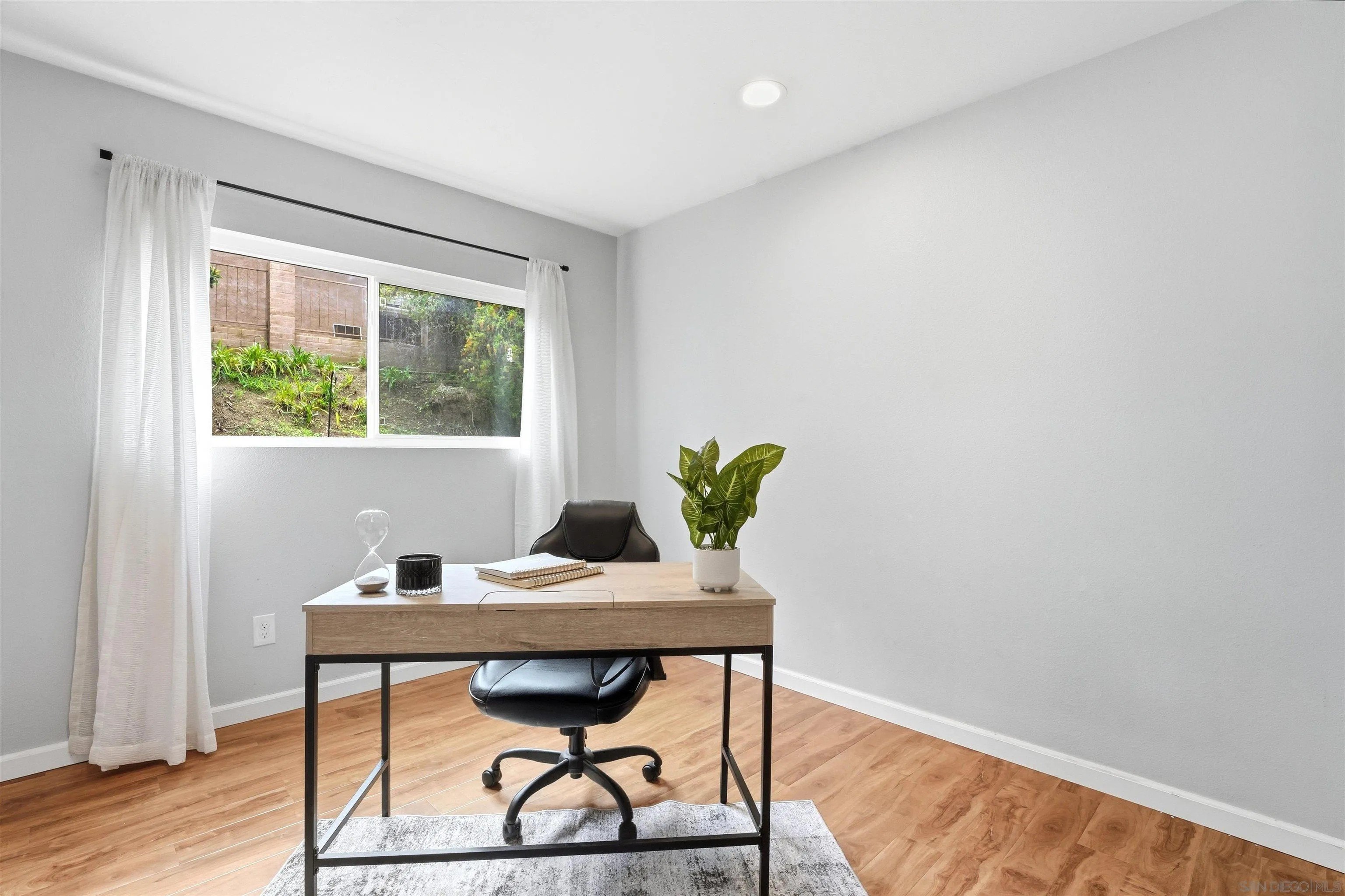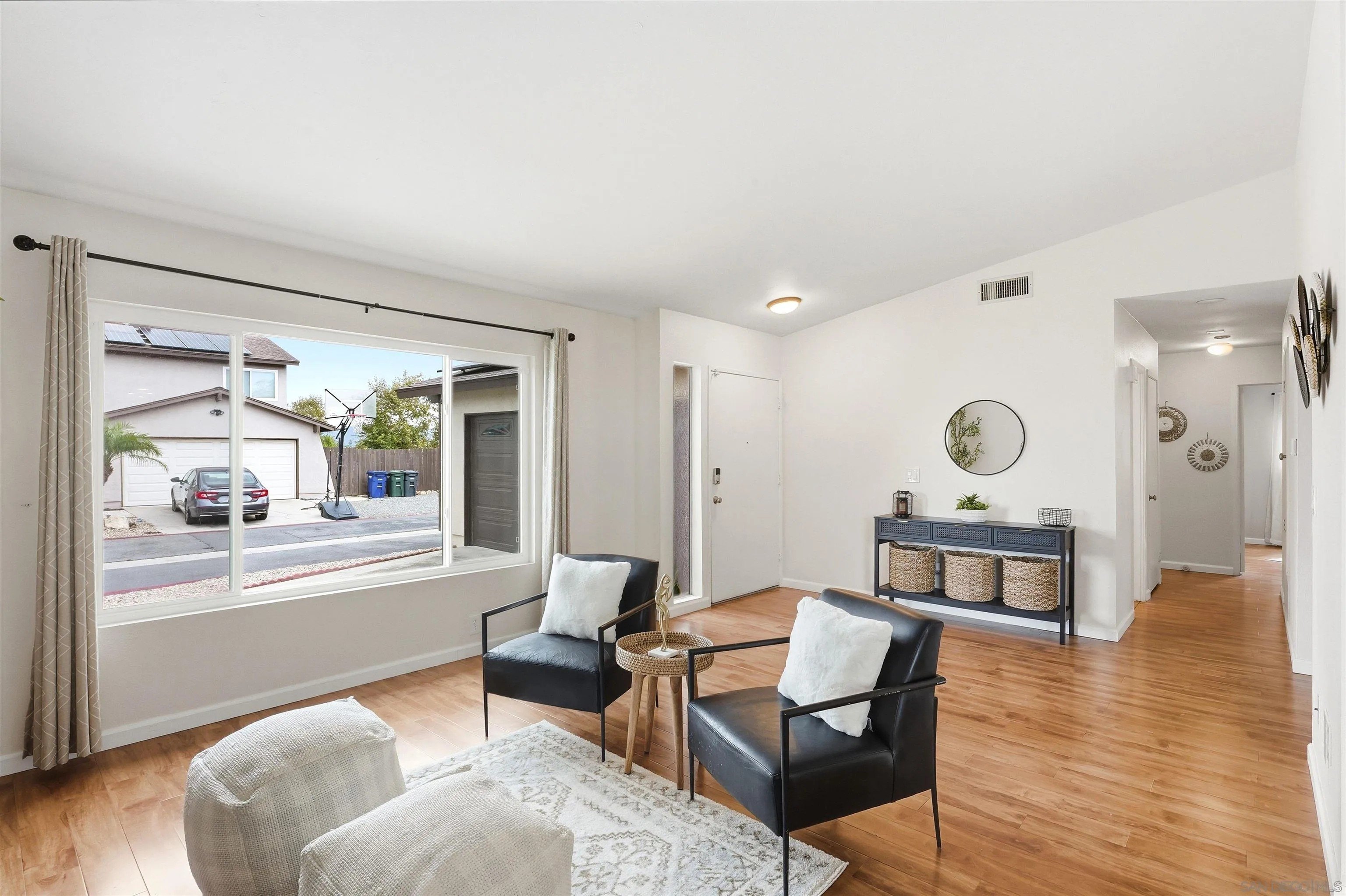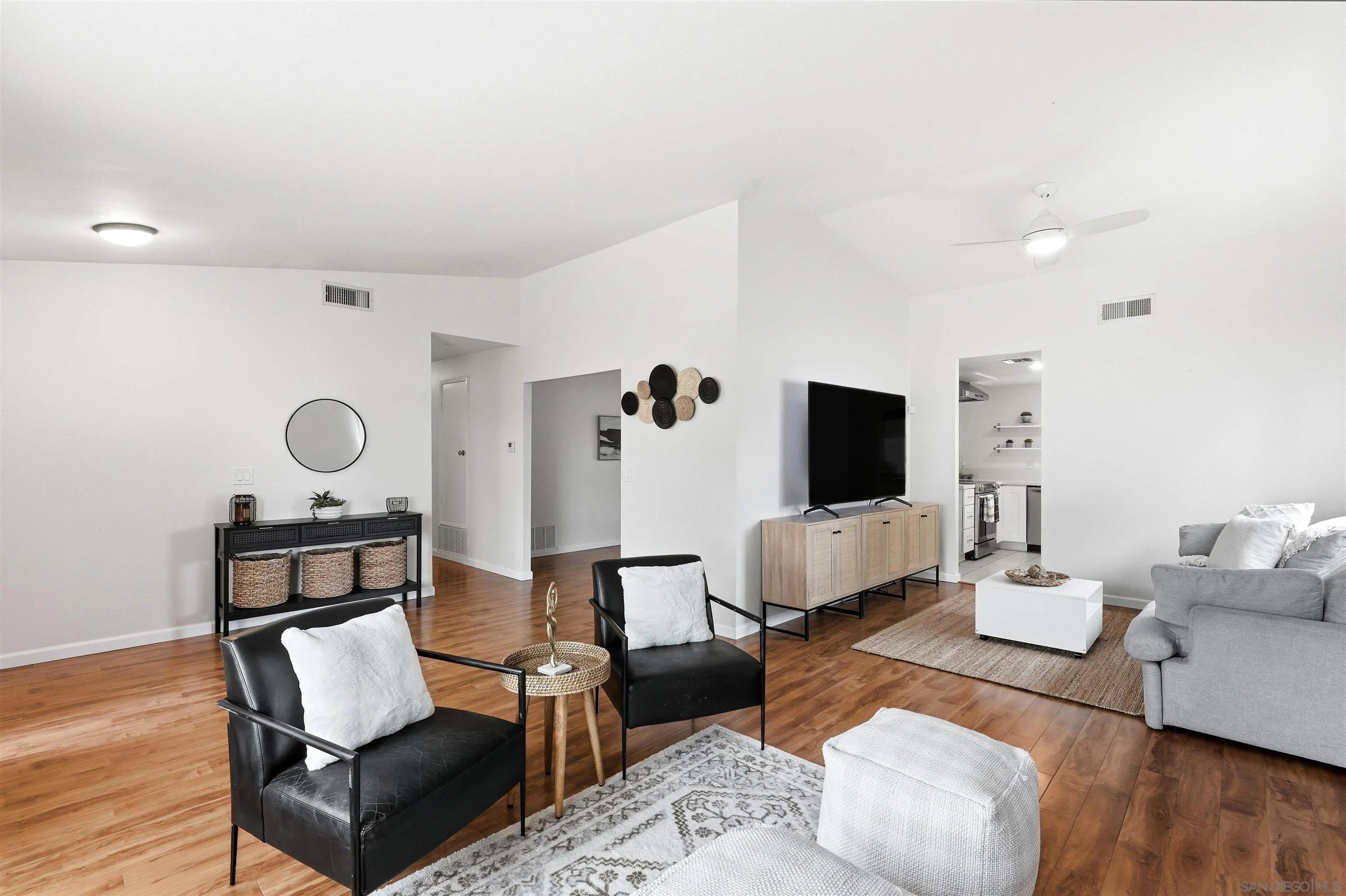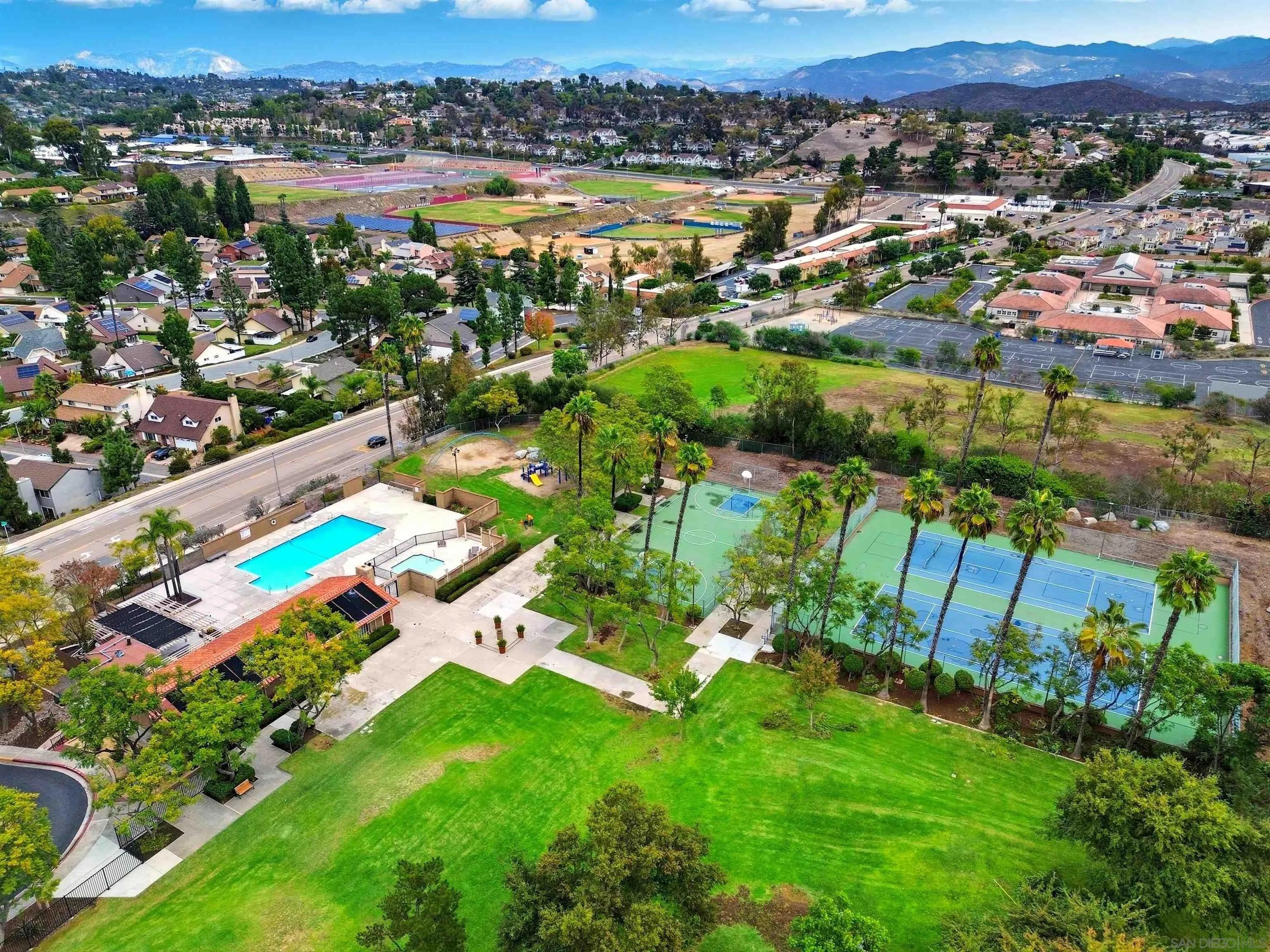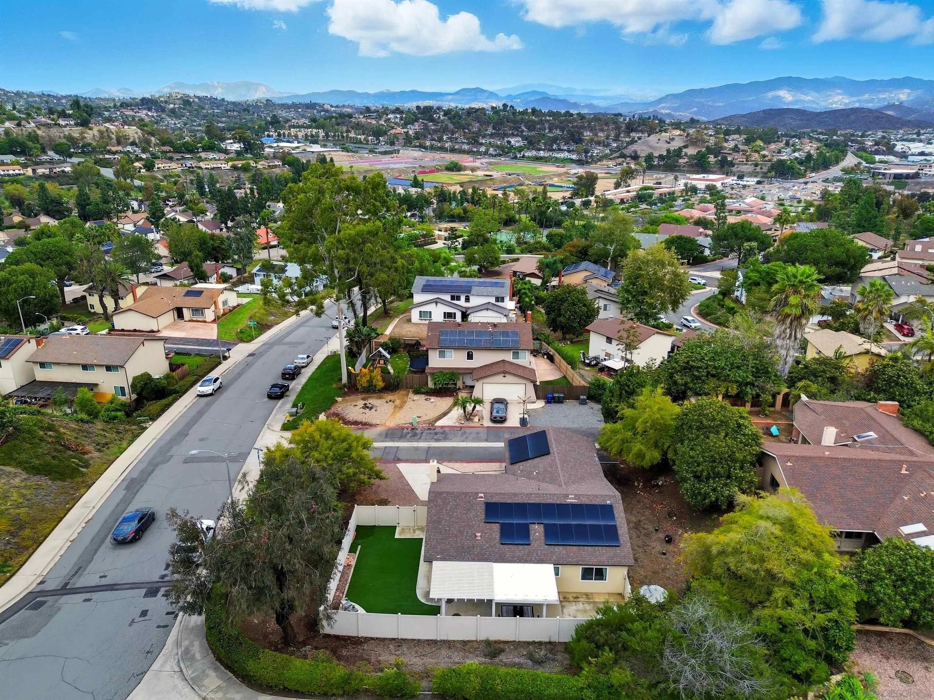 Discover this beautifully upgraded single-story home in the highly desirable Rancho San Diego community. Ideally positioned on an elevated lot with picturesque mountain views, this residence features an open floorplan with high vaulted ceilings, creating a bright and airy feel throughout. Enjoy both a spacious family room and living room, ideal for gatherings or quiet relaxation. The modern upgraded kitchen offers stainless steel appliances and stylish finishes, while dual pane windows enhance comfort and efficiency. Step outside to a large, covered patio overlooking the low-maintenance backyard with turf-south part of the lot conveys with the home, it allows for extra expansion of the backyard, perfect for outdoor living/gardening/extra storage space or more!! Situated on a corner lot with a large driveway and extra assigned parking, this home offers exceptional convenience. Additional highlights include leased solar for energy savings and access to two community pools, parks, tennis courts, and playgrounds. Close to hiking trails, schools, shopping, major highways and more! Experience resort-style living with stunning views in one of East County's most sought-after neighborhoods!