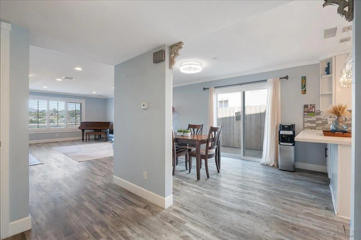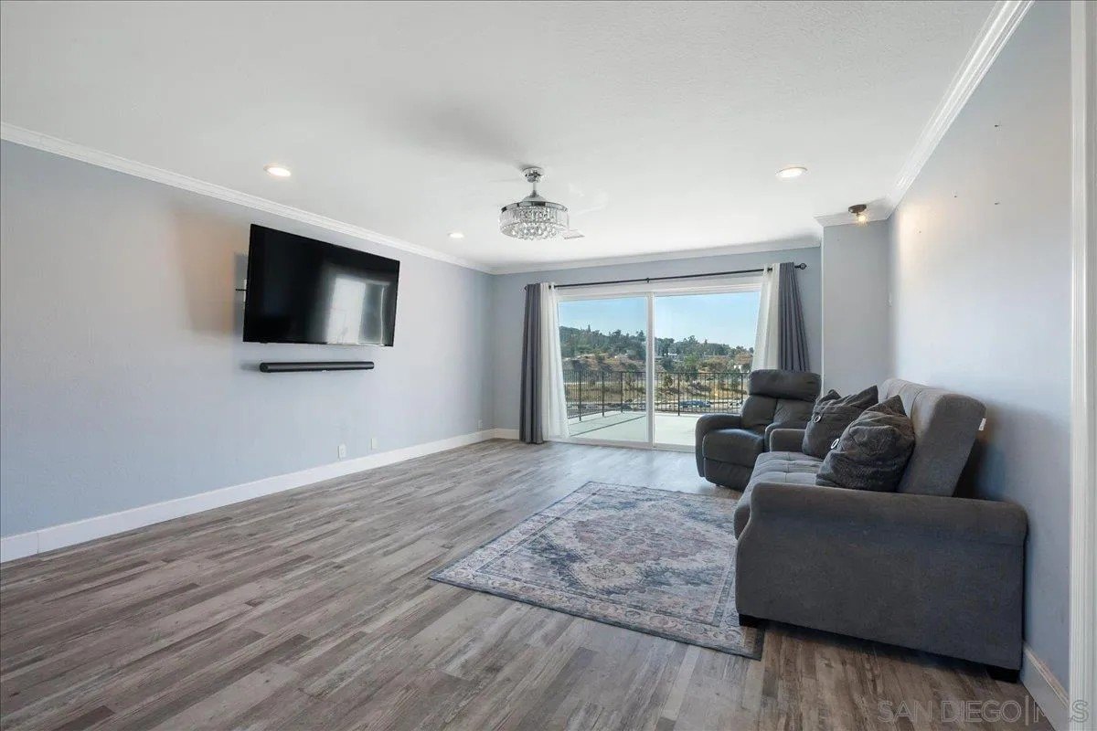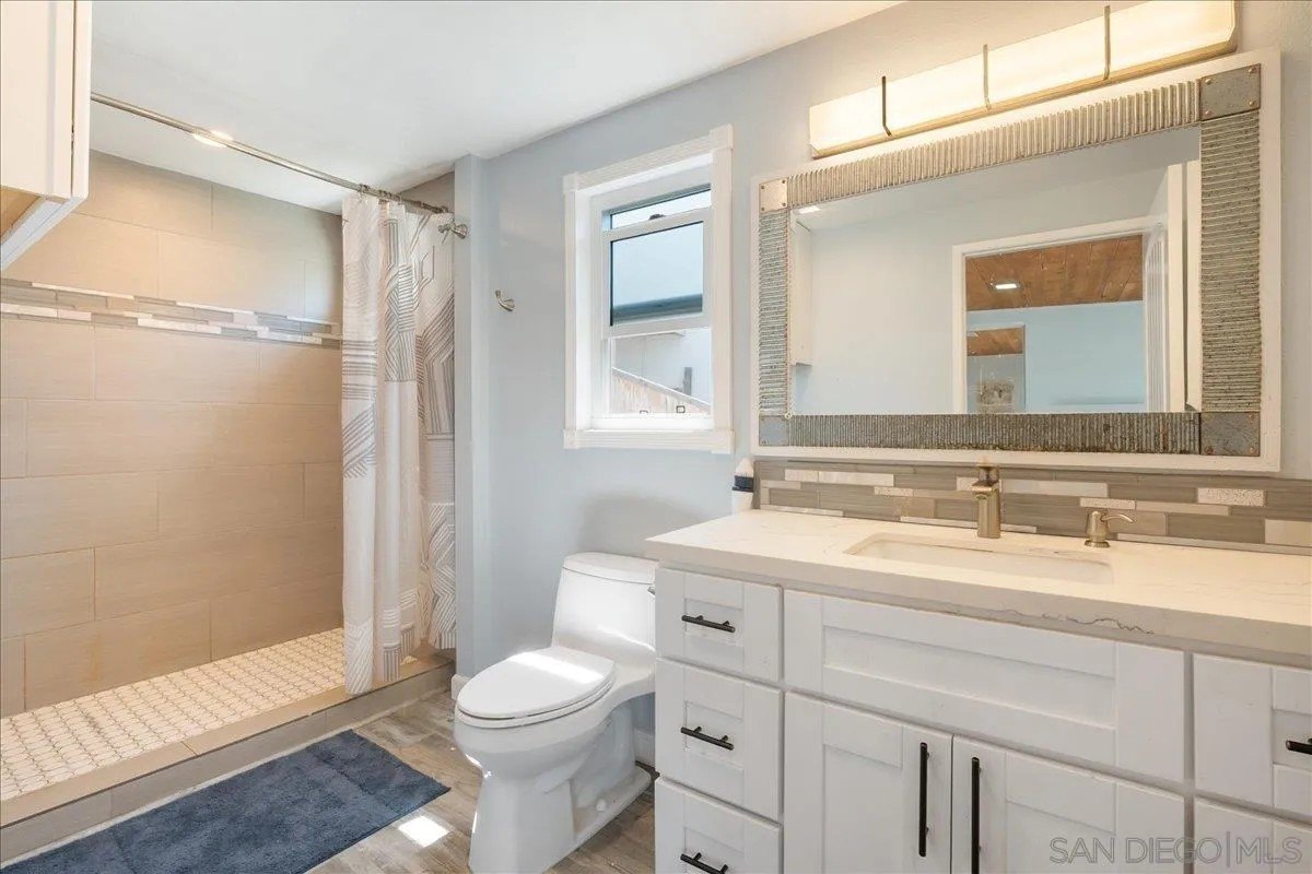 Move right in to this stunning, fully remodeled La Mesa home showcasing high-end finishes and thoughtful upgrades throughout including updated plumbing, electrical, and designer details from top to bottom. The open-concept floor plan features a reimagined kitchen with modern shaker cabinetry, quartz countertops, a stylish mosaic tile backsplash, pendant lighting, stainless steel apron sink, premium appliances, and abundant counter and storage space. The spacious primary suite is conveniently located on the main level, complete with a private wood deck, shiplap ceiling, and large windows that flood the room with natural light and frame the beautiful views. Every inch of this home has been curated for both comfort and style, offering the perfect blend of modern design and functionality.