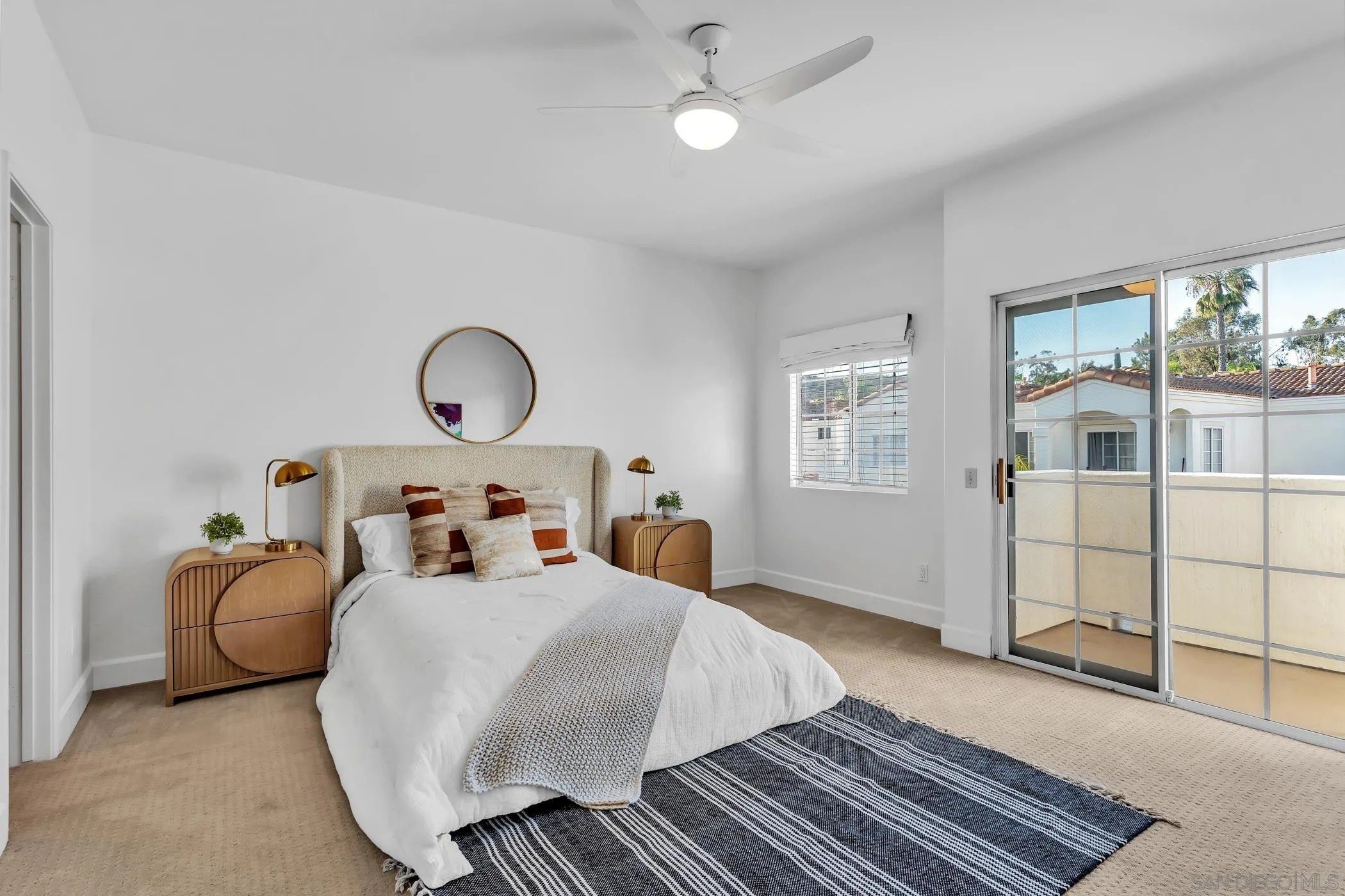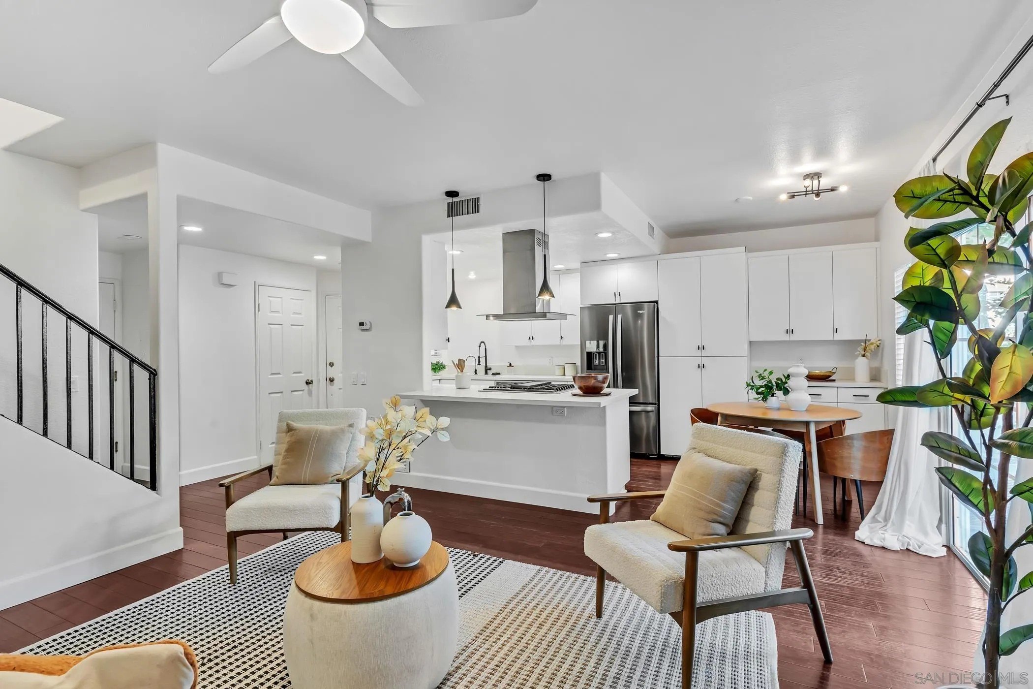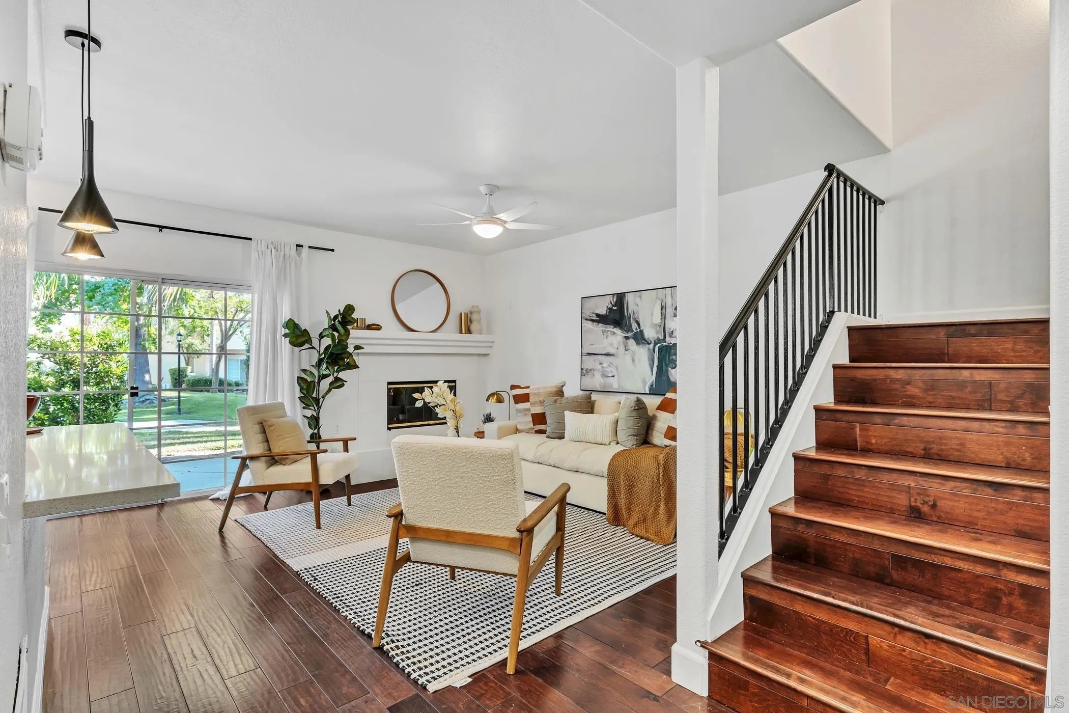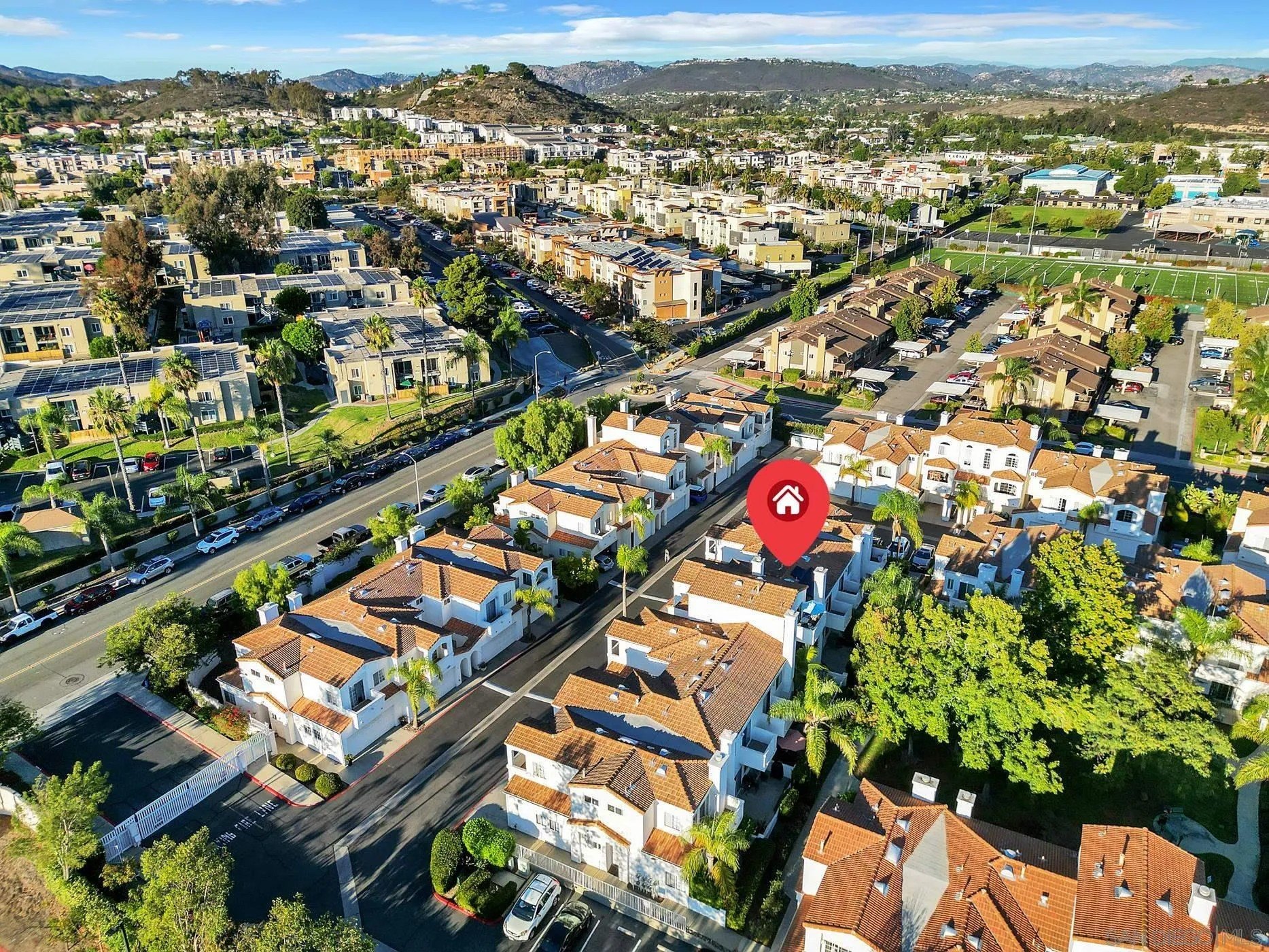 Crisp, modern, and move-in ready-this updated townhome in gated Villa Aspara backs to open greenspace and lives large with natural light and two private balconies. Inside, you'll find real wood flooring, solar for energy savings, and a modern kitchen with quartz counters, stainless appliances, and bar seating-perfect for everyday living or easy entertaining. The flexible layout offers a spacious living area, dining zone, and a powder room on the main level, with bedrooms tucked upstairs for privacy. The attached two-car garage has a rare perk in this community: convenient loading/unloading parking directly in front of the garage. Outdoors, enjoy the peaceful backdrop of the greenbelt plus community amenities and the security of a gated neighborhood. All of this in a prime San Marcos location-minutes to shopping, dining, Cal State San Marcos & Palomar College, and quick access to Hwy-78 & I-15. Villa Aspara is known for its well-kept grounds, pool/spa area, and lock-and-leave convenience.