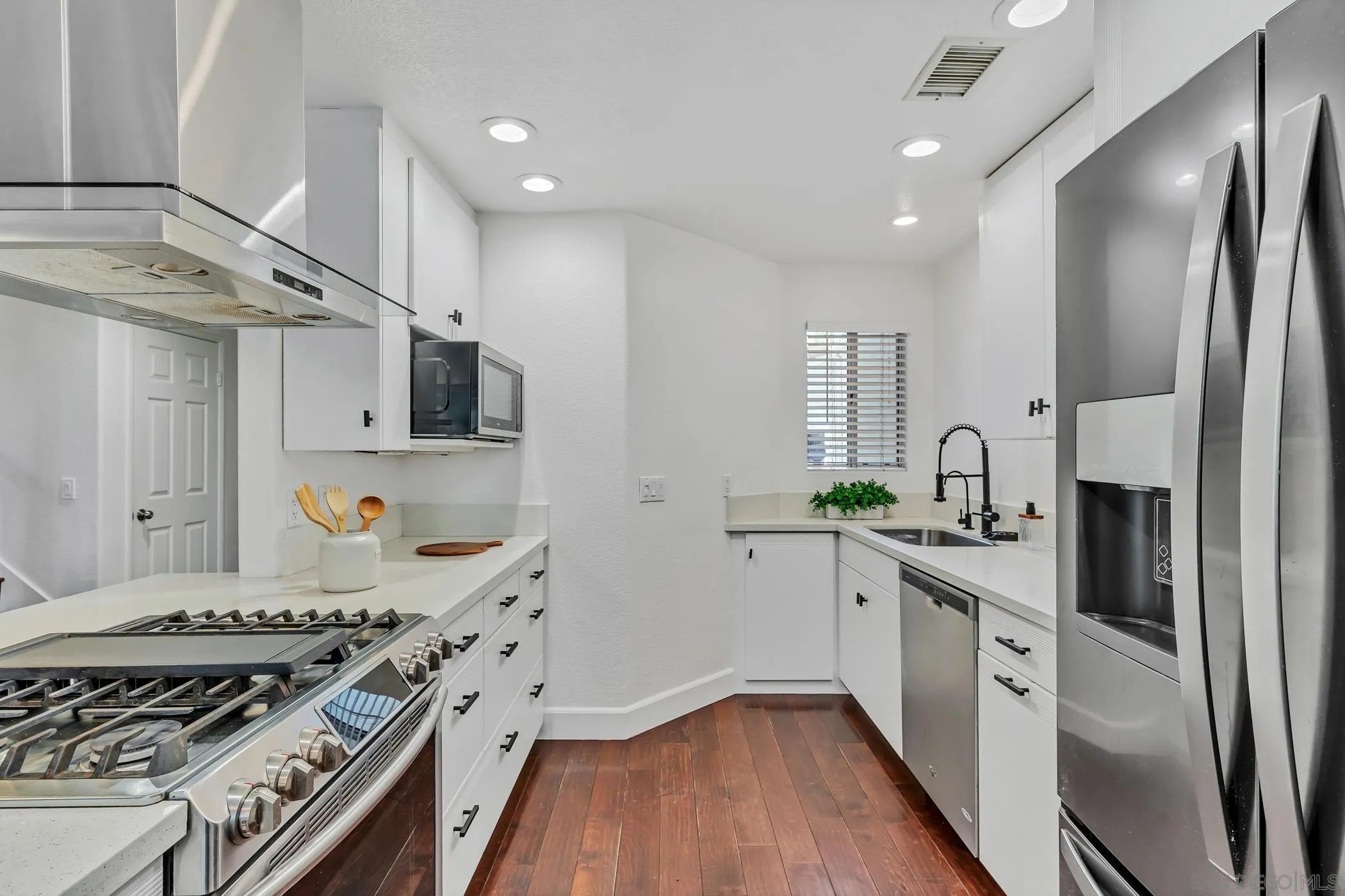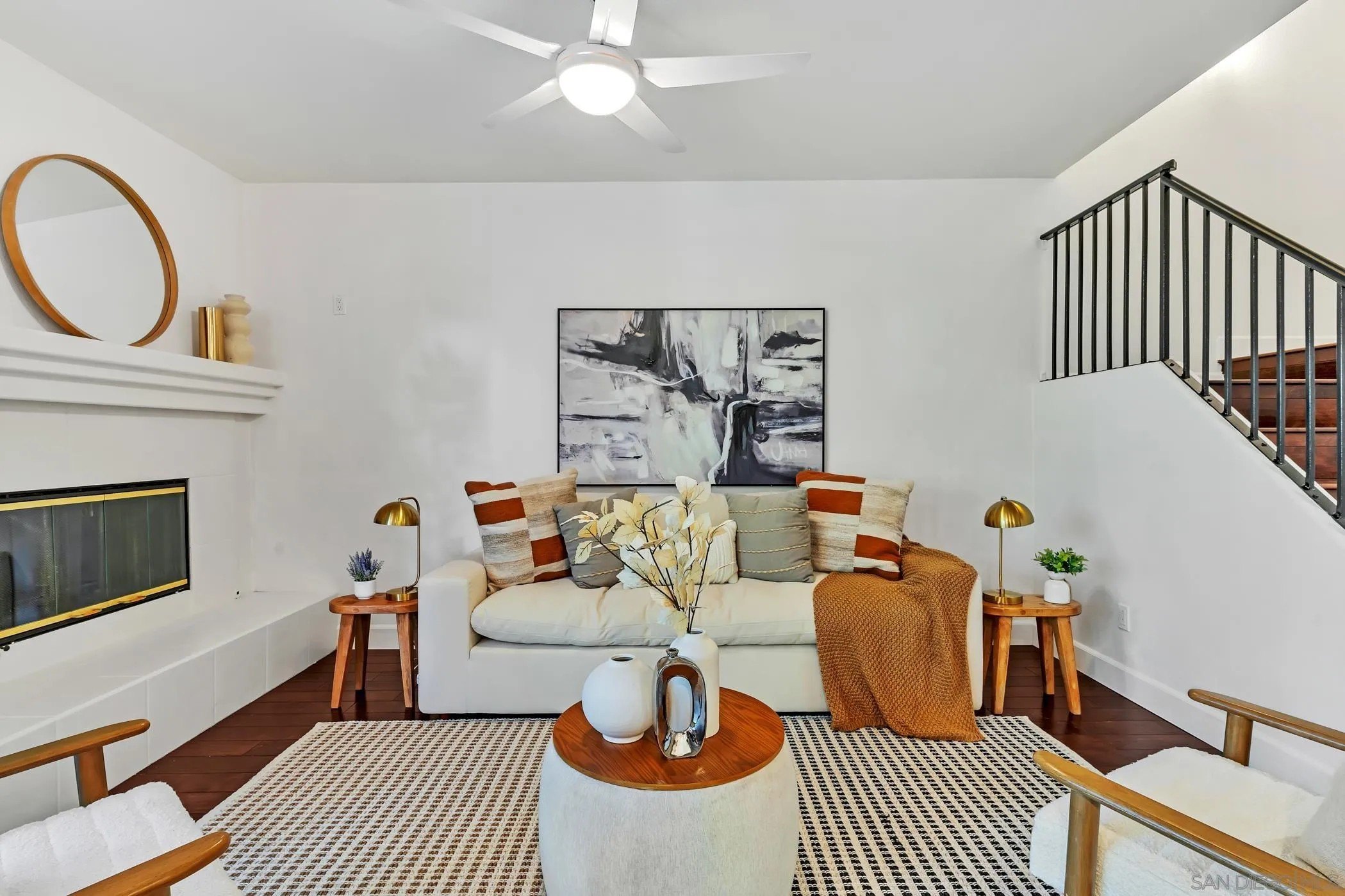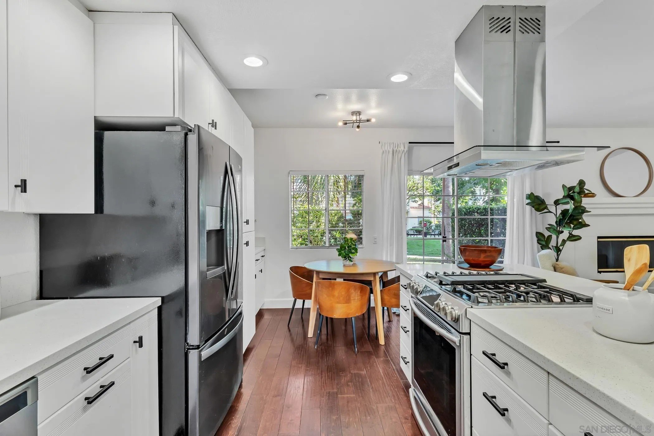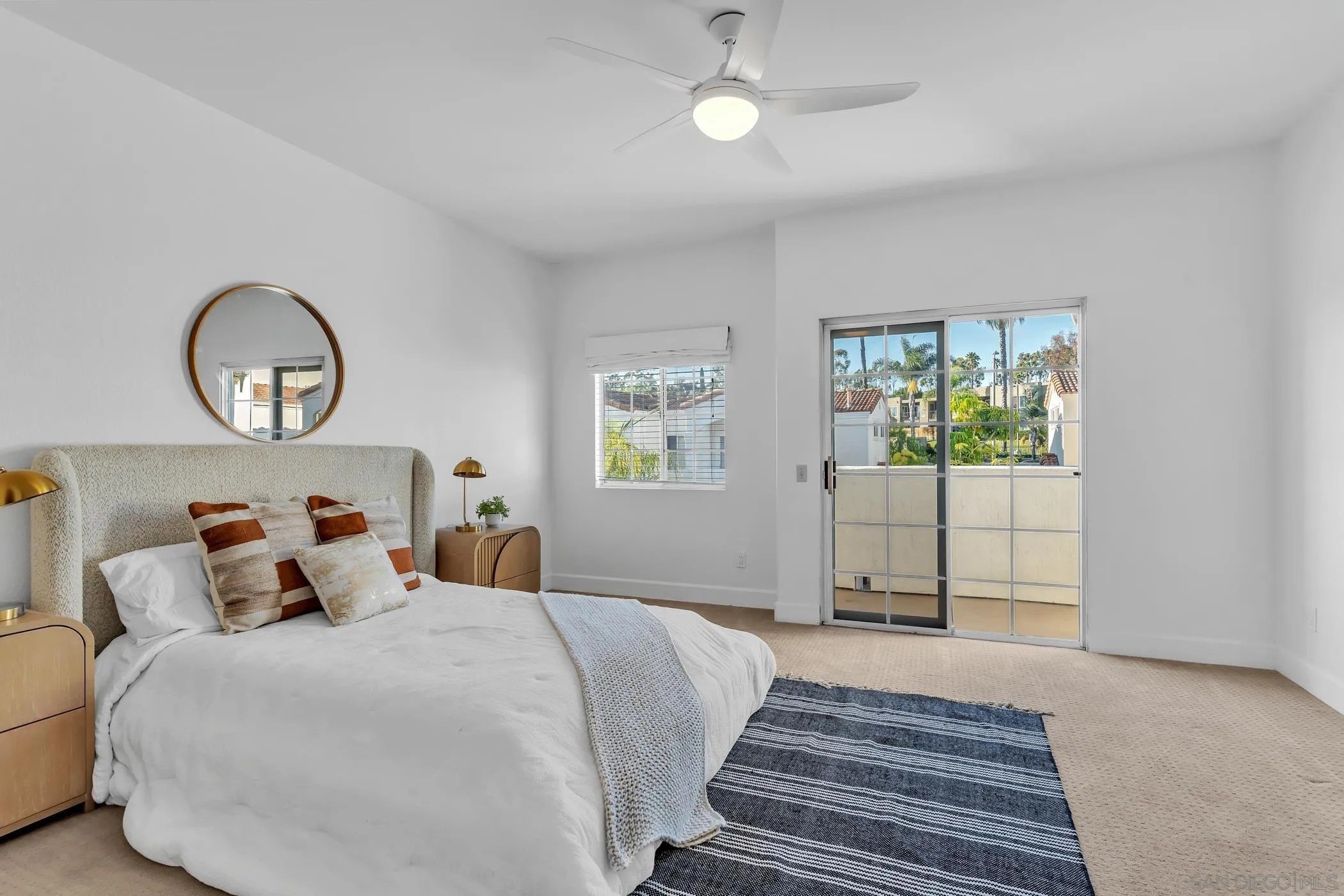 Crisp, modern, and move-in ready-this updated townhome in gated Villa Aspara backs to open greenspace and lives large with natural light and two private balconies. Inside, you'll find real wood flooring, solar for energy savings, and a modern kitchen with quartz counters, stainless appliances, and bar seating-perfect for everyday living or easy entertaining. The flexible layout offers a spacious living area, dining zone, and a powder room on the main level, with bedrooms tucked upstairs for privacy. The attached two-car garage has a rare perk in this community: convenient loading/unloading parking directly in front of the garage. Outdoors, enjoy the peaceful backdrop of the greenbelt plus community amenities and the security of a gated neighborhood. All of this in a prime San Marcos location-minutes to shopping, dining, Cal State San Marcos & Palomar College, and quick access to Hwy-78 & I-15. Villa Aspara is known for its well-kept grounds, pool/spa area, and lock-and-leave convenience.