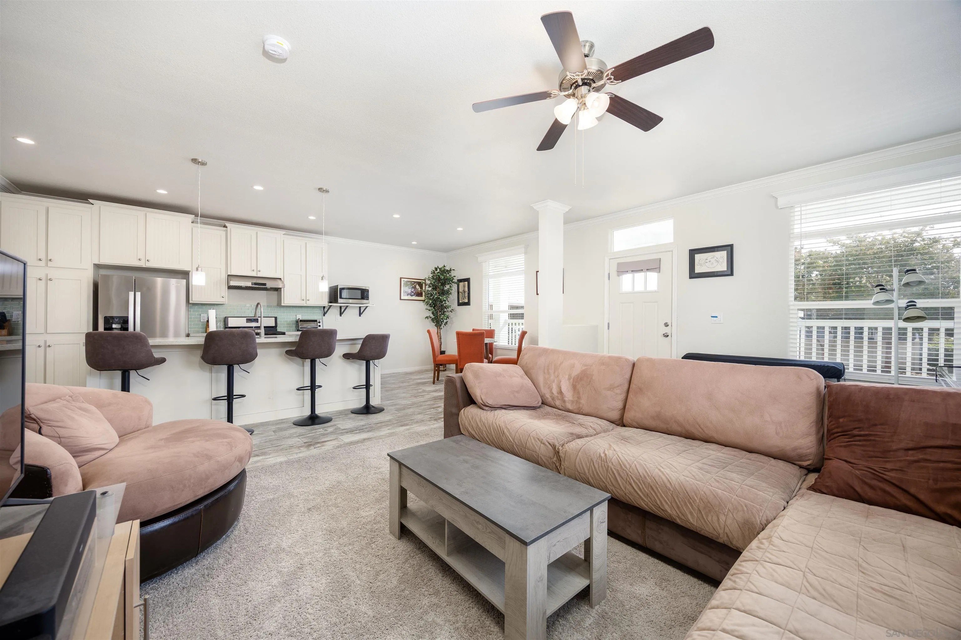 Discover an exceptional opportunity in the highly sought-after Mira Mesa area. This bright and inviting residence welcomes you with an open, modern floor plan that flows effortlessly from a luxe kitchen with stainless steel appliances and quartz counters into a comfortable, light-filled living space. The meticulous finishes-including luxury-style vinyl flooring, plantation shutters, and upgraded doors and screens-offer a move-in-ready experience with the appeal of upscale living. Step outside to your private patio to unwind or entertain, and enjoy access to resort-style community amenities such as a pool, spa, clubhouse and walking paths. Ideally located, you'll benefit from easy access to shopping, dining and major freeways while maintaining the peace and charm of a residential neighborhood. Rare in today's market, this home combines thoughtful design, turnkey condition and an enviable address. Move in-then sit back and enjoy.