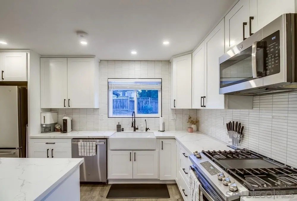 A beautiful gem of a home tucked away in the heart of Lemon Grove. The home was remodeled just 2 years ago and is move in ready. The luxury kitchen is an entertainers delight with island seating and also overlooking the dining area. Step out of the large living room to your private, covered patio. Primary bedroom boasts an ensuite bathroom with duel sinks and walk in shower. Hidden at the back of the home is an extensive patio area currently being used for basketball. There is development opportunity to add a 1100sqft ADU. Plenty of parking for either an RV or or a boat