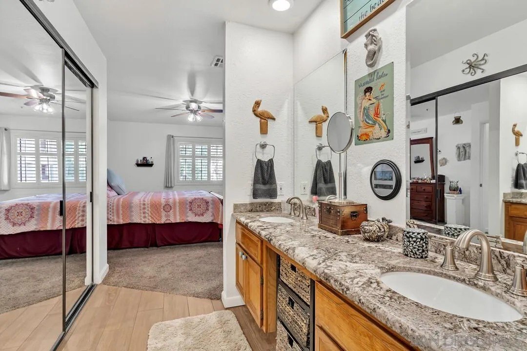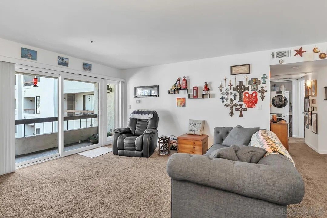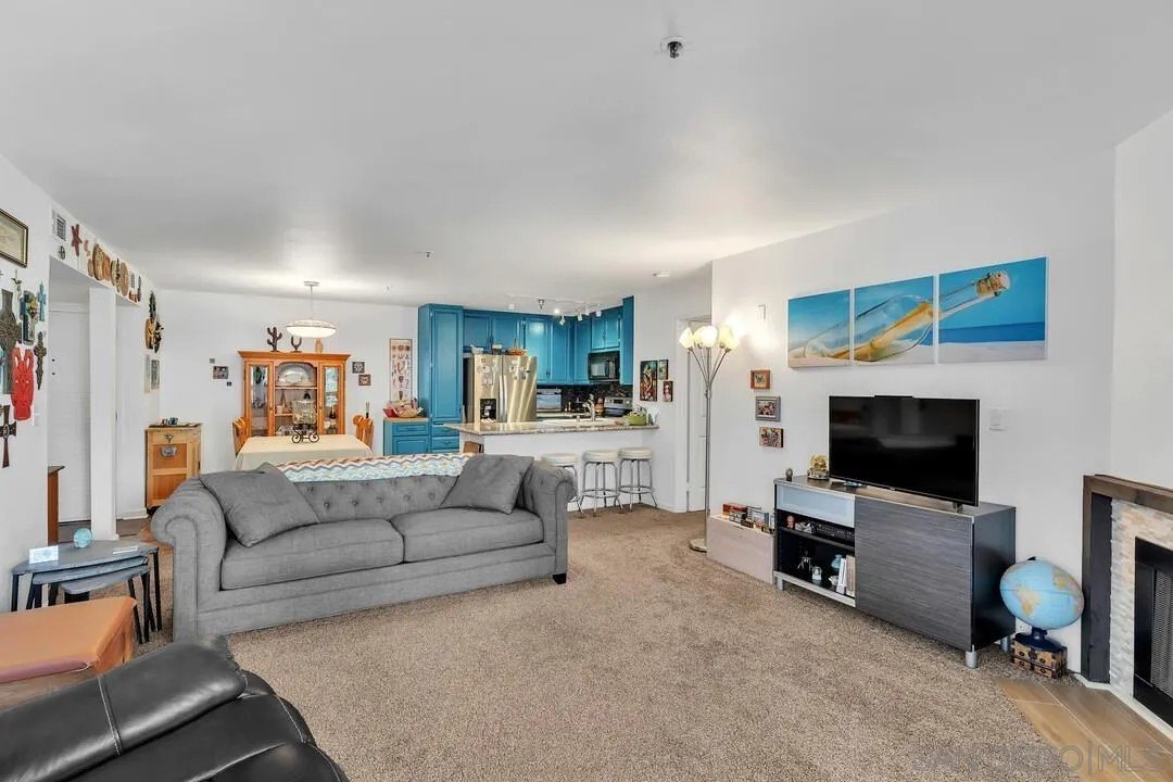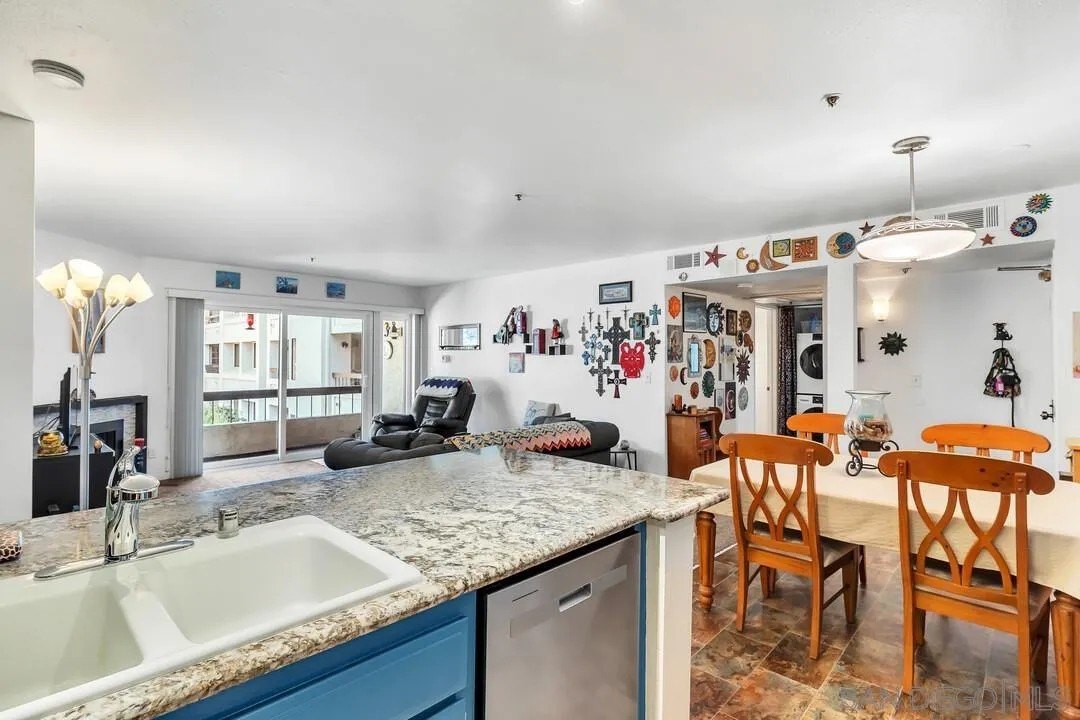 Look no further. This 3rd floor, courtyard facing unit at Presidio Place offers a perfect blend of modern upgrades, convenience and amenities to fit your lifestyle. The unit is located close to the elevators and to the storage unit that the new owner will get to use. In the kitchen you'll find a vibrant shade of teal on the cabinets, granite counter tops, a new refrigerator, new stove and a new dishwasher. The layout flows perfectly with a split primary bedroom layout. At each end of the unit, the bedroom has new dual pane windows and quality PVC shutters, so you can open up and let the breeze in or glimpse out at the garden. There are a new stackable washer and dryer in the unit, and the second bathroom has been recently remodeled. The kitchen opens to the living which has a new dual pane sliding glass door and gas fireplace. Presidio Place is a community full of amenities such as tennis courts, pickleball courts, pools, hot tubs, a basketball hoop, a ping pong table and a rec center. There are numerous ponds throughout the community which add to the resort feel. The property is centrally located, just minutes from the 163N, the trolley station, Fashion Valley mall, USD, Point Loma, Mission Bay and more. Residents can, for an additional fee, utilize the community garden to grow fruits and vegetables. Parking is one assigned spot in the parking garage, and one car may also park in any open guest space.