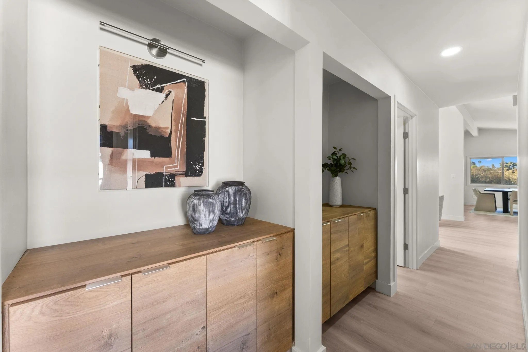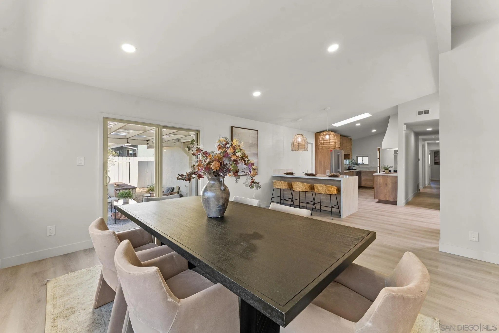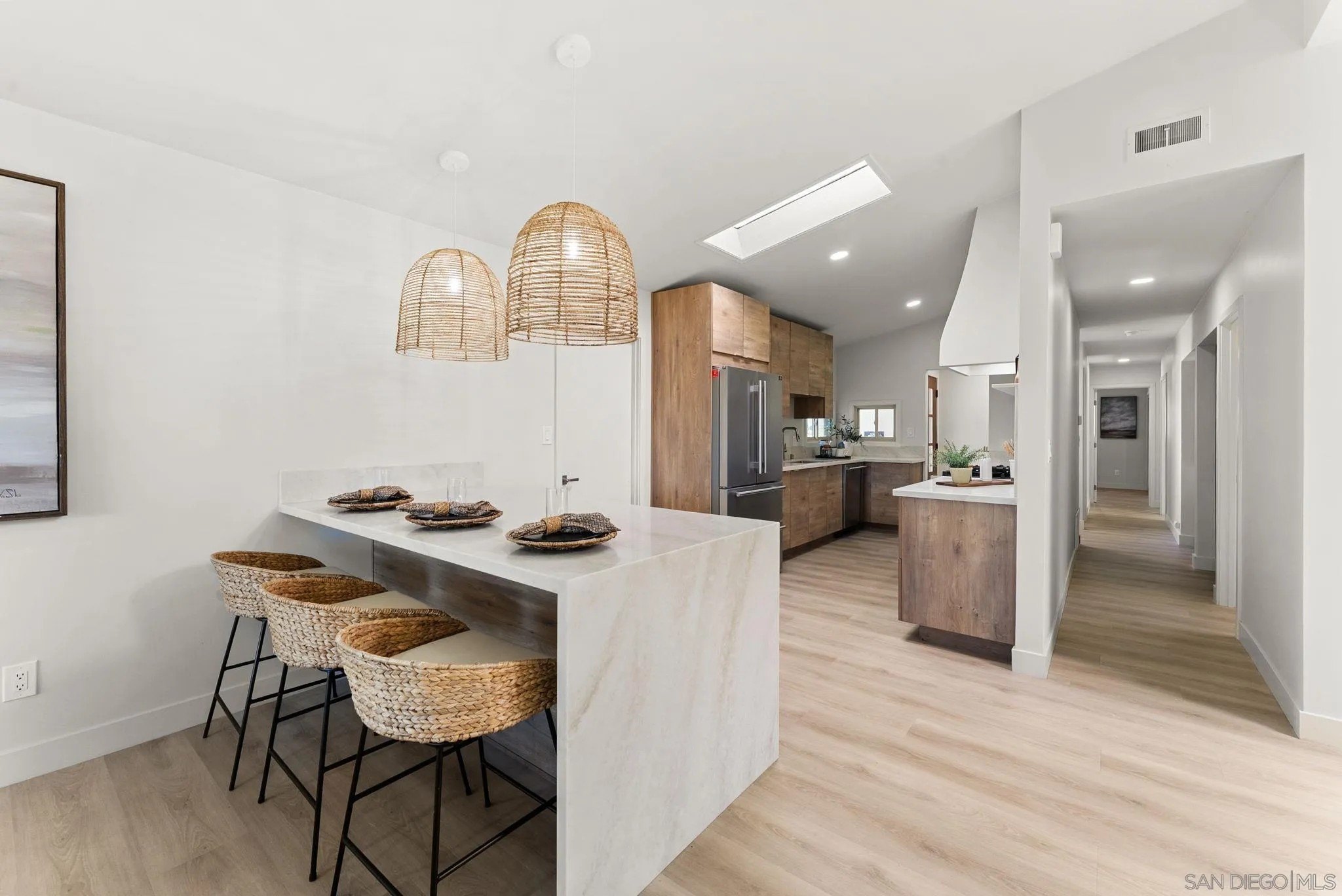 Stunning 5-Bedroom Canyon-View Retreat in Clairemont's Coveted Mount Streets. Perched in one of Clairemont's most sought-after neighborhoods, this fully renovated 5-bedroom home offers a rare blend of elegance, versatility, and breathtaking natural scenery. Designed for the discerning buyer, every detail of this renovation was crafted with quality and comfort in mind. Step inside and experience open-concept living at its finest, where the kitchen, dining, and living spaces flow seamlessly together, perfectly framing sweeping canyon views through expansive windows and sliding glass doors. The chef-inspired kitchen and bright dining area invite you to enjoy morning coffee or sunset sky dinners while taking in the serene canyon views that stretch to the trailheads below. With five full bedrooms, the home offers exceptional flexibility, ideal for large families, extended guest stays, or multi-generational living. One bedroom is perfectly positioned to double as a home office with an amazing view, providing an inspiring setting for remote work or creative pursuits. Outdoor living is effortless here. The open floor plan transitions naturally to the patio and backyard, creating the indoor-outdoor lifestyle San Diego is known for, perfect for entertaining or quiet evenings under the stars. Located in a quiet neighborhood, residents enjoy immediate access to premier hiking and biking trails right at the base of the canyon. Just a 3-minute drive to major shopping centers, restaurants, and convenient freeway access, and only 15 minutes from some of Southern California's best beaches.