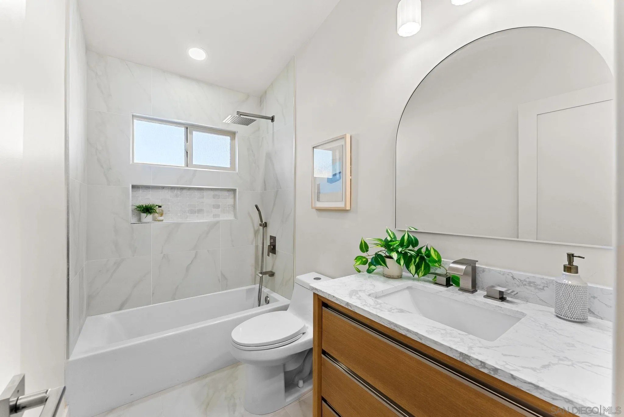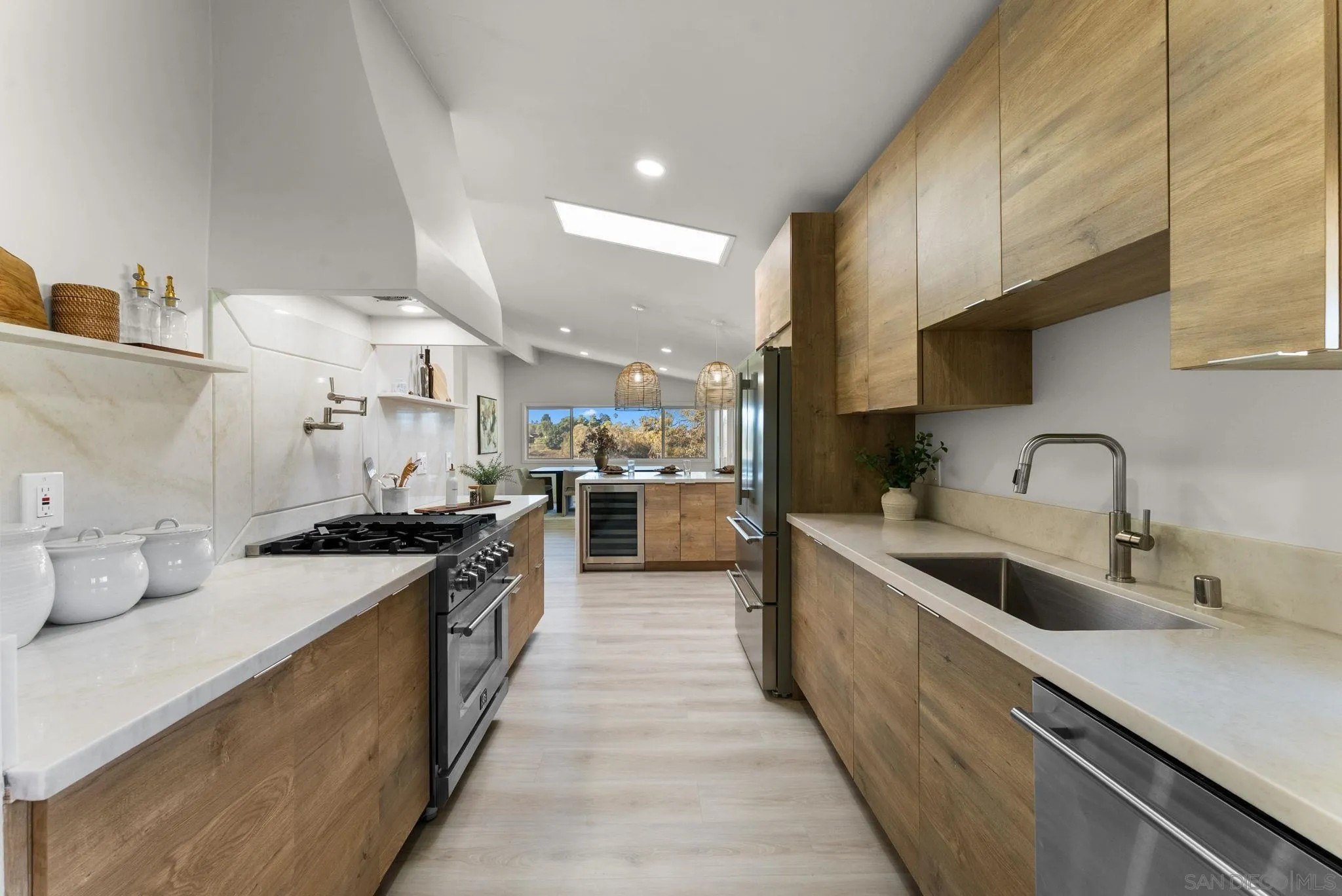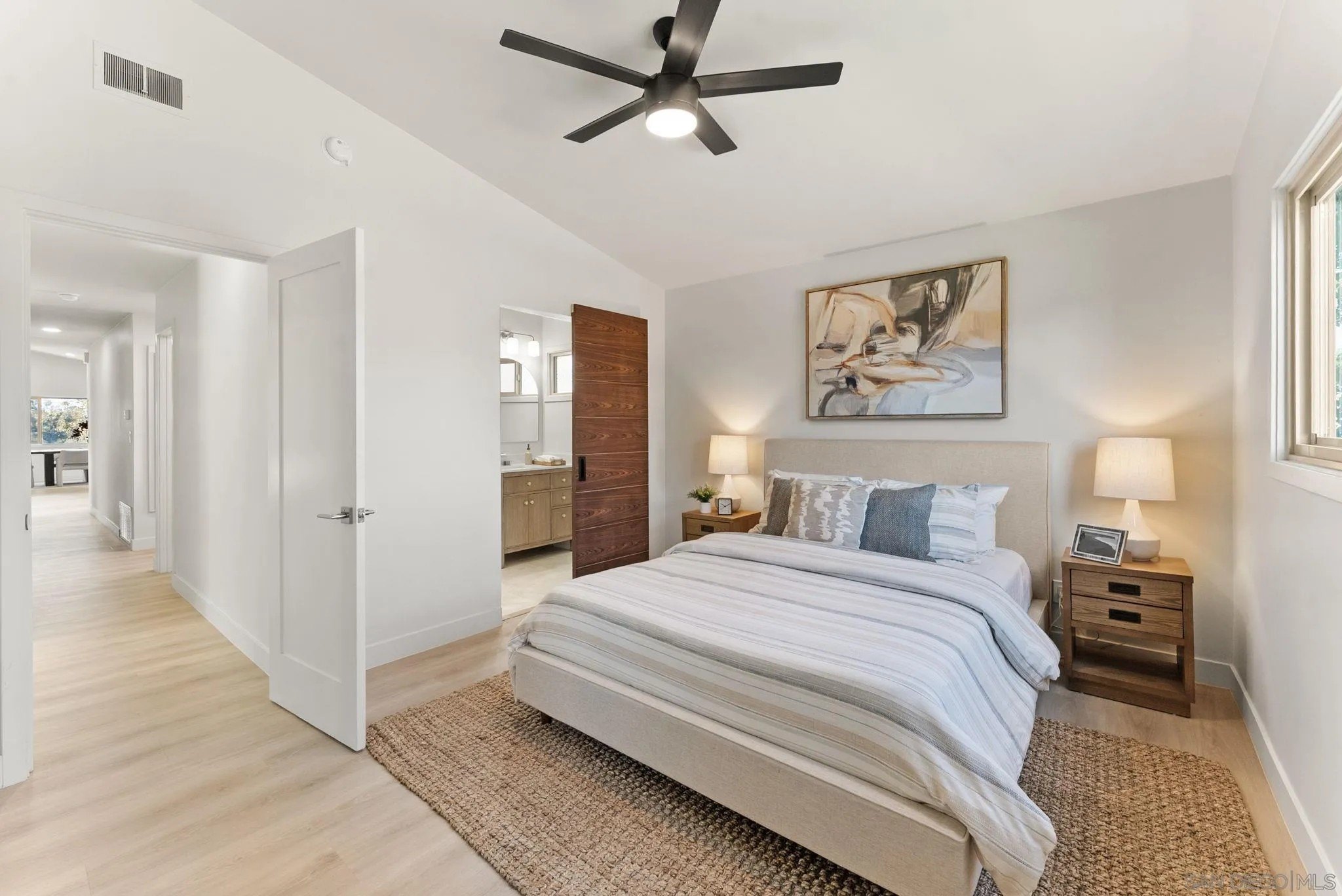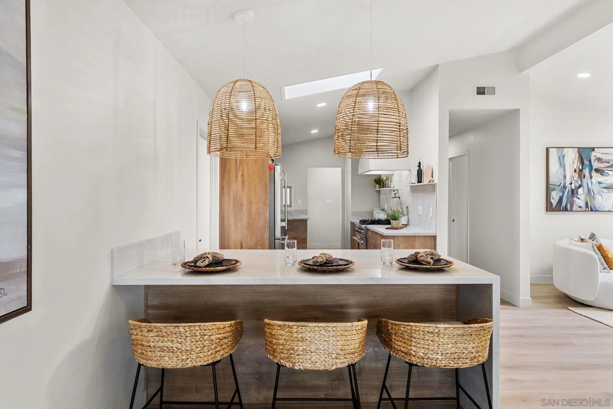 Stunning 5-Bedroom Canyon-View Retreat in Clairemont's Coveted Mount Streets. Perched in one of Clairemont's most sought-after neighborhoods, this fully renovated 5-bedroom home offers a rare blend of elegance, versatility, and breathtaking natural scenery. Designed for the discerning buyer, every detail of this renovation was crafted with quality and comfort in mind. Step inside and experience open-concept living at its finest, where the kitchen, dining, and living spaces flow seamlessly together, perfectly framing sweeping canyon views through expansive windows and sliding glass doors. The chef-inspired kitchen and bright dining area invite you to enjoy morning coffee or sunset sky dinners while taking in the serene canyon views that stretch to the trailheads below. With five full bedrooms, the home offers exceptional flexibility, ideal for large families, extended guest stays, or multi-generational living. One bedroom is perfectly positioned to double as a home office with an amazing view, providing an inspiring setting for remote work or creative pursuits. Outdoor living is effortless here. The open floor plan transitions naturally to the patio and backyard, creating the indoor-outdoor lifestyle San Diego is known for, perfect for entertaining or quiet evenings under the stars. Located in a quiet neighborhood, residents enjoy immediate access to premier hiking and biking trails right at the base of the canyon. Just a 3-minute drive to major shopping centers, restaurants, and convenient freeway access, and only 15 minutes from some of Southern California's best beaches.