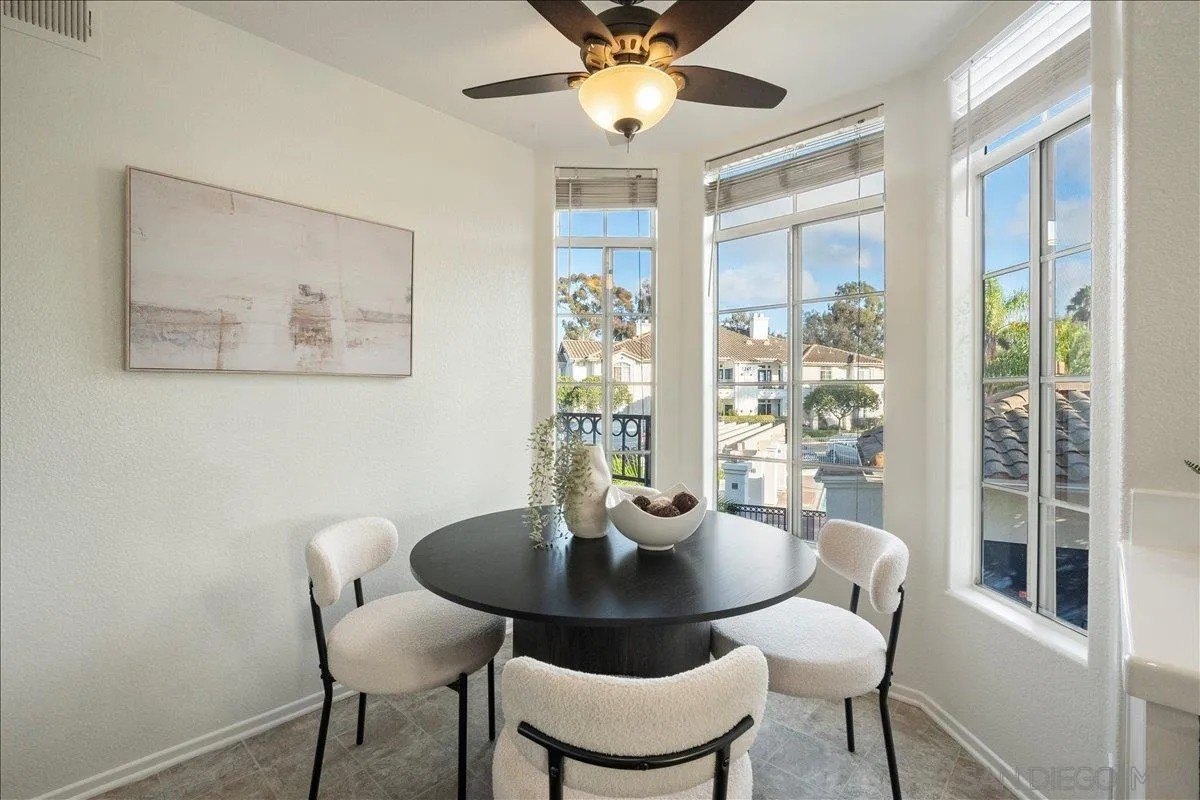Luxury FHA/VA approved community! Welcome to your new coastal retreat in the "heart of Oceanside," Rancho Del Oro! This top-floor, end-unit condo offers comfort, privacy, & convenience. Freshly painted and filled with natural light, the home features two private balconies, ideal for morning coffee or evening sunsets. Inside, enjoy an airy, open layout with a spacious living area with cozy fireplace, well-designed kitchen, and peaceful bedrooms that capture gentle breezes. The unit includes a detached 1-car garage plus an additional assigned parking space. Located in a gated and well-maintained community, residents enjoy beautifully landscaped grounds, a community pool, and a quiet, welcoming atmosphere. Perfectly positioned just two miles from Carlsbad and minutes to MiraCosta College, this home offers easy access to the 78 freeway, the Shoppes at Carlsbad, and Oceanside's best dining, beaches, and entertainment. Whether you're a first-time buyer, investor, or downsizing, this light-filled condo offers the best of North County coastal living: modern comfort, unbeatable location, and timeless value.