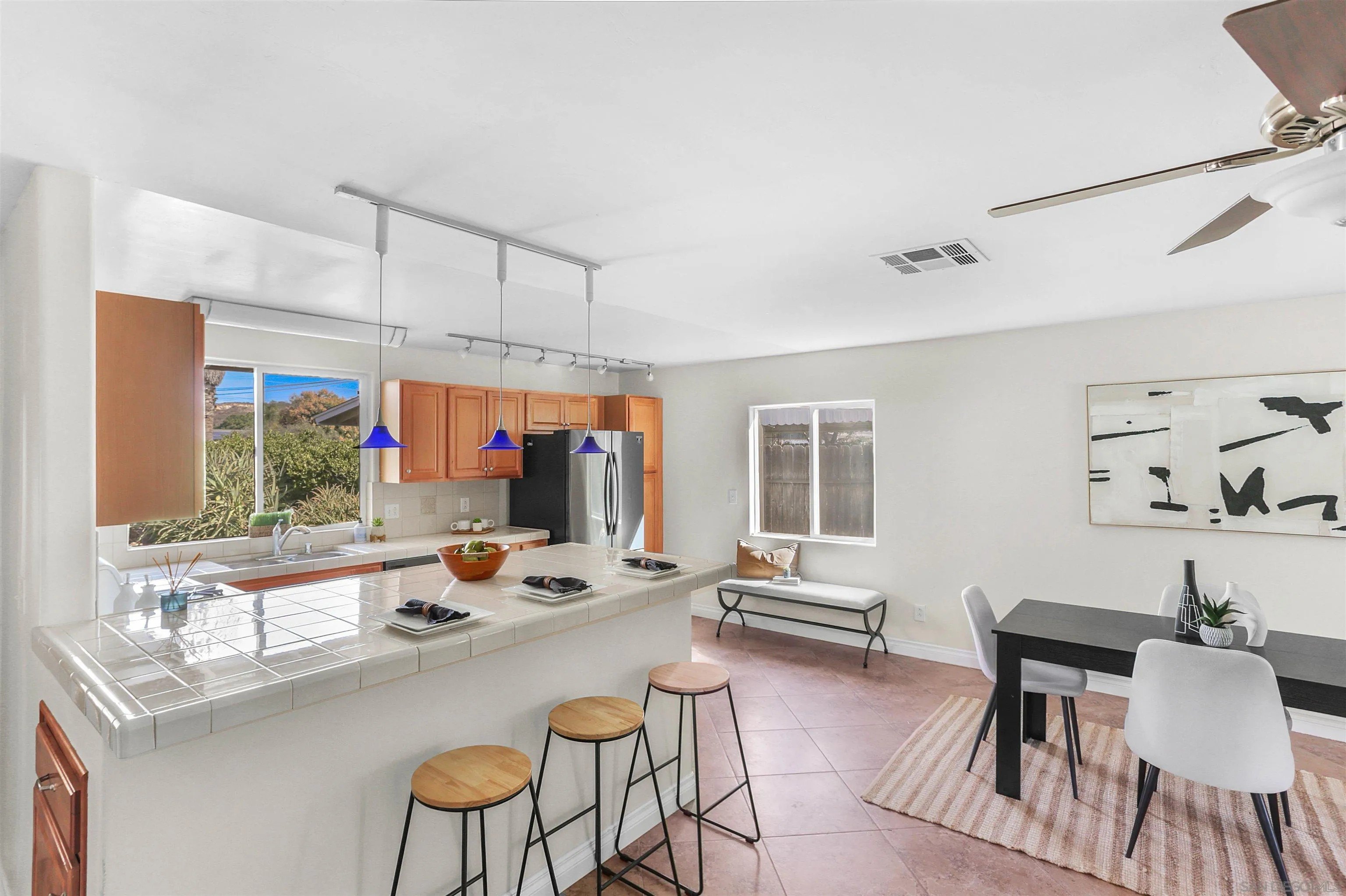 This cozy, single-story Poway home is just waiting for you to pull in the driveway and take a peek. Nestled at the end of a cul-de-sac-like street, with only one neighbor to the east, you'll immediately notice the breezes through the palms and the beaconing of the colorful lantana dotting the path to the front door. "Home" whispers softly in your thoughts. (Supplement)