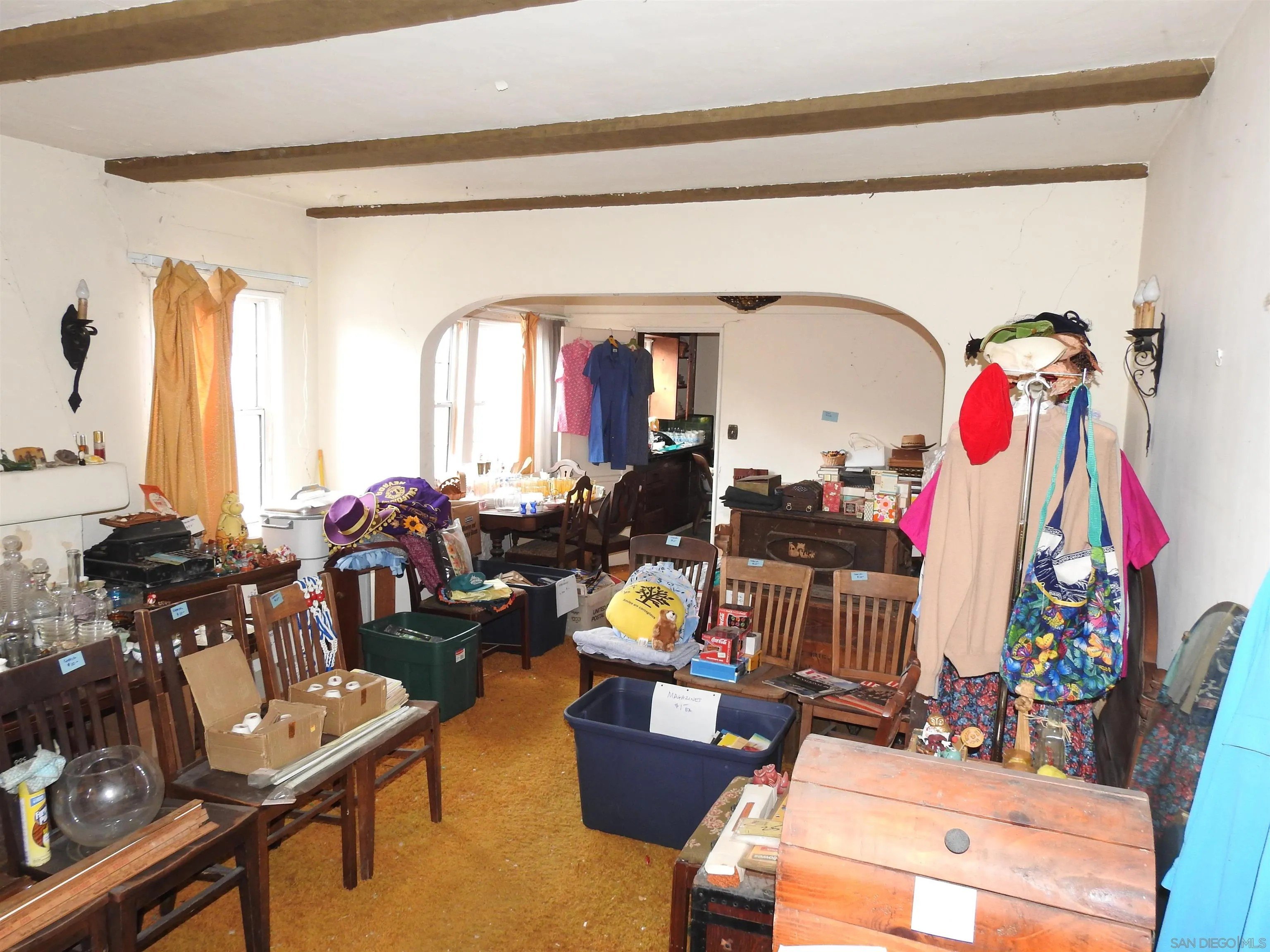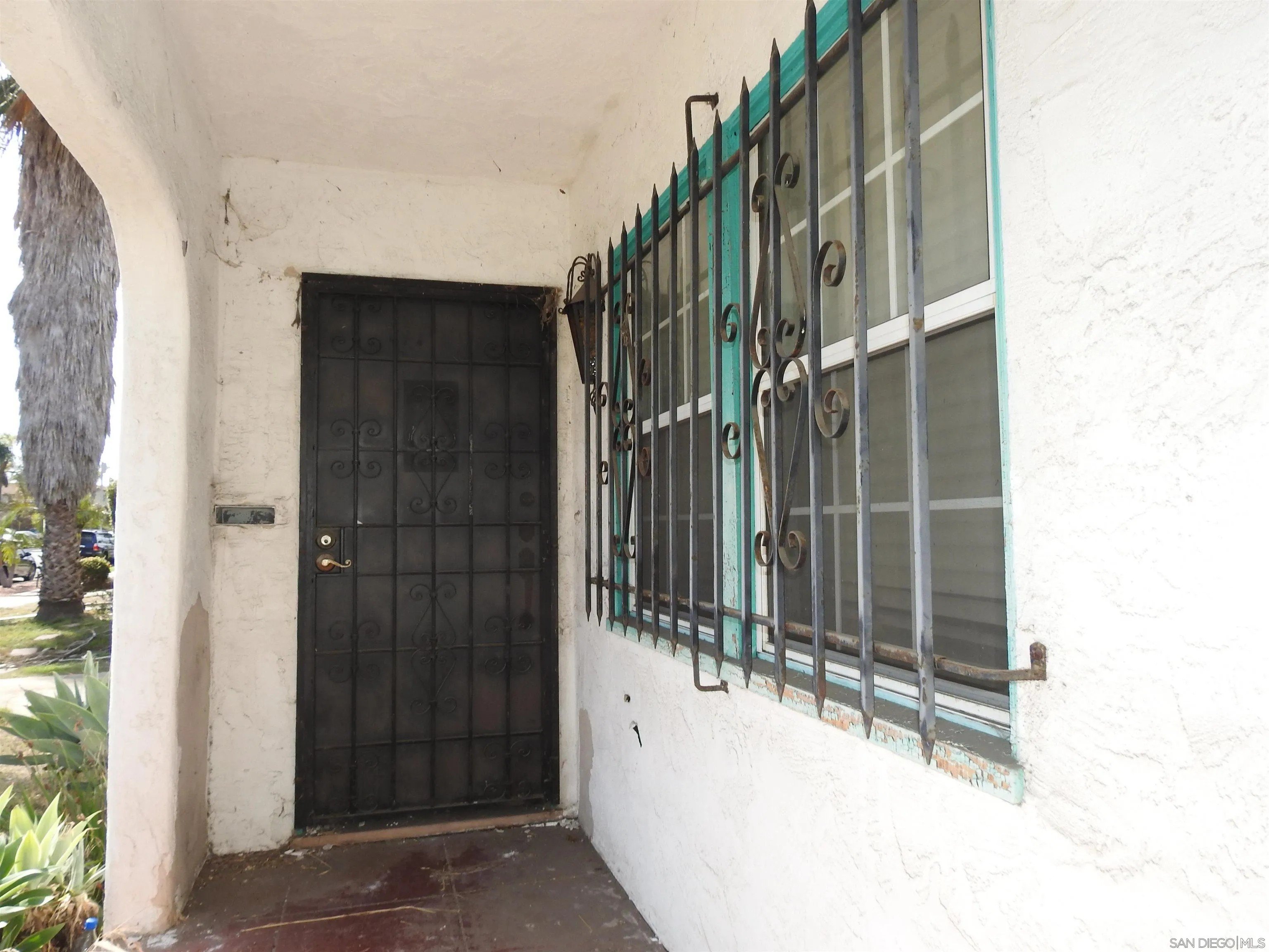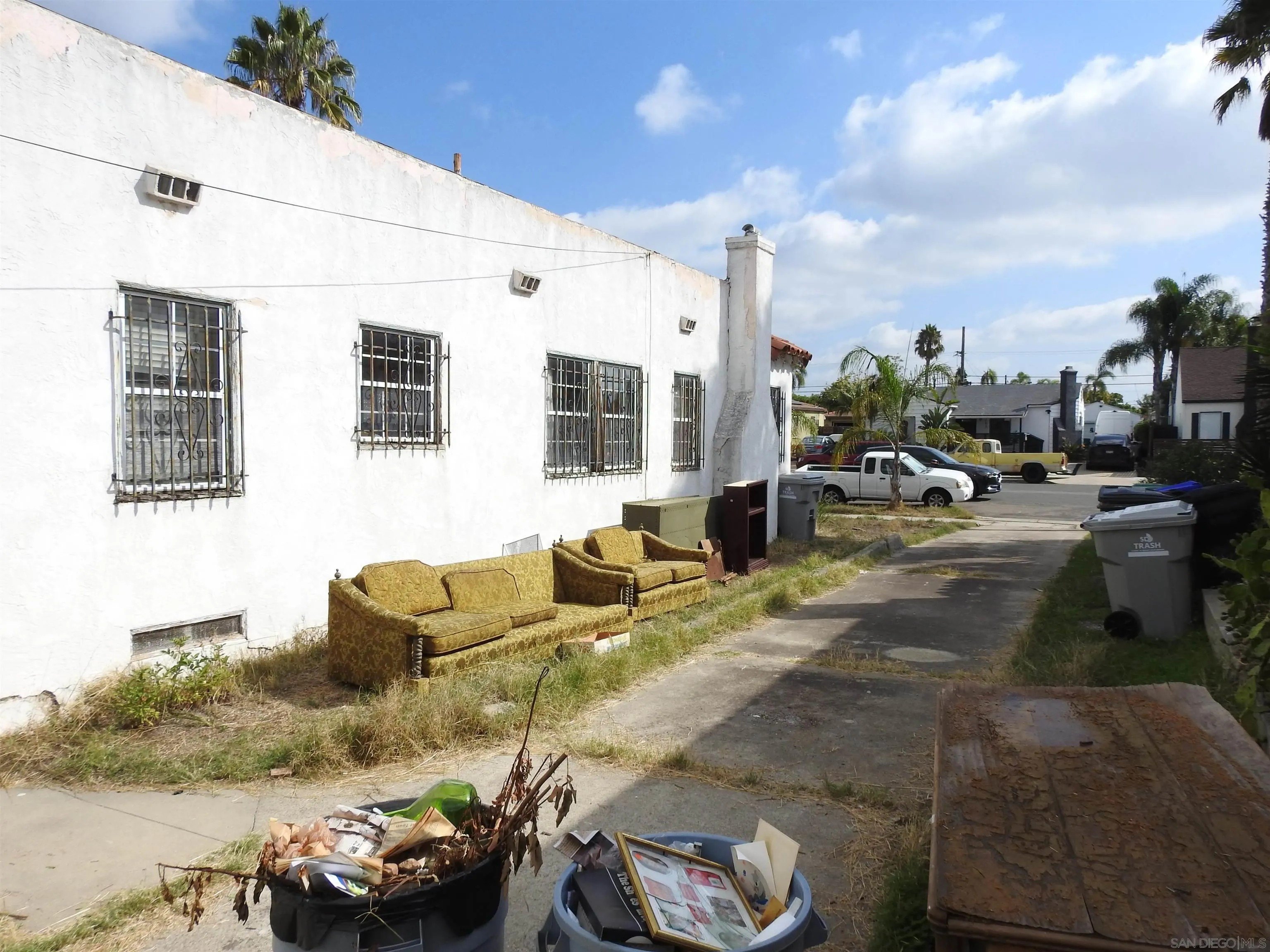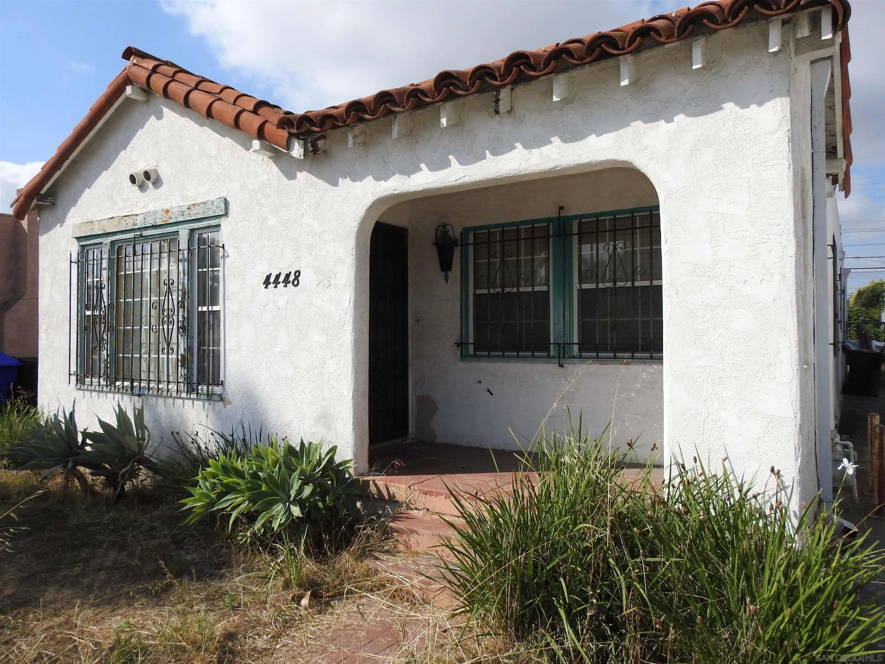 Normal Heights early century Spanish style 1,312 square feet cottage with great quite location, detached garage and large back yard. Nestled in between the 15 and 805 freeways and Adams Ave. and El Cajon Blvd, in a desirable walkable neighborhood. This cozy bungalow built in 1932 offers a covered porch to living room with original 1930's front door, to living room with coved beam ceilings and fireplace with many original light fixtures. Archway to dining room which leads to hallway with one bath with classic tiled tub. Two bedrooms - King Bed fits nicely in the primary bedroom while the second bedroom opens to a walk through third bonus room with built in bookcases and access door to backyard. The home is set on a Set on a generous 6,235 sq./ft. RS-1-7 lot with expansive backyard that is perfect for hosting gatherings with family and friends or future expansion or ADU. Detached one car garage with plenty of extra driveway off street tandem parking for cars, RV, etc. Major fixer that offers incredible potential for investors or buyers ready to renovate. Will make a great project for someone that wants to preserve a historic home.