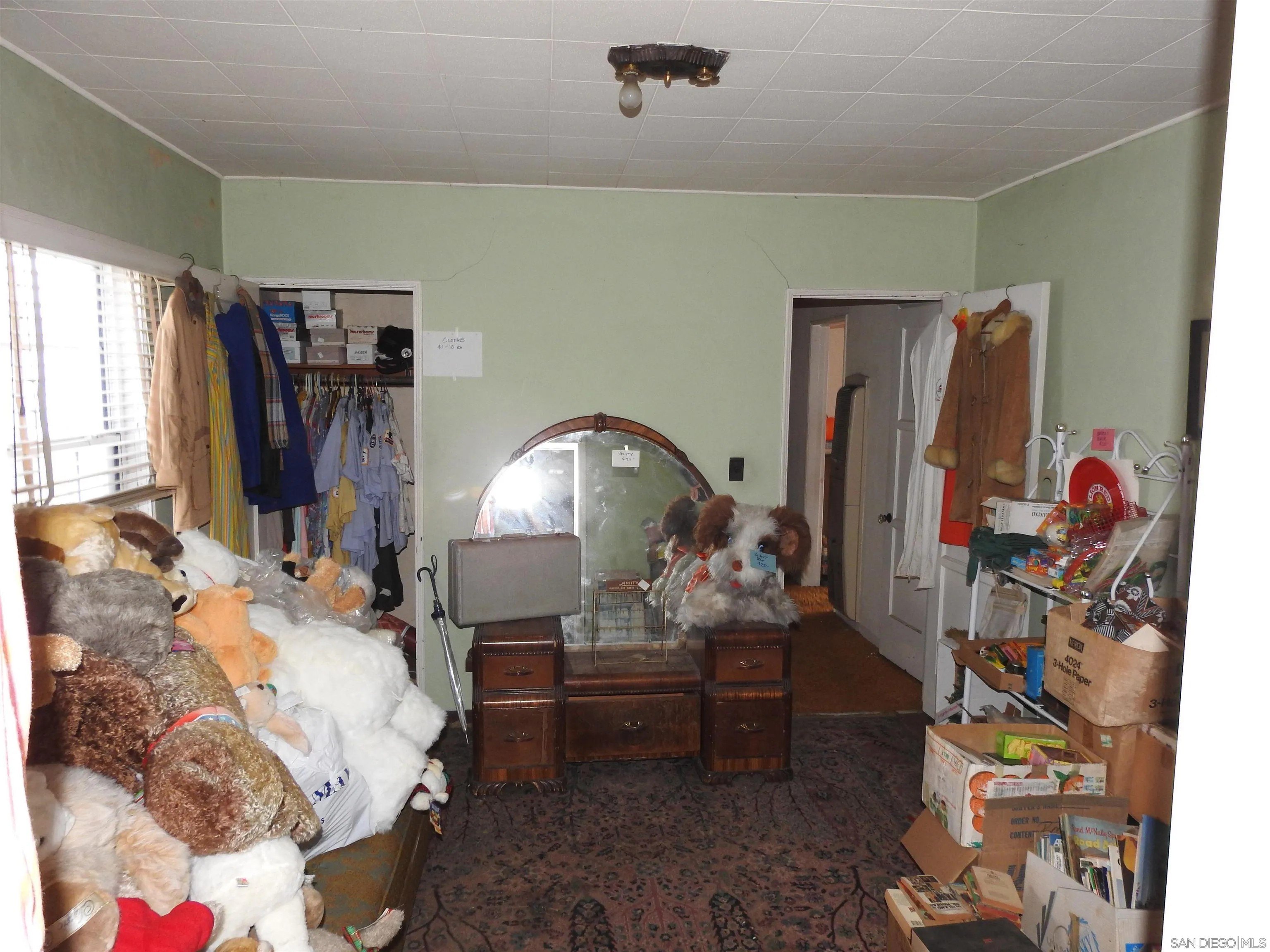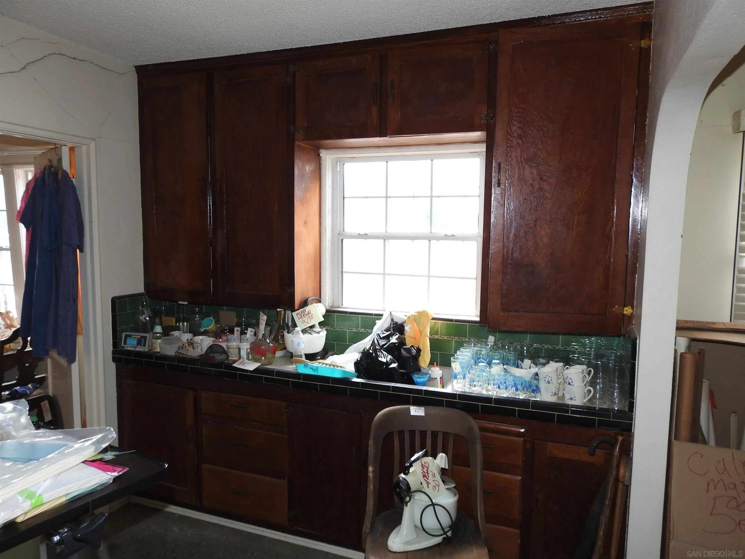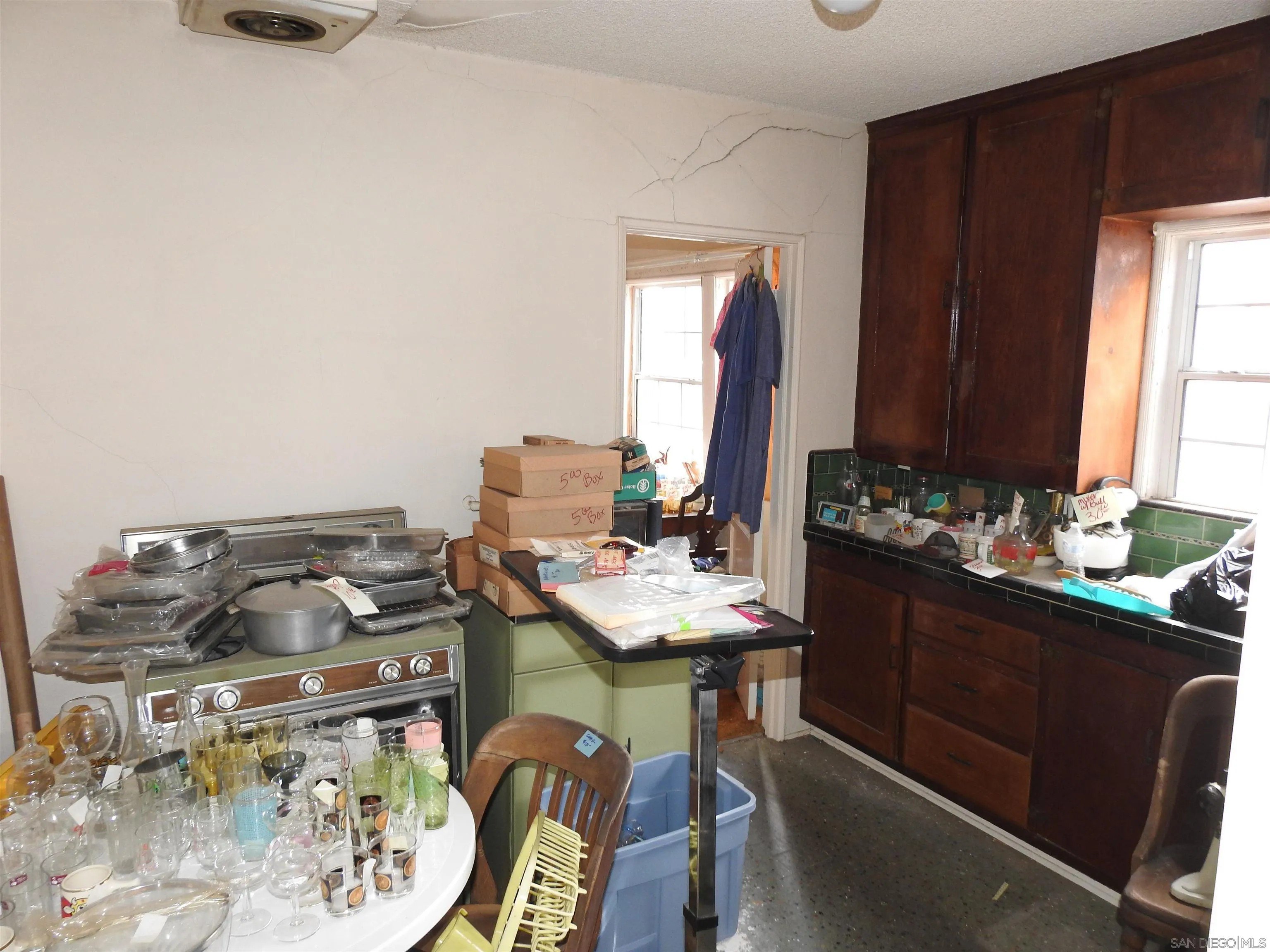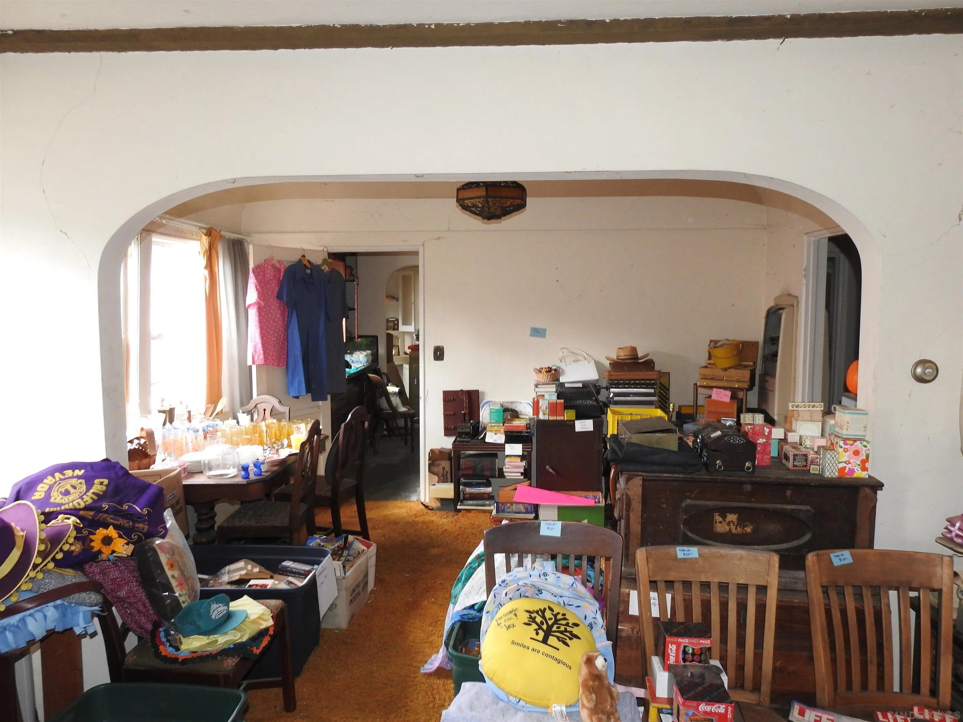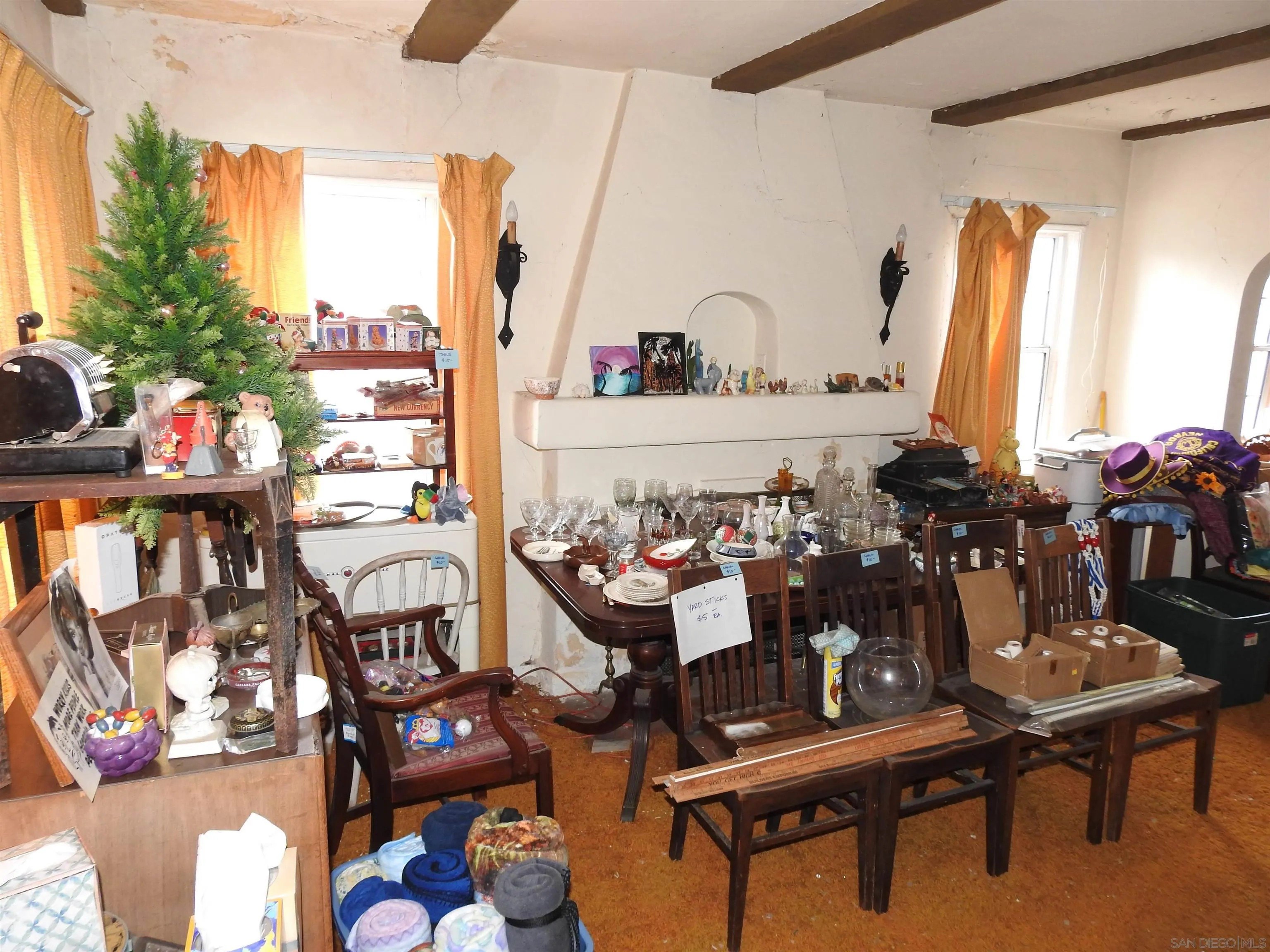 Normal Heights early century Spanish style 1,312 square feet cottage with great quite location, detached garage and large back yard. Nestled in between the 15 and 805 freeways and Adams Ave. and El Cajon Blvd, in a desirable walkable neighborhood. This cozy bungalow built in 1932 offers a covered porch to living room with original 1930's front door, to living room with coved beam ceilings and fireplace with many original light fixtures. Archway to dining room which leads to hallway with one bath with classic tiled tub. Two bedrooms - King Bed fits nicely in the primary bedroom while the second bedroom opens to a walk through third bonus room with built in bookcases and access door to backyard. The home is set on a Set on a generous 6,235 sq./ft. RS-1-7 lot with expansive backyard that is perfect for hosting gatherings with family and friends or future expansion or ADU. Detached one car garage with plenty of extra driveway off street tandem parking for cars, RV, etc. Major fixer that offers incredible potential for investors or buyers ready to renovate. Will make a great project for someone that wants to preserve a historic home.