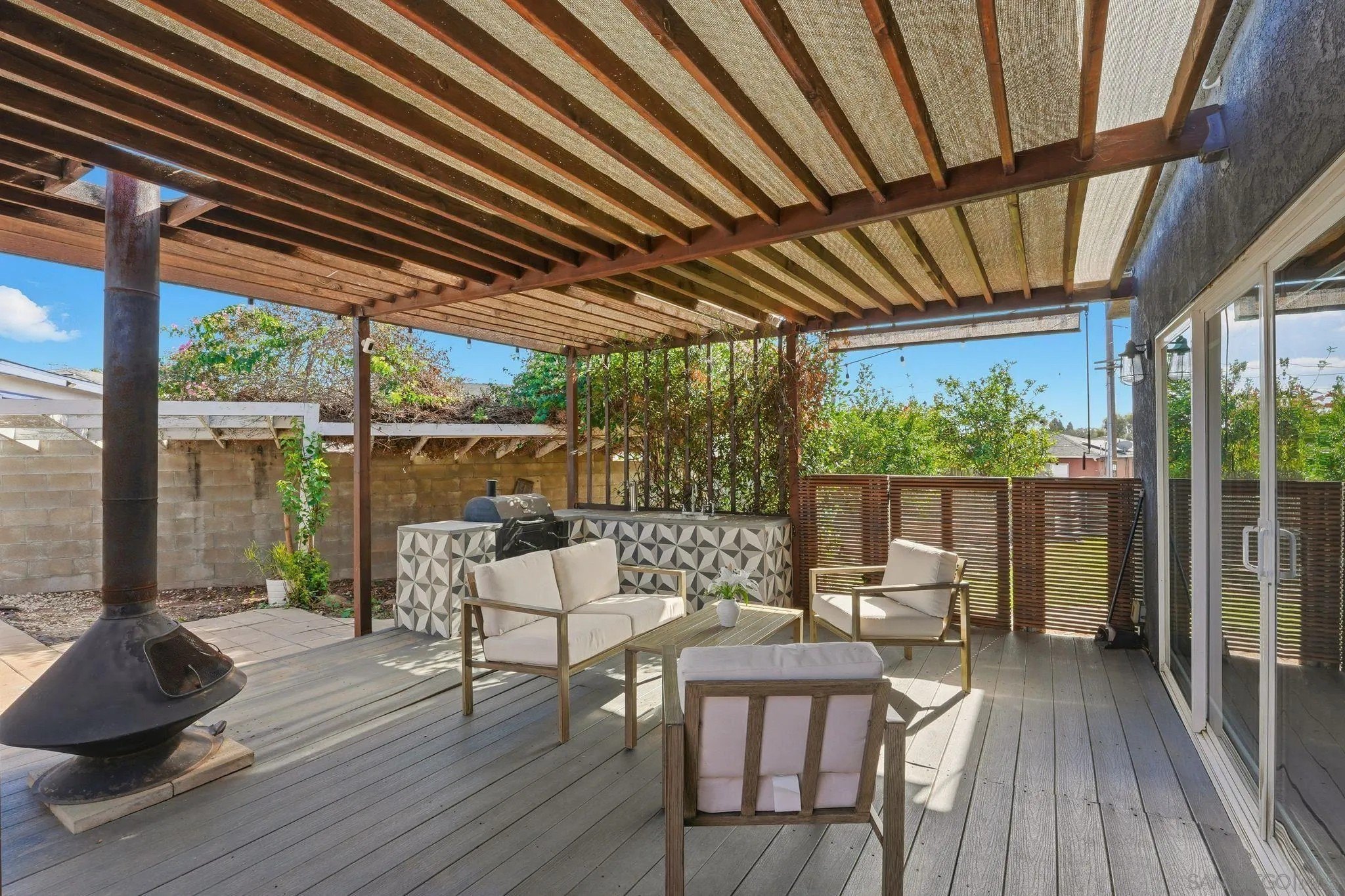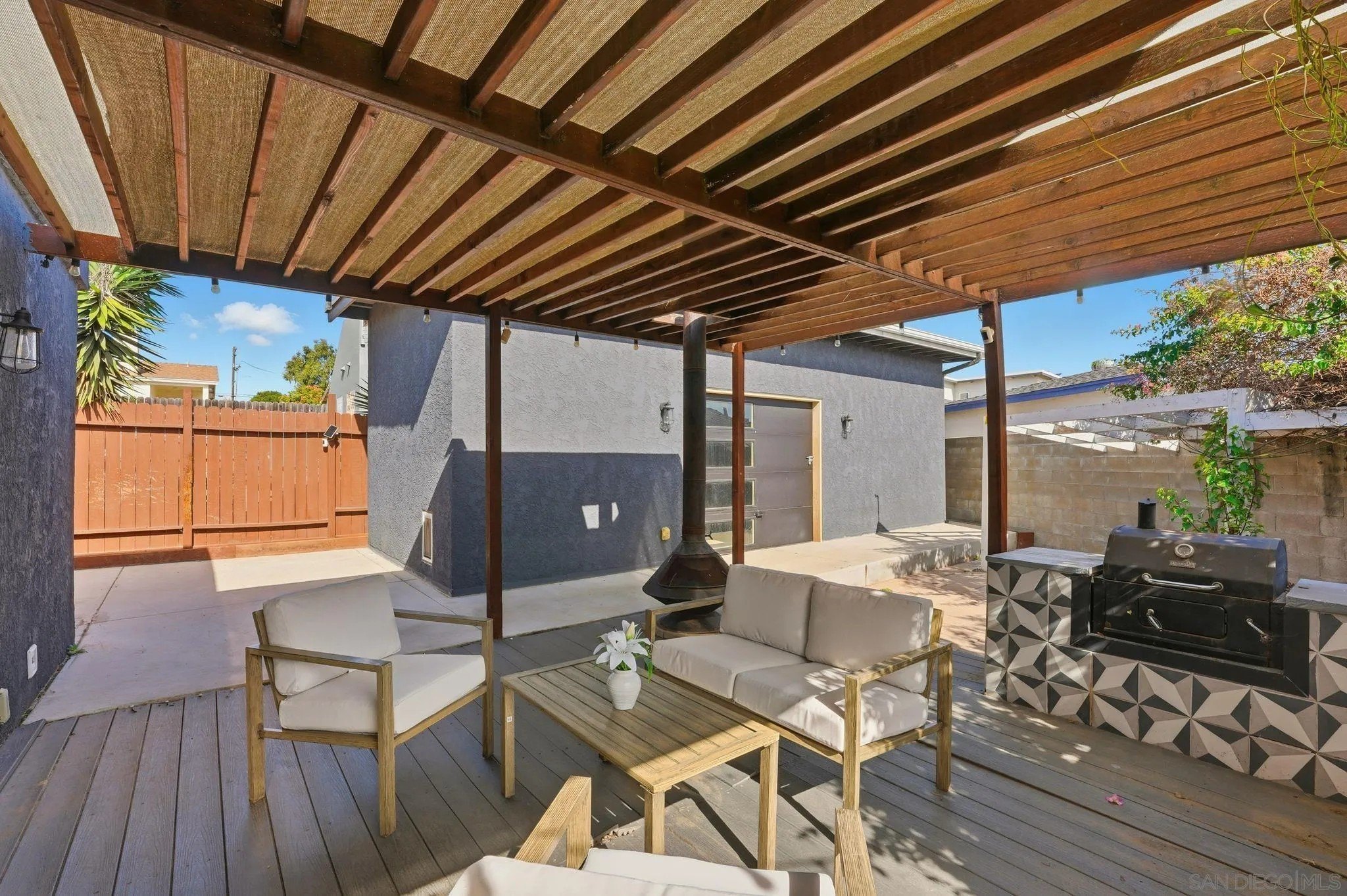 Discover this stunning 2 bedroom, 2 bath San Diego home featuring a versatile optional third bedroom perfect for modern living. An entertainer's dream awaits outdoors with a fenced grassy yard and a separate patio complete with a built-in fireplace and outdoor kitchen. A detached garage provides an incredible bonus space, ideal for a home office, gym, or extensive storage.