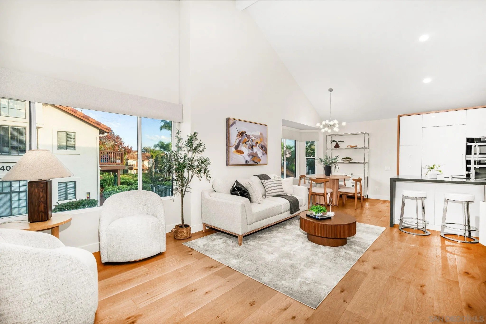 Every inch of this Carmel Del Mar residence has been elevated with precision, care, and contemporary sophistication. Thoughtfully remodeled from top to bottom, this home embodies the perfect balance of design and comfort. The heart of the home is a stunning, open living and dining space filled with natural light and complemented by upgraded Hunter Douglas motorized shades for effortless ambiance. The kitchen is a true showpiece-sleek high-gloss cabinetry, top-of-the-line Miele appliances including an induction cooktop and oven, and an integrated Liebherr refrigerator and freezer combine to create a space that's both functional and visually striking. Designer upgrades, clean lines, premium finishes, and an intuitive layout make it ideal for both daily living and entertaining. The primary suite offers a serene escape with a spa-like bathroom featuring a luxurious soaking tub, top of the line Kohler Veil toilet with bidet functionality, and refined modern finishes. Custom closets throughout enhance organization and flow, ensuring every space feels intentional and elevated. Additionally this community offers a beautiful pool and hot tub, tennis courts, and serene atmosphere. Perfectly situated in the highly sought-after Carmel Del Mar community, this home captures the best of Carmel Valley living-steps from award-winning schools, scenic parks, coastal trails, and a vibrant mix of dining and shopping. Every detail reflects thoughtful design, timeless style, and the ease of modern living.