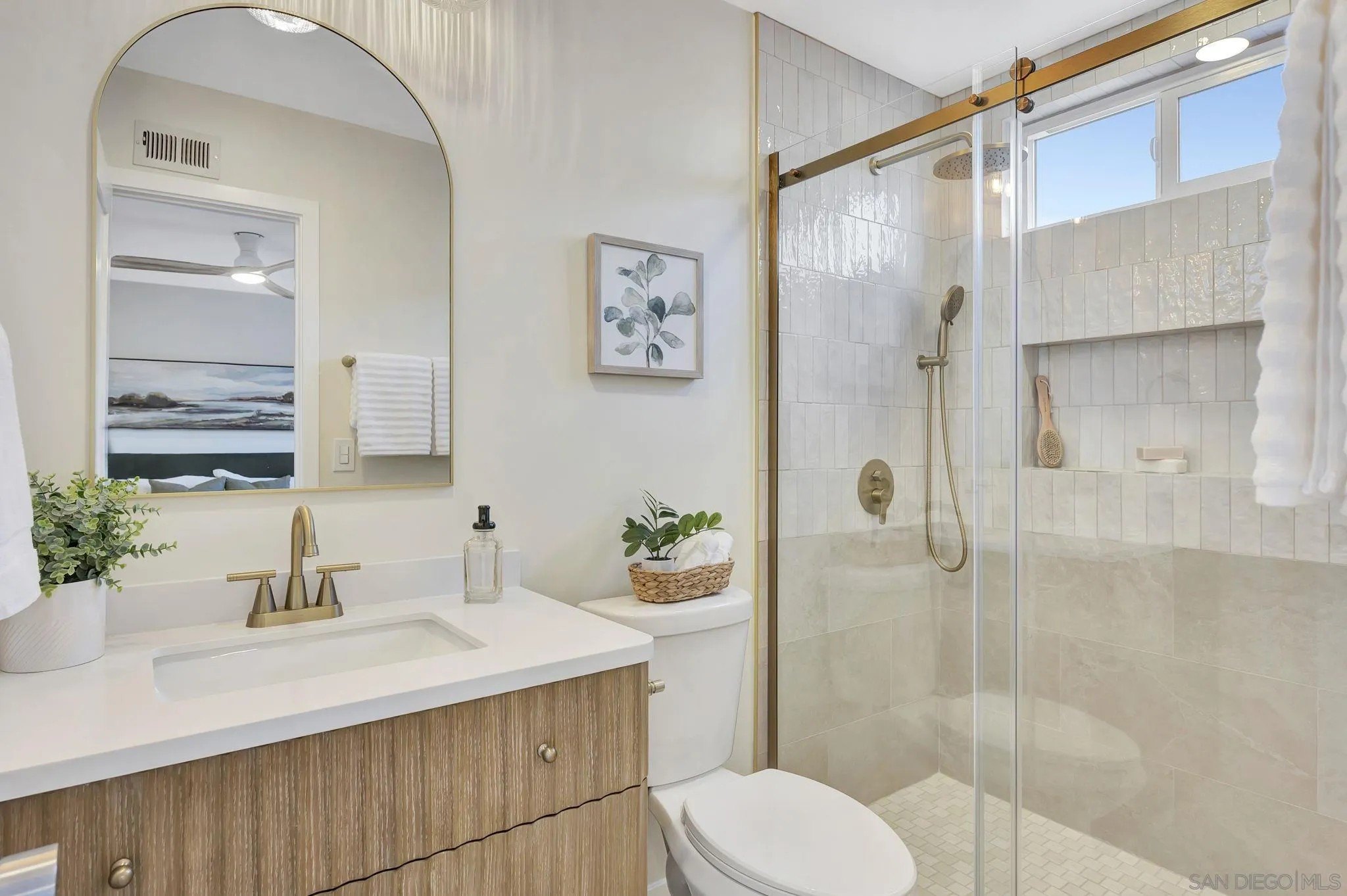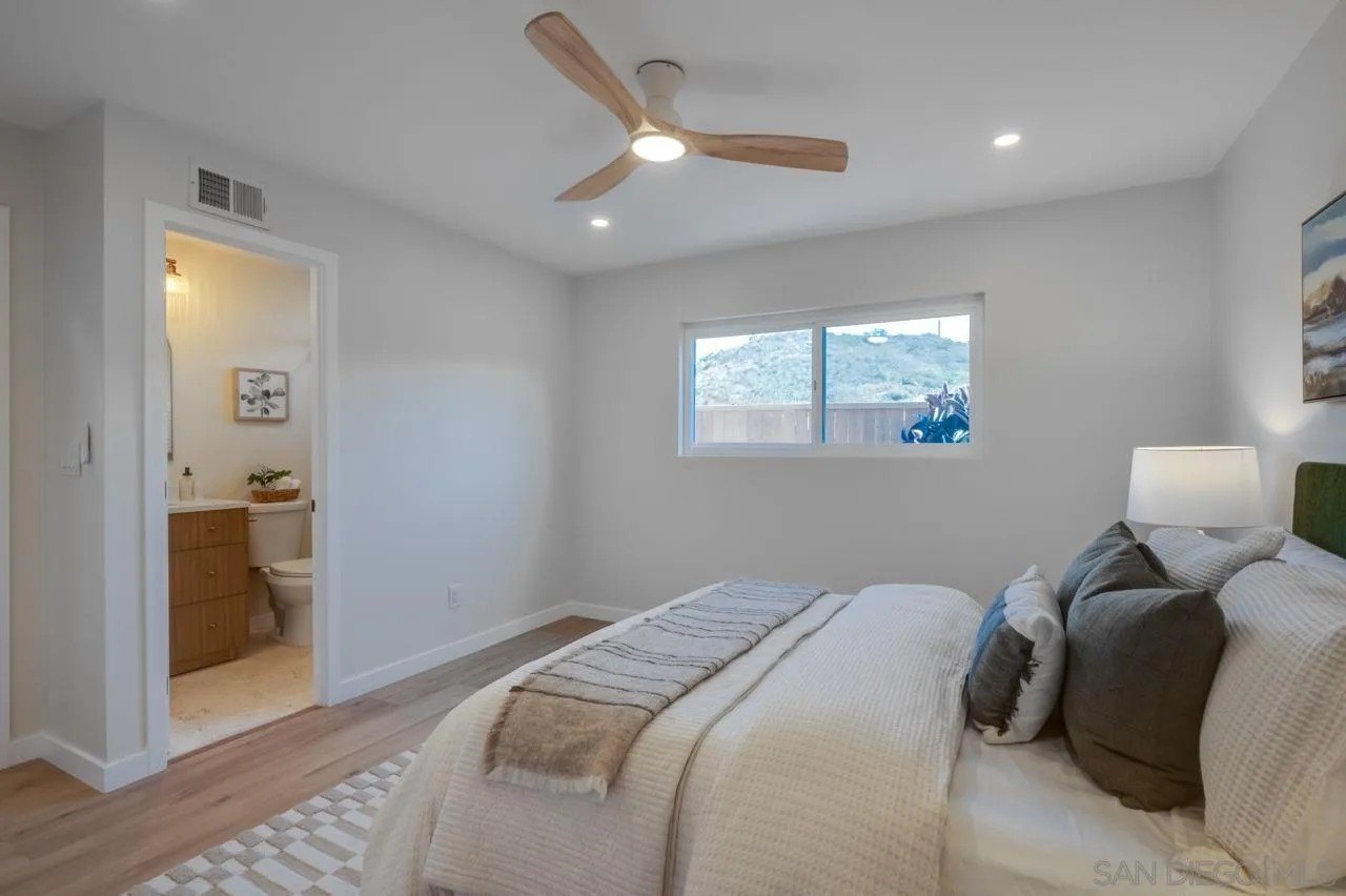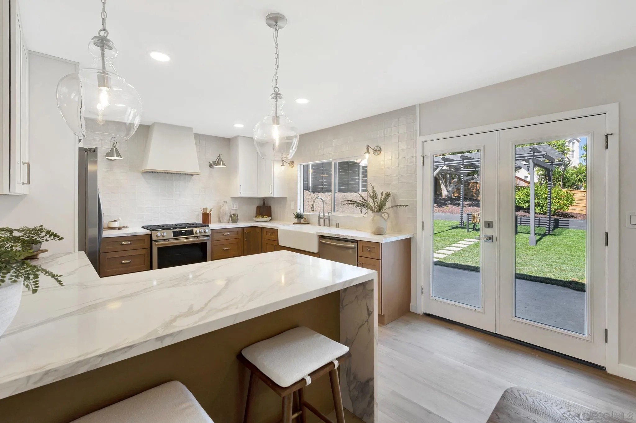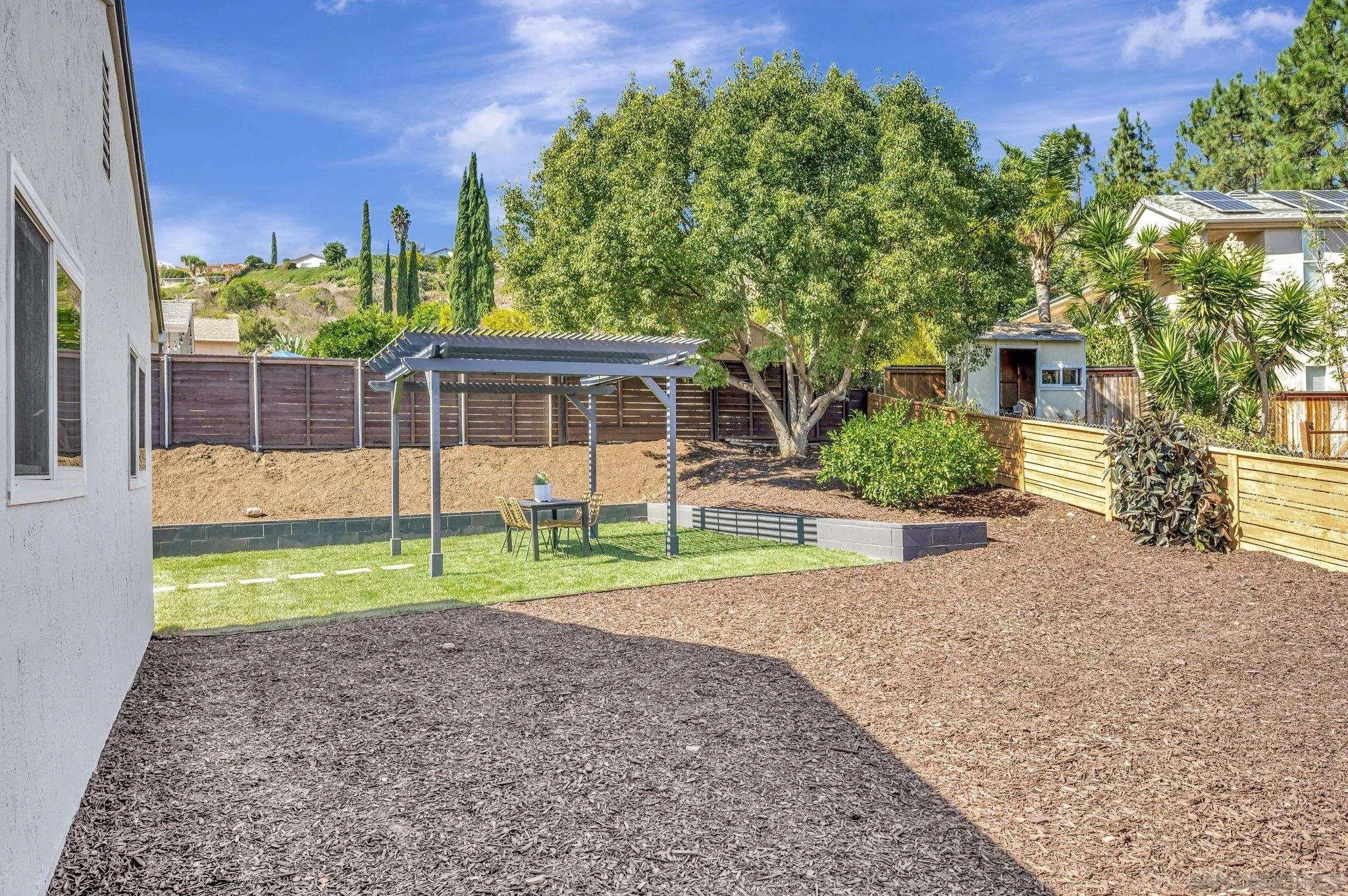 Welcome to this freshly remodeled 3-bedroom, 2-bathroom single-story home in the heart of Rancho Penasquitos, located within the highly sought-after Poway School District. Inside, you'll find custom paneling, accent lighting, and stylish LVP flooring throughout. The kitchen features quartz countertops, oak-finish cabinets, and new stainless steel appliances. Additional upgrades include a brand-new HVAC system for year-round comfort. French doors open to a backyard with hill views, a charming outdoor pergola, and fresh sod, while the front yard showcases beautiful native landscaping, creating inviting curb appeal and effortless maintenance.