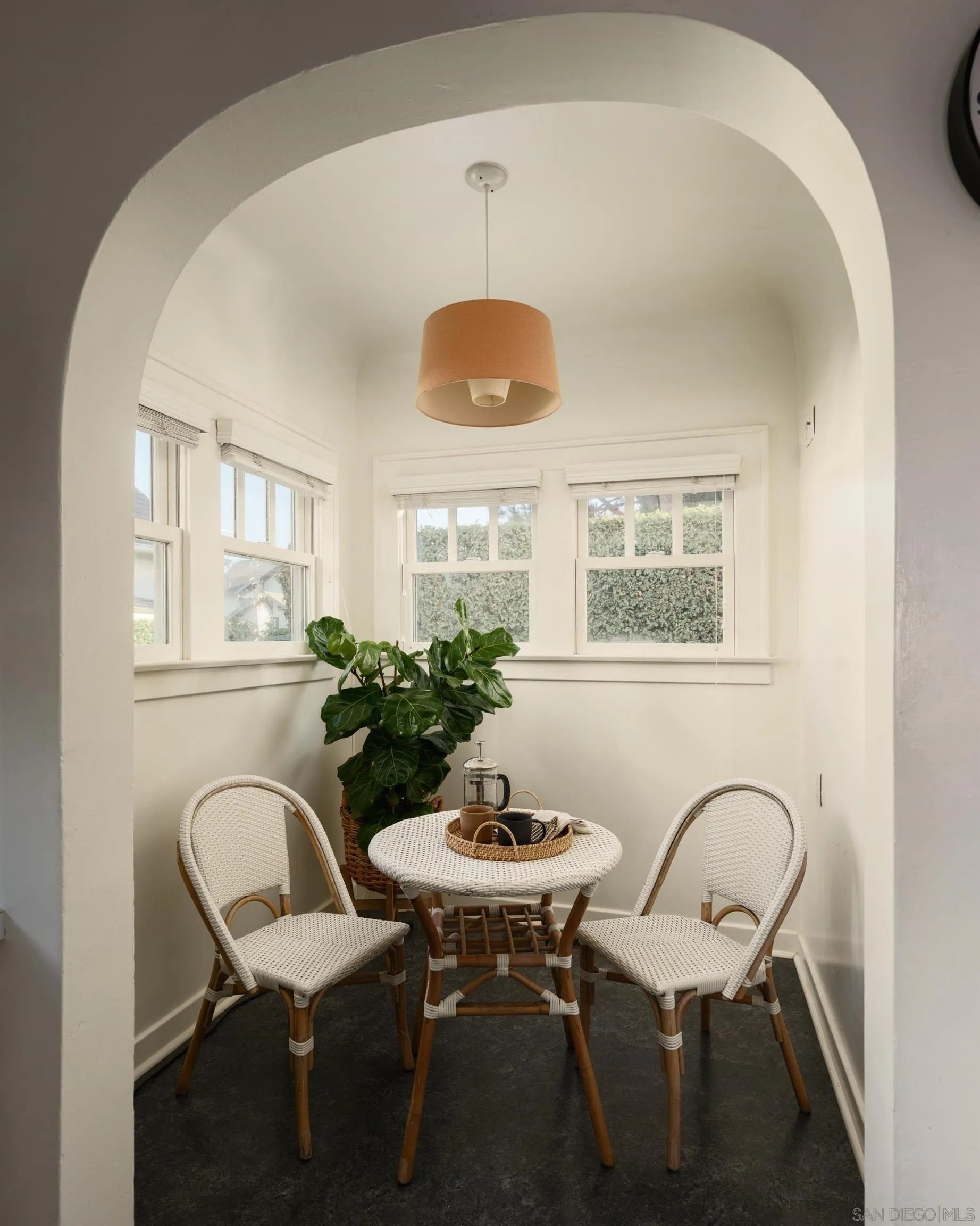 South Mission Hills Spanish Beauty! Single-level architectural gem featuring a dramatic entry, welcoming front porch, gracious living room, formal dining room, den/library, breakfast nook, and laundry room with a new Bosch washer and dryer. Abundant natural light fills the home, especially in the breakfast nook and sunroom, which glow beautifully in the morning. Ten-foot barrel ceilings and rich gumwood trim add warmth, craftsmanship, and historic character, complemented by hardwood floors and a Batchelder tile fireplace. Thoughtful 2011 remodeling respected the home's heritage while adding tasteful modern updates for comfortable everyday living. Enjoy seamless indoor-outdoor flow with French doors opening to a spacious private backyard surrounded by mature trees and tall hedges, perfect for lounging, dining, or play. The detached, finished garage offers excellent flex space. Evening curb appeal shines with architectural lighting that highlights the home's Spanish Revival charm. Ideally situated on a wide, quiet street with minimal traffic and easy parking. Walk to neighborhood favorites like La Puerta, Starlite, Fort Oak, Communion, Heartwork Coffee, and Lazy Acres. Enjoy a strong sense of community with local parades, concerts, and festive celebrations. Centrally located with quick access to Mission Hills, Hillcrest, Old Town, downtown, the airport, and Balboa Park.