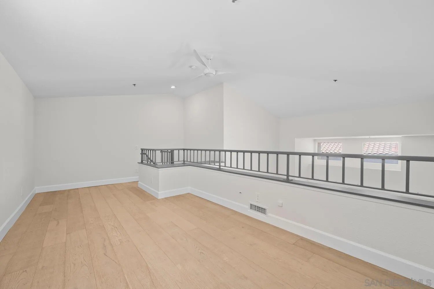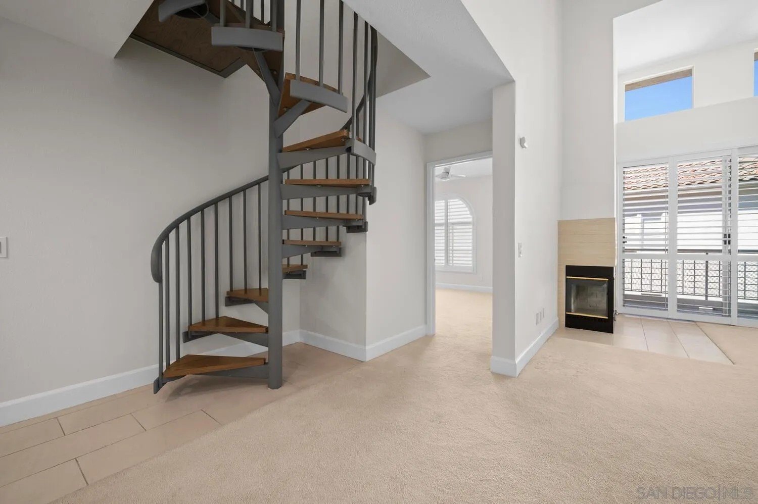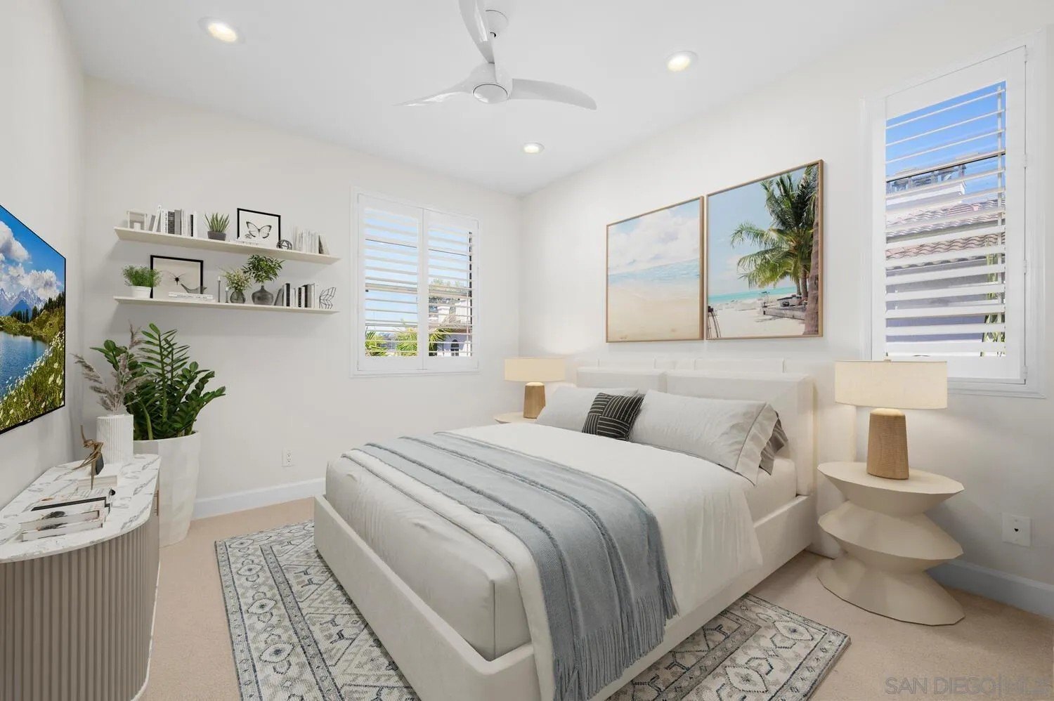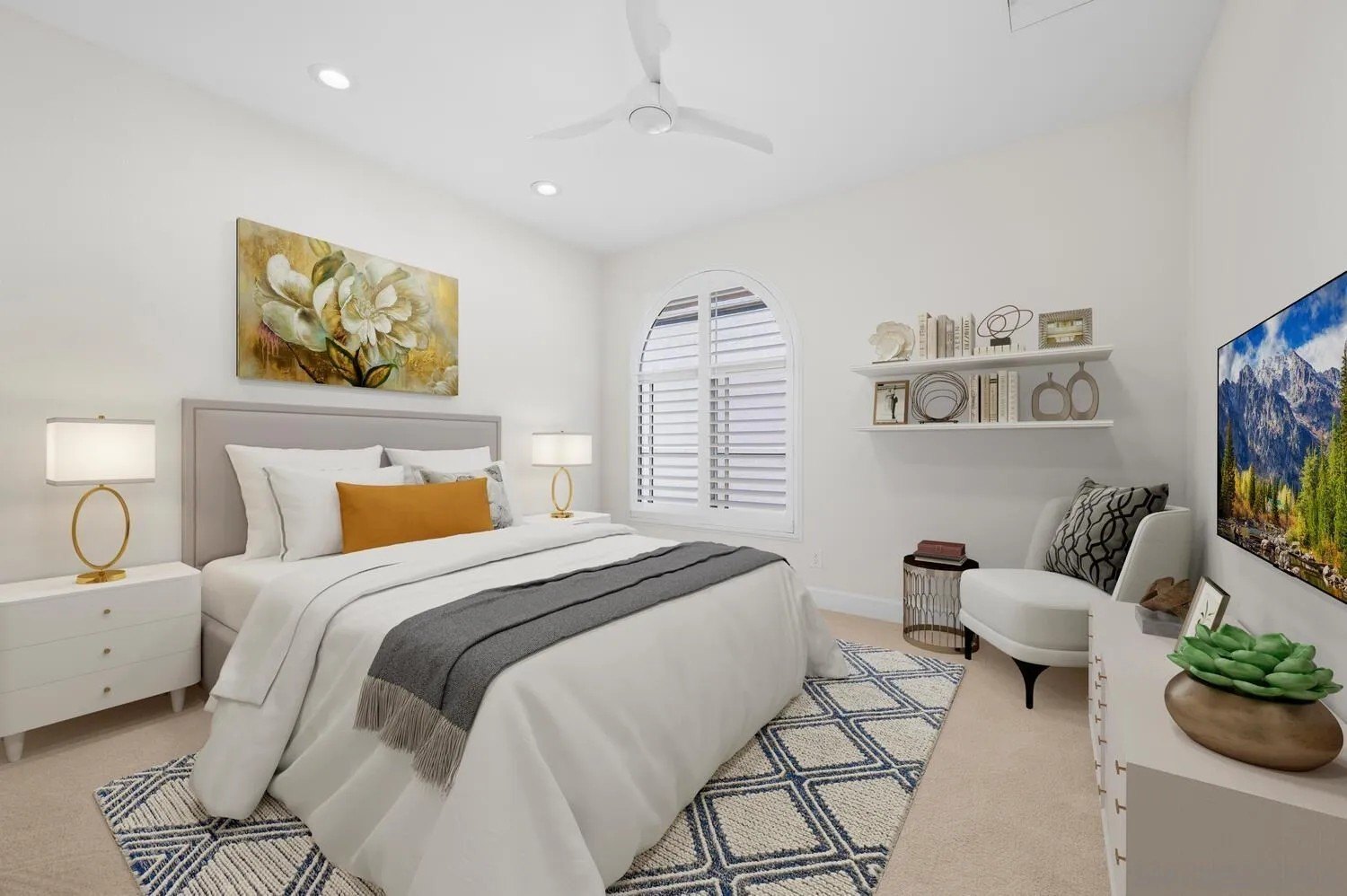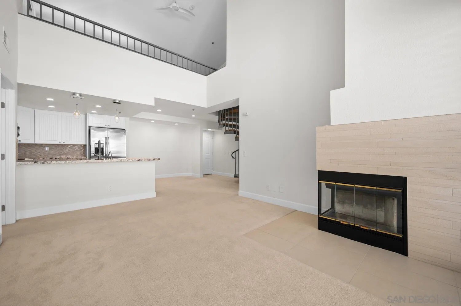 Experience elevated living in the heart of Mission Valley in this stunning top-floor end-unit condominium. With only one shared wall, enjoy exceptional peace and quiet along with soaring vaulted ceilings and a private balcony that create an open and airy atmosphere with tranquil views of the community's inner courtyard. The thoughtfully designed split floor plan features spacious primary and secondary suites on opposite sides of the home, separated by open-concept living areas for maximum privacy.