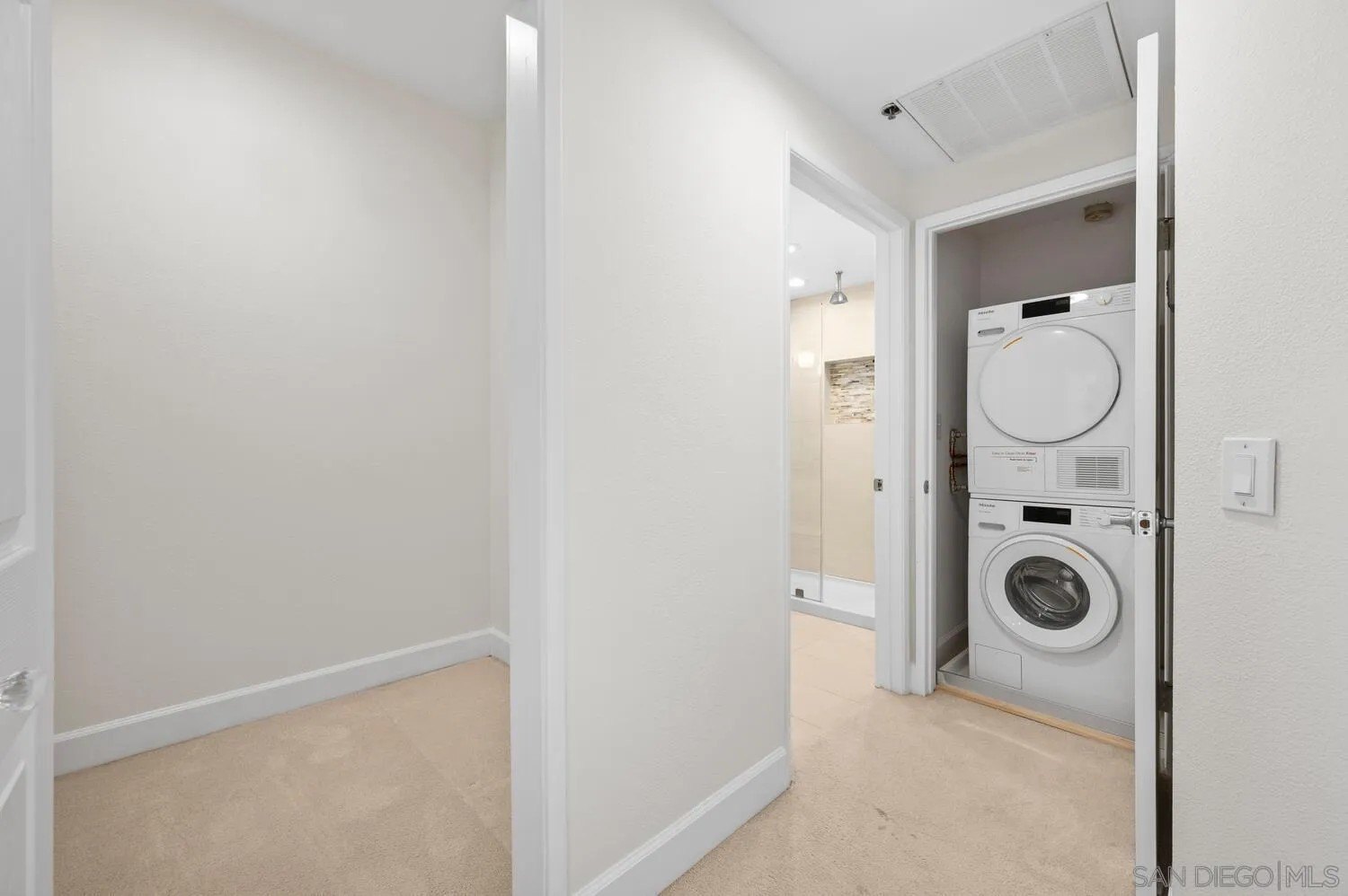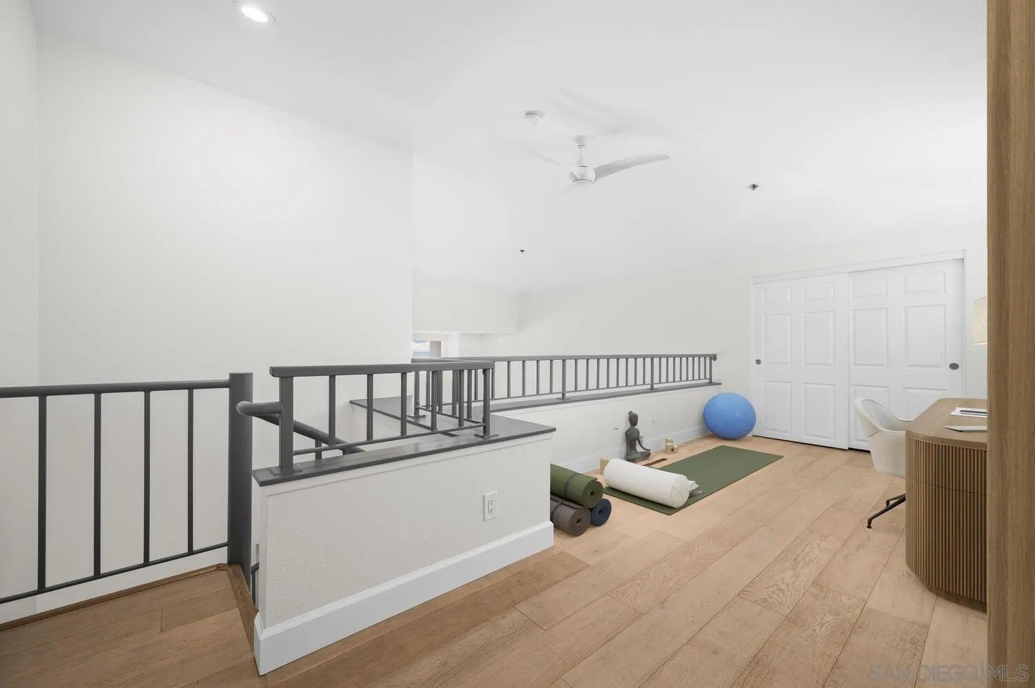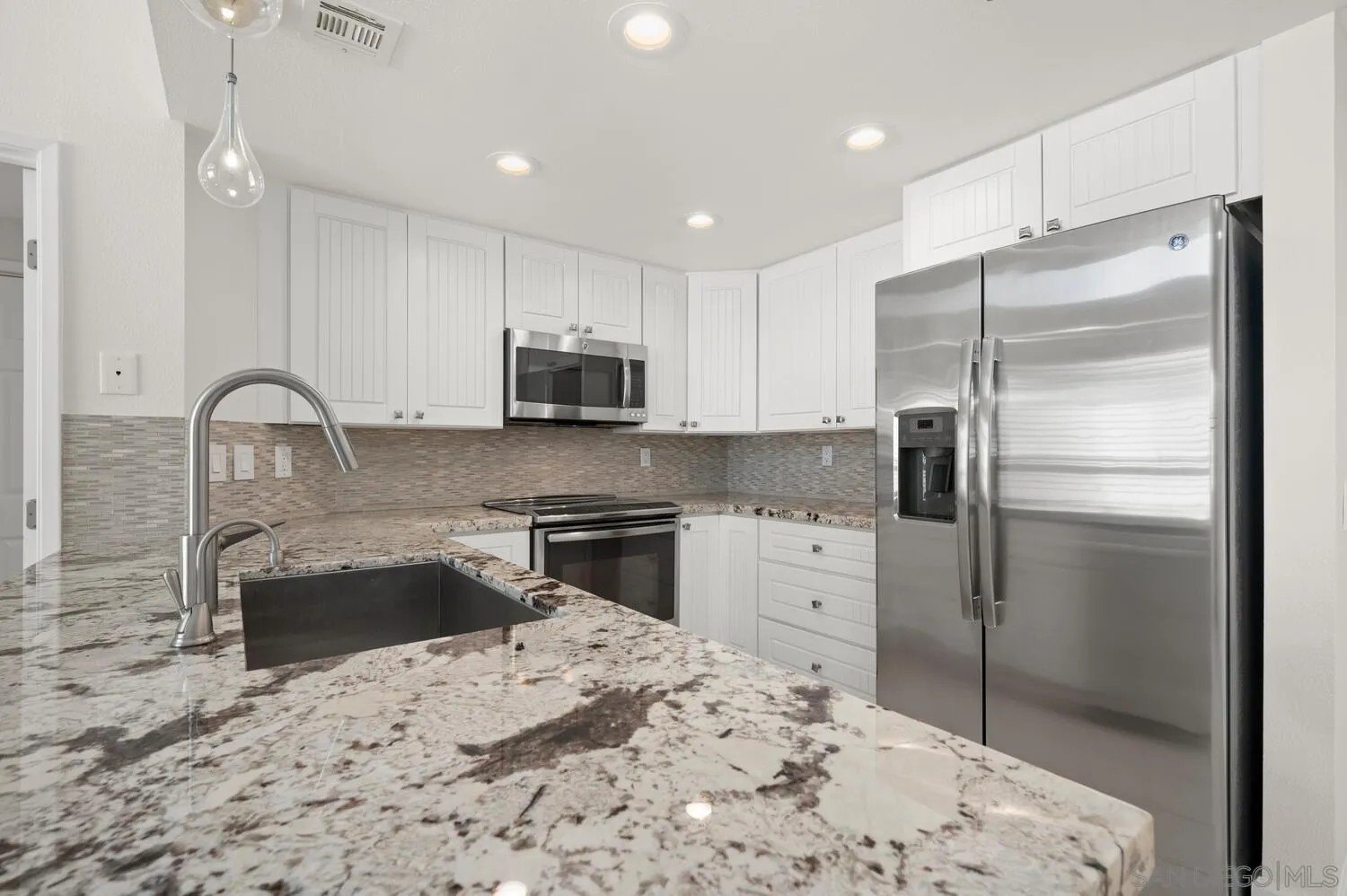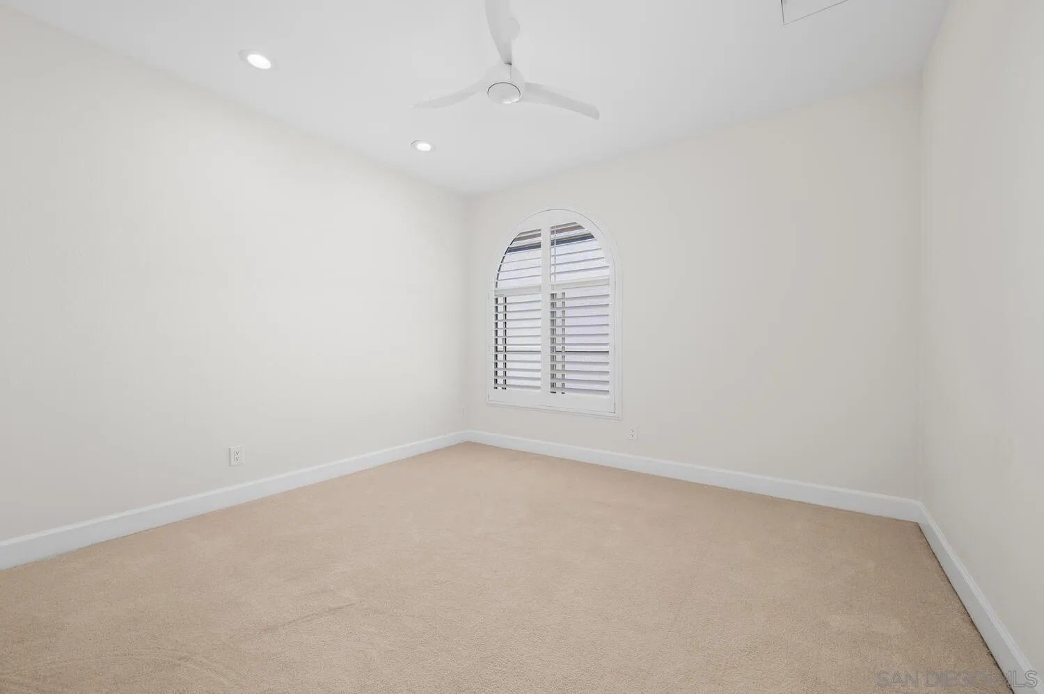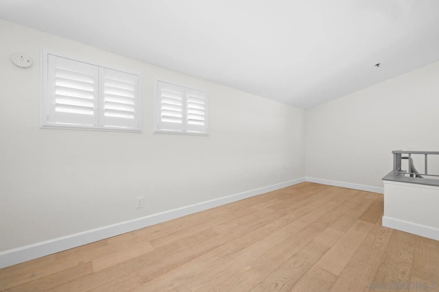 Experience elevated living in the heart of Mission Valley in this stunning top-floor end-unit condominium. With only one shared wall, enjoy exceptional peace and quiet along with soaring vaulted ceilings and a private balcony that create an open and airy atmosphere with tranquil views of the community's inner courtyard. The thoughtfully designed split floor plan features spacious primary and secondary suites on opposite sides of the home, separated by open-concept living areas for maximum privacy.