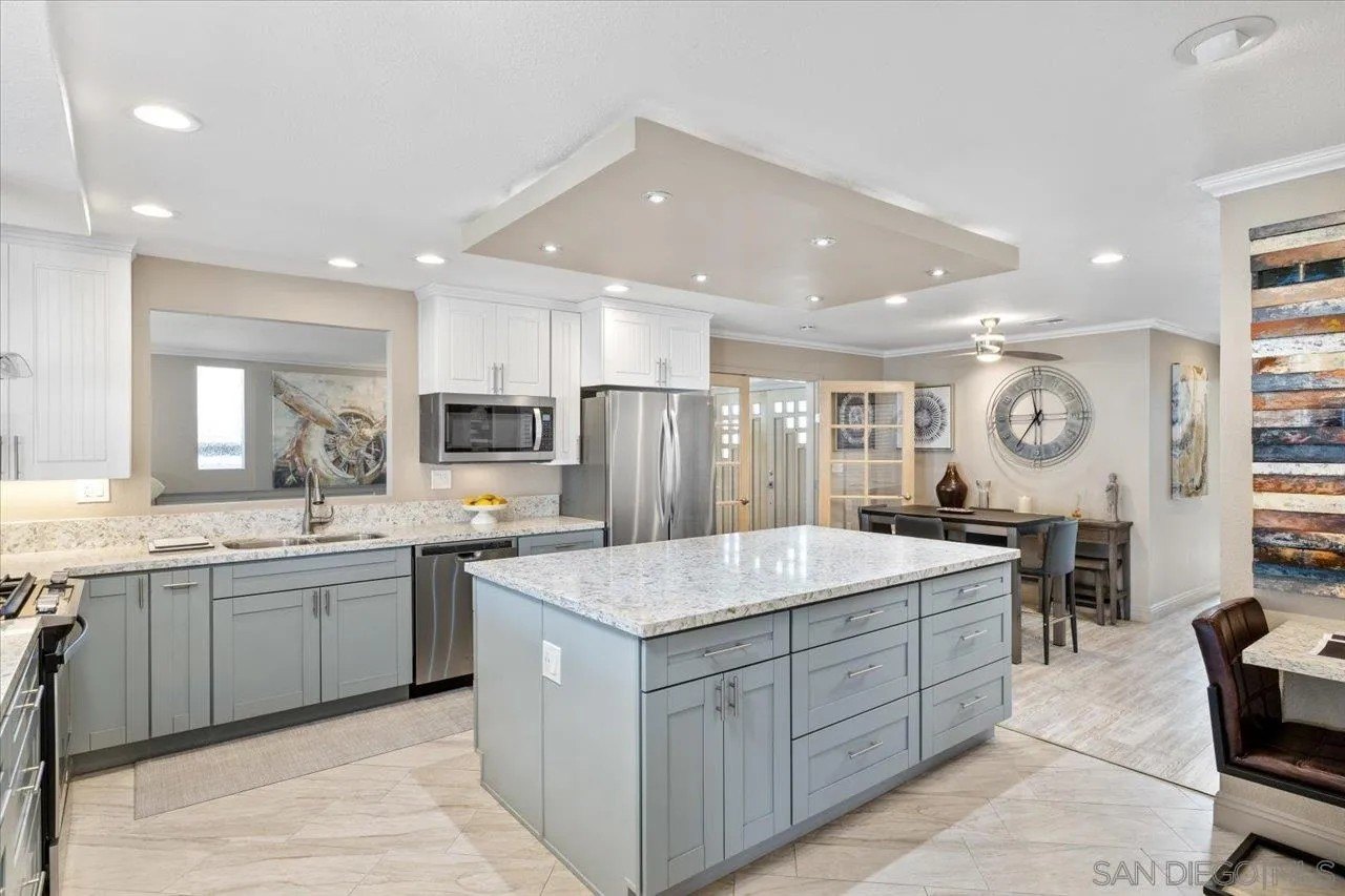 Contemporary Style/Beach Resort Living! EVERY POSSIBLE UPGRADE is done on this home! Primary Bath is meticulously designed w/Sophisticated Luxury in mind! Primary Bedroom has Grand Walk-In Closet w/Custom Shelving! HUGE Kitchen Island with Solid Stone Countertops! ALL Cabinetry has Soft Close Drawers AND Doors! Custom Built-In Creative Storage is EVERYWHERE! Home is situated between two Lakes w/Expansive Green Belt Views for peaceful living! ** NO PROPERTY TAXES**