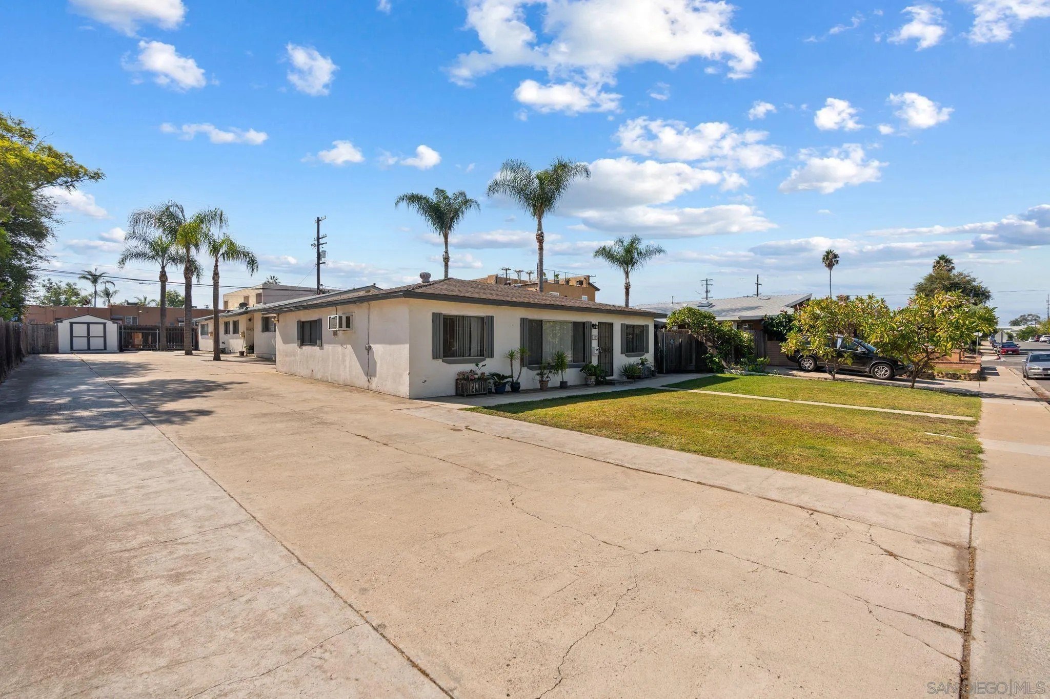 Rare chance to own three income-producing units on a spacious quarter-acre+ parcel across from a neighborhood park. The property features a detached 3-bedroom home plus a duplex with two 2-bedroom, 1-bath units - each offering laminate plank flooring, newer wall heaters, and mirrored wardrobe doors. Each residence enjoys a private yard with large semi-covered patios, individual washer & dryer, and ample parking with 2+ spaces per unit on a shared driveway. Two storage sheds are owned and used exclusively by the landlord. Well-maintained with long-term tenants and strong upside rental potential. Possible alley access along the south side of the property. Convenient central location near shopping, restaurants, and public transit - a solid investment in a high-demand San Diego rental market.