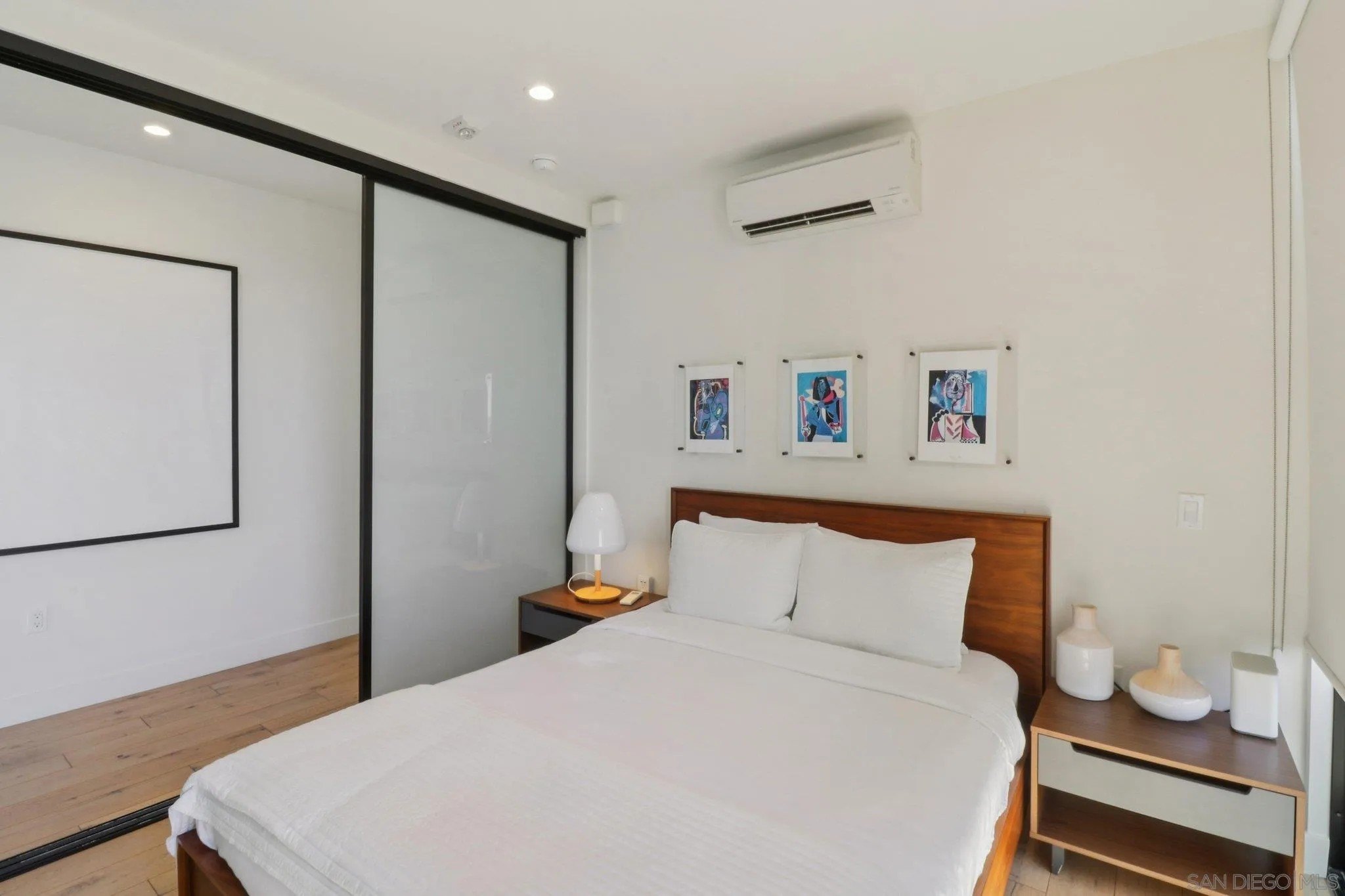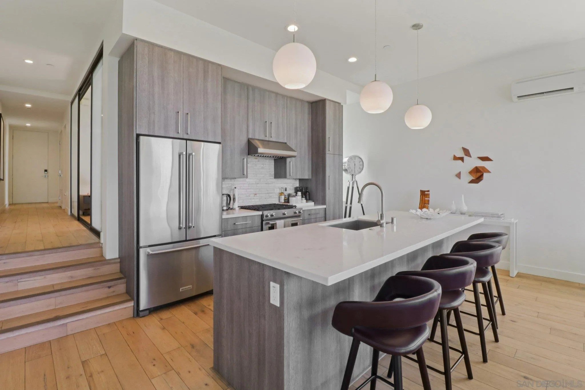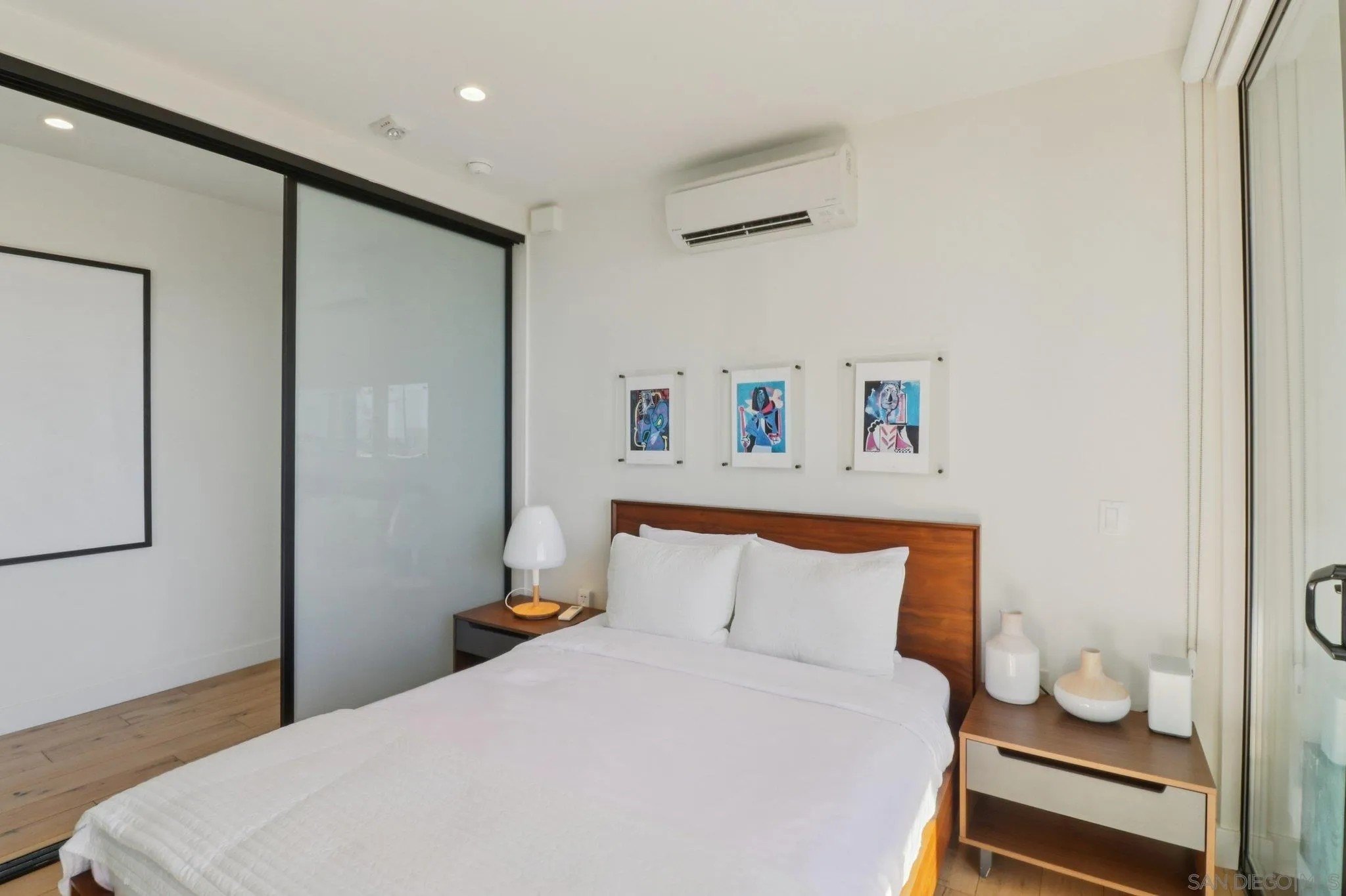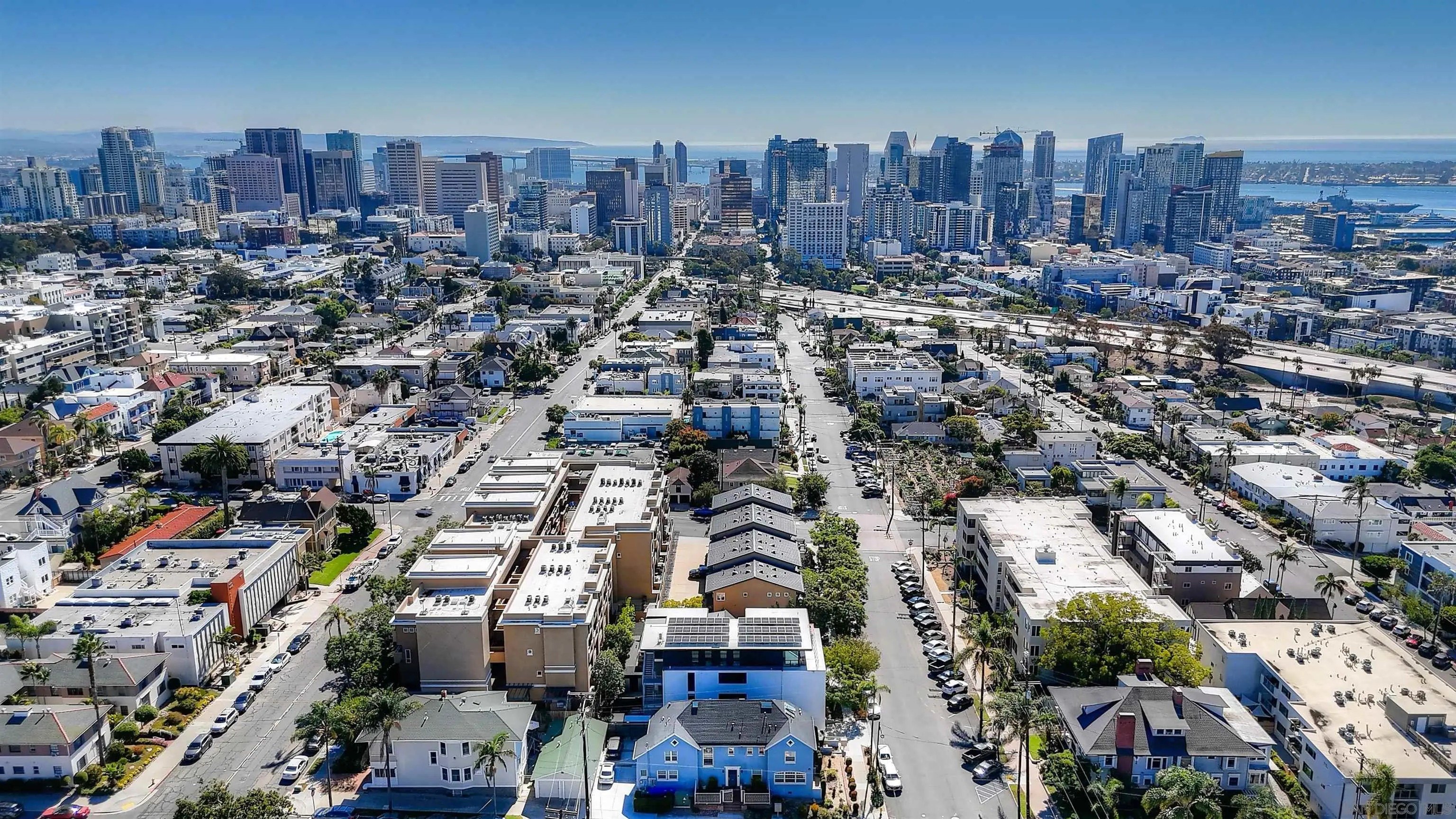 Discover modern luxury living in the heart of Bankers Hill! This exceptional residence at Hangar 5 offers the perfect blend of contemporary design and inviting warmth, all within moments of San Diego's best urban amenities. Filled with natural light, the open-concept floor plan is anchored by an impressive 11-foot Fleetwood wall of glass, creating a seamless indoor-outdoor connection and framing stunning bay and city views. Thoughtfully appointed with hardwood floors throughout, quartz countertops, high-end cabinetry, and stainless-steel appliances, this home exudes sophistication and comfort. Additional features include gated underground side-by-side parking, a private oversized storage unit, and convenient elevator access. Located on a quiet, tree-lined street yet just minutes from Balboa Park, Little Italy, top dining, and shopping. This residence defines the ultimate Uptown lifestyle, a serene, low-maintenance retreat in one of San Diego's most vibrant neighborhoods. Rarely available, this unit is approved for short-term rentals, offering exceptional flexibility and strong income potential, an outstanding opportunity for both homeowners and investors alike.
