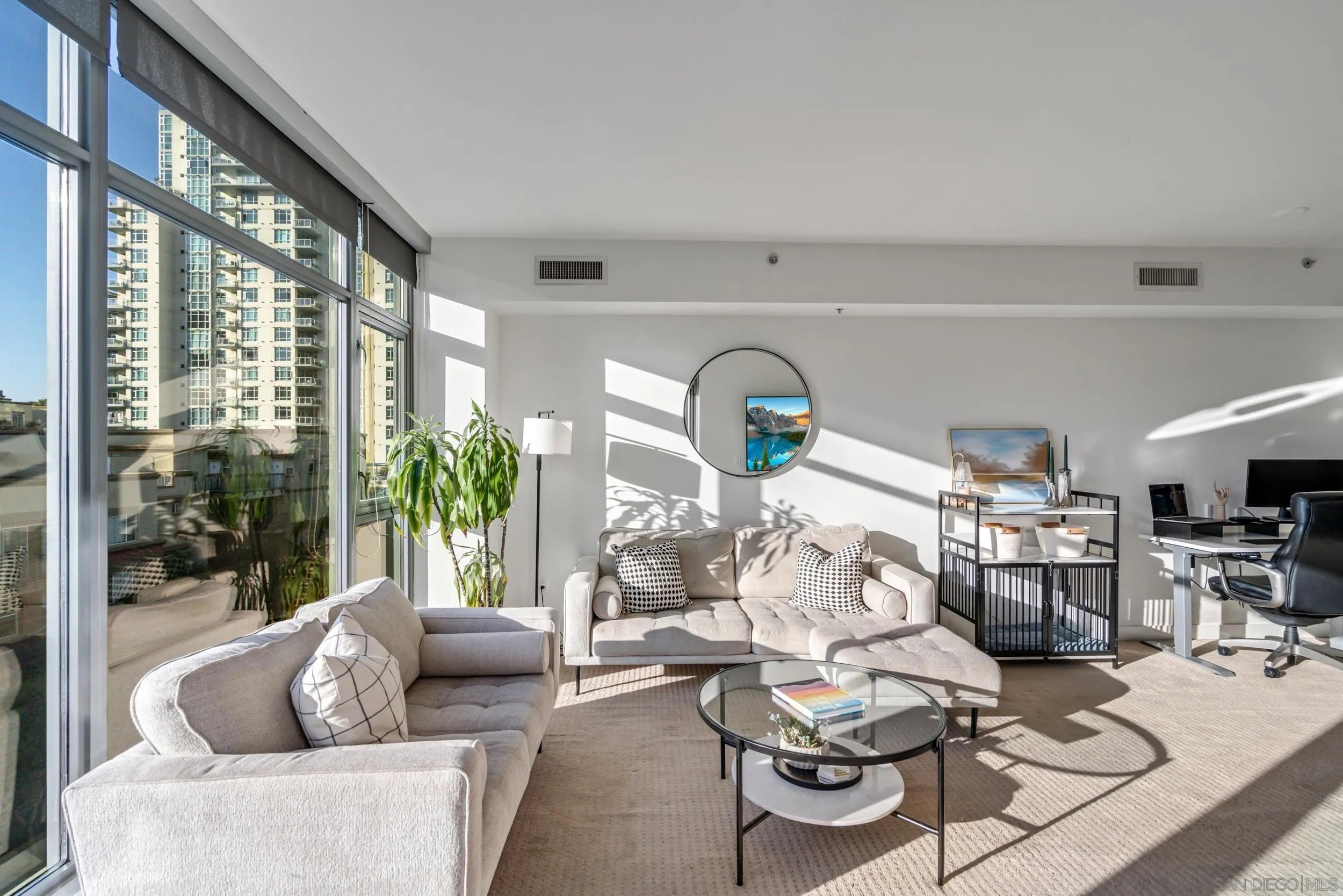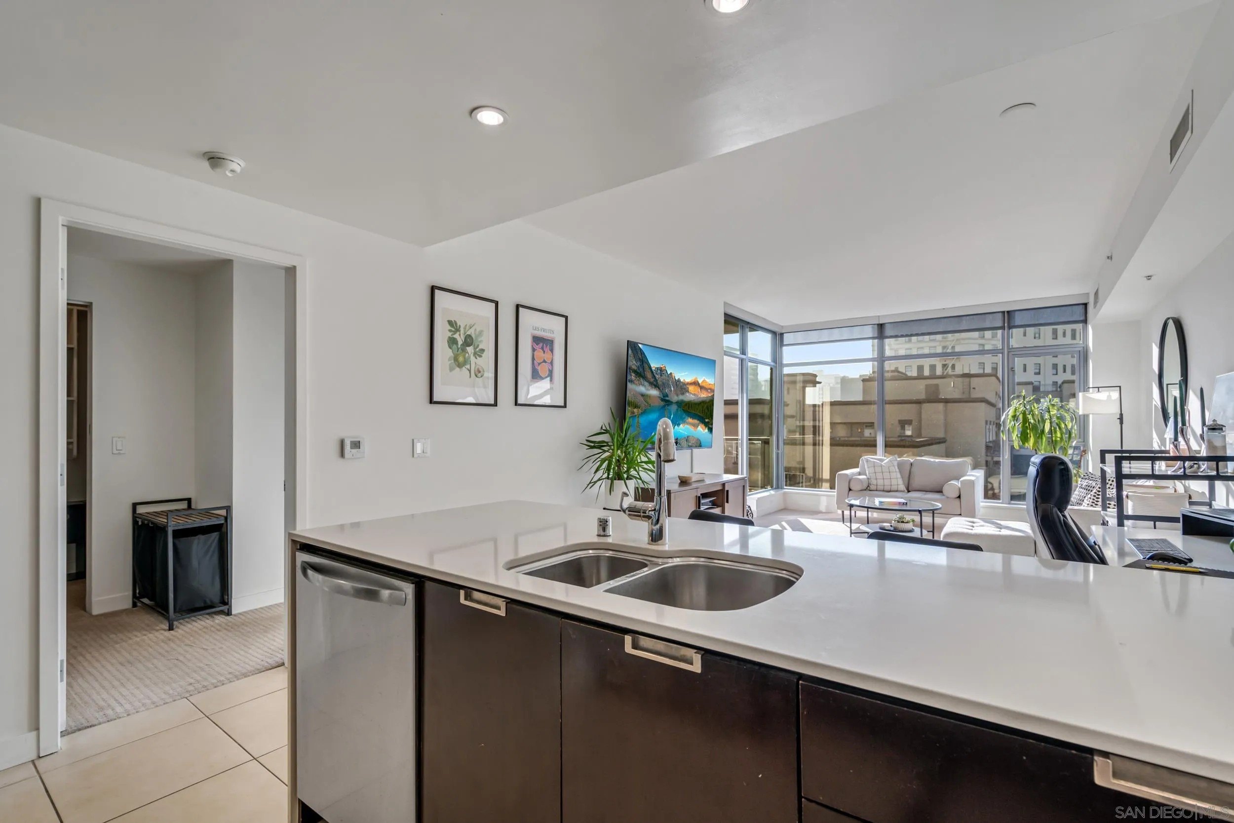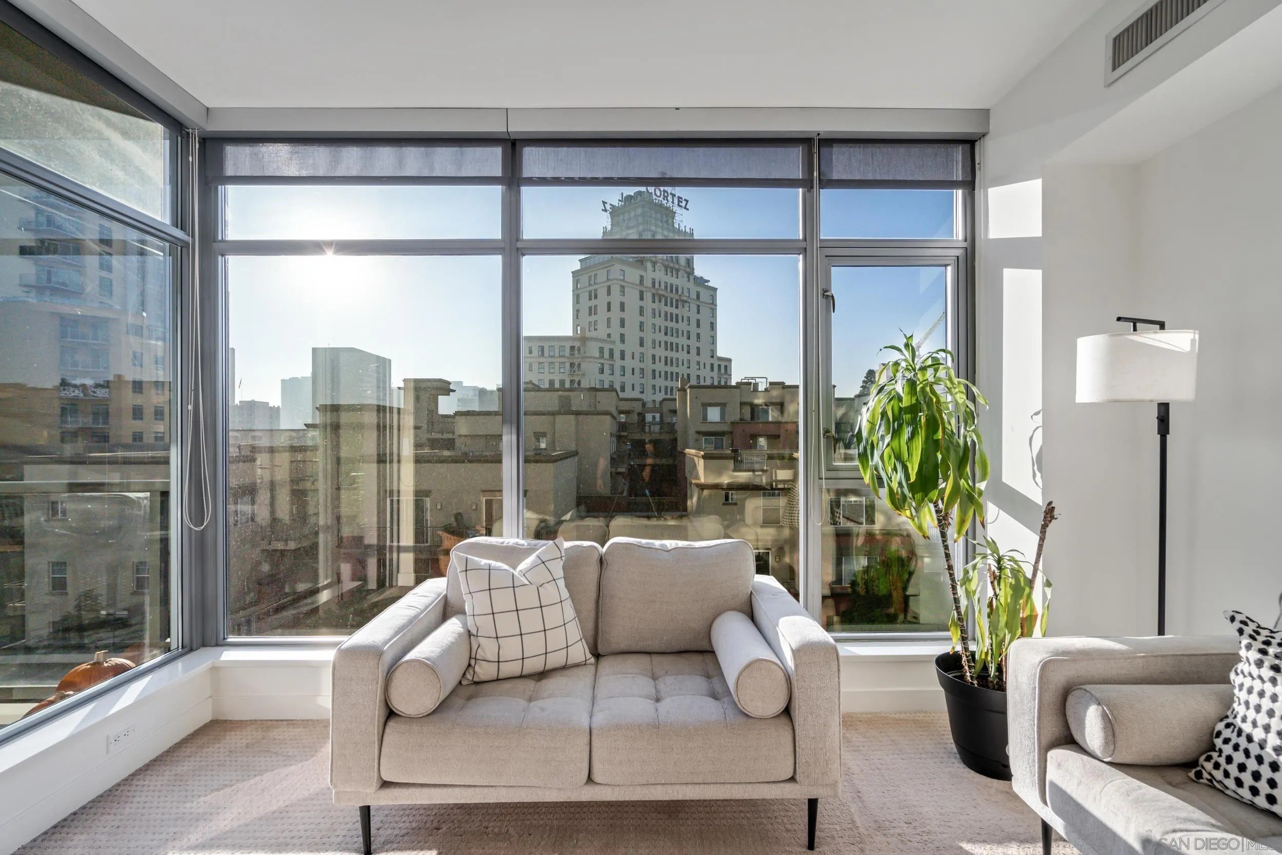 Modern elegance meets downtown vibrance in this stunning Aria residence, located in the serene Cortez Hill neighborhood. Bright and airy with a west-facing orientation, this home captures sweeping city views of the Downtown skyline, the historic El Cortez & spectacular sunsets - a perfect spot to unwind after a busy day. Designed for effortless living, the open-concept layout features high ceilings, oversized windows, and seamless flow between the living, dining, and kitchen areas-ideal for entertaining or relaxation. The contemporary kitchen impresses with stainless steel appliances, sleek quartz countertops, and ample storage. Meanwhile, the spacious bedroom features a large walk-in closet and convenient dual access to the bathroom. Additional highlights include an in-unit washer and dryer, assigned underground parking, and a rare private storage room, located directly in front of the parking space. Aria is a VA & FHA approved community, and residents enjoy an exceptional amenity collection, including a fully equipped fitness center, a 70-foot lap pool and spa, a stylish clubroom with a theatre area featuring lounge seating, a wet bar, and a dining/meeting area. With its peaceful, residential feel and close proximity to Balboa Park, Little Italy, the Gaslamp Quarter, Tweet Street Park, bus and trolley transportation, Petco Park, East Village, and the bayfront, this home offers the perfect balance of calm and connectivity. Aria - where contemporary design, city views, and resort-style living come together beautifully in the heart of Cortez Hill of Downtown San Diego.