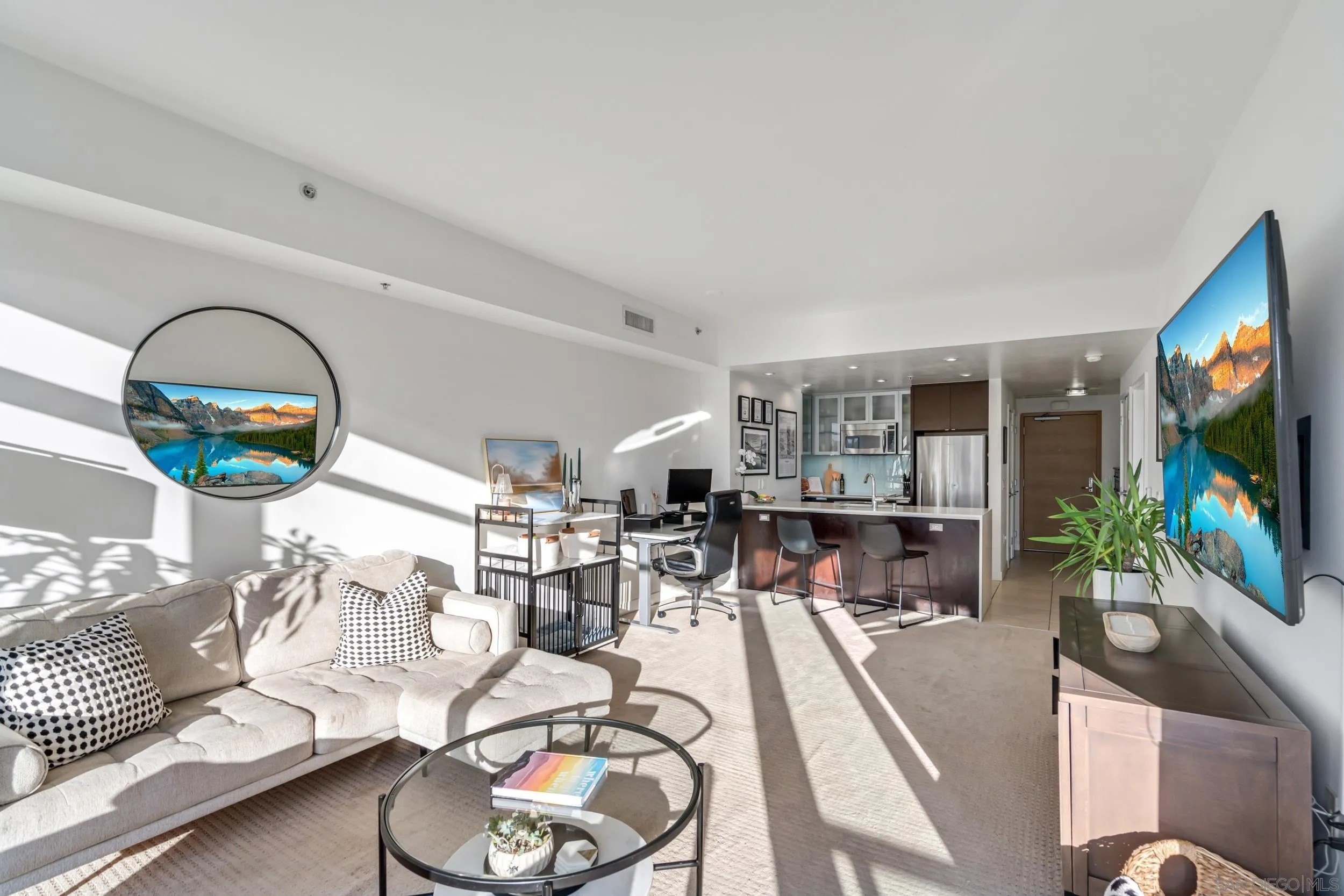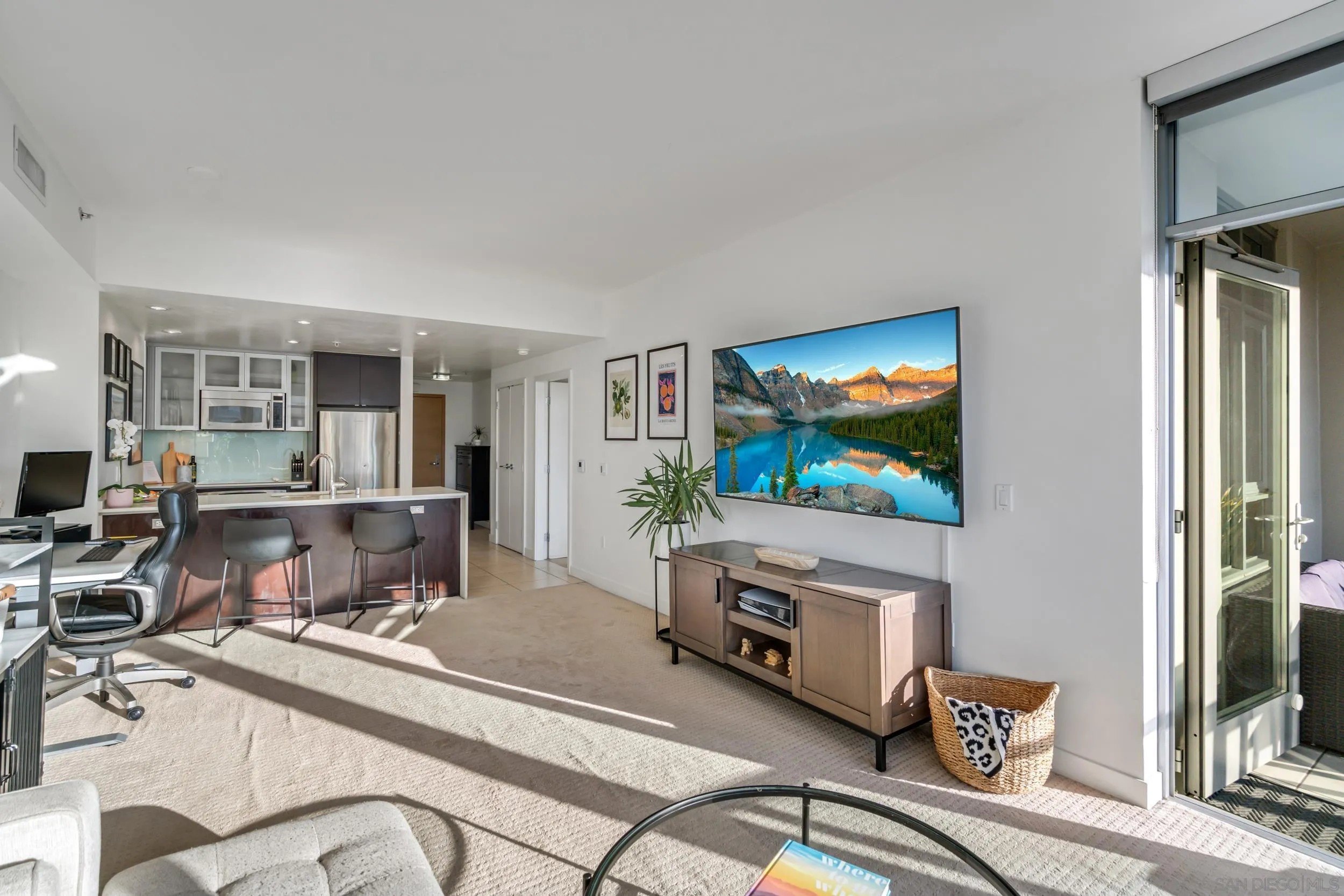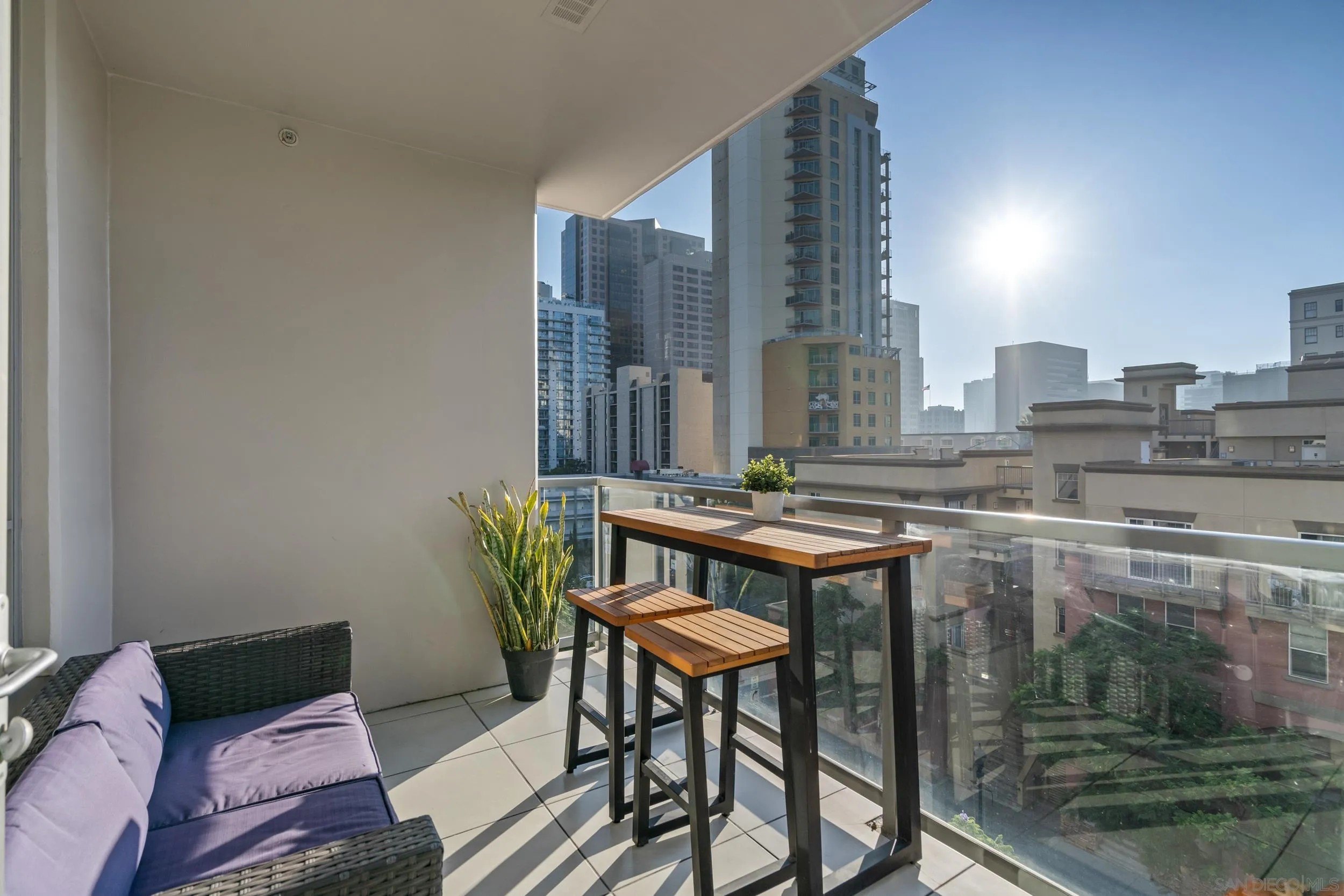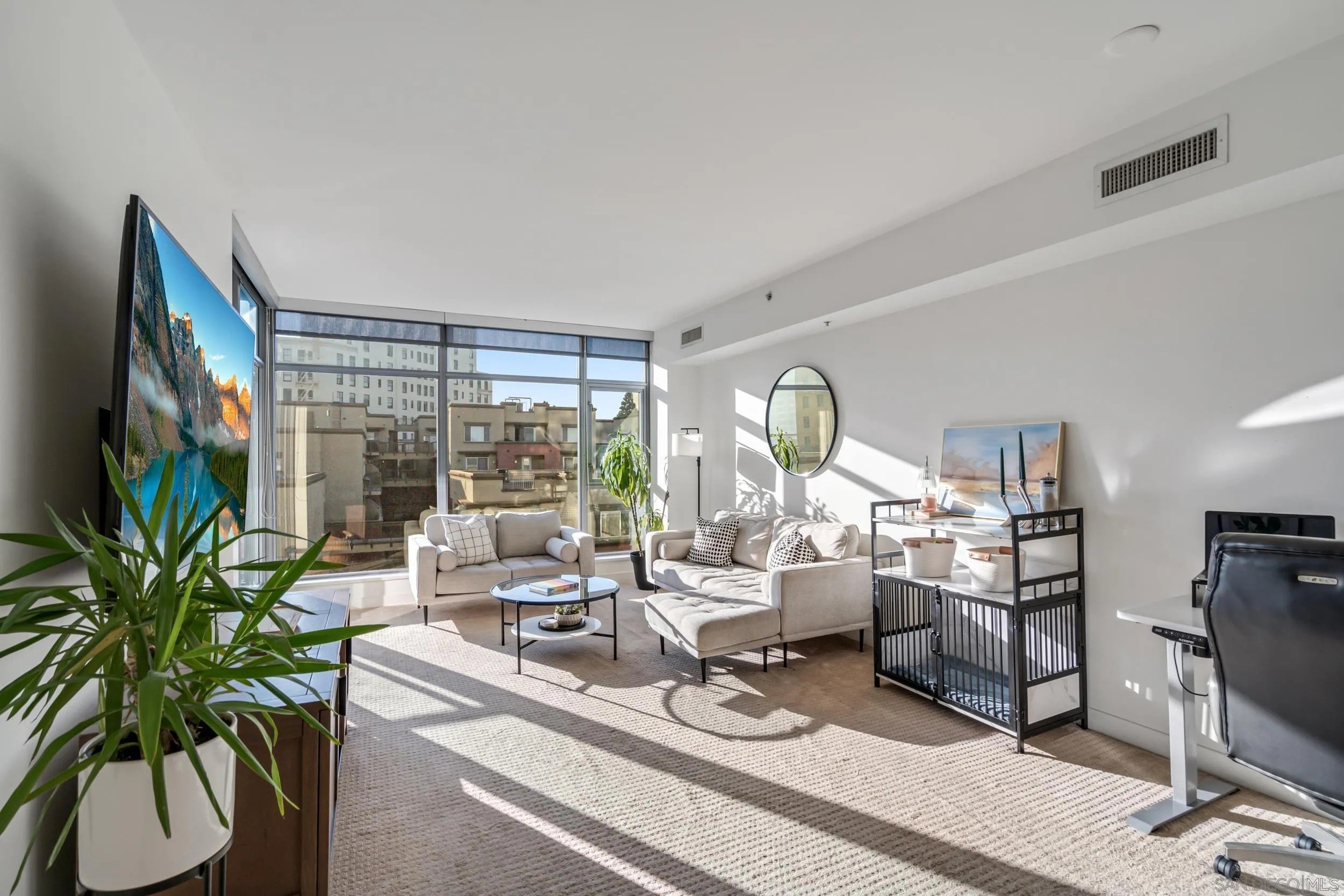 Modern elegance meets downtown vibrance in this stunning Aria residence, located in the serene Cortez Hill neighborhood. Bright and airy with a west-facing orientation, this home captures sweeping city views of the Downtown skyline, the historic El Cortez & spectacular sunsets - a perfect spot to unwind after a busy day. Designed for effortless living, the open-concept layout features high ceilings, oversized windows, and seamless flow between the living, dining, and kitchen areas-ideal for entertaining or relaxation. The contemporary kitchen impresses with stainless steel appliances, sleek quartz countertops, and ample storage. Meanwhile, the spacious bedroom features a large walk-in closet and convenient dual access to the bathroom. Additional highlights include an in-unit washer and dryer, assigned underground parking, and a rare private storage room, located directly in front of the parking space. Aria is a VA & FHA approved community, and residents enjoy an exceptional amenity collection, including a fully equipped fitness center, a 70-foot lap pool and spa, a stylish clubroom with a theatre area featuring lounge seating, a wet bar, and a dining/meeting area. With its peaceful, residential feel and close proximity to Balboa Park, Little Italy, the Gaslamp Quarter, Tweet Street Park, bus and trolley transportation, Petco Park, East Village, and the bayfront, this home offers the perfect balance of calm and connectivity. Aria - where contemporary design, city views, and resort-style living come together beautifully in the heart of Cortez Hill of Downtown San Diego.