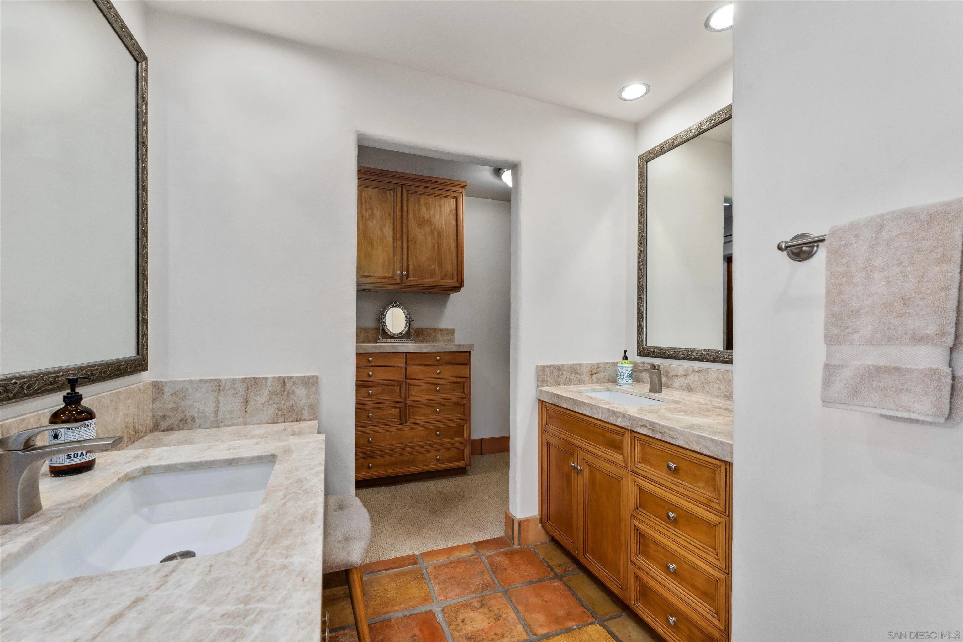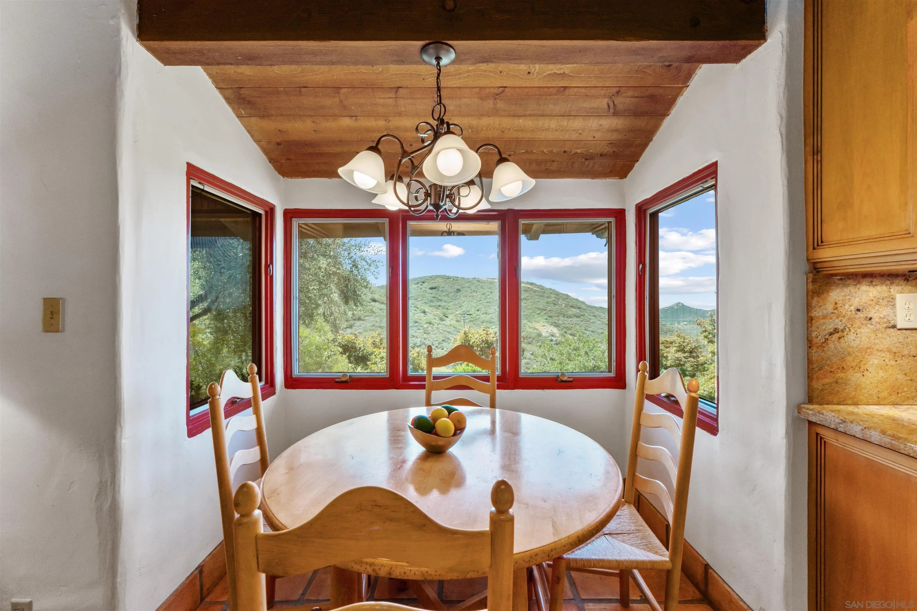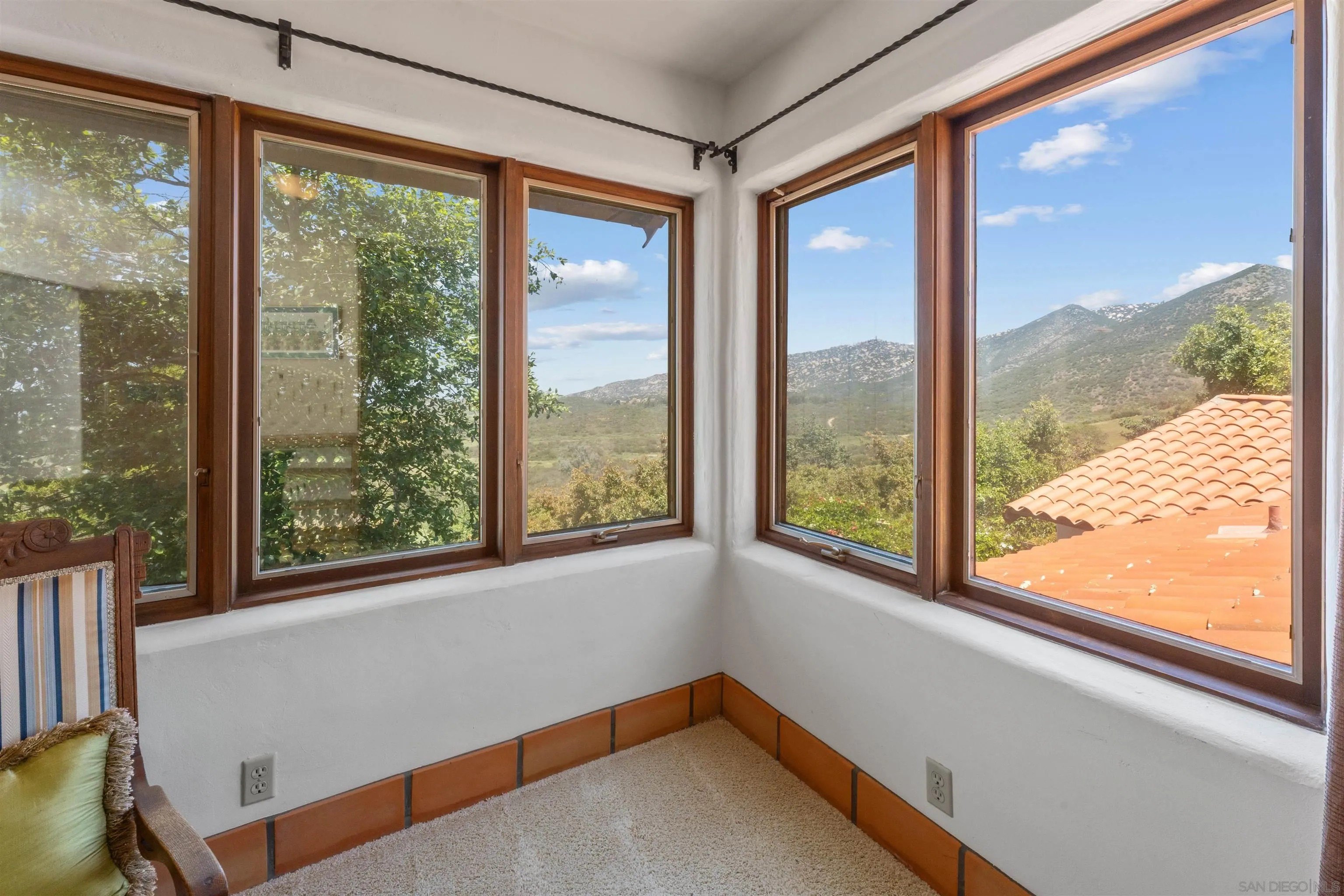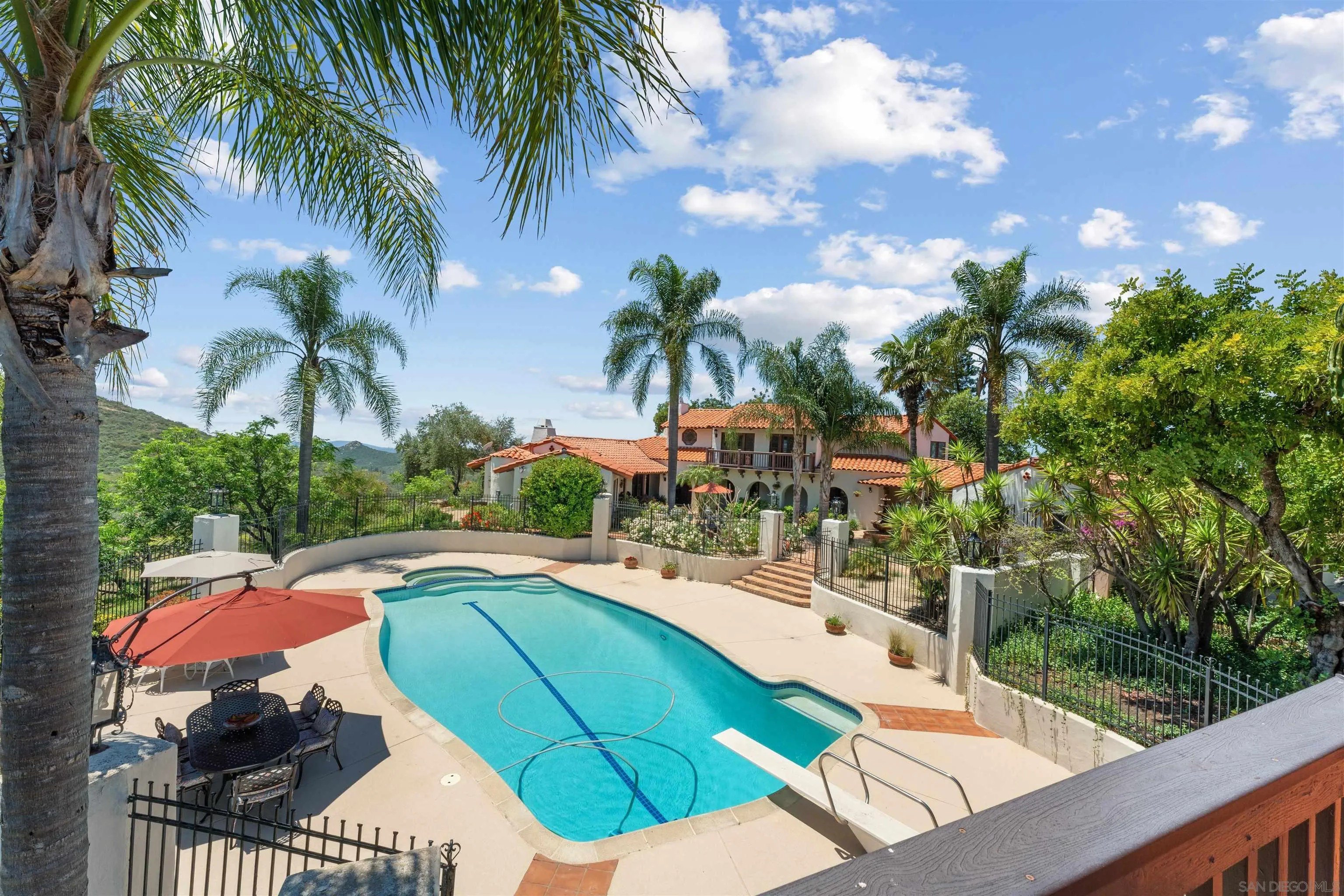 Where the the trail ends, your dream begins with this 16-acre estate, rich with Spanish architectural influence and San Diego charm. True pride of ownership and craftsmanship are evident throughout this custom, one-of-a-kind property designed by Rodger Mohling. Perched atop a private mountain, the estate offers breathtaking 360-degree views-lush greenery surrounds the main home, with panoramic mountain vistas from every room. On clear days, you can even catch beautiful views of the ocean, downtown lights, gorgeous Catalina Island, Point Loma, and feel the refreshing San Diego breeze. The main residence features 4 spacious bedrooms, plus a maid's quarters with its own 1 bedroom and 1 bathroom. The living spaces downstairs feature a dining area and formal sitting area with plenty of windows to take in the view of the gorgeous countryside and carefully curated landscaping. A second sitting area with a view of the courtyard makes a perfect music or art room. A beautifully detached guest house offers even more space with 2 bedrooms and 1 bathroom upstairs, and a gym, sauna and bathroom downstairs. Ideal for those who appreciate authentic architecture and serene country living, this estate also includes a pool and built-in BBQ area, a fenced horse corral and pasture, as well as a private tennis/pickleball court-bringing both relaxation and recreation to your doorstep. This home is perfect for those who seeking a custom, resort style space with plenty of amenities to keep you entertained year round.Ideal for multi generations to reside and live together.