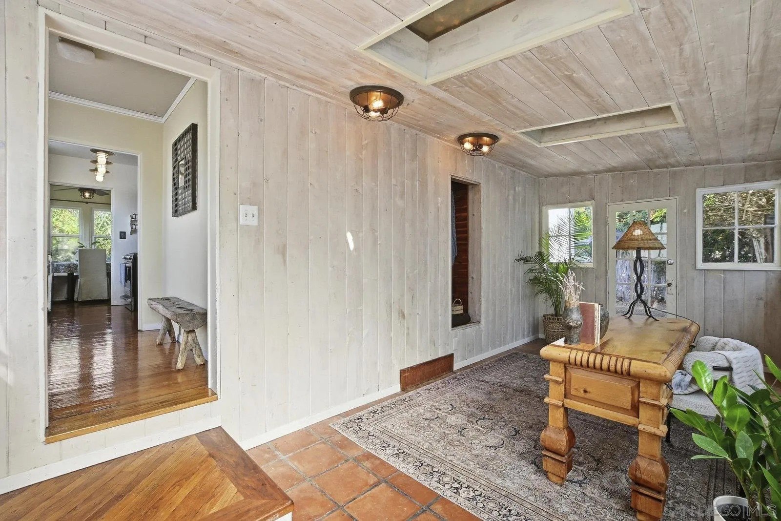 Discover your coastal sanctuary in this beautifully maintained Spanish-inspired residence, nestled in the coveted South Ocean Beach neighborhood just one block from the ocean. This 2-bedroom, 1-bath home offers an authentic yet polished retreat with timeless hardwood floors and abundant natural light flowing from front to back. The thoughtfully landscaped outdoor spaces feature mature trees and lush greenery, creating a private, tranquil setting perfect for relaxation or entertaining. An outdoor shower adds convenience after enjoying the sun and surf. The property's fully fenced lot offers privacy and potential. The detached garage presents an opportunity to create a stylish ADU or, build-up and potentially capture breathtaking ocean views. The kitchens features durable butcher block countertops and a large, farmhouse sink-ideal for both everyday living and upscale gatherings. Seize the opportunity to enjoy the Sunset Sliffs lifestyle and own a distinctive beachside residence with endless potential to personalize and elevate. Moments from the ocean and all the amenities South OB has to offer.
