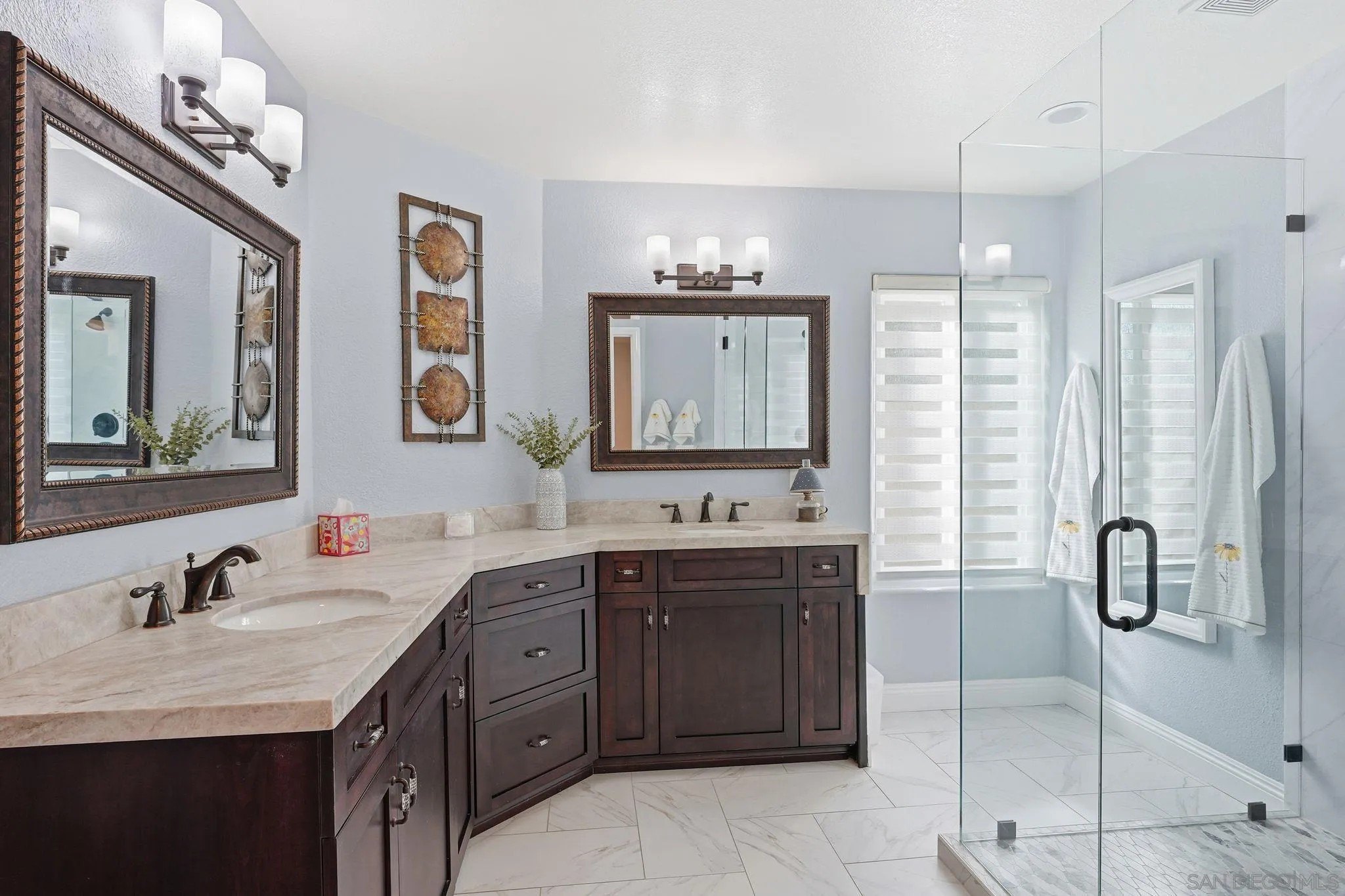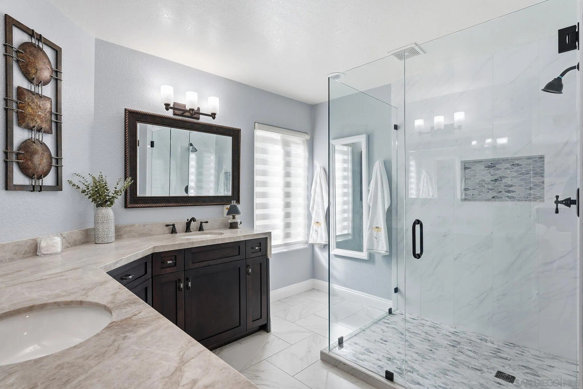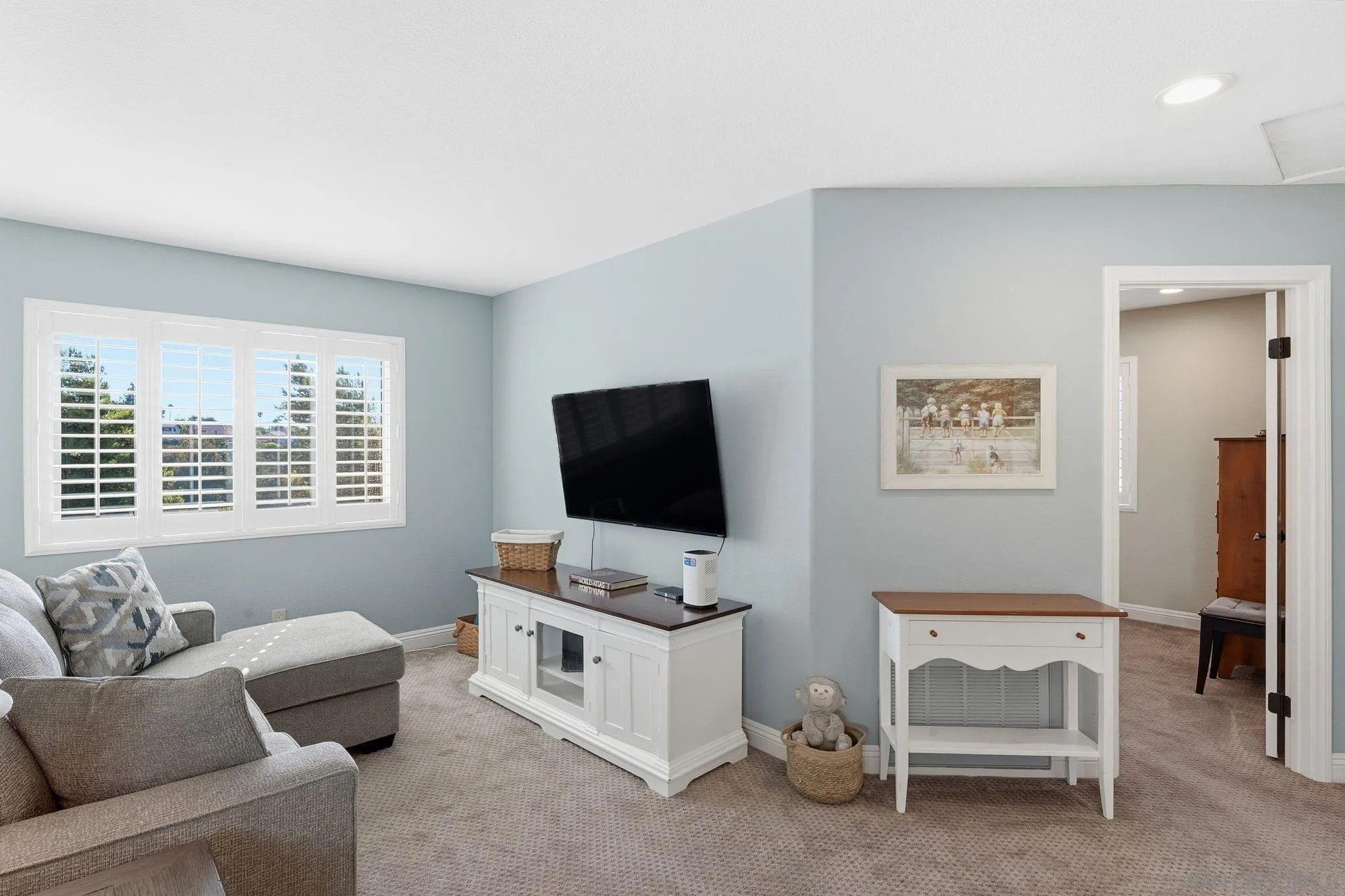 Stunning and desirable San Carlos Home! Welcome to this hidden gem nestled in one of San Carlos's most sought-after neighborhoods, just steps away from scenic hiking trails and directly across from Mission Trails Golf Course. This beautifully remodeled 3-bedroom, 3-bath home includes an optional 4th bedroom, offering the perfect blend of comfort, style, and flexibility. Enjoy two spacious primary suites, one conveniently located on the first floor and another upstairs, ideal for multi-generational living or guest privacy. The home has been thoughtfully renovated and features paid solar, Milgard windows, custom doors, LVP flooring, and plantation shutters throughout. Located minutes from Lake Murray, top-rated award-winning schools, shopping, and dining. This home embodies the best of San Diego living. A rare opportunity in the heart of San Carlos!