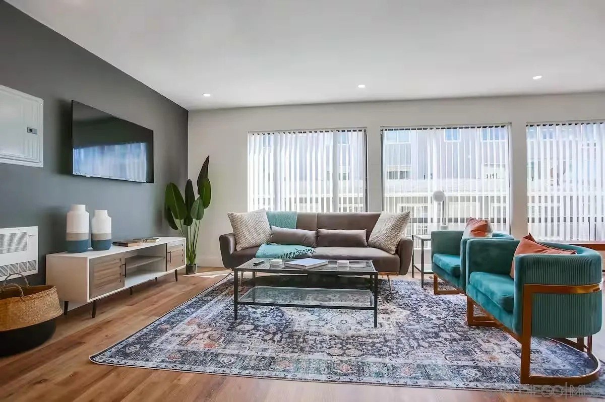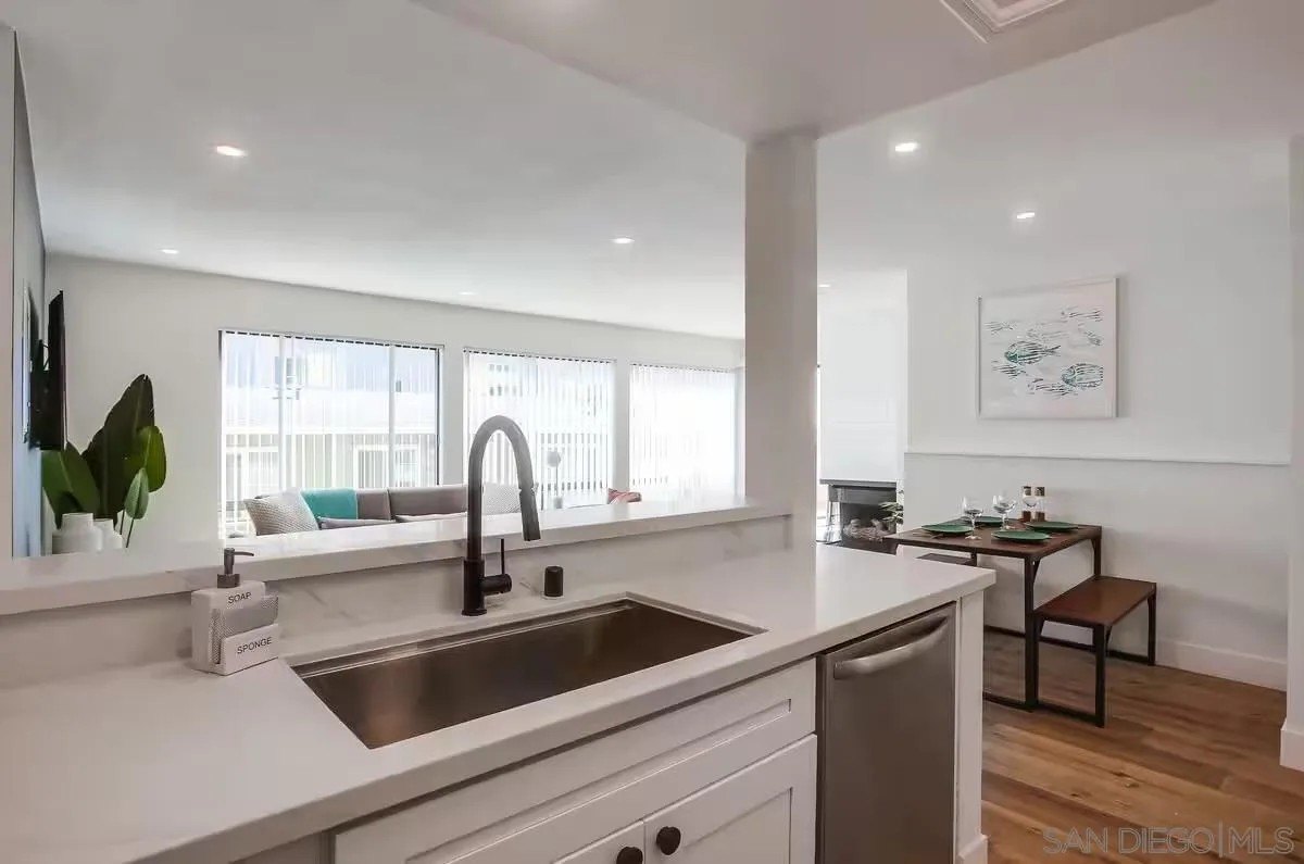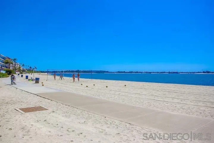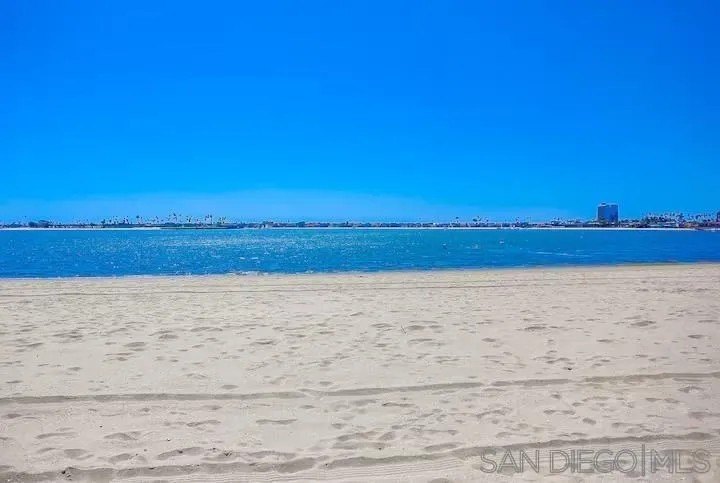 Live the California dream: walk downstairs & dip your toes into Mission Bay's sand & saltwater! VACATION RENTALS allowed, so an ideal full-time or vacation home. Enjoy bay views & ocean breezes from the patio & other rooms. This 1-level corner 2BR/2BA was stylishly renovated in 2023, boasting white quartz countertops, stainless steel appliances, "beachwood" LVP floors, generous master w/ walk-in closet, large baths (both with dual vanities), laundry 15' away, 2 security garage spaces, security complex with direct beach access, & so much more! Available fully furnished: from beds to TVs to wall art to Keurig to plates to flatware ...and everything in between!